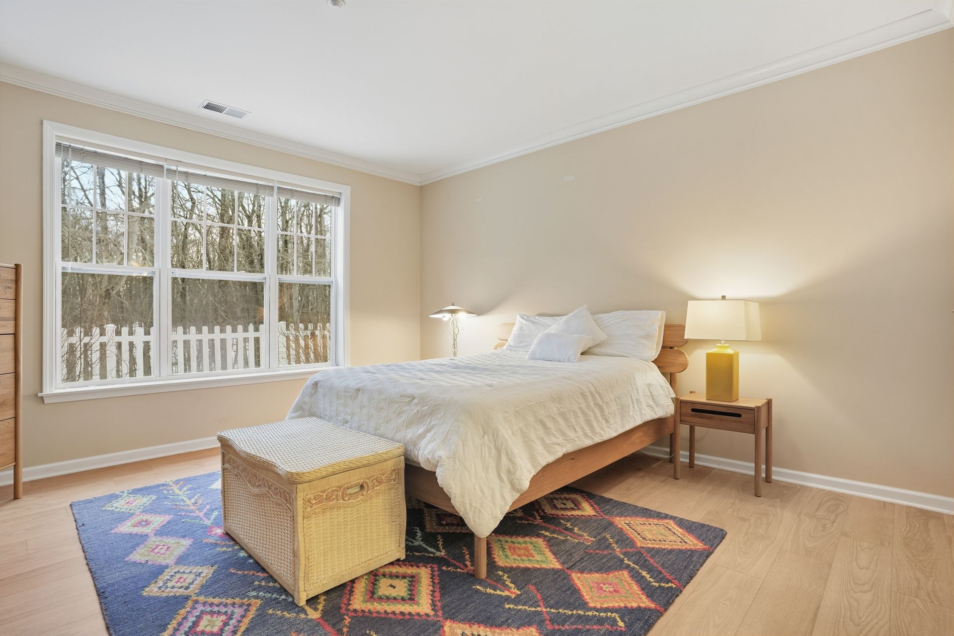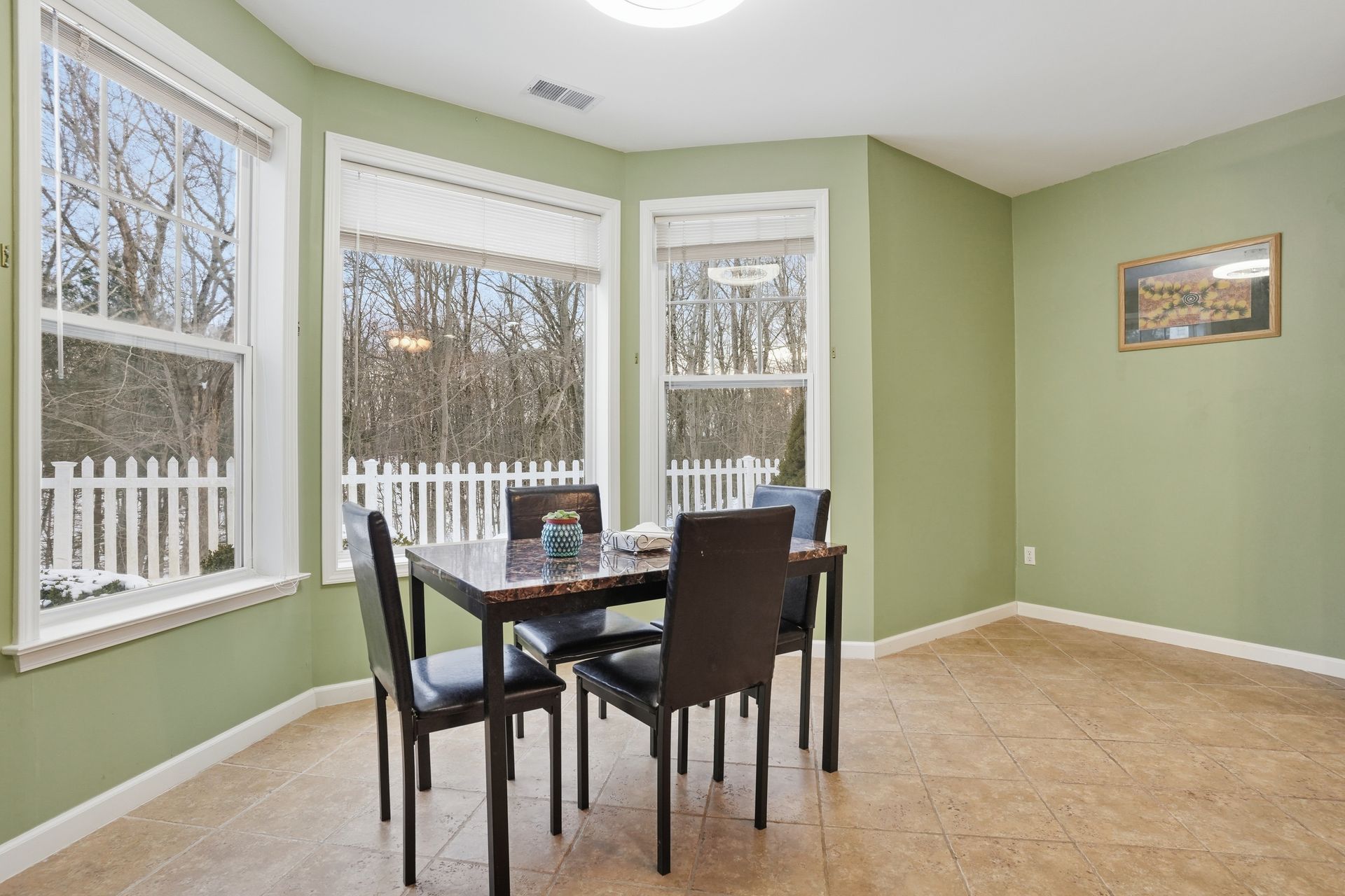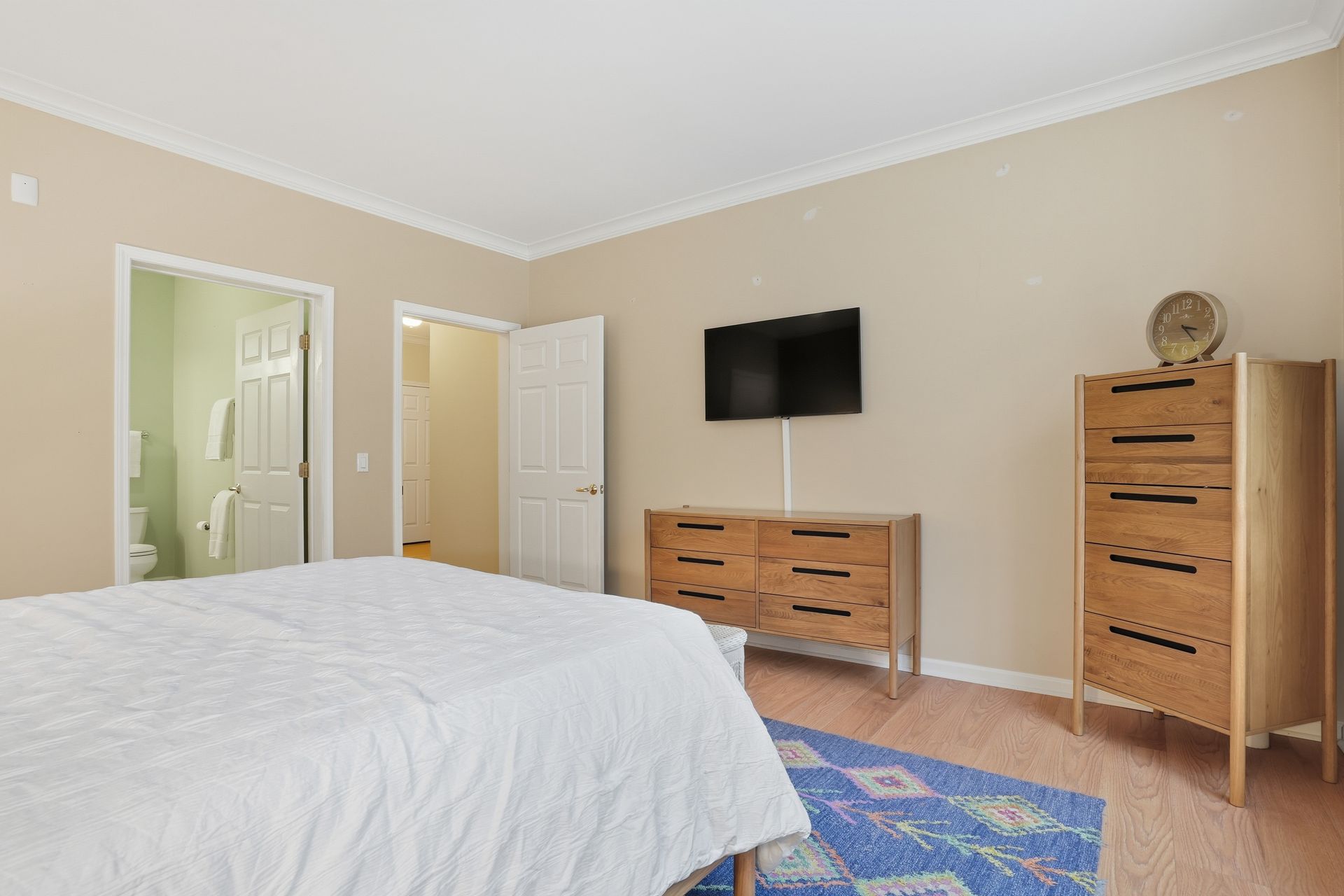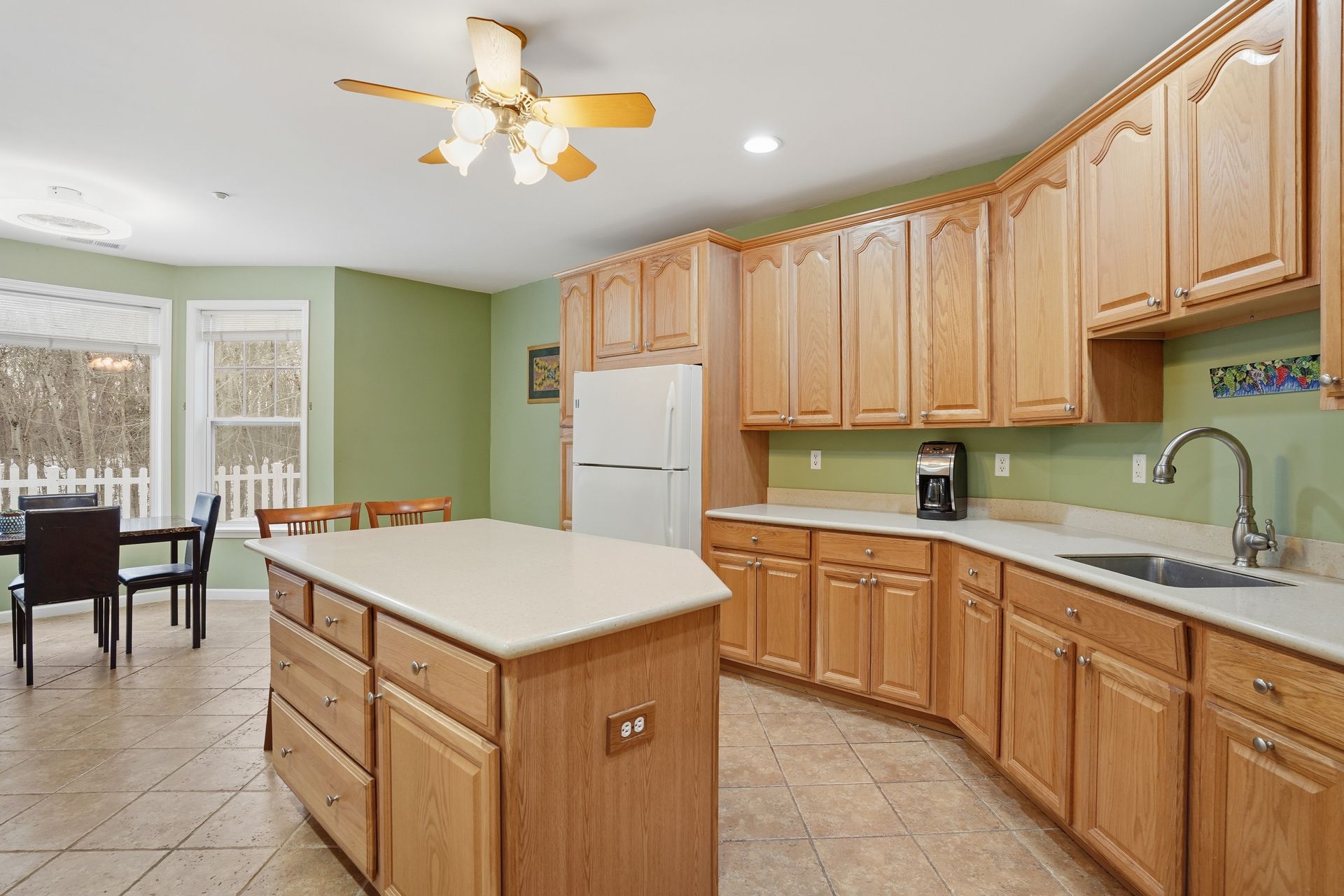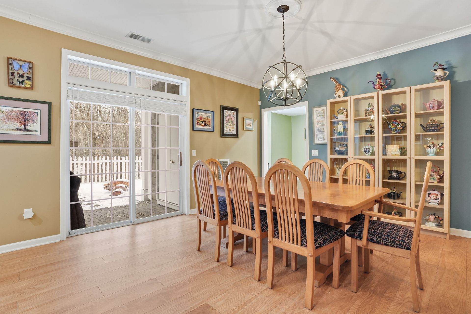 Two bedroom, two and half bath garden level ranch style condo that lives like a private home. This 55+ Active Adult unit offers an open concept Living Room and Dining Room with access to the paver patio. Spacious Kitchen has a large island, solid surface counter tops, and eating area with a large bow window. Large Primary Bedroom Suite is complete with a long walk-in closet, full bath with two sink vanity, glass block window, tub and separate shower. Library offers multiple uses: office, den, etc. Second bedroom is ensuite with a full bath. Beautiful moldings throughout, gas fireplace in Living Room. Community offers a Clubhouse, inground pool and more. Unit has nine-foot ceilings, a two-car garage and separate storage area. Monthly common charge is $650. Newer dishwasher, flooring and newer HVAC system. This condo offers privacy within a community.