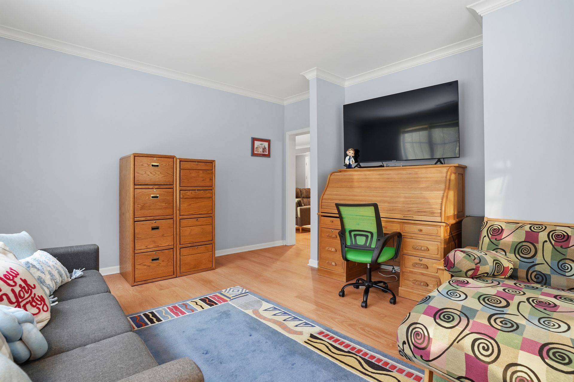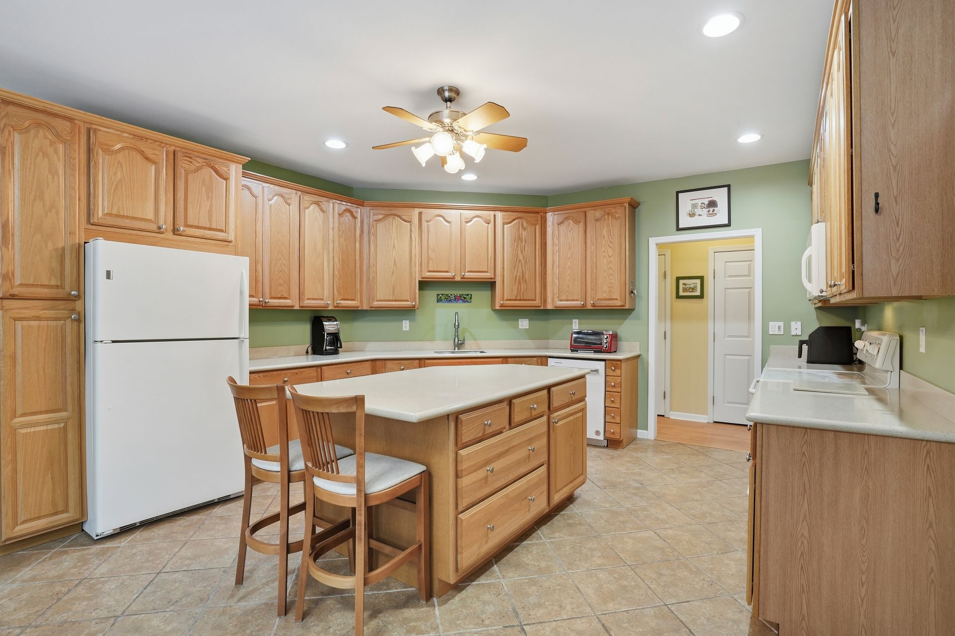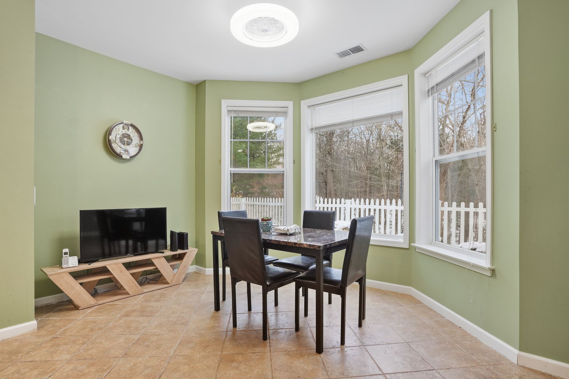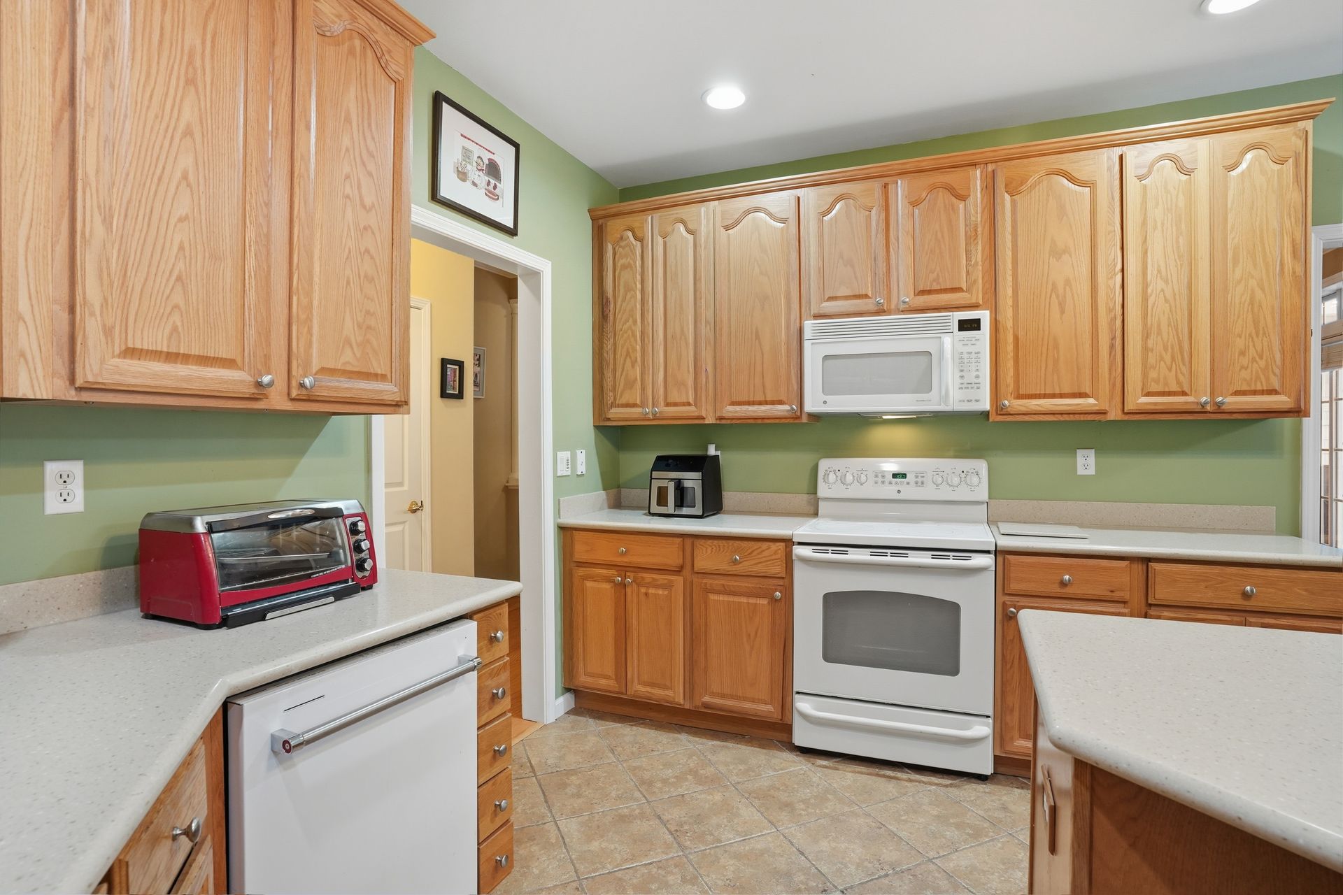Two bedroom, two and half bath garden level ranch style condo that lives like a private home. This 55+ Active Adult unit offers an open concept Living Room and Dining Room with access to the paver patio. Spacious Kitchen has a large island, solid surface counter tops, and eating area with a large bow window. Large Primary Bedroom Suite is complete with a long walk-in closet, full bath with two sink vanity, glass block window, tub and separate shower. Library offers multiple uses: office, den, etc. Second bedroom is ensuite with a full bath. Beautiful moldings throughout, gas fireplace in Living Room. Community offers a Clubhouse, inground pool and more. Unit has nine-foot ceilings, a two-car garage and separate storage area. Monthly common charge is $650. Newer dishwasher, flooring and newer HVAC system. This condo offers privacy within a community.