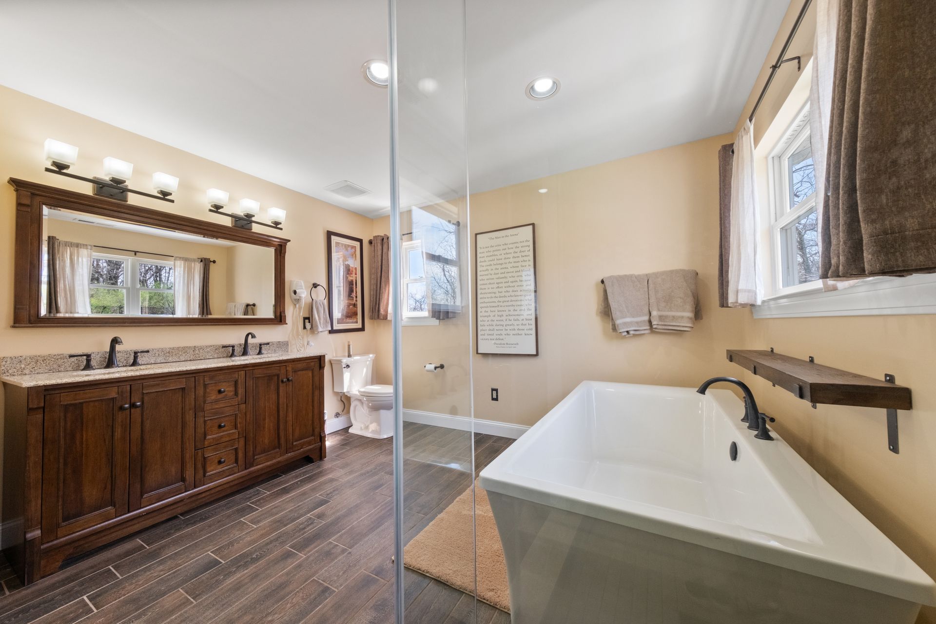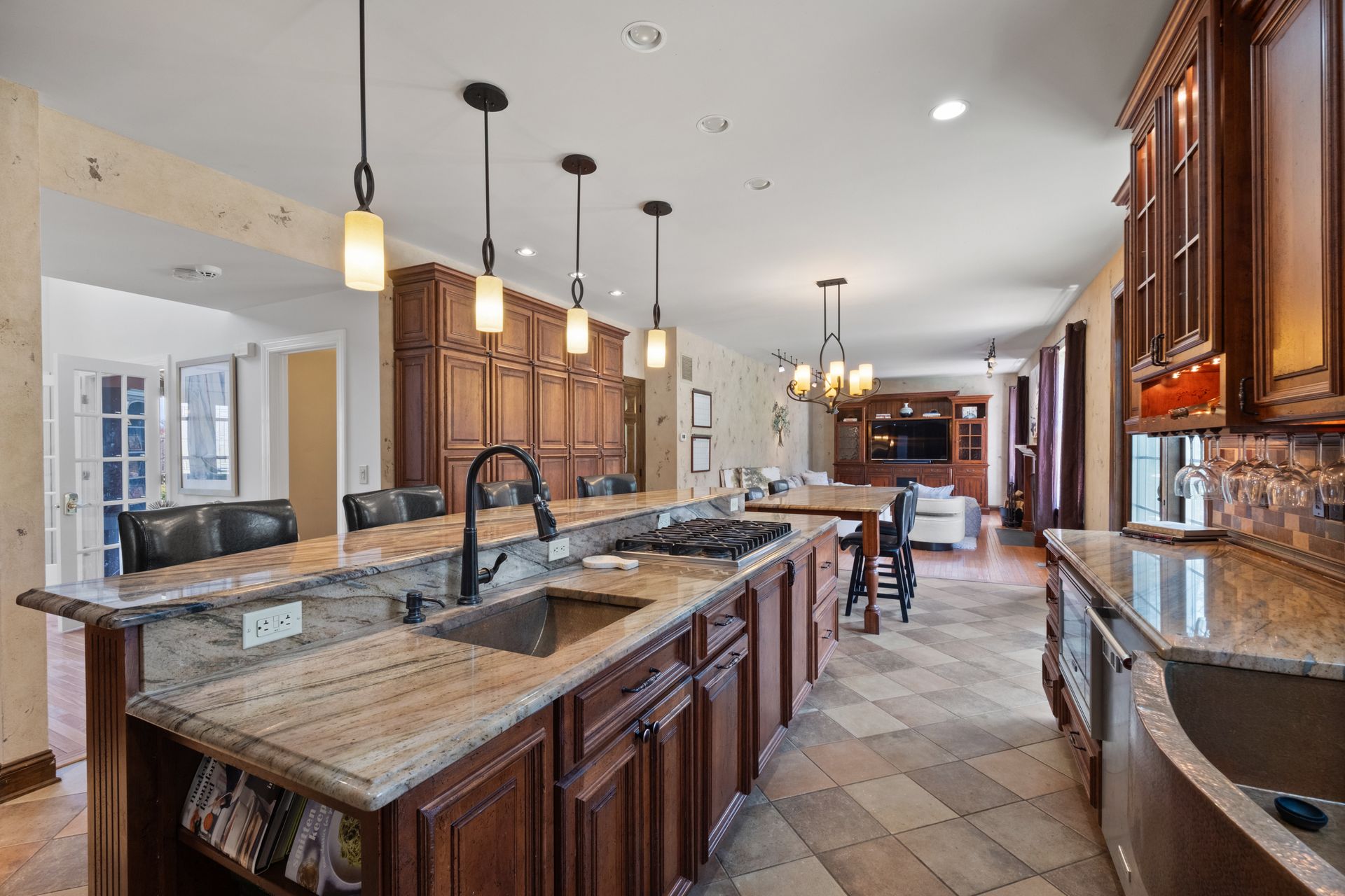 This stunning residence lives like a six bedroom masterpiece, featuring four and a half completely renovated bathrooms and expansive living spaces spanning an impressive 4,200+/- square feet, designed for both grand entertaining and relaxed everyday elegance. A spectacular estate home nestled in one of the area's most prestigious neighborhoods- the upscale Vista Ridge community, where luxury, privacy, and breathtaking views come together in harmony. At the heart of the home, you'll find a $100,000+/- chef’s kitchen that truly stands apart. Outfitted with high-end finishes and professional-grade stainless steel appliances, Viking 6 burner cooktop, dual Copper sinks, dual dishwashers, and ample prep space, it’s a dream come true for culinary enthusiasts and entertainers alike. Go outside to your private oasis—an oversized 20 X 40 in-ground pool with electric cover surrounded by lush landscaping and unmatched privacy. This backyard is the definition of estate living. The primary suite is enormous with dual walk-in closets and a premier owner's spa bathroom with a custom Kohler soaking tub and oversized frameless glass enclosed shower. One side the second floor features a den and bedroom with full elegant bathroom that lives like a two bedroom suite. Massive windows flood the interiors with natural light and capture the serene beauty of the surrounding landscape. Finally, on the lower level you will be welcomed to a game room and TV screening area the footprint of the entire house. In addition- a newly built guest suite with full bath was added by the current owners. All this- and featuring new HVAC systems, hot water heater, and Crown boiler. From the elevated finishes to the incredible sense of space and tranquility, this is more than a home—it’s a rare opportunity to own a luxurious retreat in one of the area's most sought-after enclaves. With panoramic views, incredible privacy, and luxurious finishes throughout, this estate is more than a home—it’s a lifestyle.