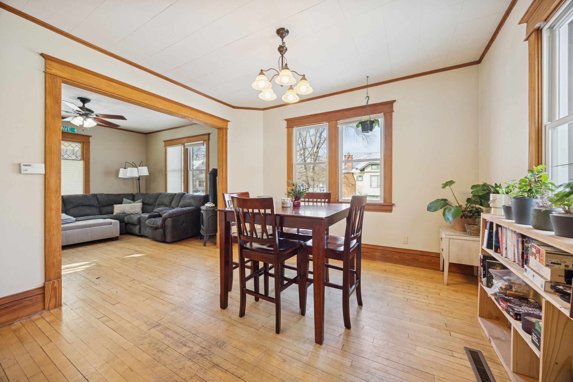 This timeless 1.5-story corner-lot home blends classic character with modern comfort. Featuring three bedrooms on the same level, two baths, and maple hardwood floors under soaring nine-foot ceilings, it’s bright, inviting, and ready for your personal touches. The updated kitchen and windows keep things fresh, while the double-stall garage and concrete driveway add everyday convenience.
