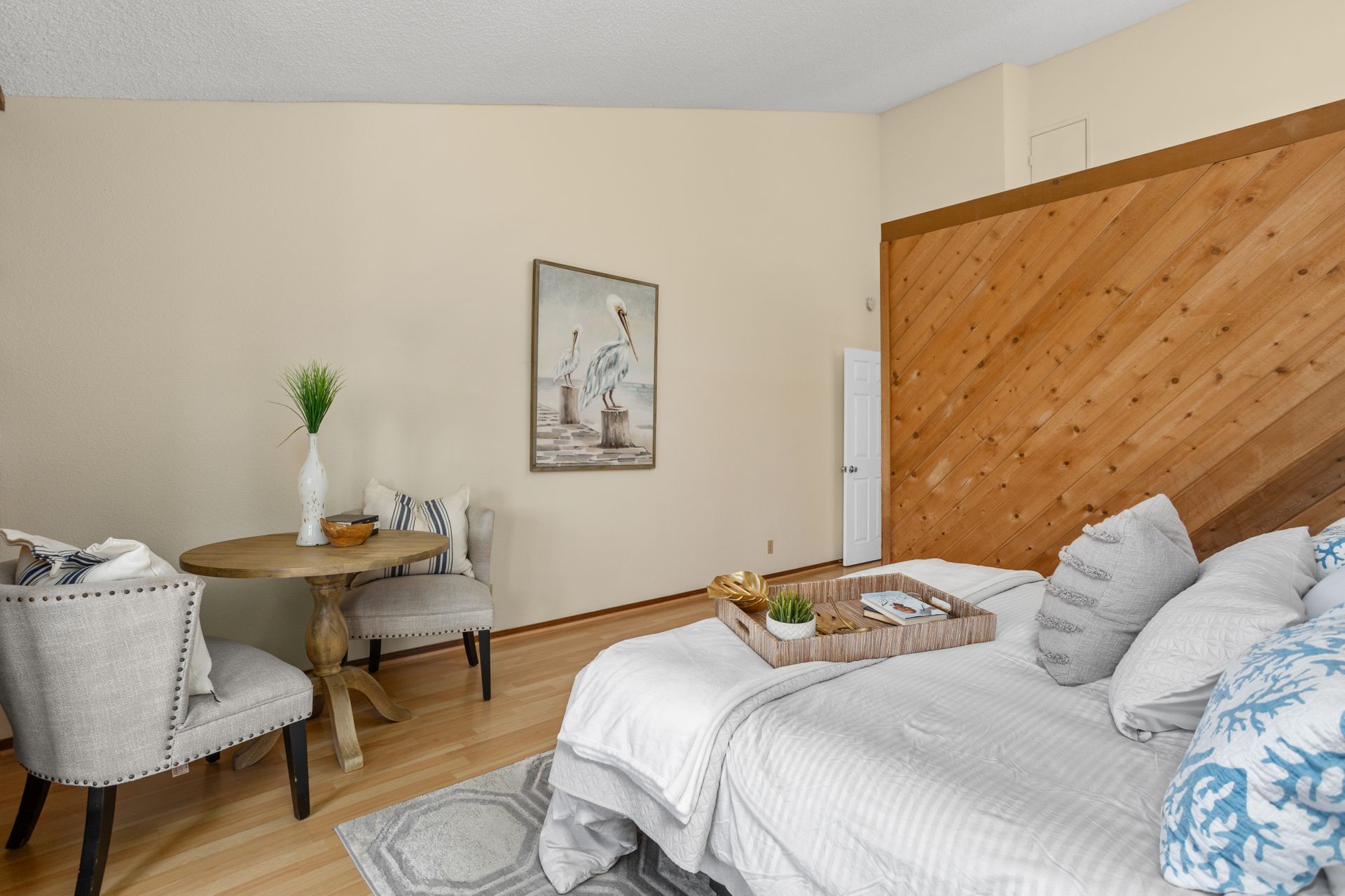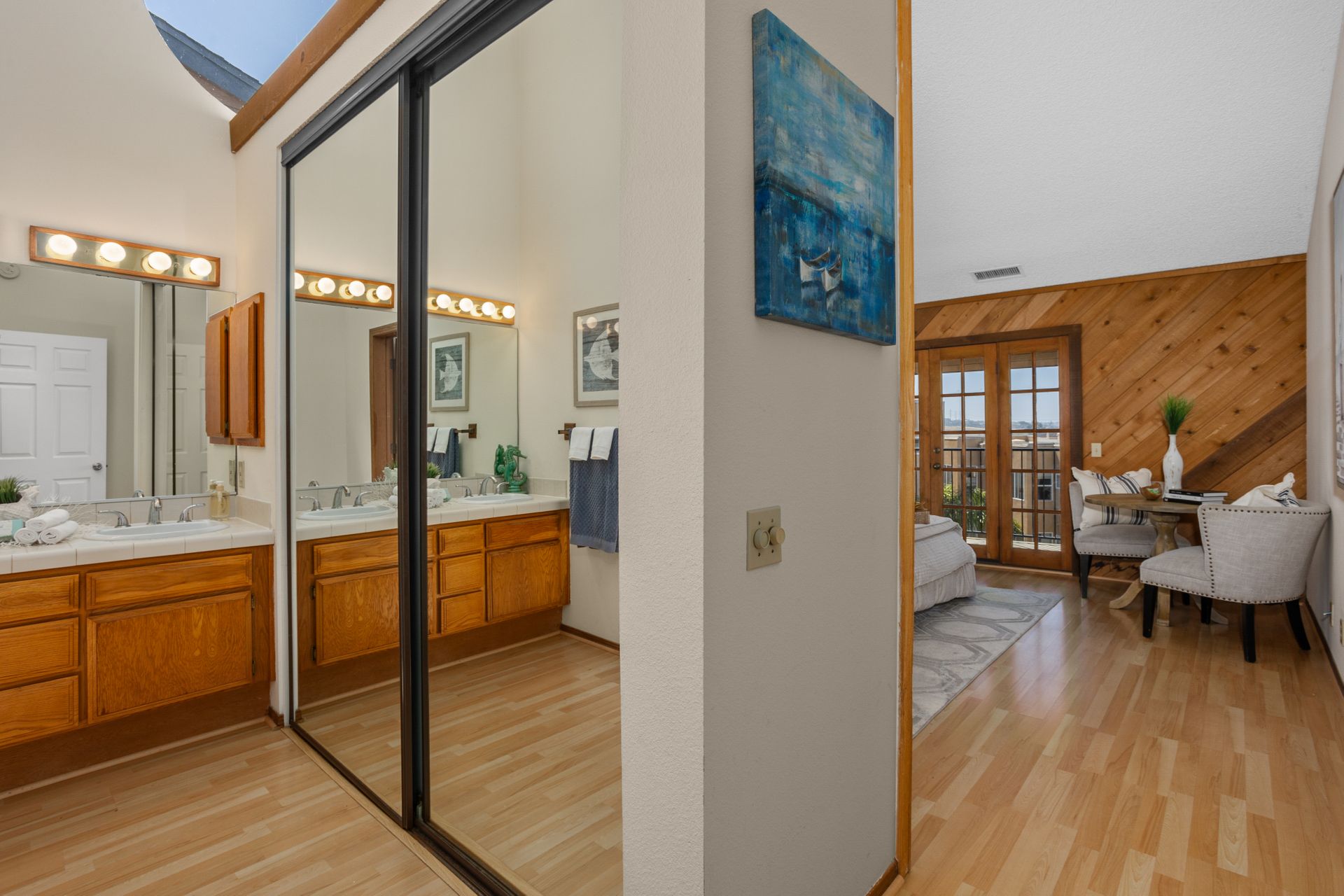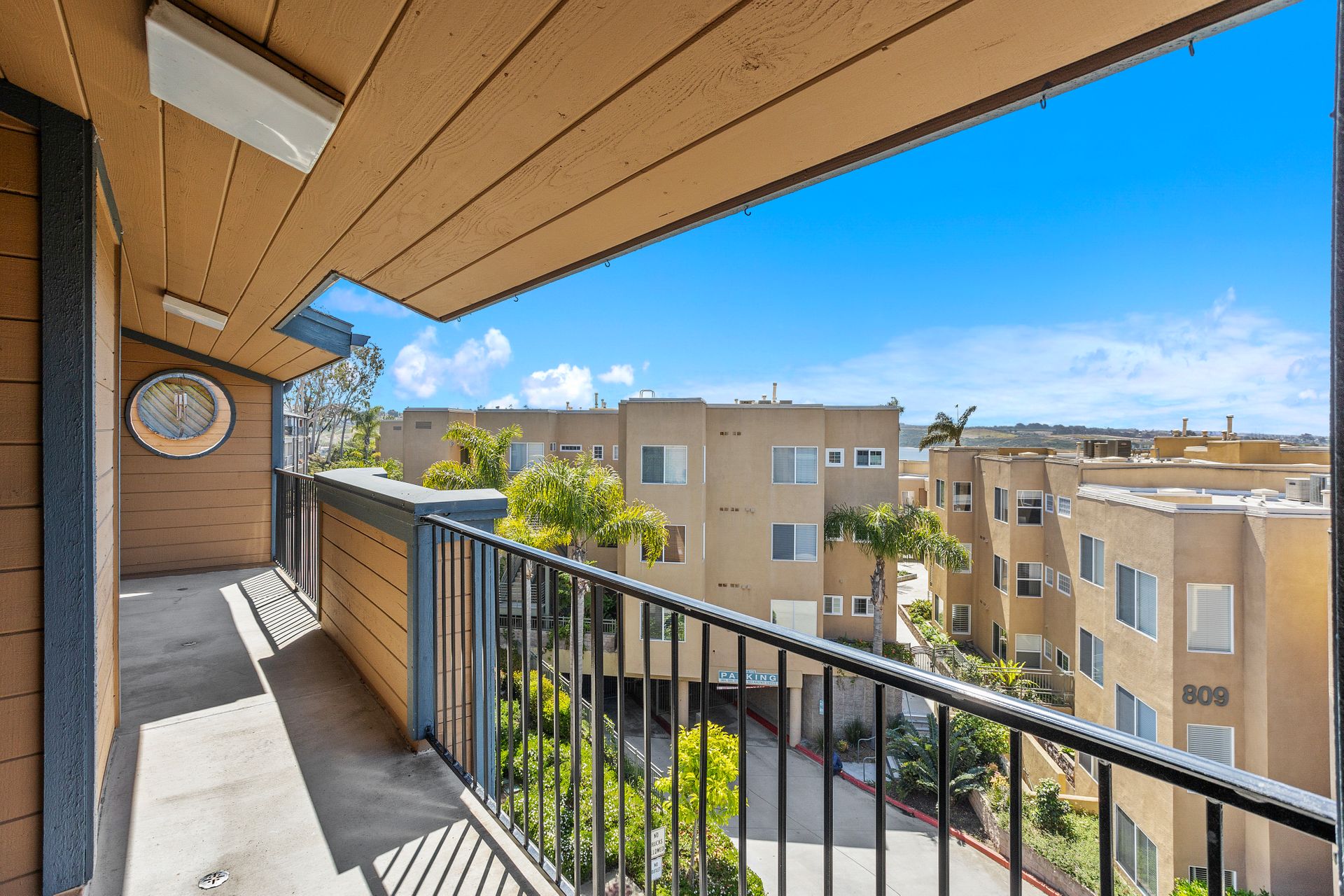Ocean Views from this Upper-Level End Unit in Gated Windsong Cove, west of the I-5! Enjoy abundant natural light and soaring vaulted ceilings in this inviting coastal retreat. Featuring two bedrooms plus a spacious loft, this home offers a flexible and open layout. The remodeled kitchen boasts granite countertops, stainless steel appliances and even a wine fridge—ideal for entertaining! It overlooks the expansive living room with a cozy fireplace and direct access to a large ocean-view balcony, creating a seamless indoor-outdoor living experience. The primary suite also opens to the balcony, offering stunning ocean views. Relax in the spa-like primary bathroom, complete with dual vanities and a soaking tub. Additional features include two one-car garages and an assigned uncovered parking spot.