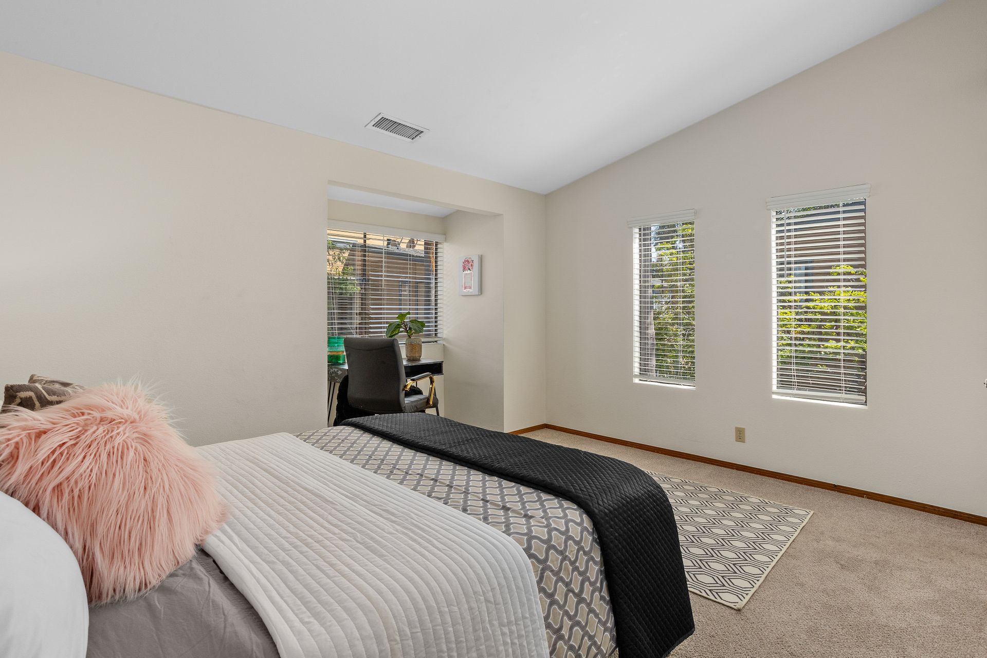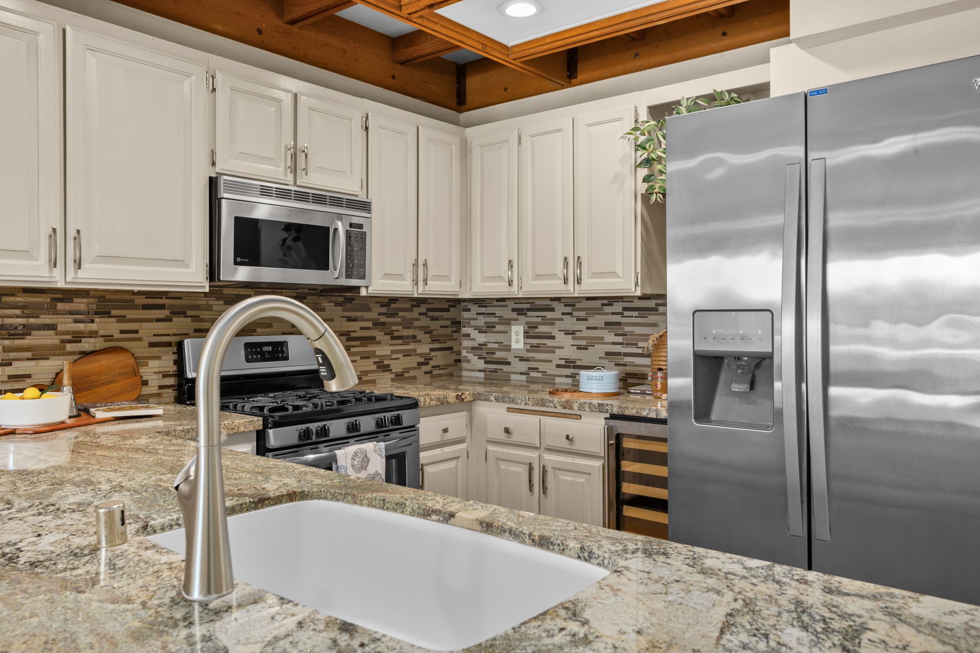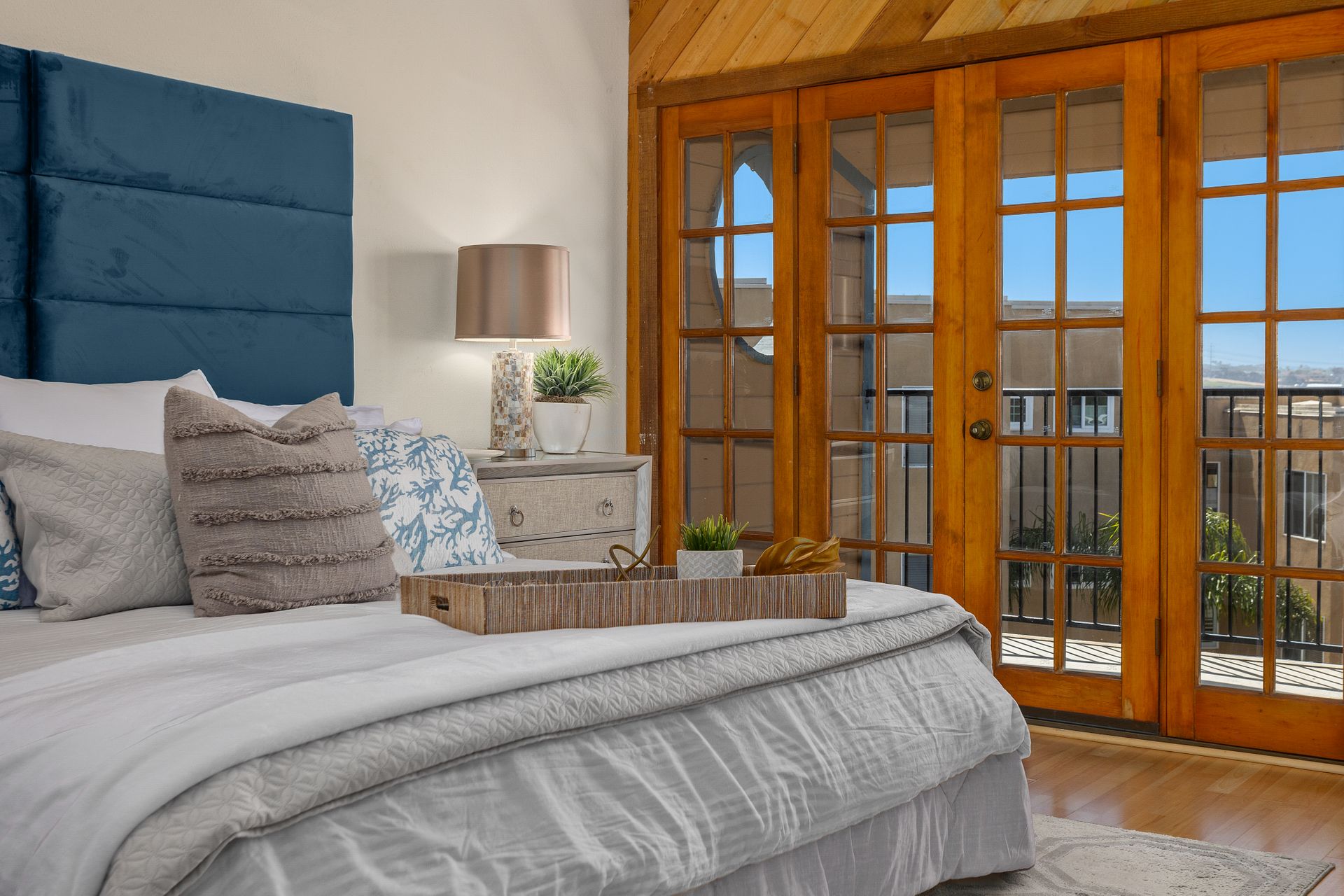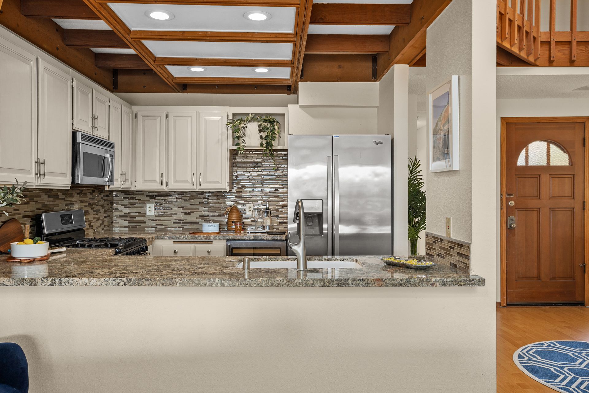 Ocean Views from this Upper-Level End Unit in Gated Windsong Cove, west of the I-5! Enjoy abundant natural light and soaring vaulted ceilings in this inviting coastal retreat. Featuring two bedrooms plus a spacious loft, this home offers a flexible and open layout. The remodeled kitchen boasts granite countertops, stainless steel appliances and even a wine fridge—ideal for entertaining! It overlooks the expansive living room with a cozy fireplace and direct access to a large ocean-view balcony, creating a seamless indoor-outdoor living experience. The primary suite also opens to the balcony, offering stunning ocean views. Relax in the spa-like primary bathroom, complete with dual vanities and a soaking tub. Additional features include two one-car garages and an assigned uncovered parking spot.