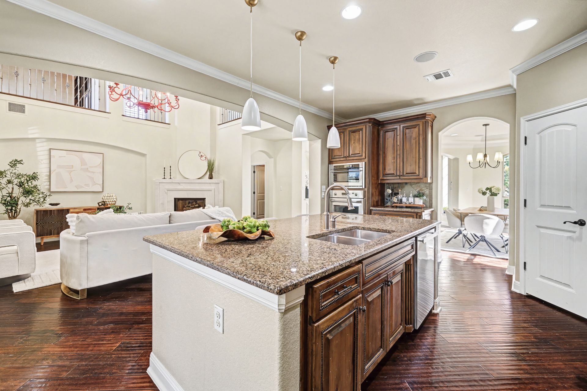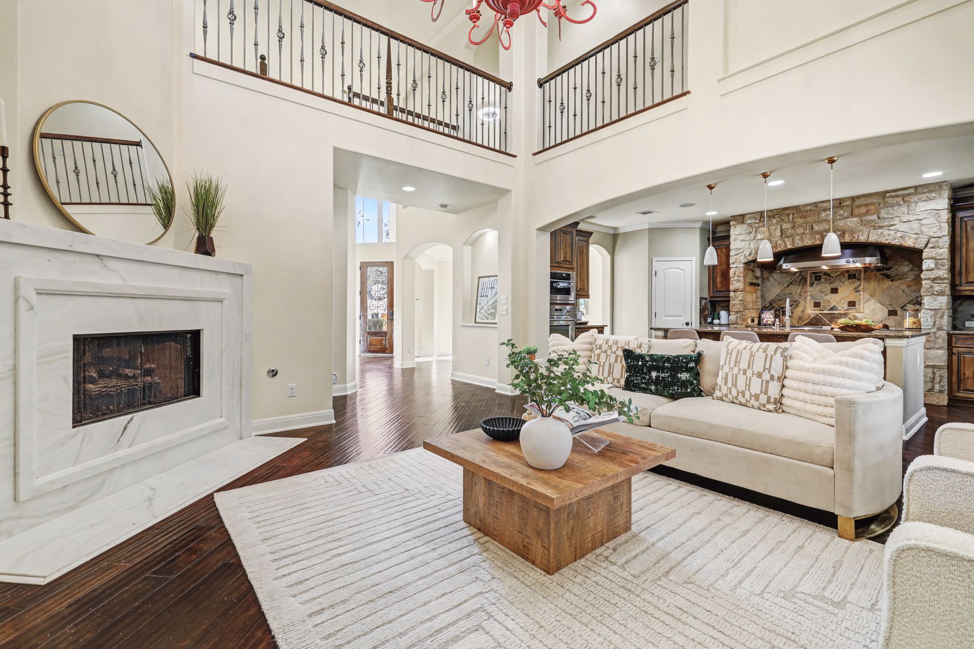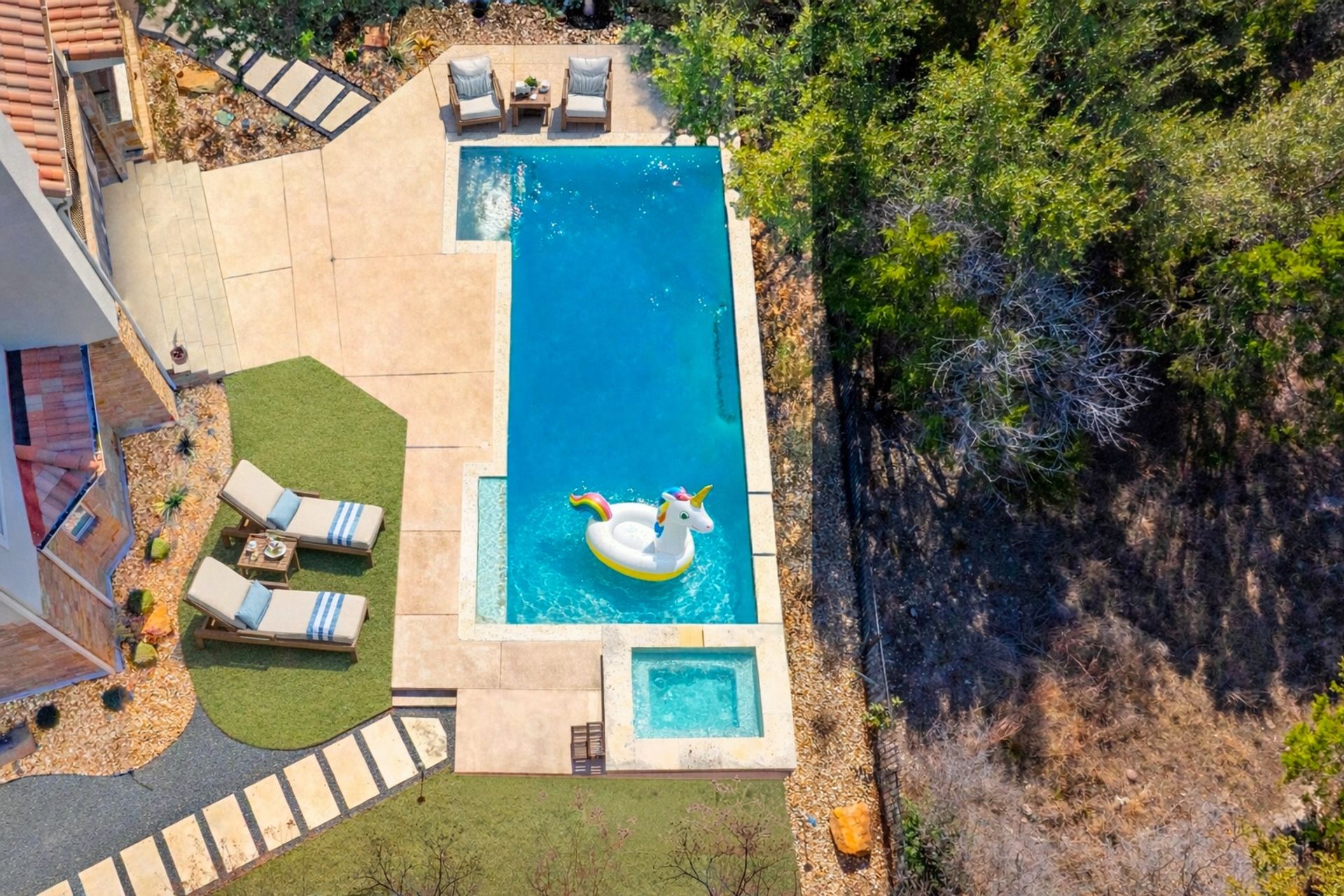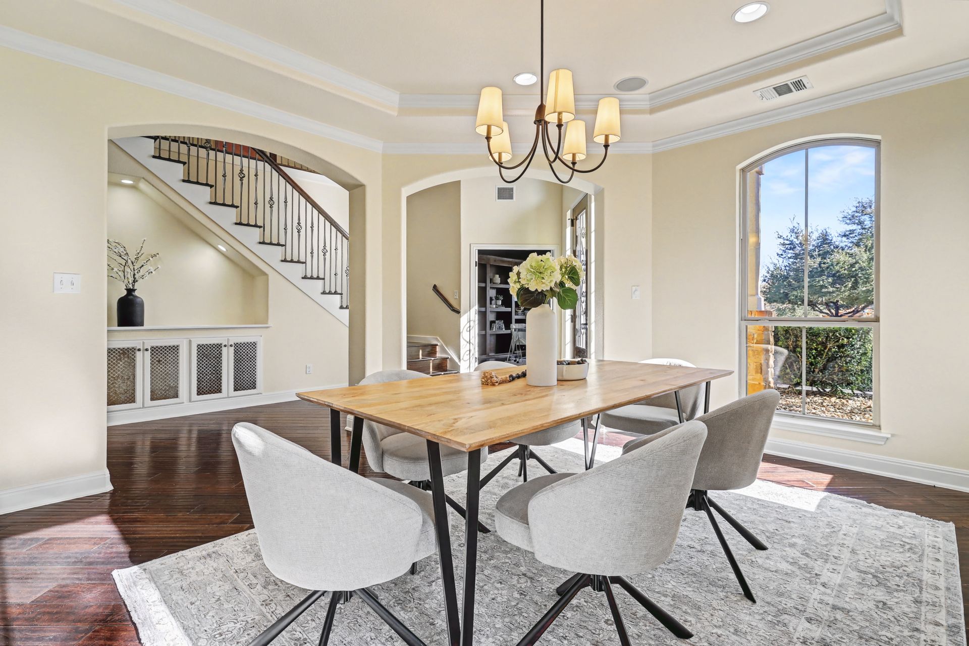 Set on a rare 70-foot-wide lot in a gated enclave of a quiet community with Blue Ribbon schools and Lake Austin access, this Italian-inspired executive residence offers approximately 4,225 square feet of refined living with exceptional privacy, backing to the federally protected Balcones Preserve. Designed to impress yet live effortlessly, the home features five bedrooms, a private office, flex space, media room, and a dramatic two-story living room filled with natural light.