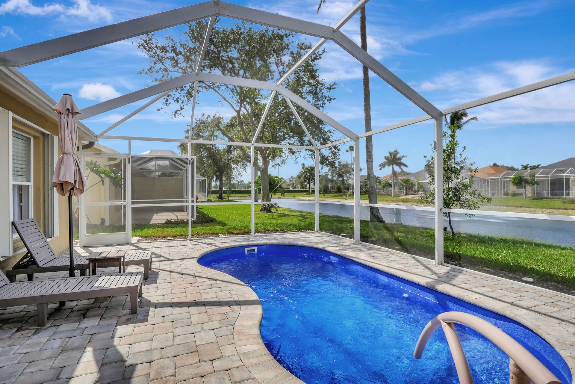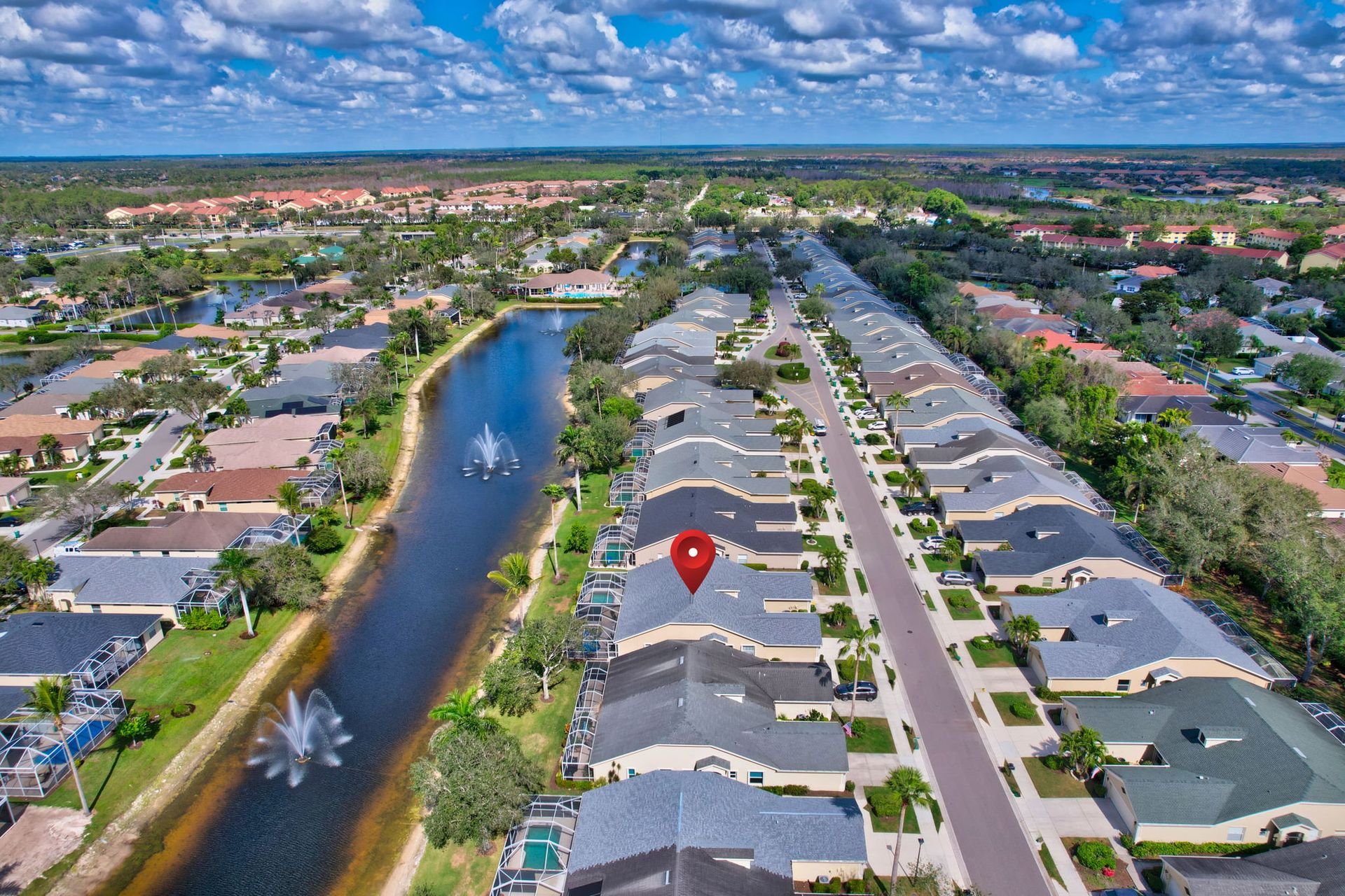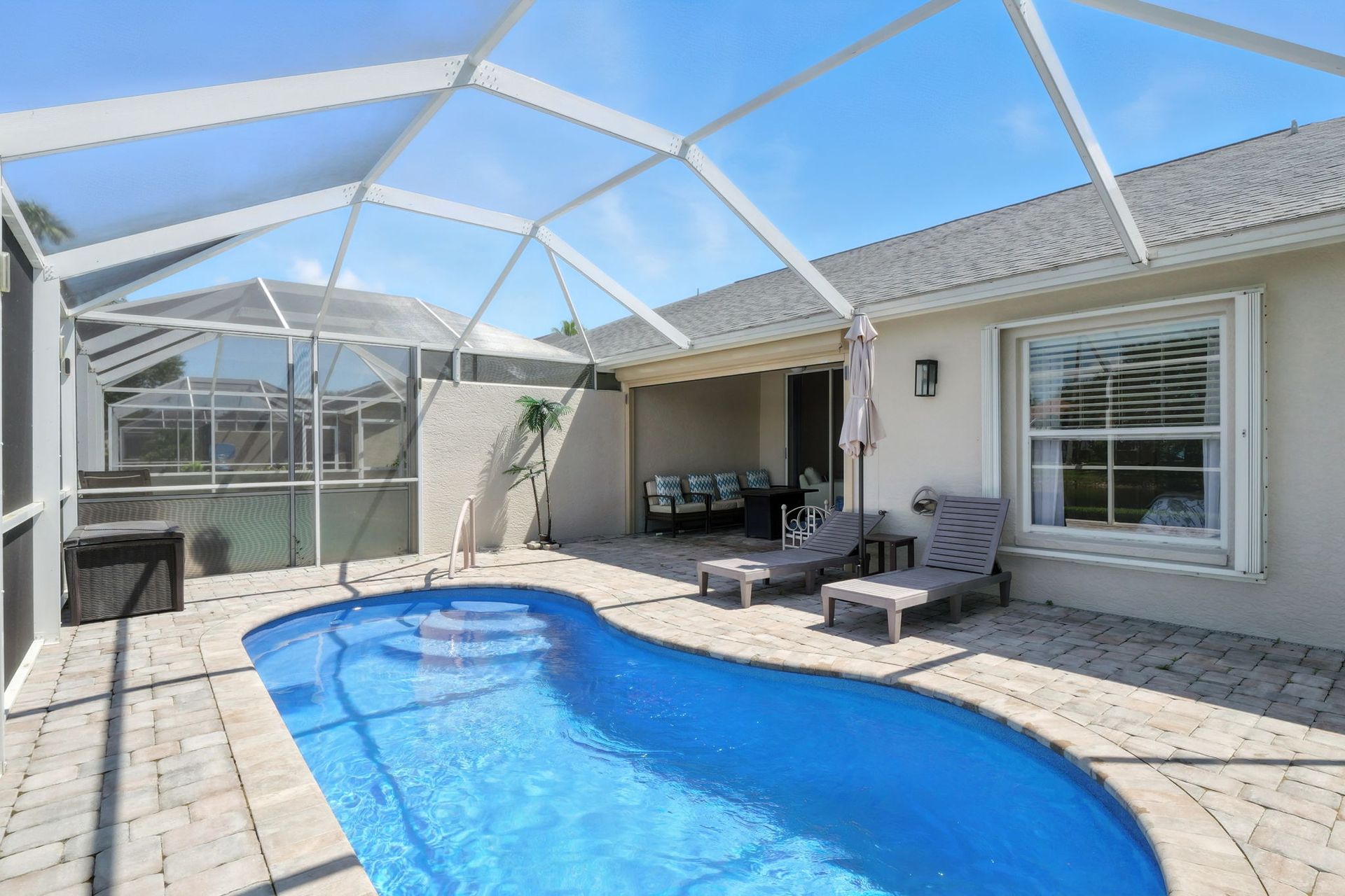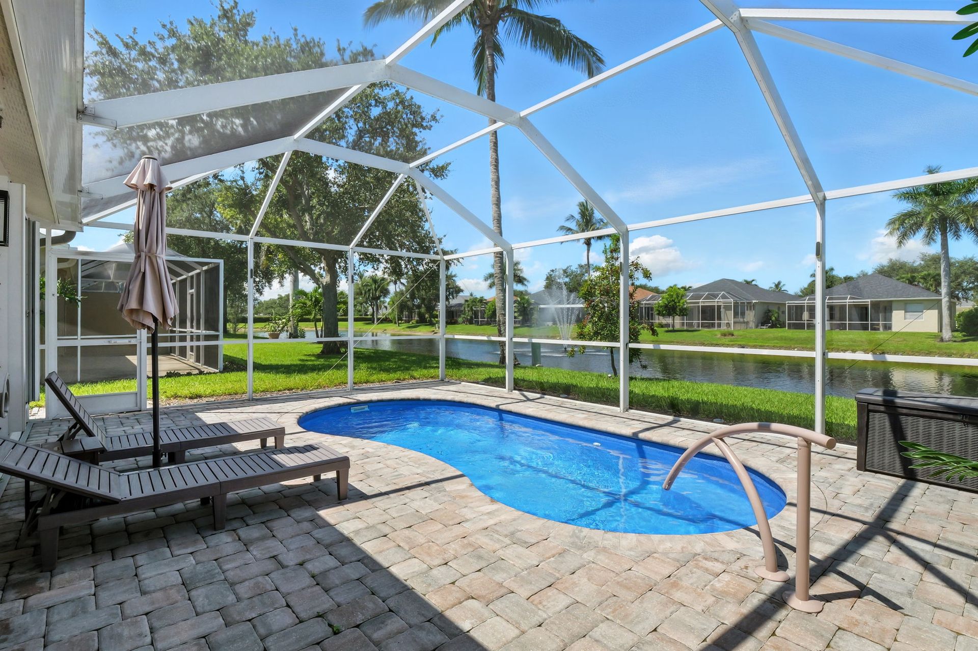 Presenting an exceptional pool home with water views located within the highly desirable gated community of Ibis Cove, Naples. This attached villa features a nearly new (2023) Latham Pool, complemented by a spacious patio with pavers and enclosed lanai. Enjoy tranquil lake views, serene fountains, and stunning sunsets. The kitchen includes newly installed quartz countertops, a custom wine bar, stainless steel appliances, a modern tile backsplash, and a pantry for ample storage. A split-bedroom floor plan offers three bedrooms, two bathrooms, and vaulted ceilings, enhancing comfort and privacy. The primary suite boasts a luxurious bathroom with custom tiling, a frameless shower featuring a rain shower head, double sinks, and dual walk-in closets. Additional upgrades include a newly advanced air conditioning system with a smart thermostat, as well as a two-car garage outfitted with air conditioning and a work bench. Hurricane shutters are installed throughout the residence, including a hurricane-rated electric lanai screen, ensuring peace of mind. Enjoy resort-style amenities, supported by low HOA fees. Amenities include a heated pool and spa, tennis, pickleball, a playground and spacious clubhouse. The property is conveniently situated minutes from top-rated A+ schools, world-class beaches, and provides easy access to I-75. Premier dining and shopping are nearby at Logan Landings and Founders Square.
