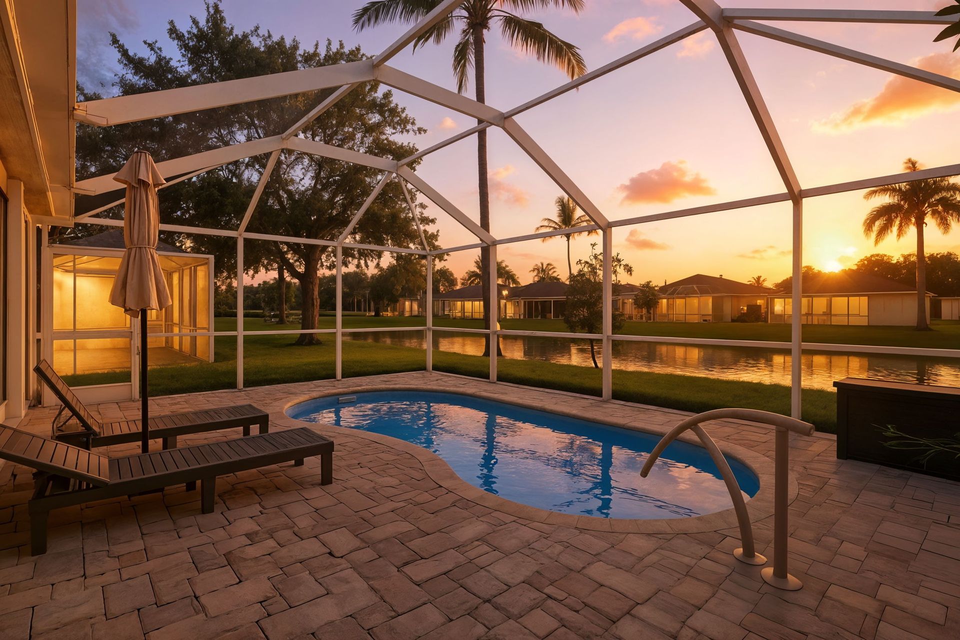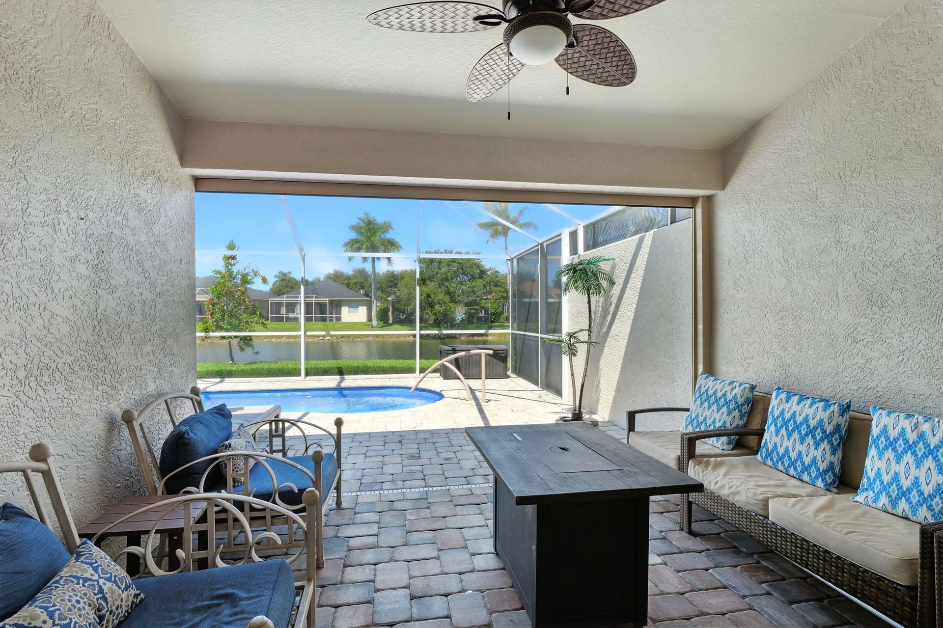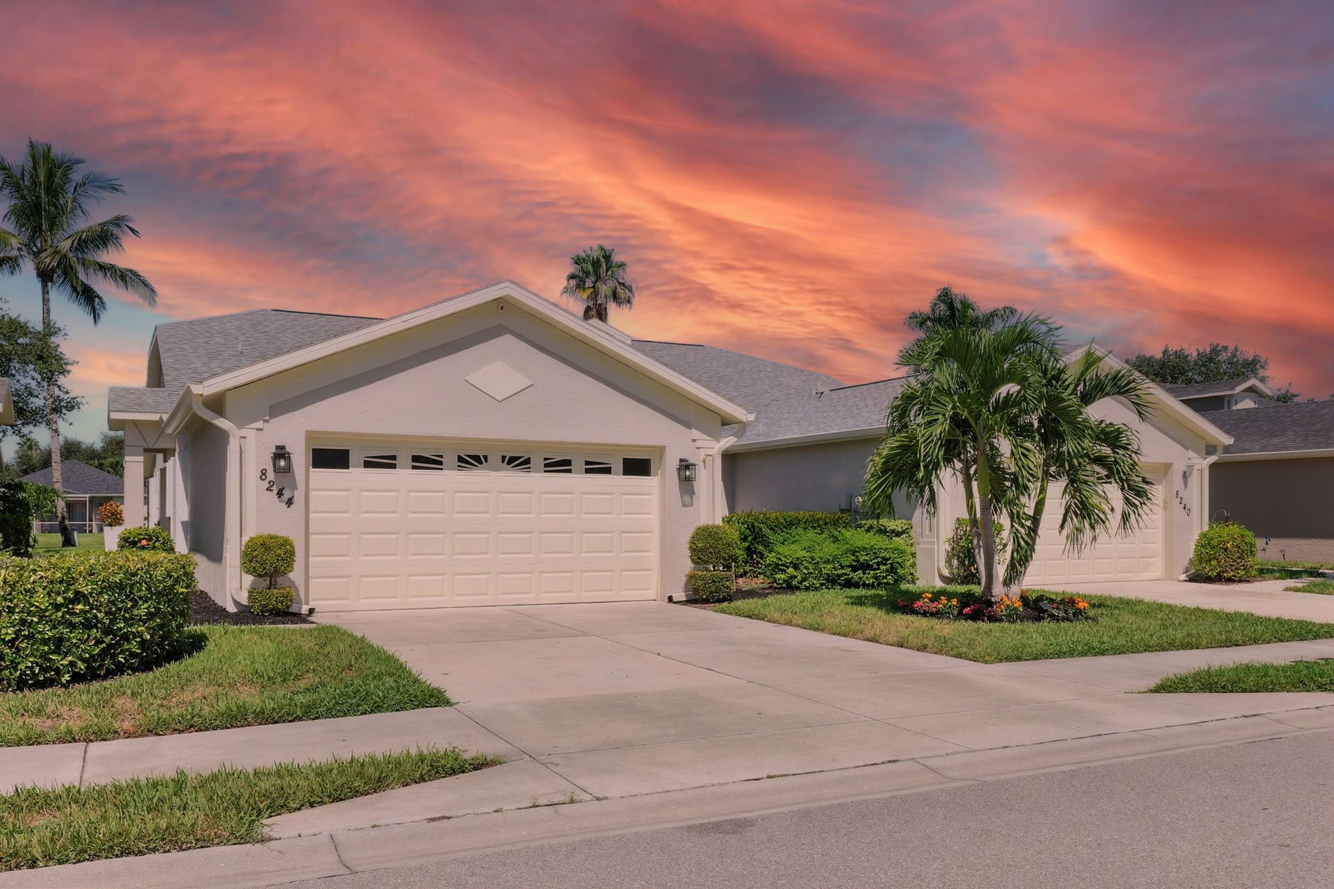 Presenting an exceptional pool home with water views located within the highly desirable gated community of Ibis Cove, Naples. This attached villa features a nearly new (2023) Latham Pool, complemented by a spacious patio with pavers and enclosed lanai. Enjoy tranquil lake views, serene fountains, and stunning sunsets. The kitchen includes newly installed quartz countertops, a custom wine bar, stainless steel appliances, a modern tile backsplash, and a pantry for ample storage. A split-bedroom floor plan offers three bedrooms, two bathrooms, and vaulted ceilings, enhancing comfort and privacy. The primary suite boasts a luxurious bathroom with custom tiling, a frameless shower featuring a rain shower head, double sinks, and dual walk-in closets. Additional upgrades include a newly advanced air conditioning system with a smart thermostat, as well as a two-car garage outfitted with air conditioning and a work bench. Hurricane shutters are installed throughout the residence, including a hurricane-rated electric lanai screen, ensuring peace of mind. Enjoy resort-style amenities, supported by low HOA fees. Amenities include a heated pool and spa, tennis, pickleball, a playground and spacious clubhouse. The property is conveniently situated minutes from top-rated A+ schools, world-class beaches, and provides easy access to I-75. Premier dining and shopping are nearby at Logan Landings and Founders Square.