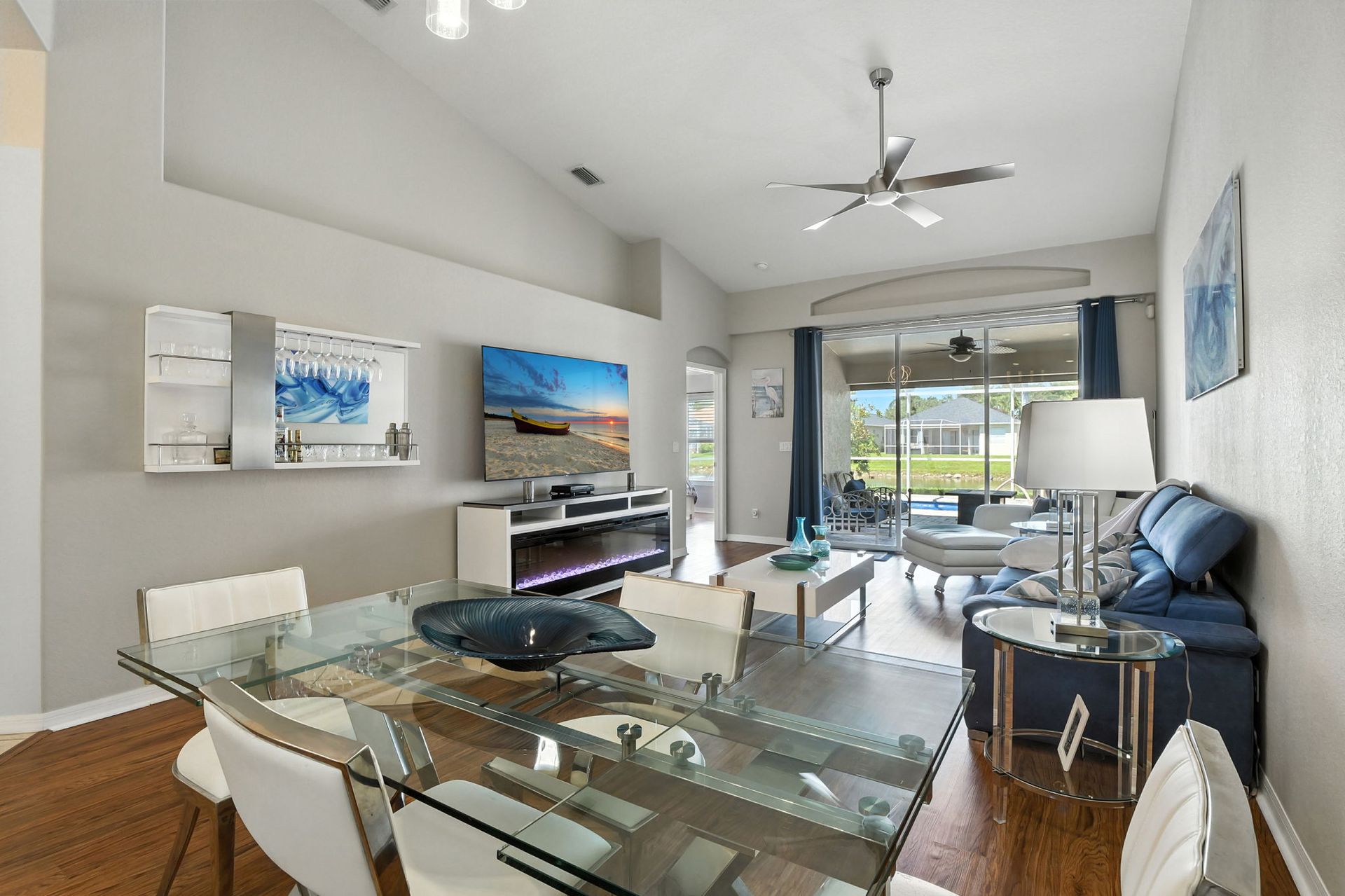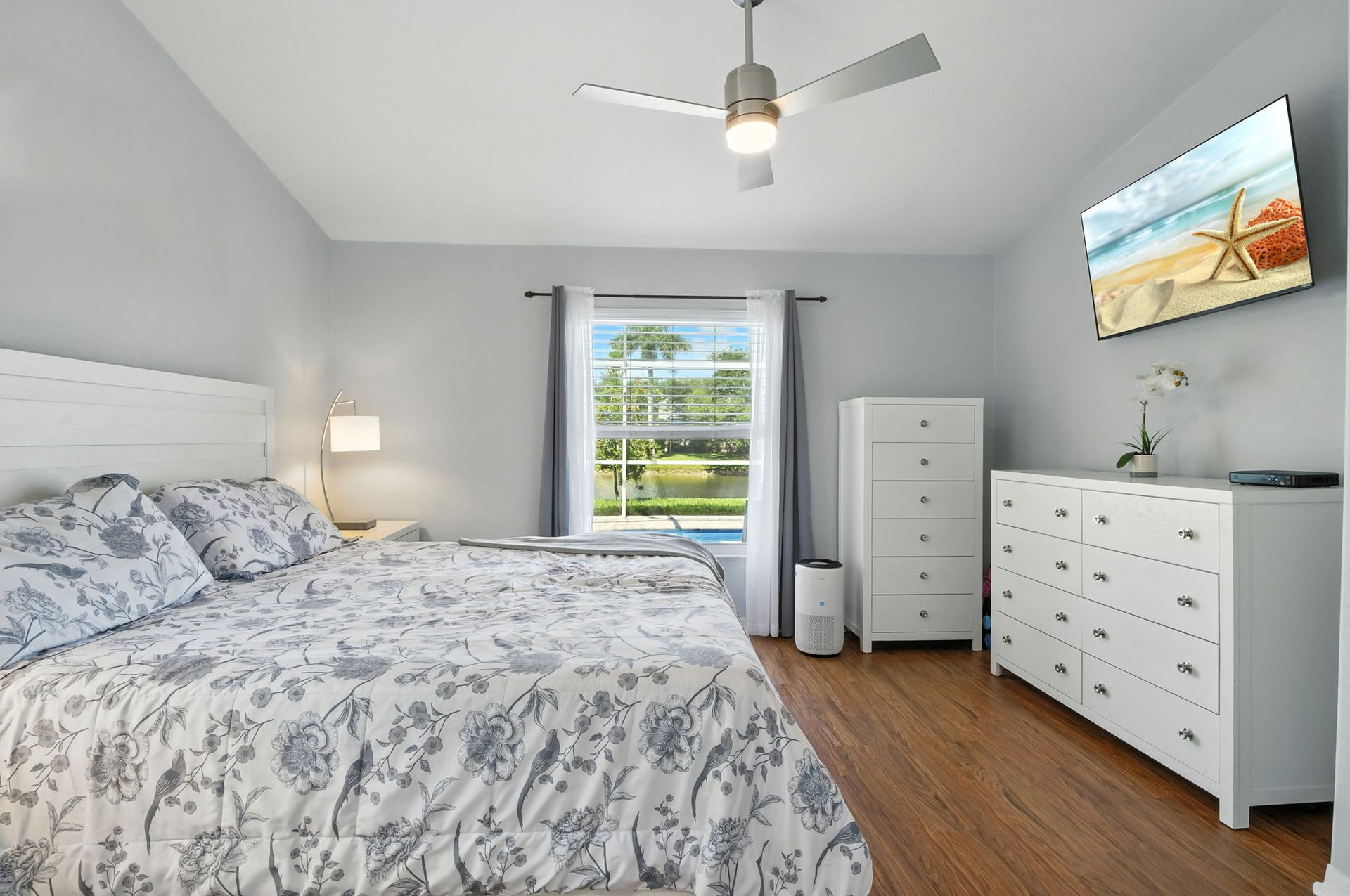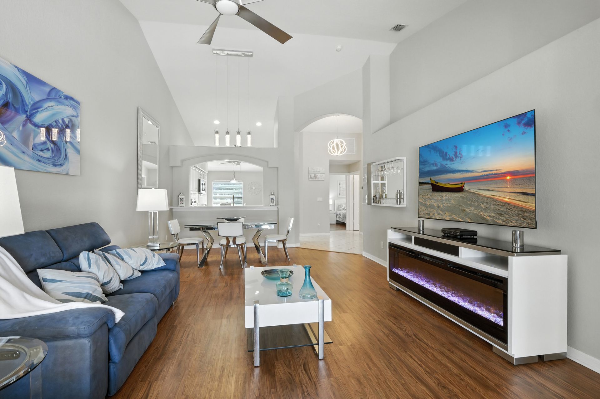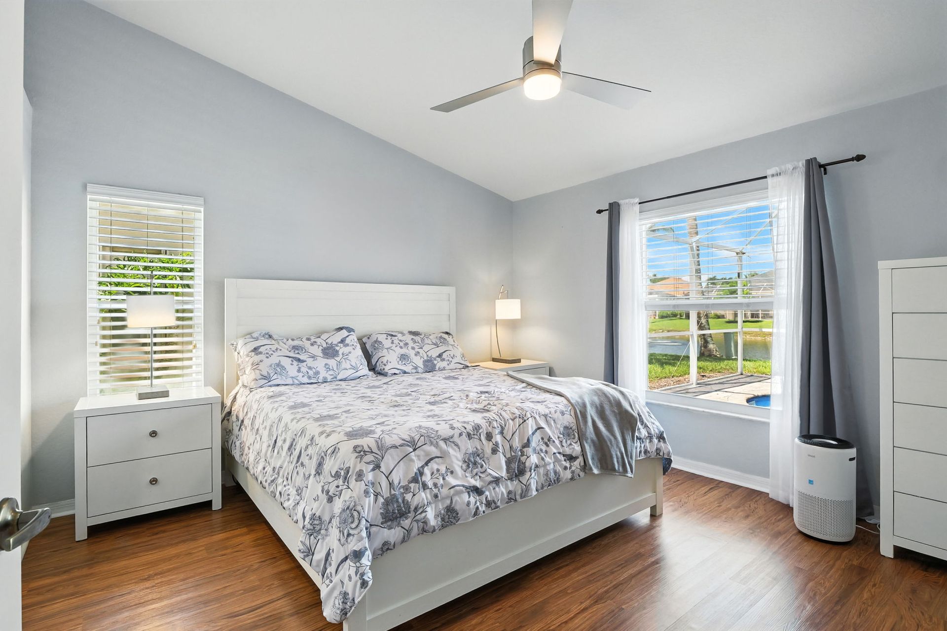 Presenting an exceptional pool home with water views located within the highly desirable gated community of Ibis Cove, Naples. This attached villa features a nearly new (2023) Latham Pool, complemented by a spacious patio with pavers and enclosed lanai. Enjoy tranquil lake views, serene fountains, and stunning sunsets. The kitchen includes newly installed quartz countertops, a custom wine bar, stainless steel appliances, a modern tile backsplash, and a pantry for ample storage. A split-bedroom floor plan offers three bedrooms, two bathrooms, and vaulted ceilings, enhancing comfort and privacy. The primary suite boasts a luxurious bathroom with custom tiling, a frameless shower featuring a rain shower head, double sinks, and dual walk-in closets. Additional upgrades include a newly advanced air conditioning system with a smart thermostat, as well as a two-car garage outfitted with air conditioning and a work bench. Hurricane shutters are installed throughout the residence, including a hurricane-rated electric lanai screen, ensuring peace of mind. Enjoy resort-style amenities, supported by low HOA fees. Amenities include a heated pool and spa, tennis, pickleball, a playground and spacious clubhouse. The property is conveniently situated minutes from top-rated A+ schools, world-class beaches, and provides easy access to I-75. Premier dining and shopping are nearby at Logan Landings and Founders Square.