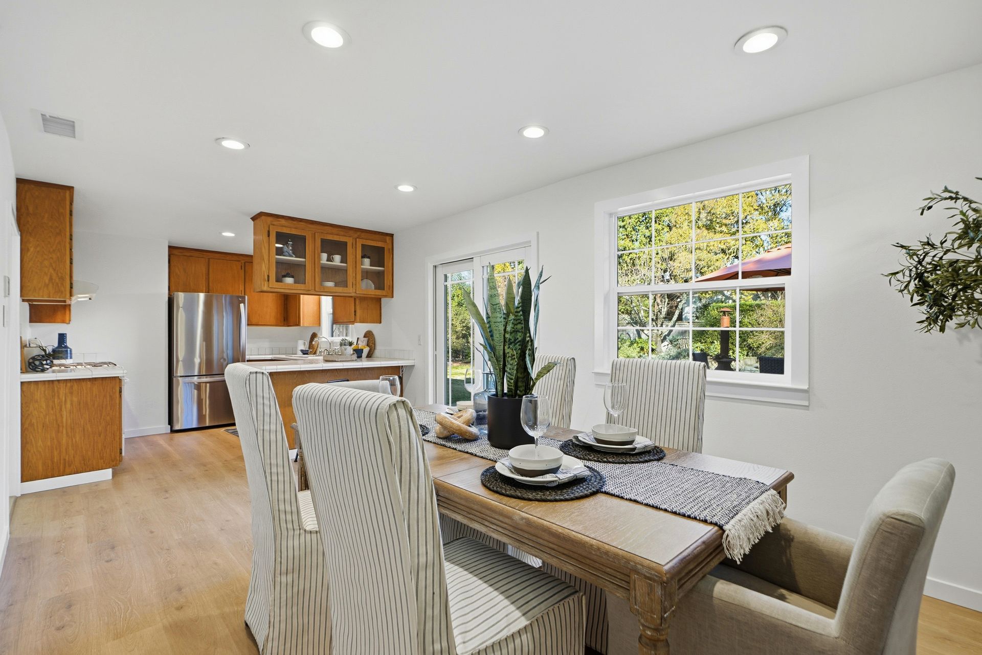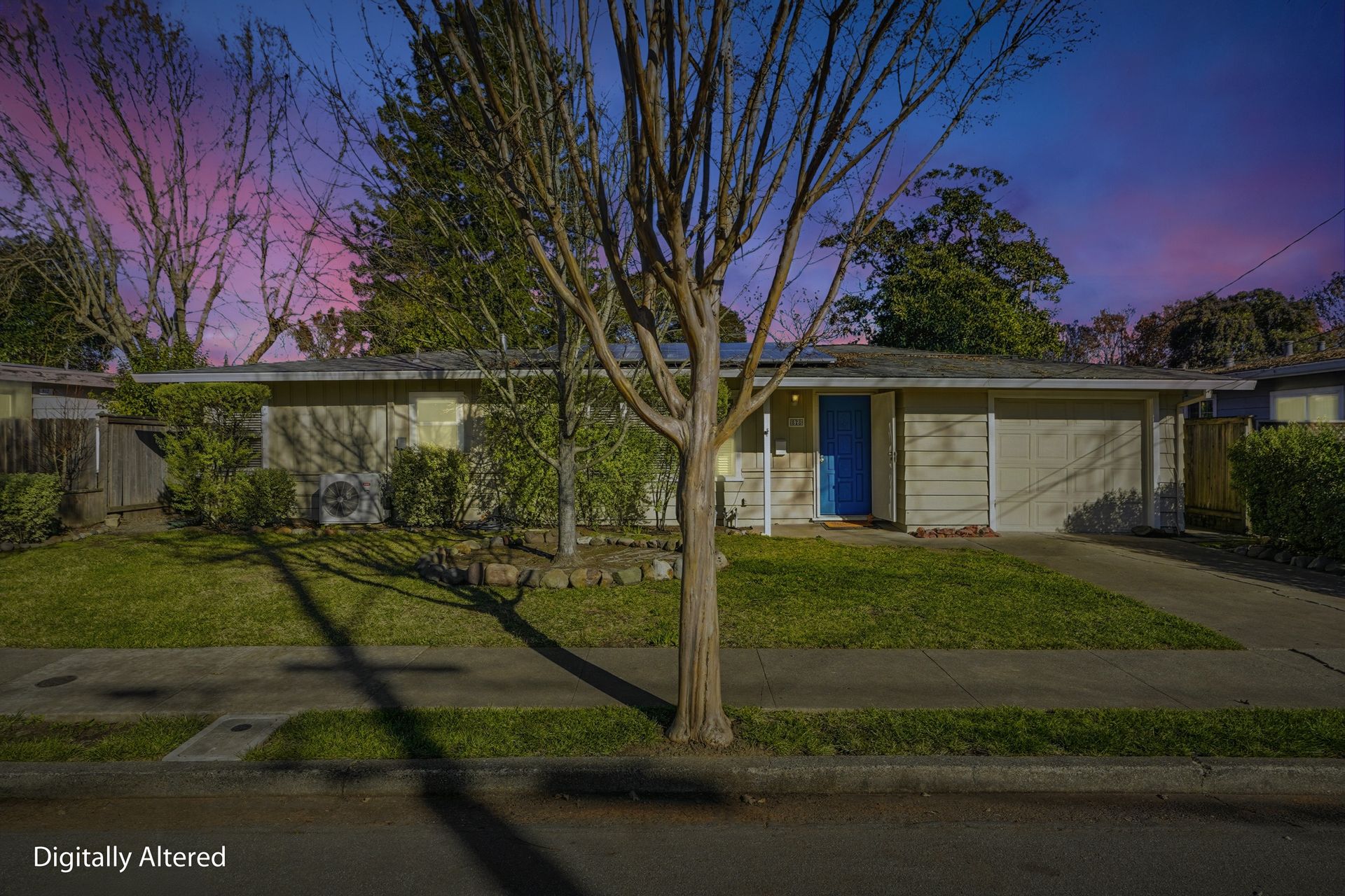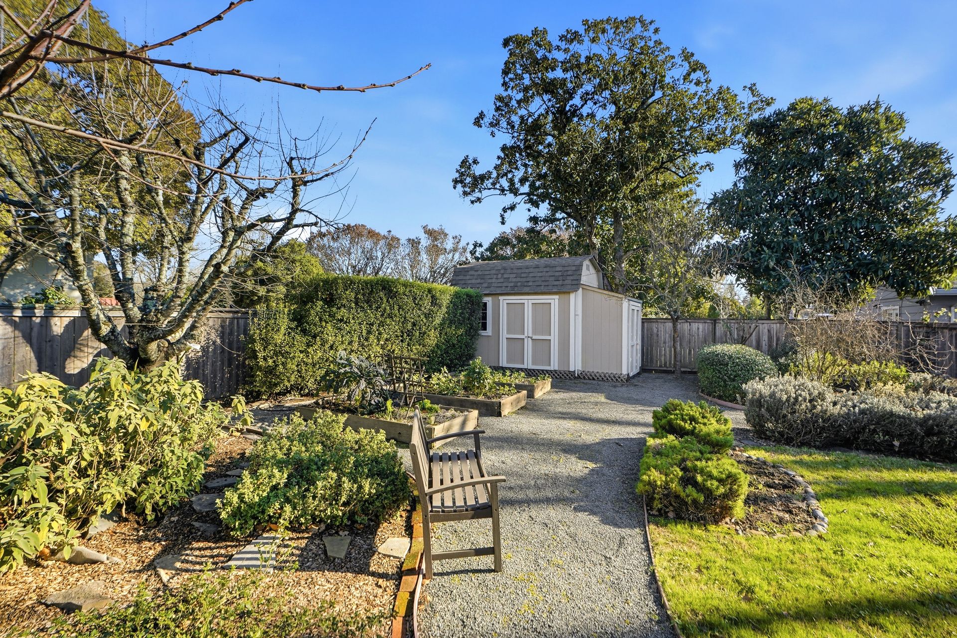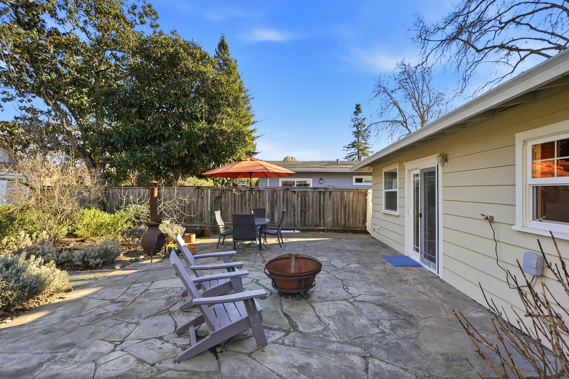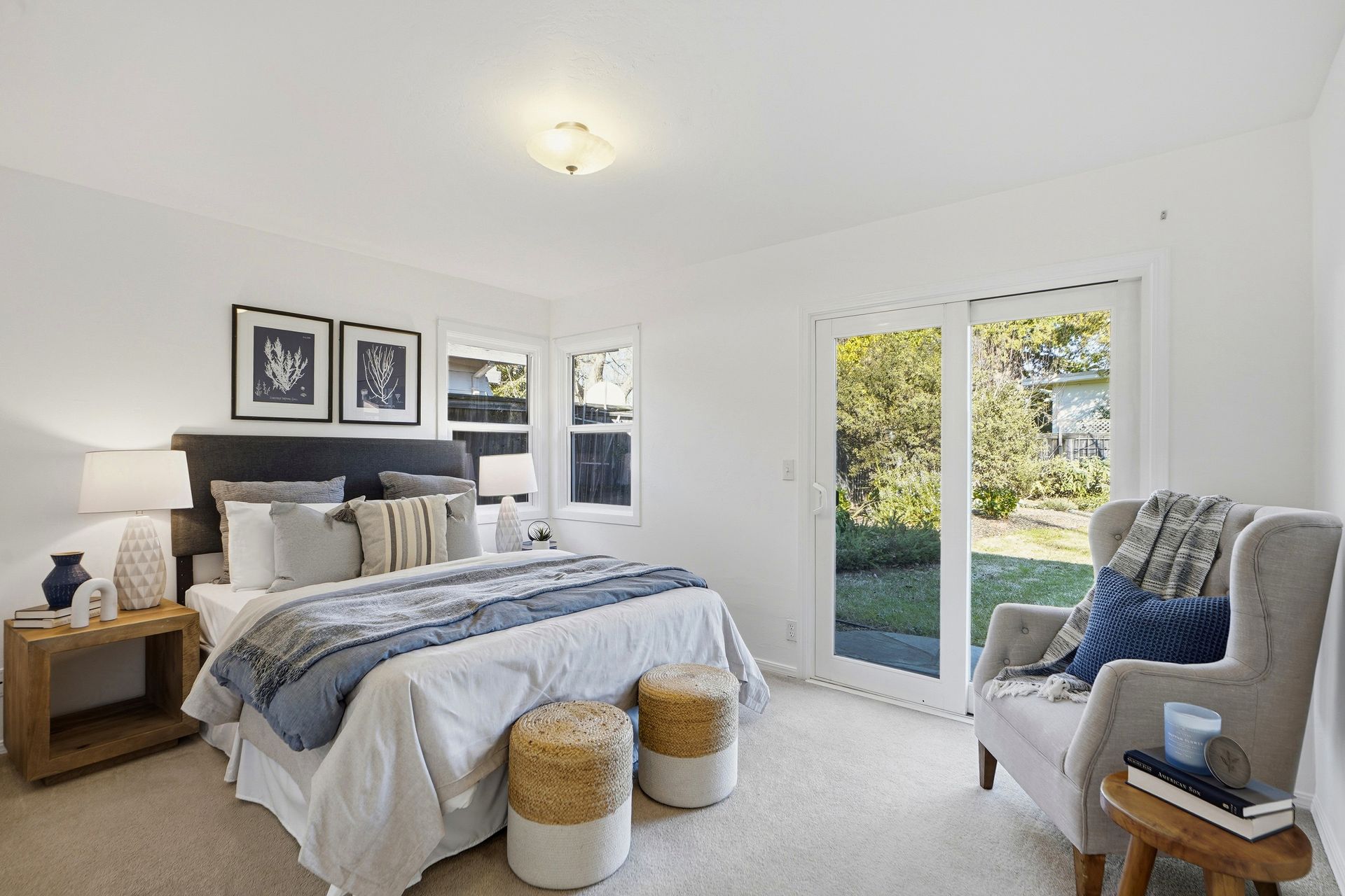 Welcome to this single-story home offering three bedrooms and a beautifully remodeled bathroom. Enjoy a cozy living room and a light-filled kitchen and dining area with sliding glass doors opening to an expansive, sunny, and private backyard. Outdoor highlights include a paver-style patio, raised garden beds, fruit trees, a lawn area, and a walking path leading to a large, barn-style storage shed and a garden shed. The largest of the bedrooms looks out to the backyard and features a slider that brings in abundant natural light and garden views. Additional features include dual-pane windows, a newer roof, owned solar panels, and central heating and air provided by an efficient electric heat pump. Enjoy being conveniently located near Howarth Park, Spring Lake, Whole Foods, and Montgomery Village.