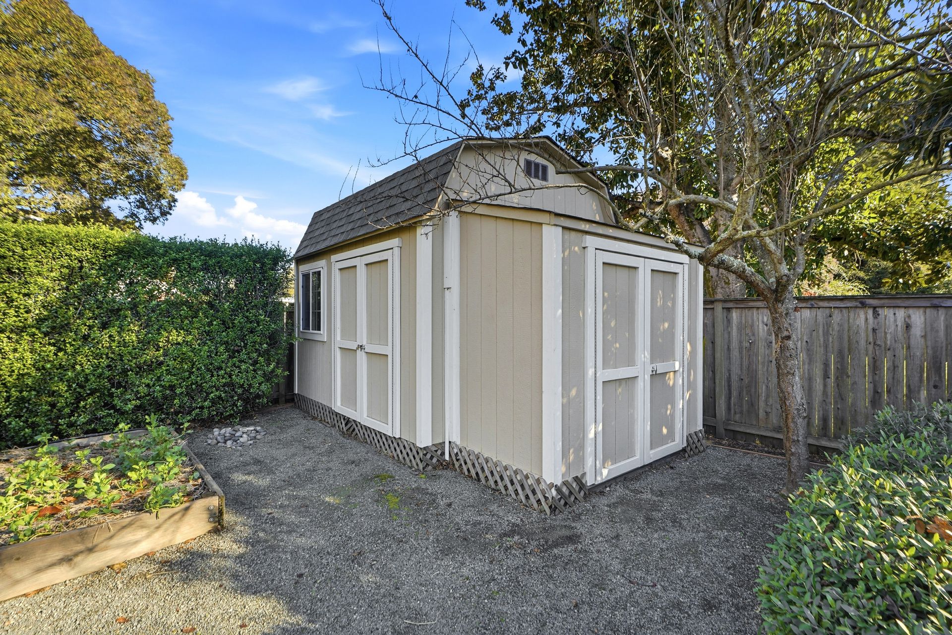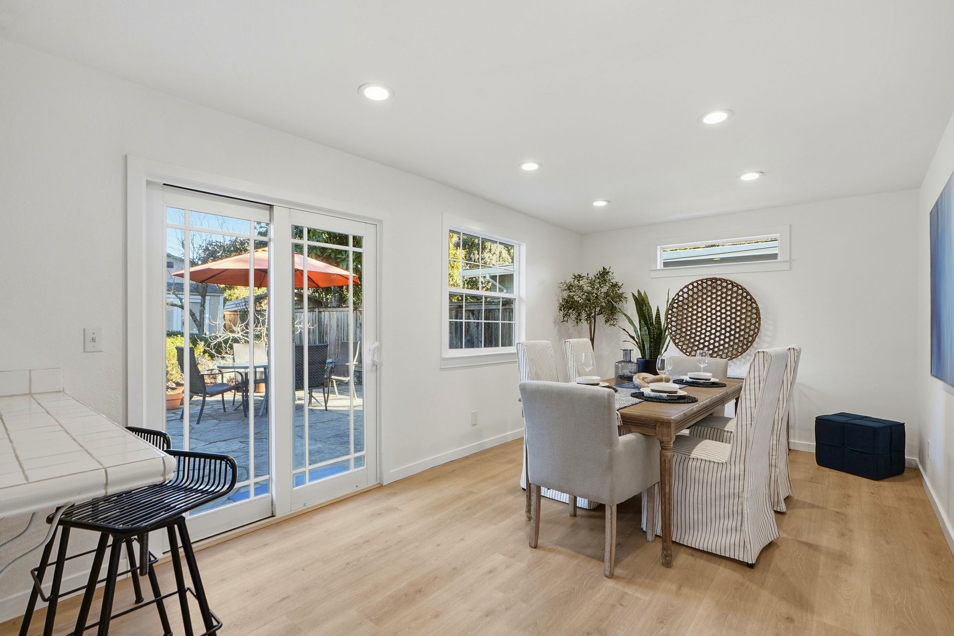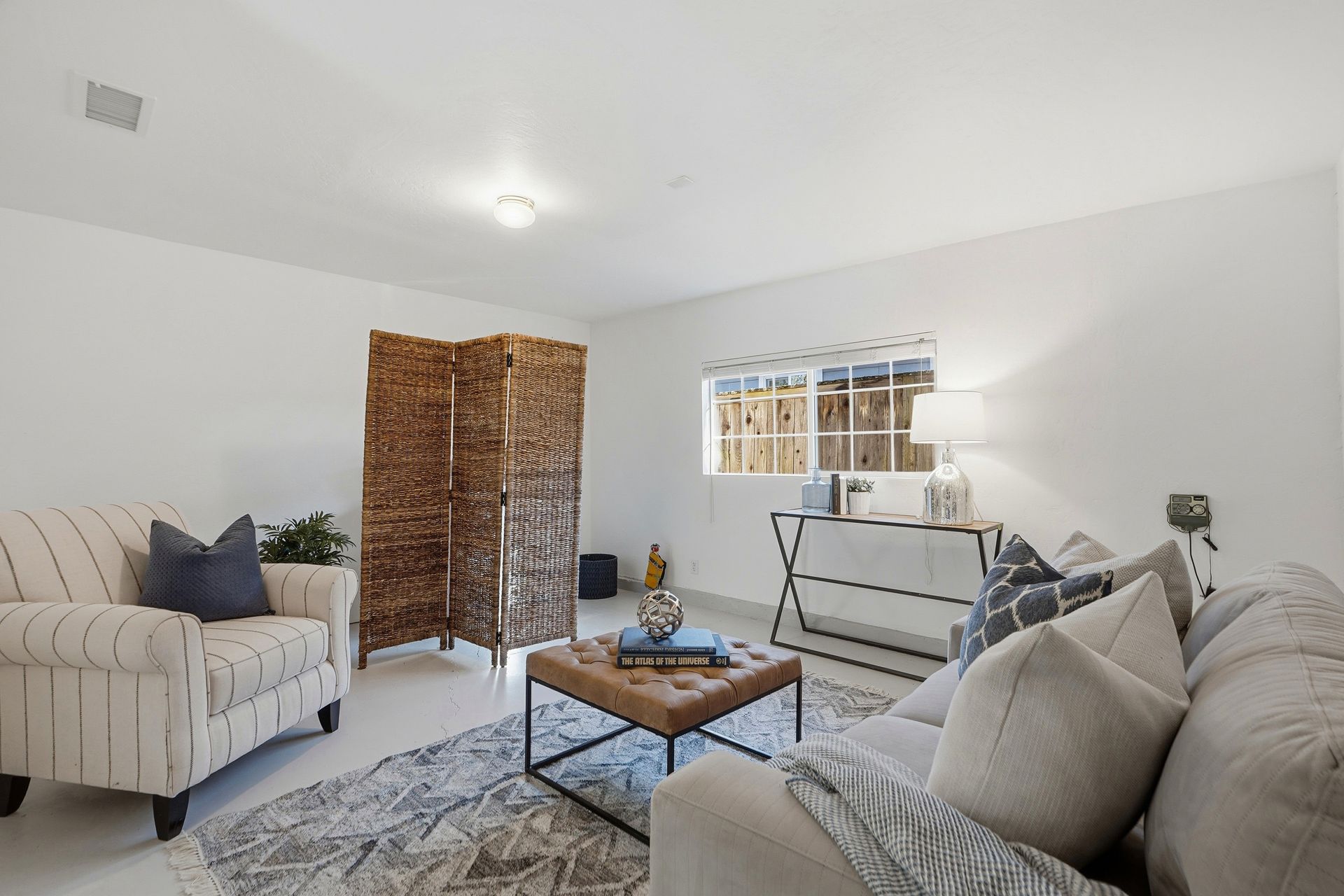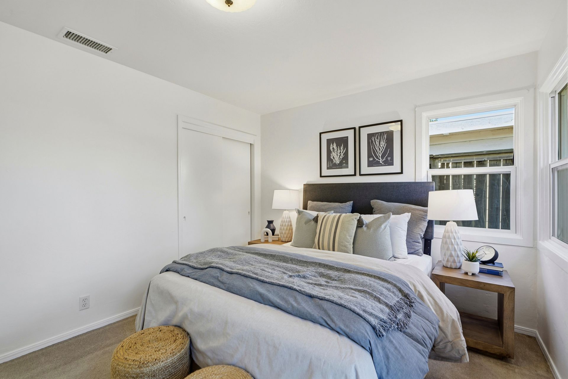 Welcome to this single-story home offering three bedrooms and a beautifully remodeled bathroom. Enjoy a cozy living room and a light-filled kitchen and dining area with sliding glass doors opening to an expansive, sunny, and private backyard. Outdoor highlights include a paver-style patio, raised garden beds, fruit trees, a lawn area, and a walking path leading to a large, barn-style storage shed and a garden shed. The largest of the bedrooms looks out to the backyard and features a slider that brings in abundant natural light and garden views. Additional features include dual-pane windows, a newer roof, owned solar panels, and central heating and air provided by an efficient electric heat pump. Enjoy being conveniently located near Howarth Park, Spring Lake, Whole Foods, and Montgomery Village.