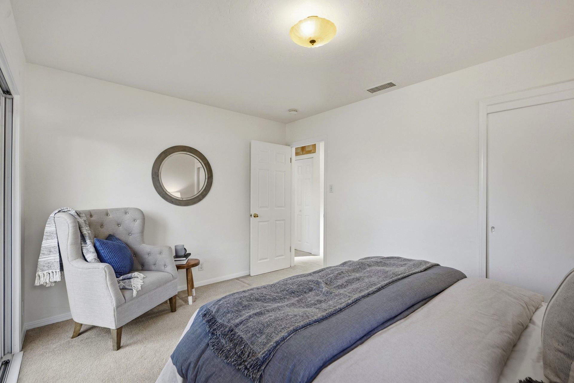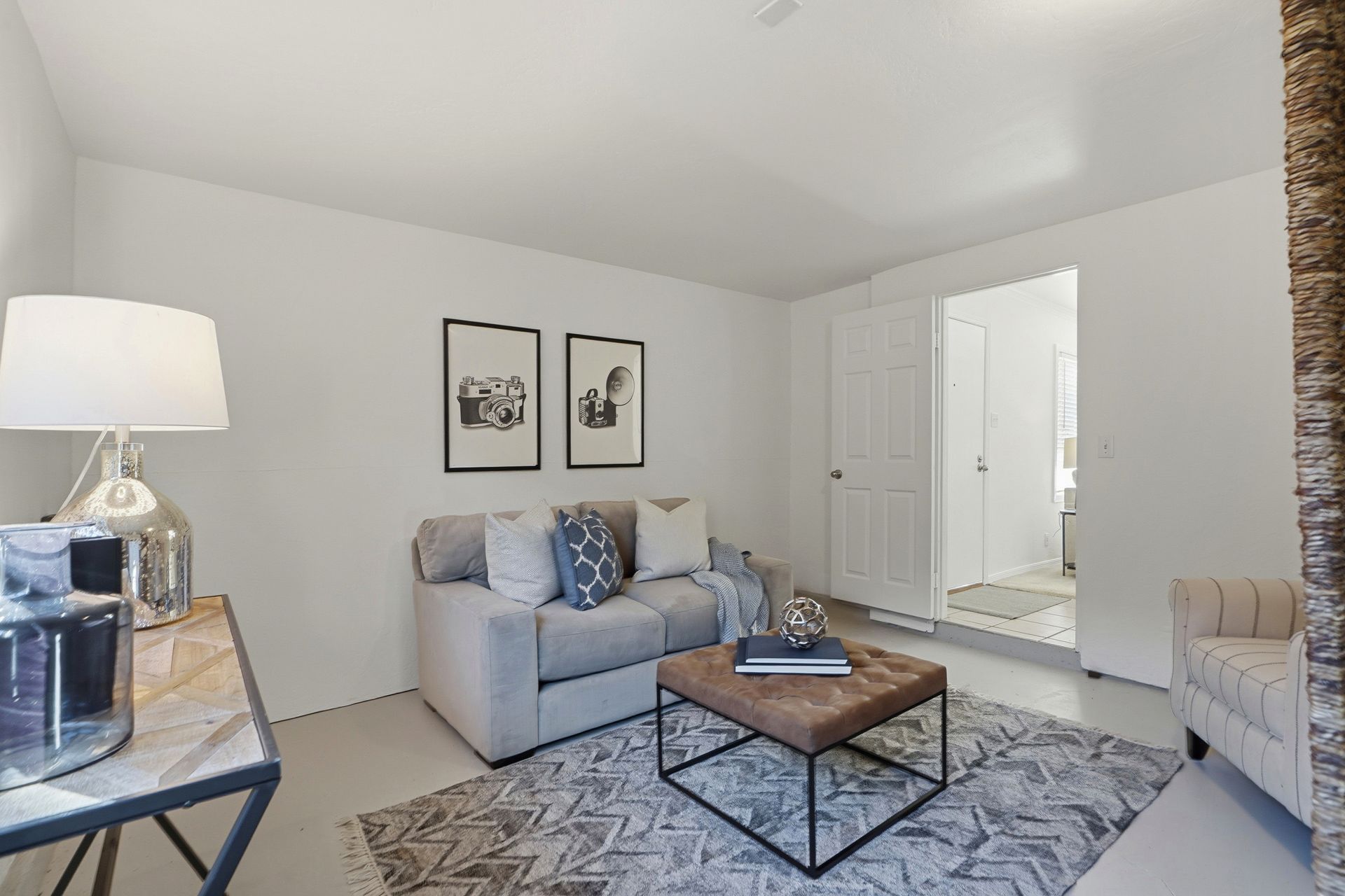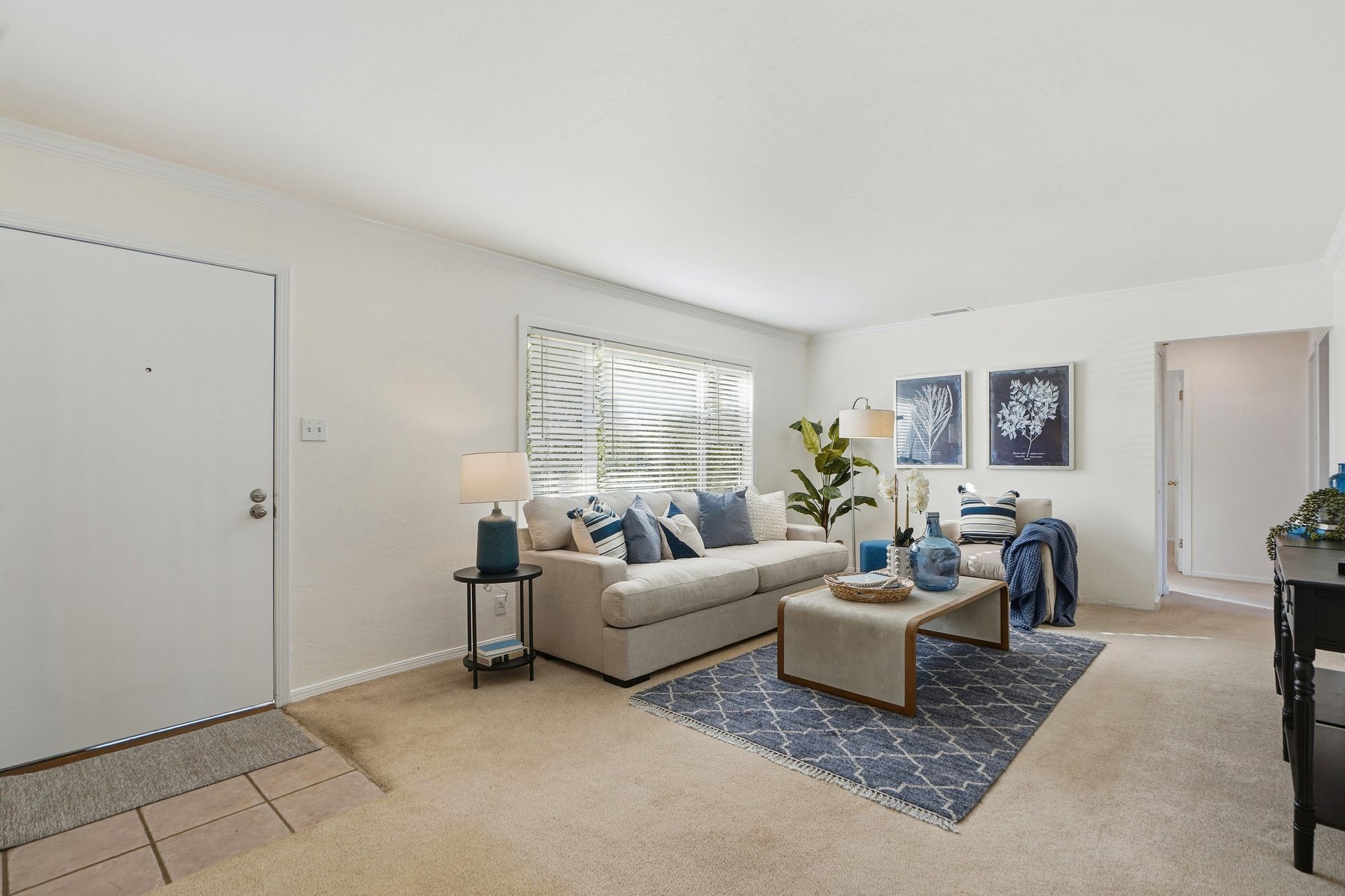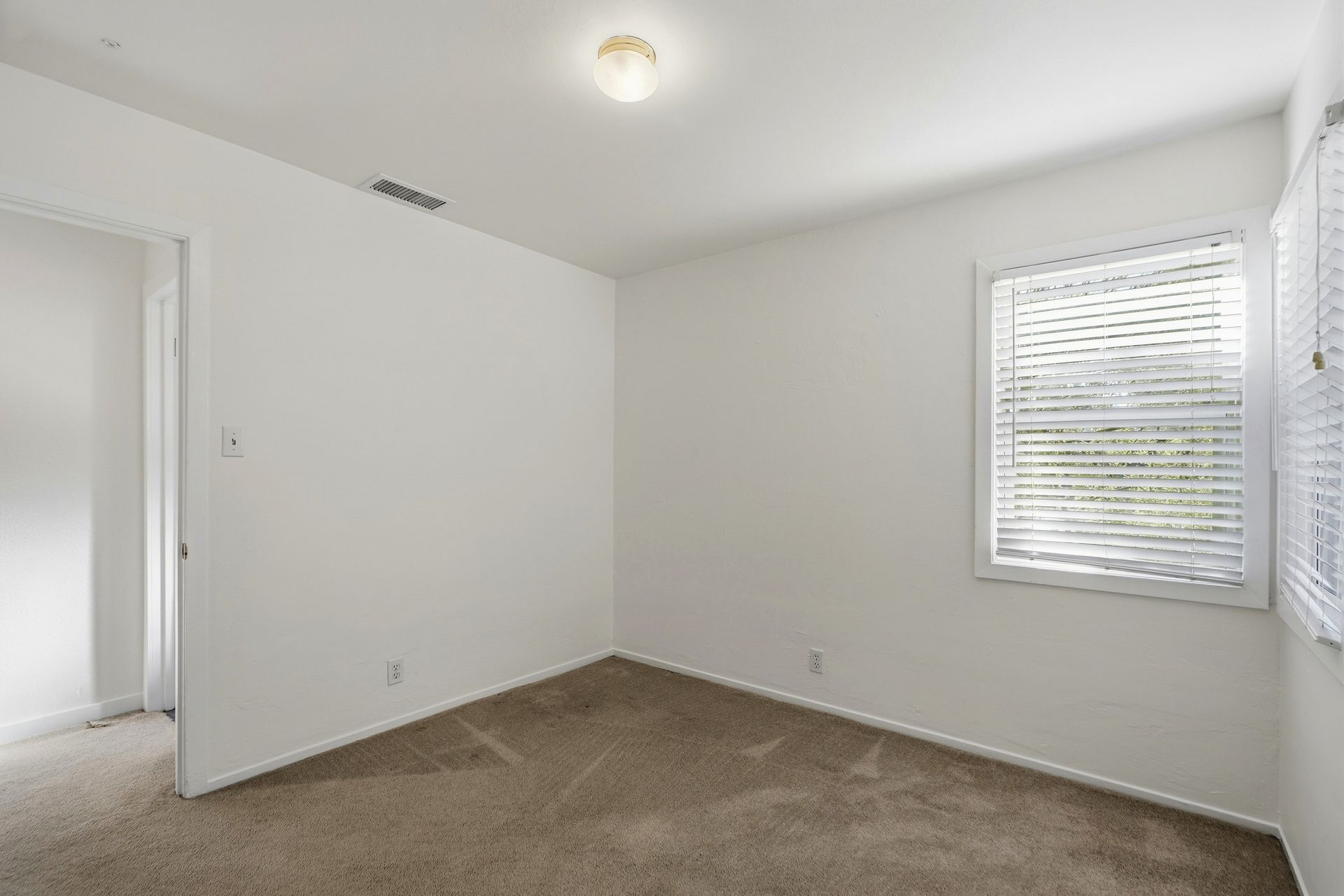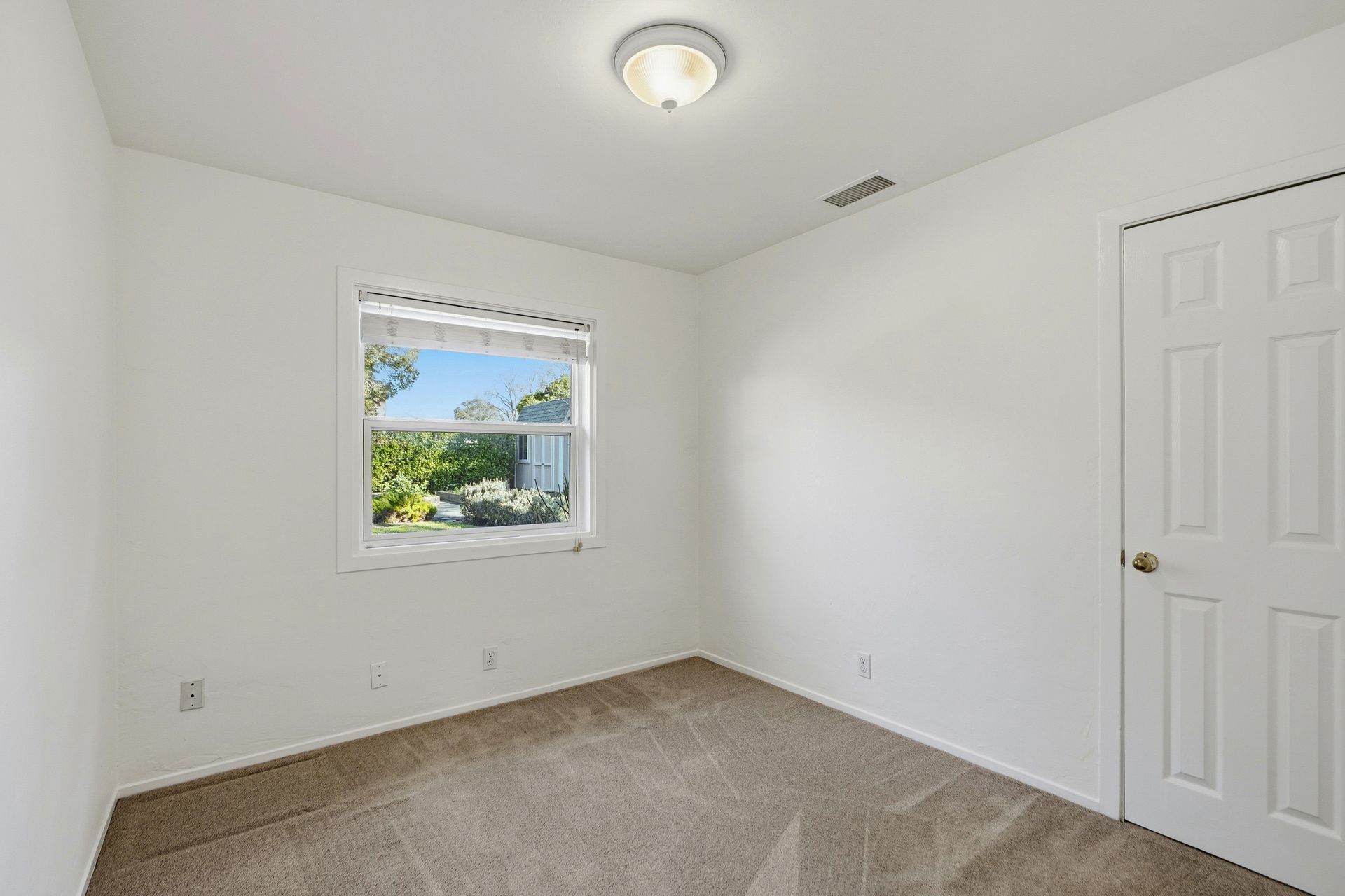Welcome to this single-story home offering three bedrooms and a beautifully remodeled bathroom. Enjoy a cozy living room and a light-filled kitchen and dining area with sliding glass doors opening to an expansive, sunny, and private backyard. Outdoor highlights include a paver-style patio, raised garden beds, fruit trees, a lawn area, and a walking path leading to a large, barn-style storage shed and a garden shed. The largest of the bedrooms looks out to the backyard and features a slider that brings in abundant natural light and garden views. Additional features include dual-pane windows, a newer roof, owned solar panels, and central heating and air provided by an efficient electric heat pump. Enjoy being conveniently located near Howarth Park, Spring Lake, Whole Foods, and Montgomery Village.