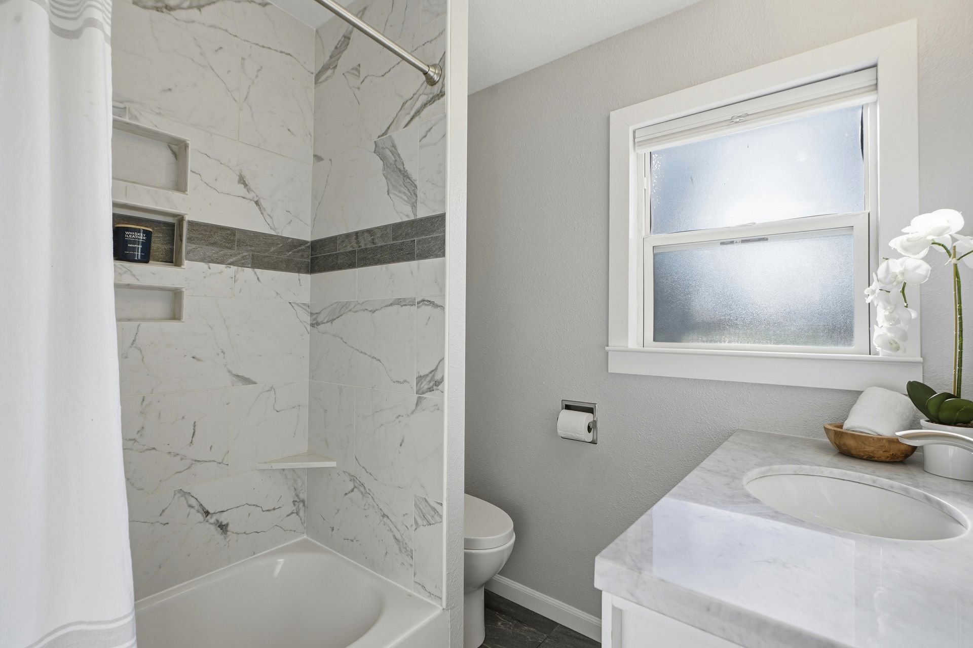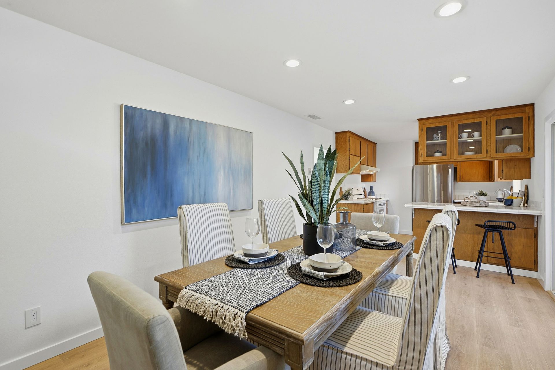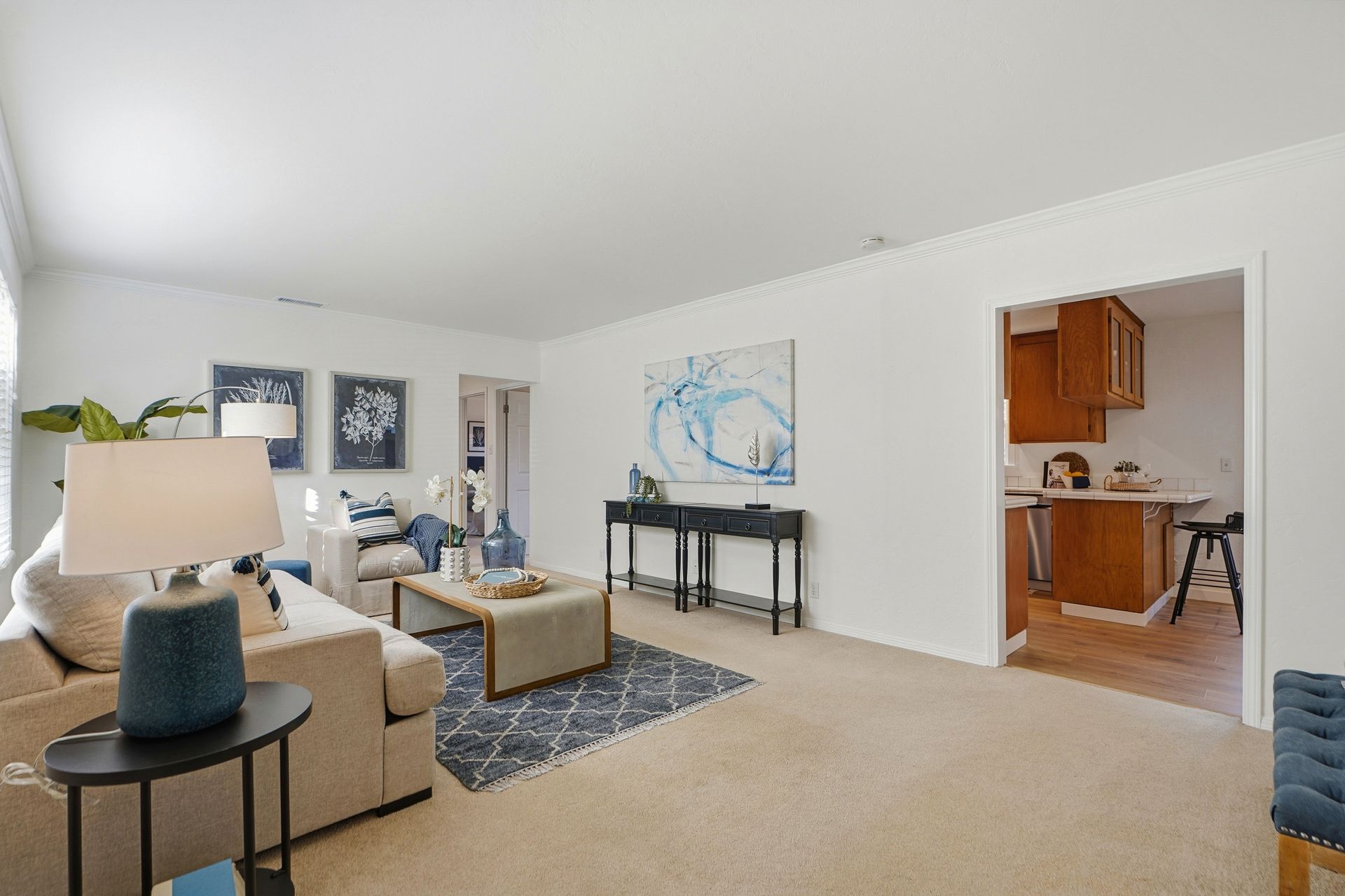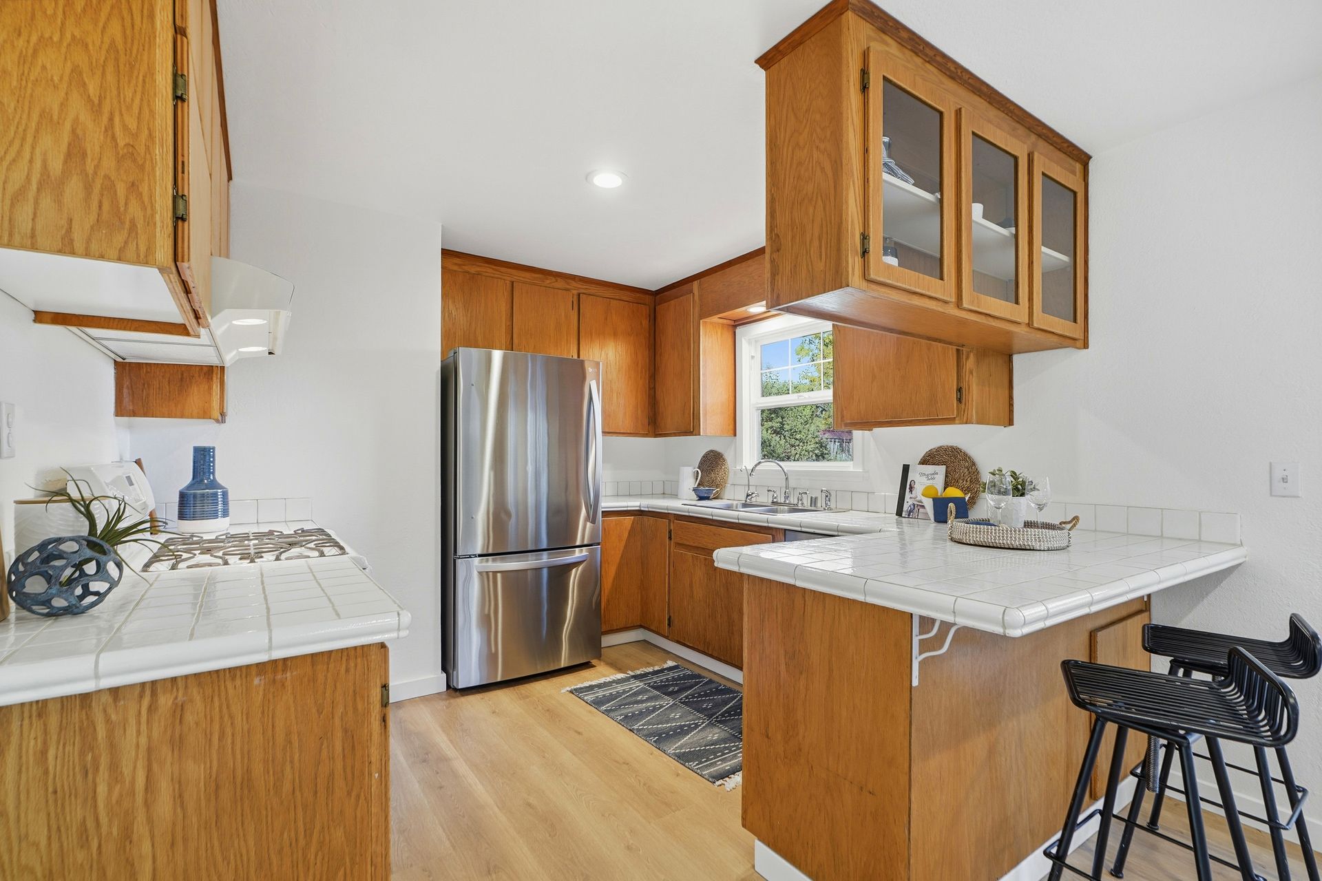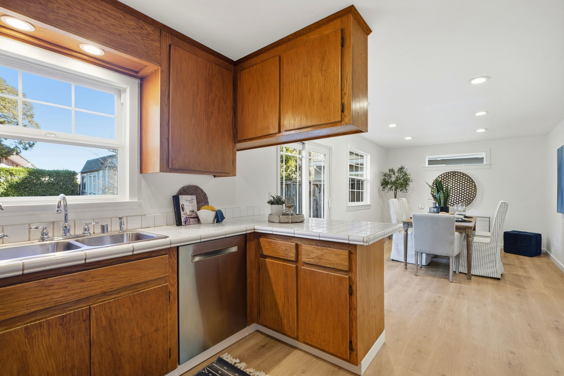 Welcome to this single-story home offering three bedrooms and a beautifully remodeled bathroom. Enjoy a cozy living room and a light-filled kitchen and dining area with sliding glass doors opening to an expansive, sunny, and private backyard. Outdoor highlights include a paver-style patio, raised garden beds, fruit trees, a lawn area, and a walking path leading to a large, barn-style storage shed and a garden shed. The largest of the bedrooms looks out to the backyard and features a slider that brings in abundant natural light and garden views. Additional features include dual-pane windows, a newer roof, owned solar panels, and central heating and air provided by an efficient electric heat pump. Enjoy being conveniently located near Howarth Park, Spring Lake, Whole Foods, and Montgomery Village.
