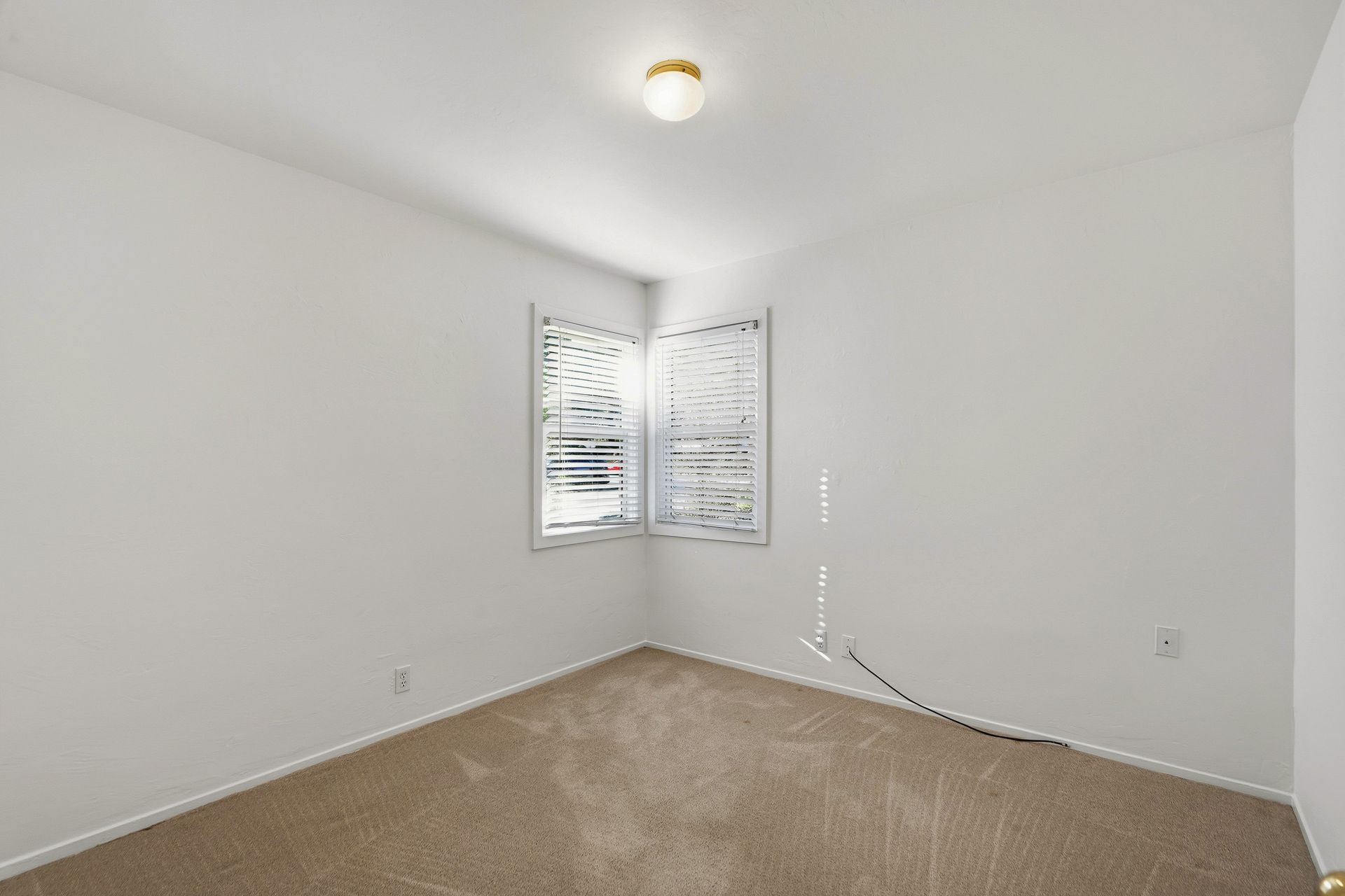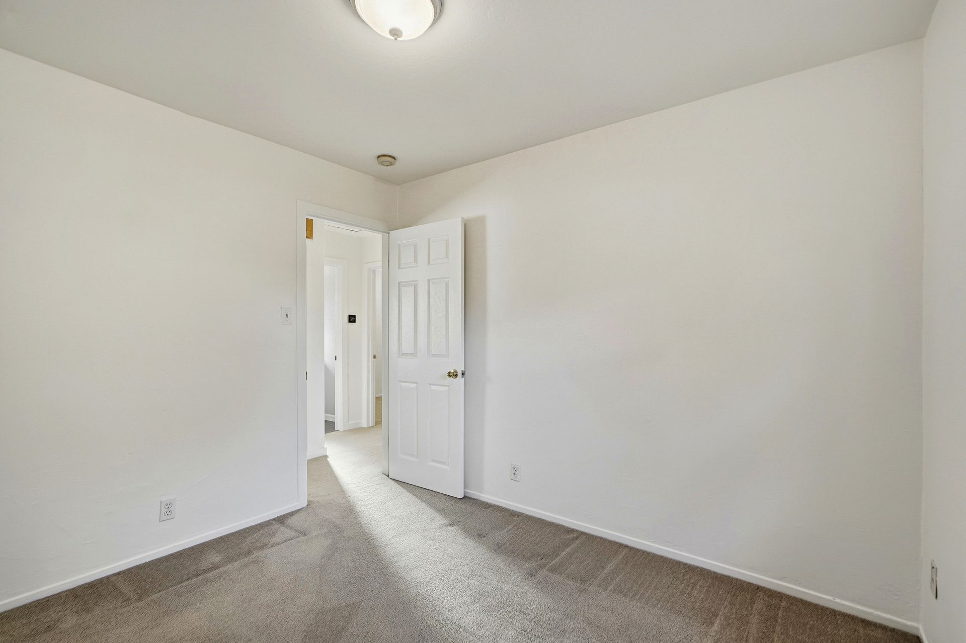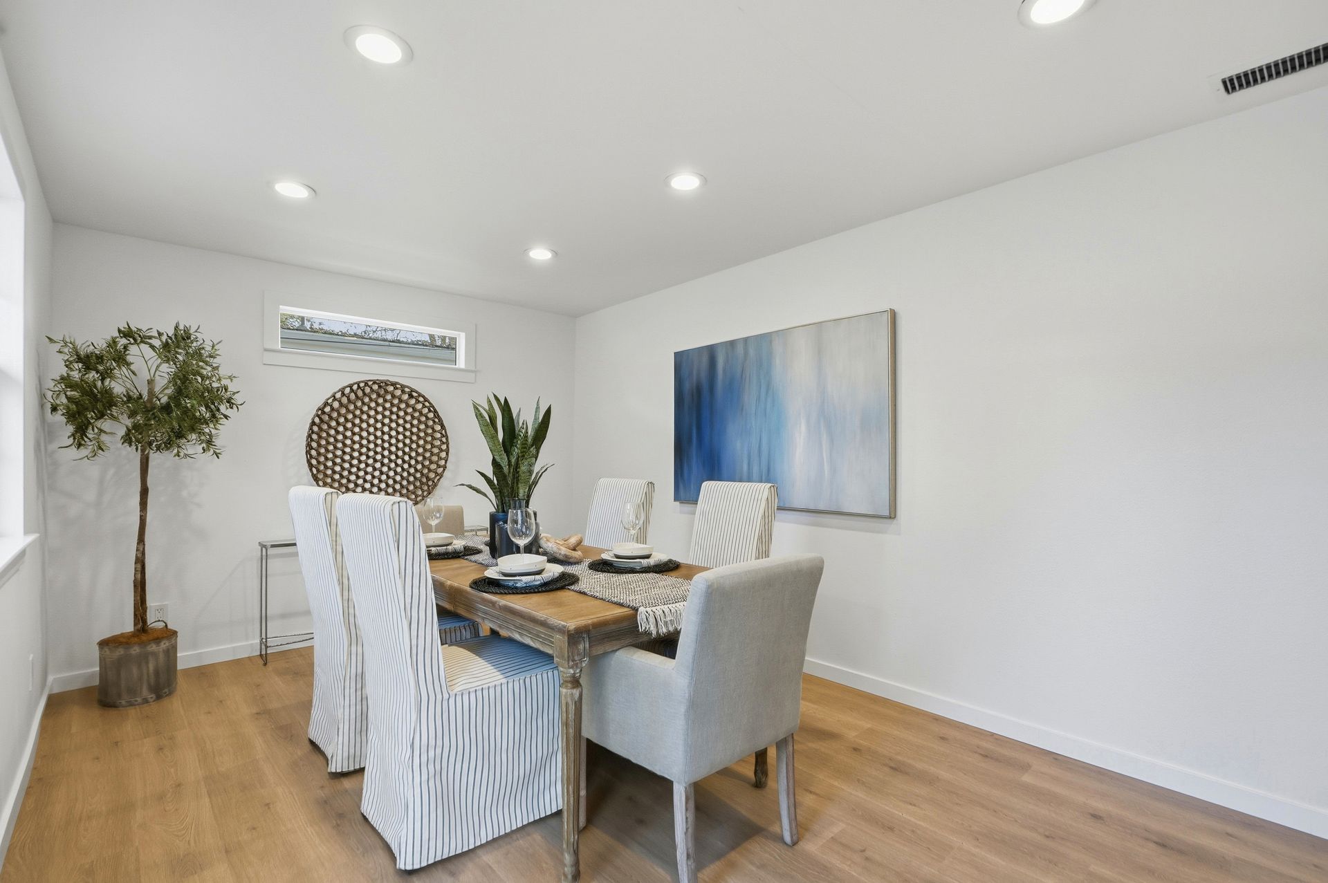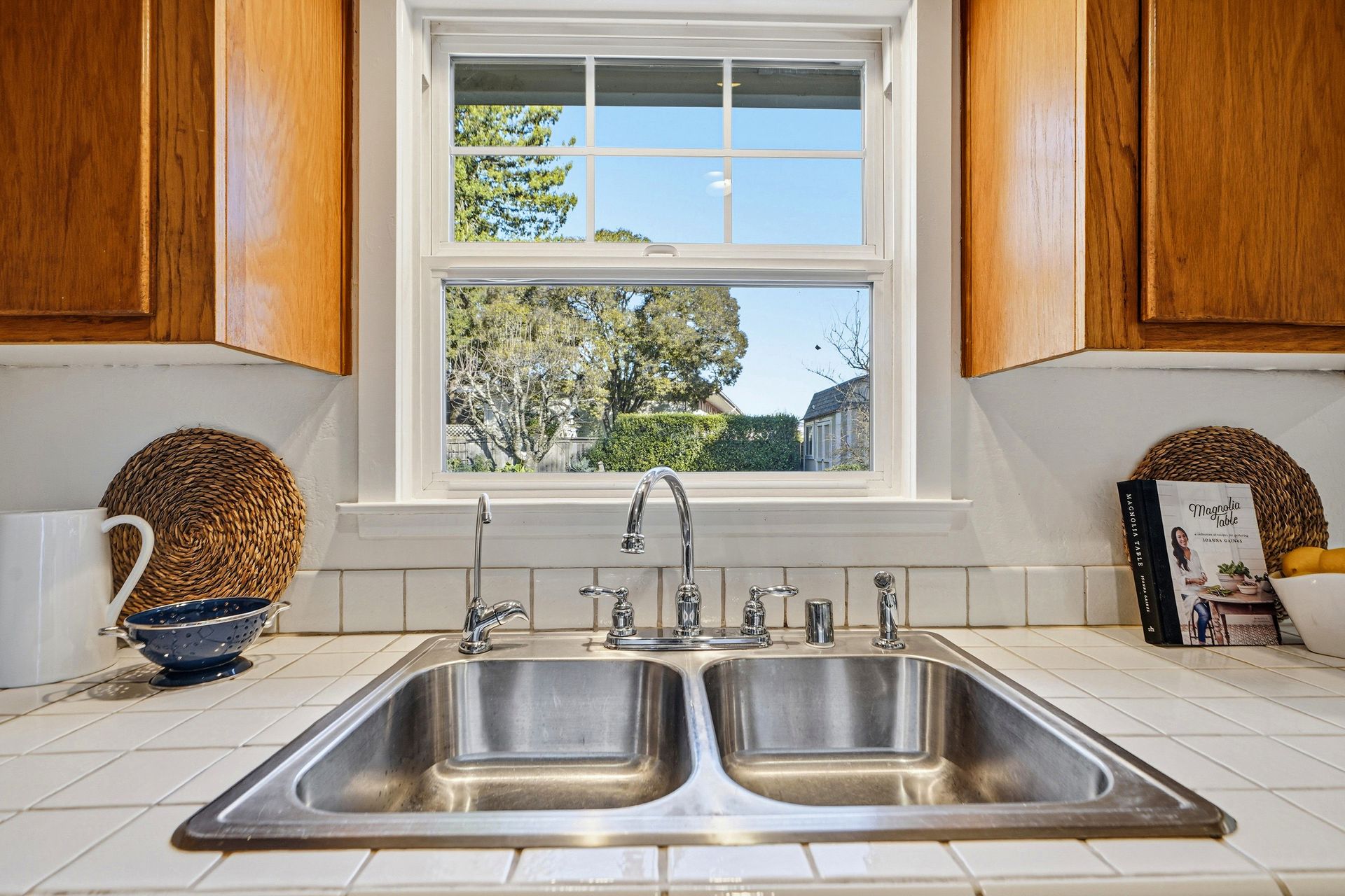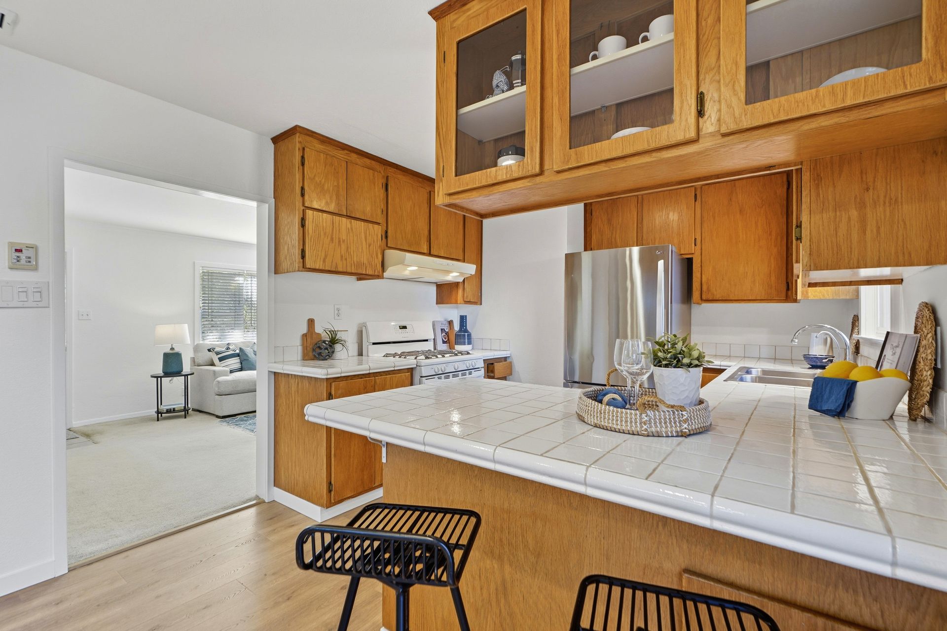 Welcome to this single-story home offering three bedrooms and a beautifully remodeled bathroom. Enjoy a cozy living room and a light-filled kitchen and dining area with sliding glass doors opening to an expansive, sunny, and private backyard. Outdoor highlights include a paver-style patio, raised garden beds, fruit trees, a lawn area, and a walking path leading to a large, barn-style storage shed and a garden shed. The largest of the bedrooms looks out to the backyard and features a slider that brings in abundant natural light and garden views. Additional features include dual-pane windows, a newer roof, owned solar panels, and central heating and air provided by an efficient electric heat pump. Enjoy being conveniently located near Howarth Park, Spring Lake, Whole Foods, and Montgomery Village.