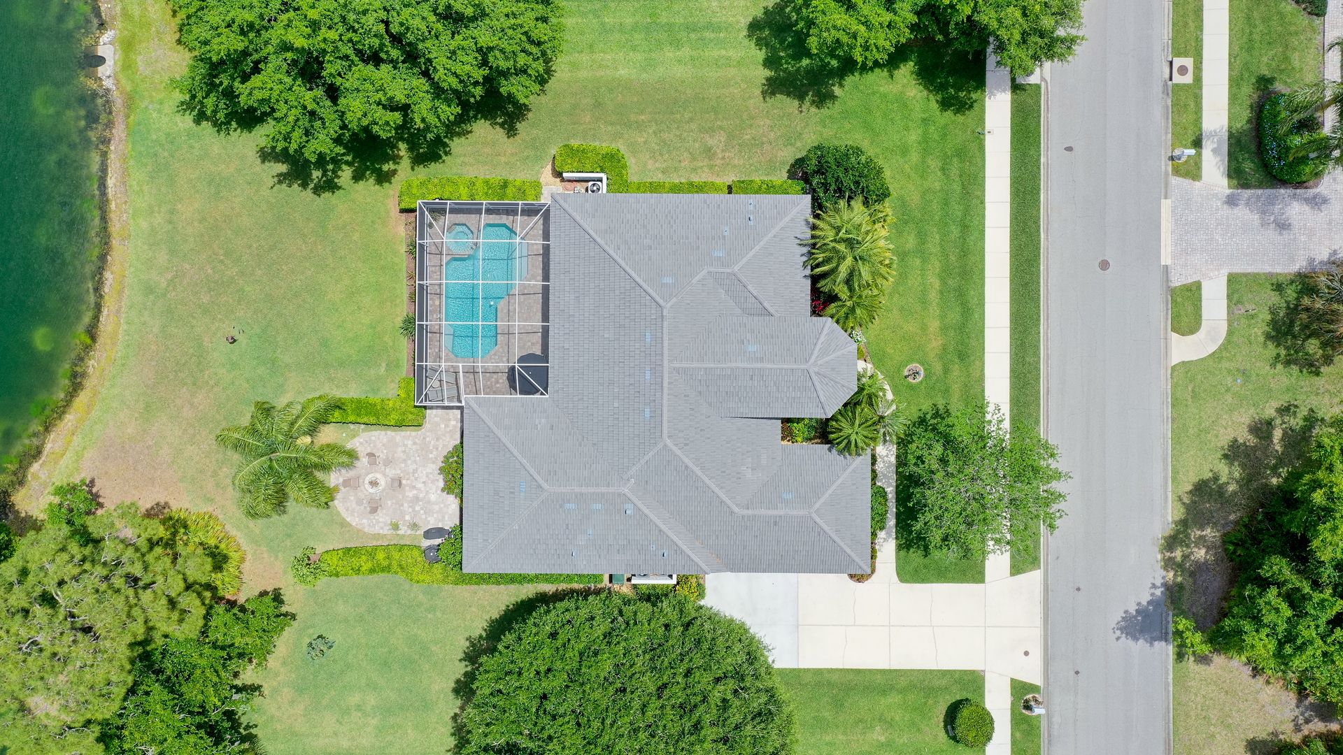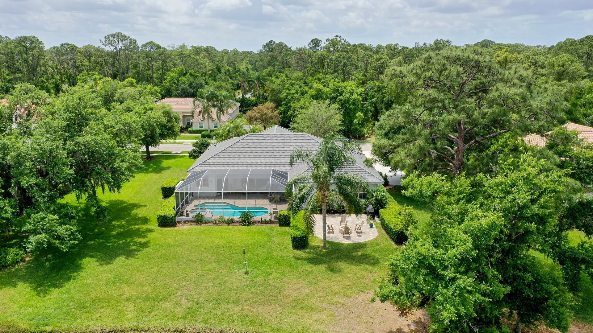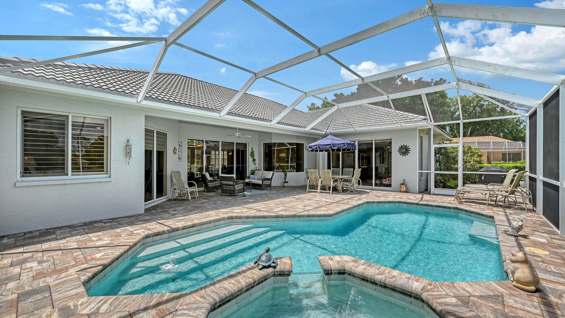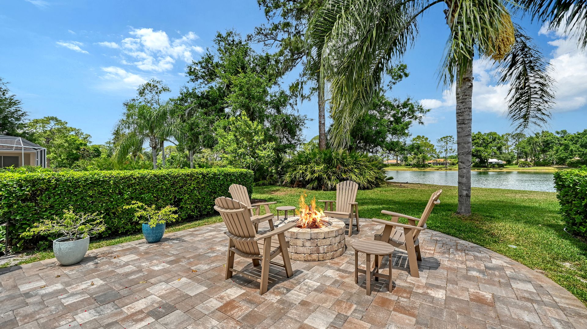 Within the gates of The Preserve at Misty Creek, this approximately 2,900 square foot home situated on a half-acre, beautifully landscaped, lakefront lot, feels like a retreat. Upon entering, you'll be greeted by a newly upgraded kitchen featuring solid wood cabinetry, stone counters, updated lighting, modern appliances including a wine refrigerator and finishes that seamlessly blend style and function. The bathrooms have also been thoughtfully updated, providing a spa-like ambiance. Volume ceilings, crown molding and Plantation Shutters contribute to the overall appeal of this well-appointed home. Major systems and functional upgrades provide peace of mind. The property features NEW TILE ROOF 2024, two newer air conditioning systems, updated electronic heat assembly, and a variety of mechanical improvements that reflect careful ownership. The primary suite is located on the opposing side of home from the guest rooms in this split floor plan. The screened, heated pool and spa overlook the lake, framed by updated and sealed pool pavers and a refreshed enclosure. A newer pool heater, motor, and actuator ensure everything operates seamlessly. The outdoor living space has been expanded with a custom patio and fire pit area for entertaining or simply unwinding. Watch birds diving for fish while enjoying your lakefront property in this tranquil setting. The combination of the spacious interior, well-manicured grounds and sought-after lakefront setting make this property an ideal choice. Living in Misty Creek means enjoying a 24-hour guard-gated community with LOW HOA fees, spacious lots, X-zone benefits and optional golf membership.