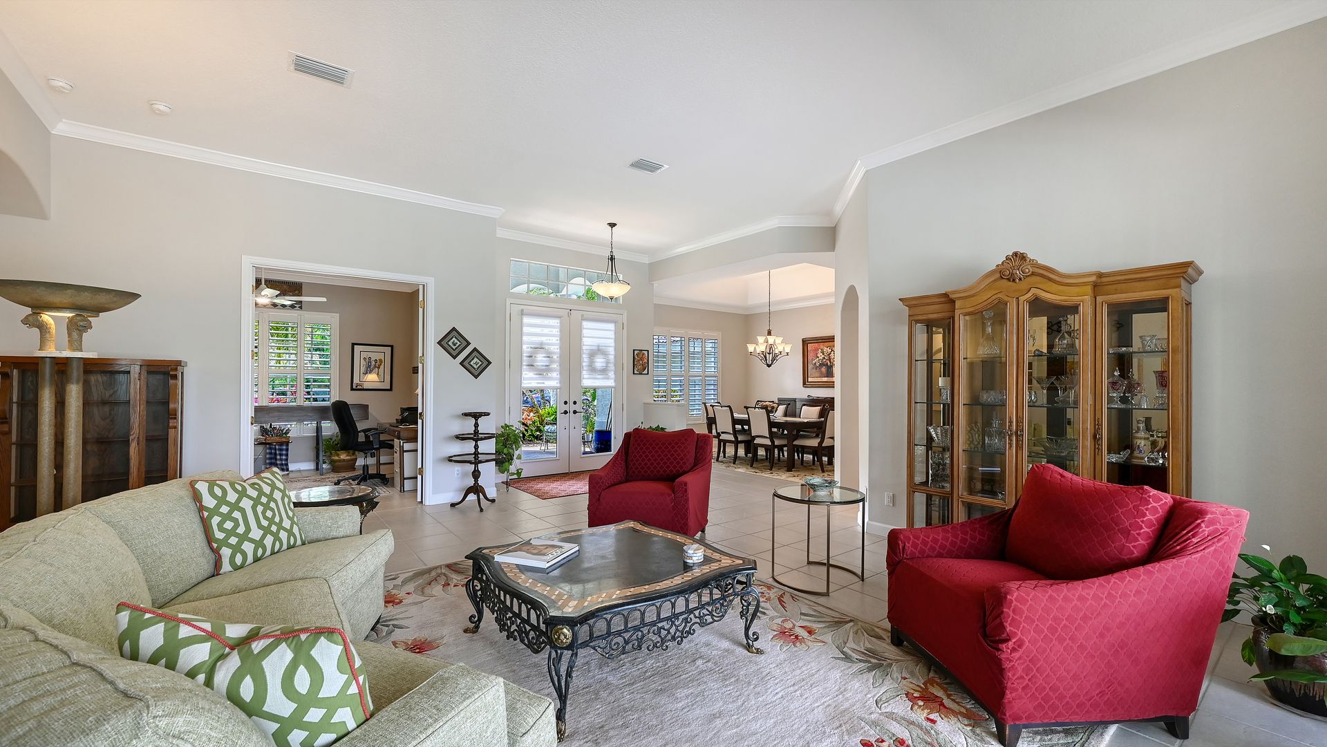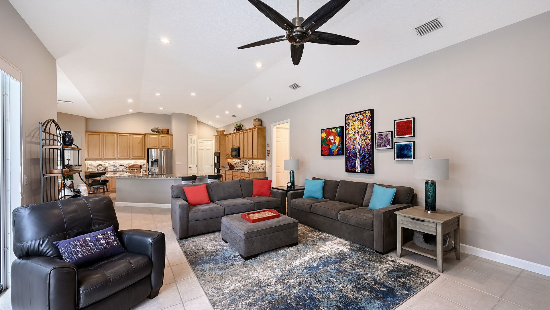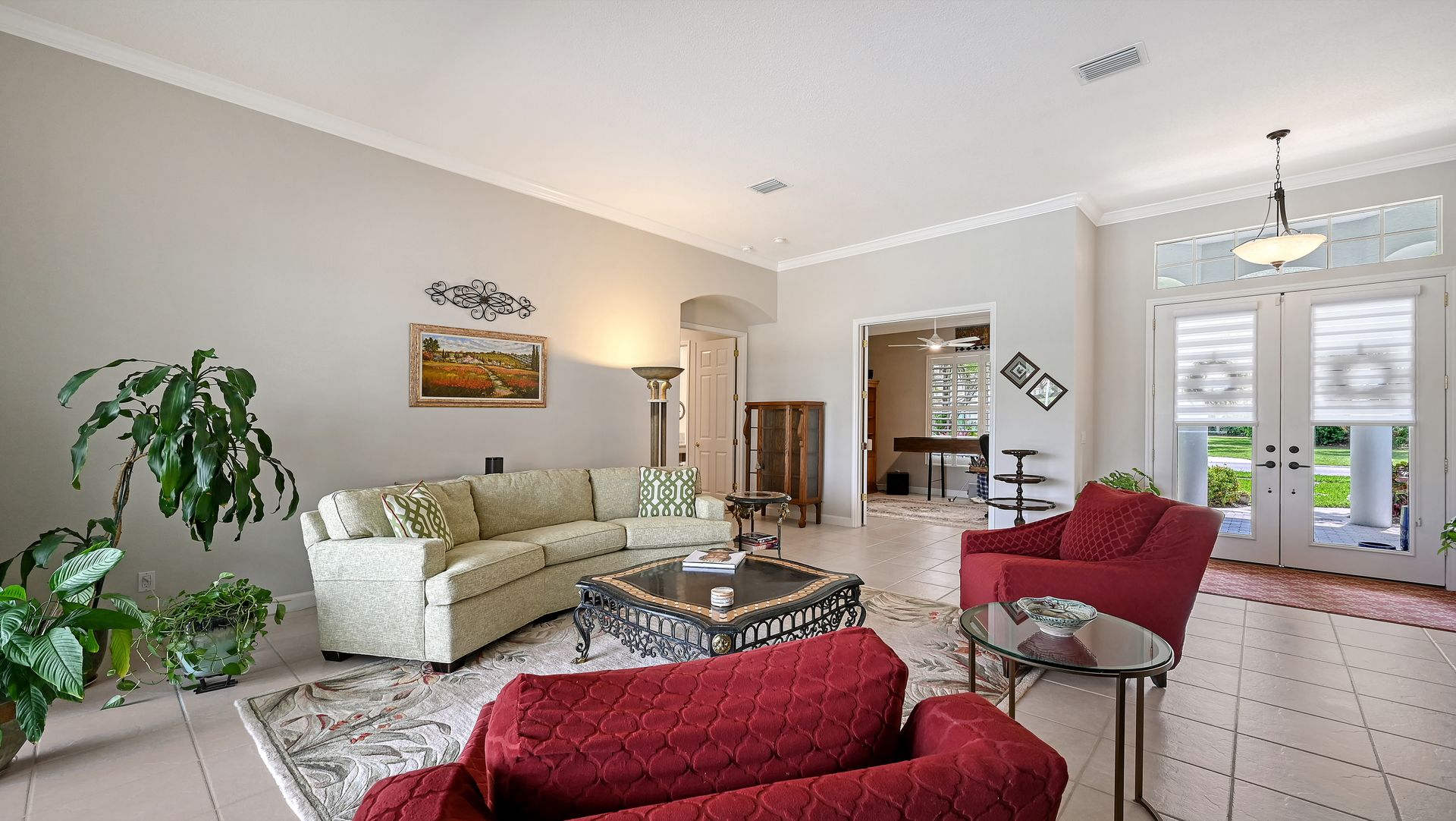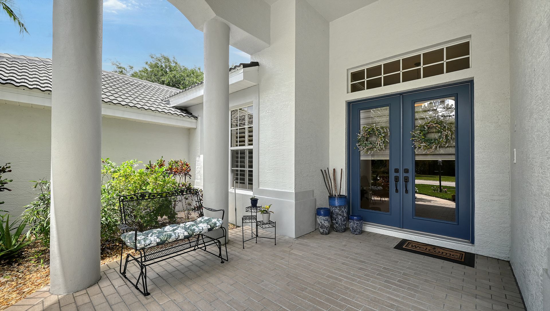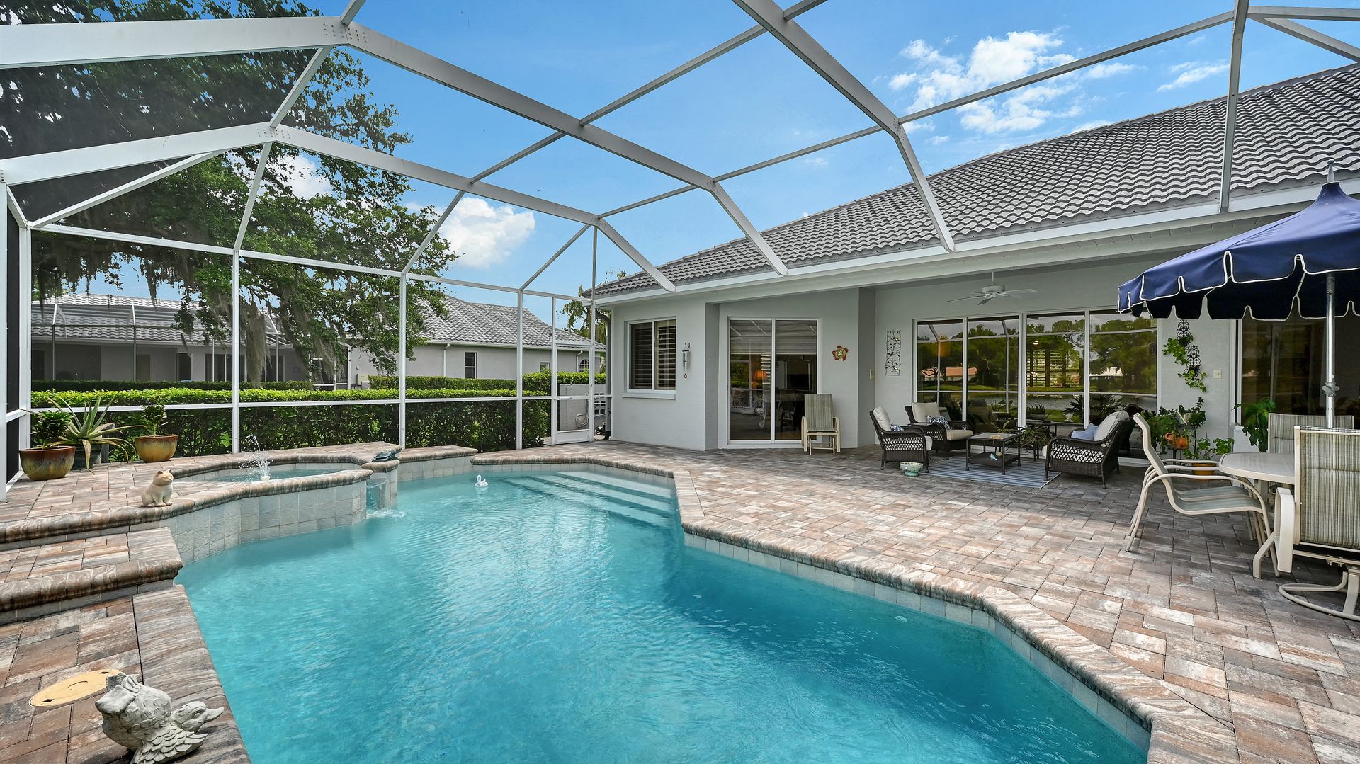 Within the gates of The Preserve at Misty Creek, this approximately 2,900 square foot home situated on a half-acre, beautifully landscaped, lakefront lot, feels like a retreat. Upon entering, you'll be greeted by a newly upgraded kitchen featuring solid wood cabinetry, stone counters, updated lighting, modern appliances including a wine refrigerator and finishes that seamlessly blend style and function. The bathrooms have also been thoughtfully updated, providing a spa-like ambiance. Volume ceilings, crown molding and Plantation Shutters contribute to the overall appeal of this well-appointed home. Major systems and functional upgrades provide peace of mind. The property features NEW TILE ROOF 2024, two newer air conditioning systems, updated electronic heat assembly, and a variety of mechanical improvements that reflect careful ownership. The primary suite is located on the opposing side of home from the guest rooms in this split floor plan. The screened, heated pool and spa overlook the lake, framed by updated and sealed pool pavers and a refreshed enclosure. A newer pool heater, motor, and actuator ensure everything operates seamlessly. The outdoor living space has been expanded with a custom patio and fire pit area for entertaining or simply unwinding. Watch birds diving for fish while enjoying your lakefront property in this tranquil setting. The combination of the spacious interior, well-manicured grounds and sought-after lakefront setting make this property an ideal choice. Living in Misty Creek means enjoying a 24-hour guard-gated community with LOW HOA fees, spacious lots, X-zone benefits and optional golf membership.