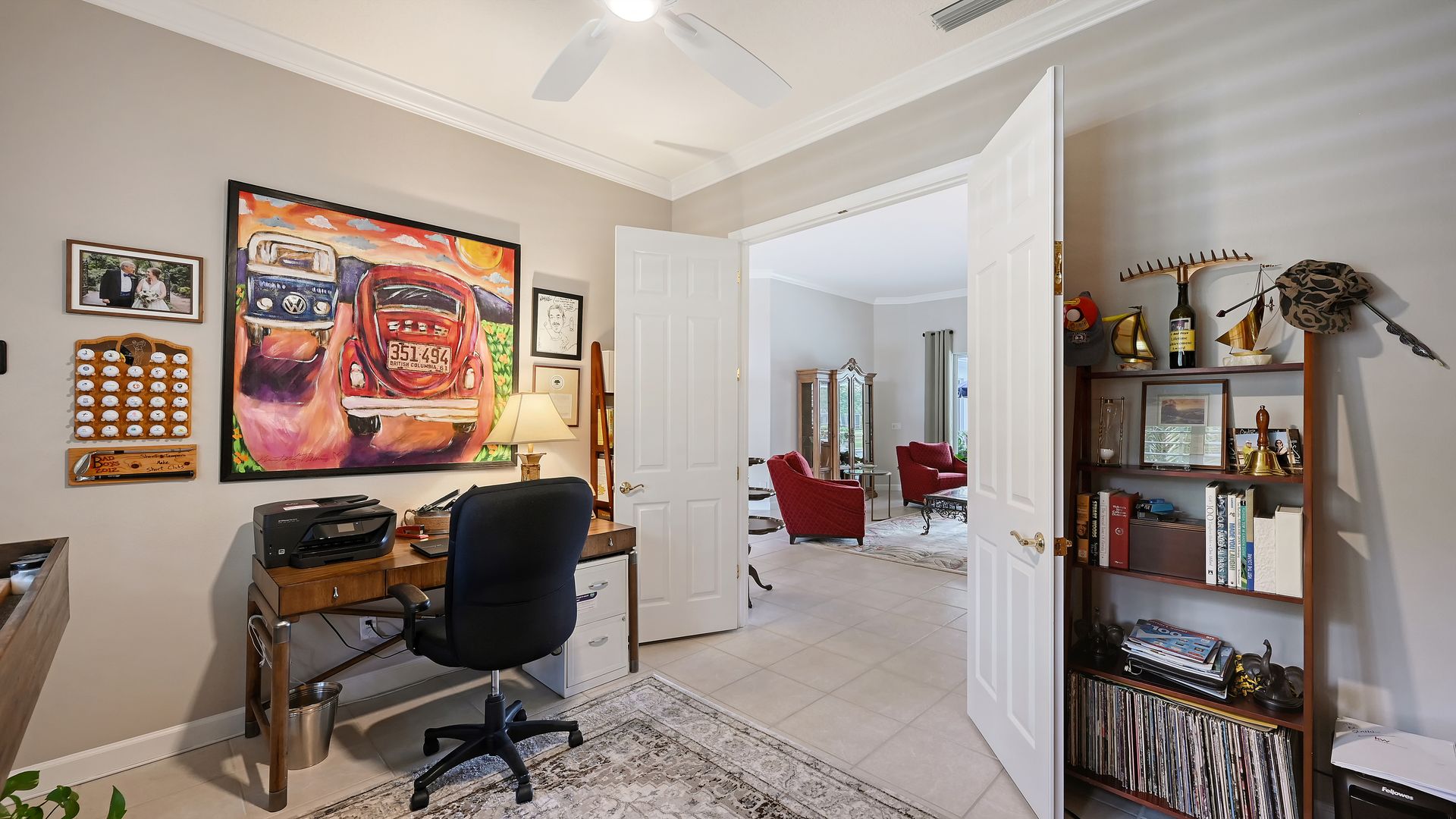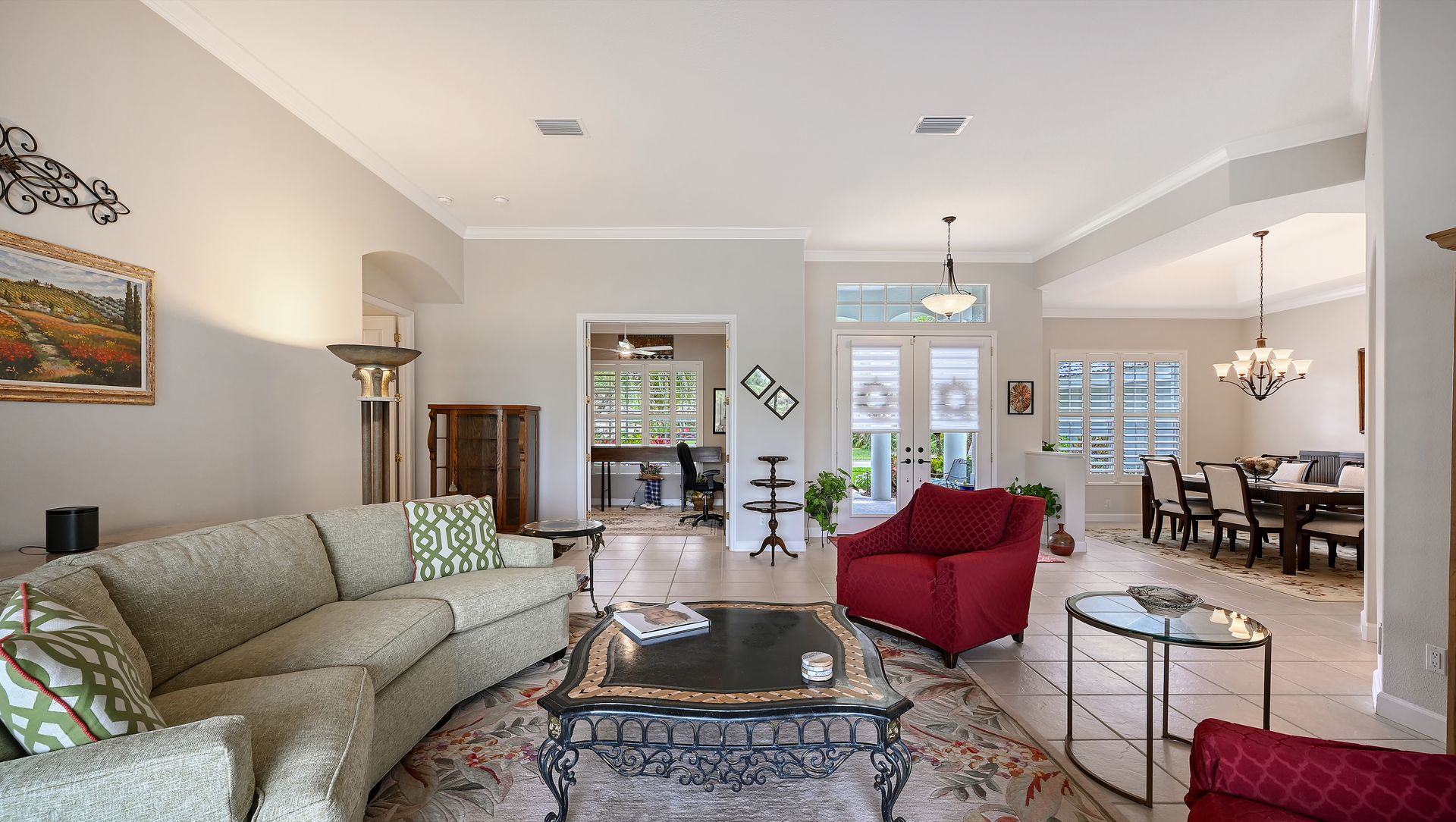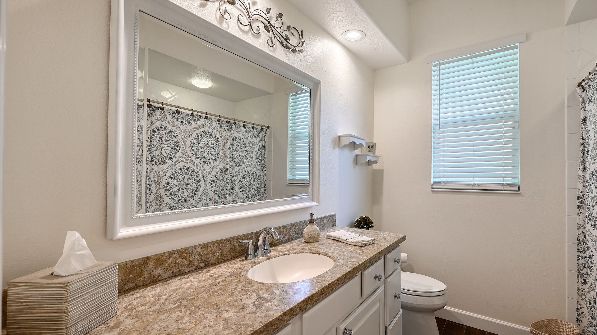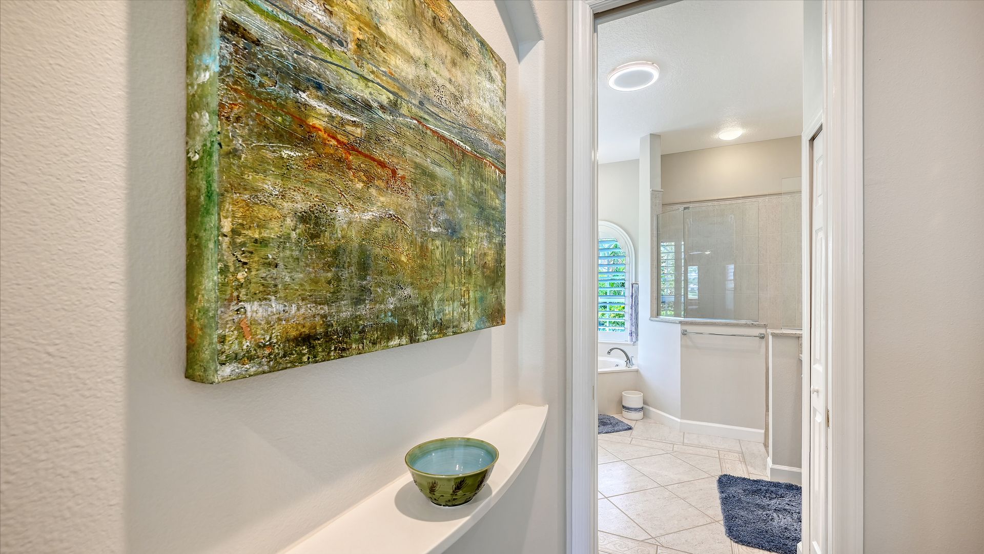 Within the gates of The Preserve at Misty Creek, this approximately 2,900 square foot home situated on a half-acre, beautifully landscaped, lakefront lot, feels like a retreat. Upon entering, you'll be greeted by a newly upgraded kitchen featuring solid wood cabinetry, stone counters, updated lighting, modern appliances including a wine refrigerator and finishes that seamlessly blend style and function. The bathrooms have also been thoughtfully updated, providing a spa-like ambiance. Volume ceilings, crown molding and Plantation Shutters contribute to the overall appeal of this well-appointed home. Major systems and functional upgrades provide peace of mind. The property features NEW TILE ROOF 2024, two newer air conditioning systems, updated electronic heat assembly, and a variety of mechanical improvements that reflect careful ownership. The primary suite is located on the opposing side of home from the guest rooms in this split floor plan. The screened, heated pool and spa overlook the lake, framed by updated and sealed pool pavers and a refreshed enclosure. A newer pool heater, motor, and actuator ensure everything operates seamlessly. The outdoor living space has been expanded with a custom patio and fire pit area for entertaining or simply unwinding. Watch birds diving for fish while enjoying your lakefront property in this tranquil setting. The combination of the spacious interior, well-manicured grounds and sought-after lakefront setting make this property an ideal choice. Living in Misty Creek means enjoying a 24-hour guard-gated community with LOW HOA fees, spacious lots, X-zone benefits and optional golf membership.