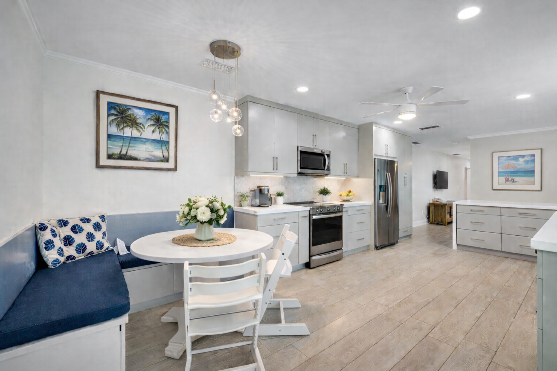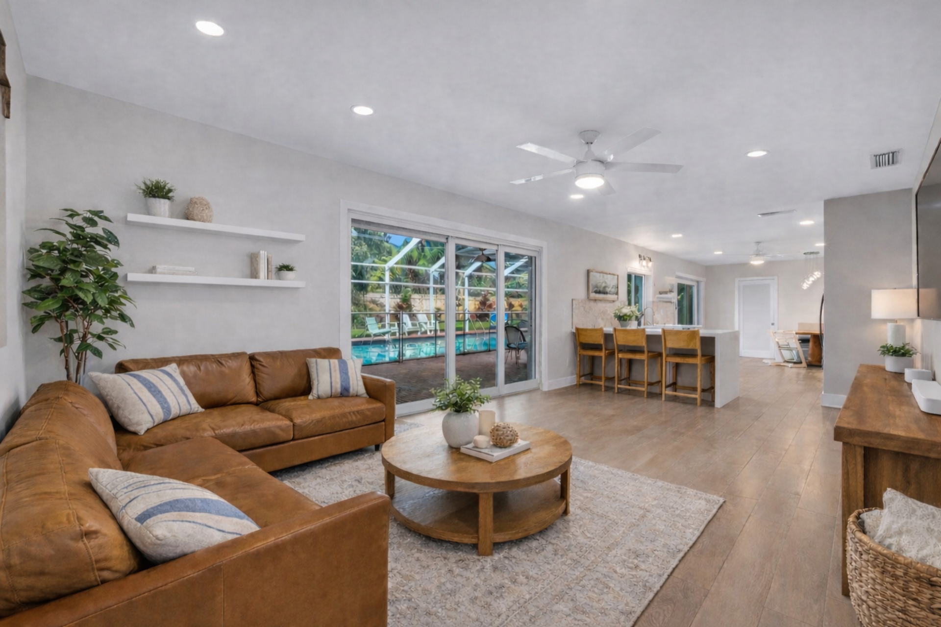 Tucked beneath a canopy of mature trees in the heart of Mangowood Estates, this beautifully reimagined 4 bedroom, 3 bath residence greets you with a sense of calm and community the moment you arrive. The curved driveway and classic front porch set the tone: timeless, welcoming, and effortlessly elegant. Step inside and feel the difference. Natural light flows through impact windows that frame lush garden views, creating a bright, peaceful atmosphere that instantly puts you at ease. The home has been completely renovated, blending clean, modern finishes with warm, inviting textures that make every room feel both elevated and comfortable. The living spaces are designed for connection: whether it’s cozy family nights by the fireplace, hosting friends around the dining table, or quiet mornings with coffee and sunlight pouring in through the windows. The kitchen is the heart of it all: sleek, open, and ready for everything from quick breakfasts to unforgettable dinner parties. But the real magic waits just beyond the doors. Your covered patio and resort-style pool with heater create a private outdoor escape that feels like a weekend getaway, every single day! Picture warm afternoons floating under blue skies, evening dinners under soft lighting, and laughter echoing through the screened-in space as memories are made season after season. Each bedroom offers a retreat of its own, while the beautifully updated bathrooms bring a spa like calm to your daily routine. This is a home that doesn’t just look good, t feels good. Set in one of Palmetto Bay’s most sought after neighborhoods, you’re surrounded by tree-lined streets, top-rated schools, and a true sense of community: all just a golf cart ride away from parks, shopping, and everything that makes this area so special. Ready for neighbor planned santa parade, halloween house decoration context and yearly neighborhood family bbq's. This isn’t just a house. It’s where your next chapter begins!