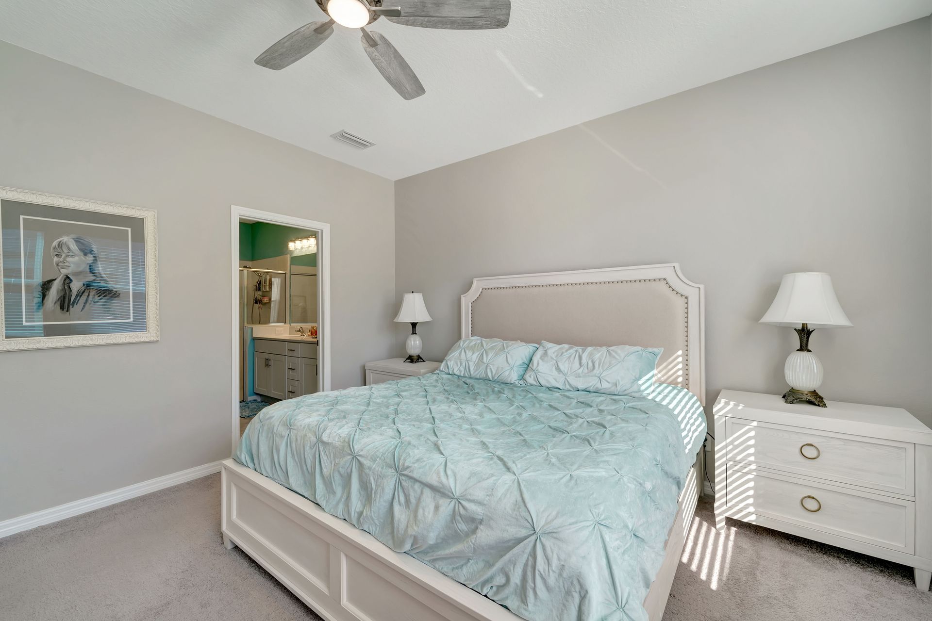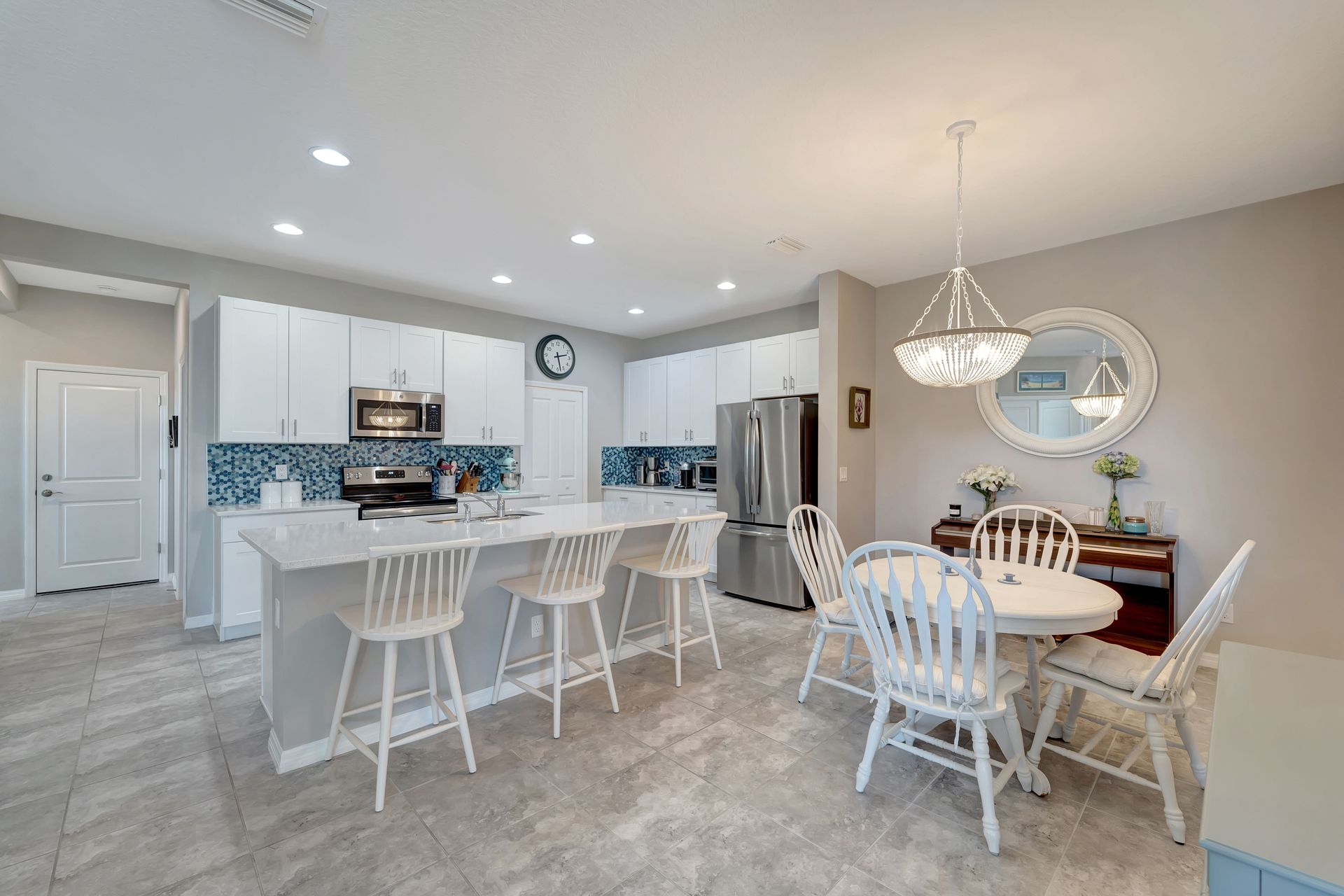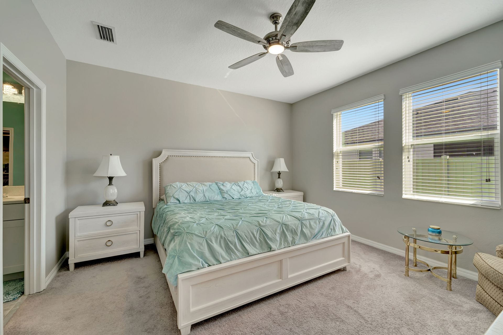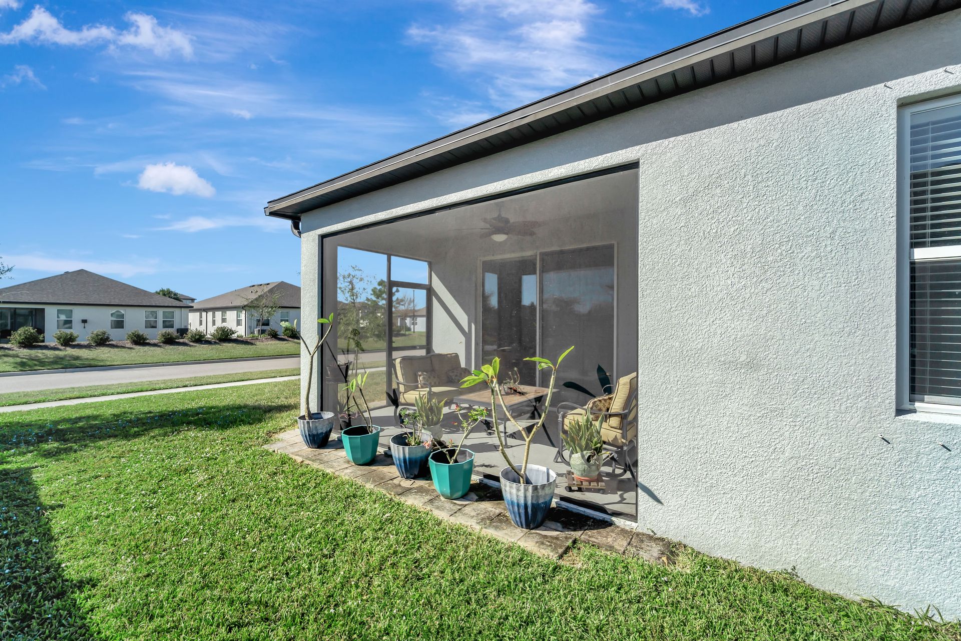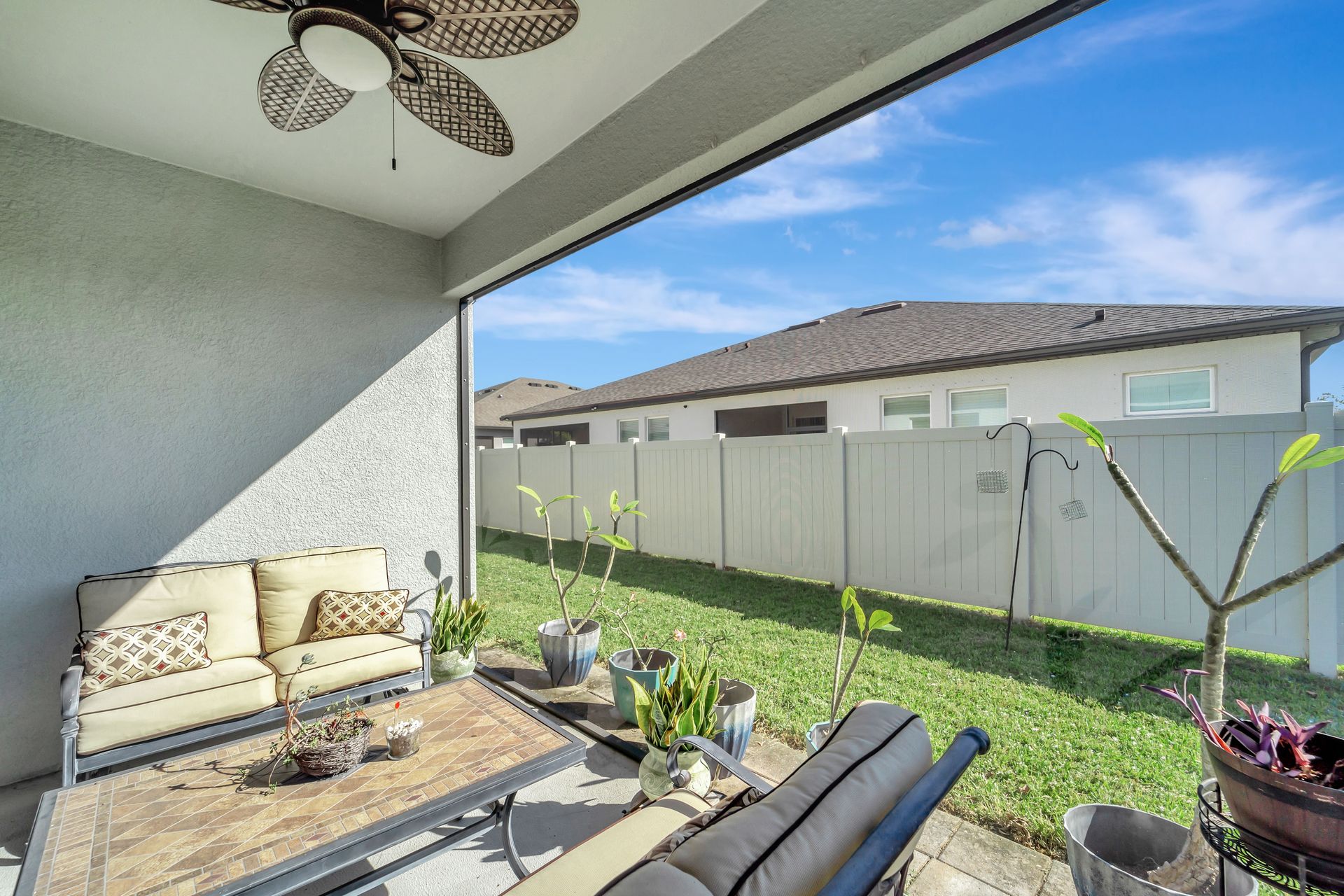 Elegantly maintained and beautifully appointed, this three bedroom, two bath villa with an attached two car garage offers the perfect balance of style, comfort, and quality. The open light-filled floor plan features tile flooring in the kitchen and bathrooms, and plush carpet in the bedrooms for a cozy retreat. Ceiling fans in all bedrooms and living room provide comfort, while a plantation shutter on the sliding glass door adds style and functionality. The Chef's kitchen is a showpiece with quartz countertops, a tile backsplash, stainless steel appliances, and a large island with seating. Retreat to the inviting primary suite, complete with a custom Closet Envy walk-in closet designed for luxury and organization, and an en suite offering a large tiled walk-in shower, double vanity, and private water closet. Enjoy relaxing mornings or evenings on the screened-in lanai. Additional upgrades include a UV light air purification system for improved indoor air quality and Kevlar hurricane shutters for safety and peace of mind. Nestled in the exclusive Hidden Creek community, residents enjoy access to a pavilion with grill area, playground, open fields, and walking paths. With low HOA and no CDD, this neighborhood offers a true sense of community and exceptional value. Ideally located near the exclusive and lively Waterside Place at Lakewood Ranch, University Town Center, and premier golf courses such as Tatum Ridge and The Founders Club, with Sun Outdoor Resort just 2.4 miles away for family fun and optional membership access. Experience luxury Sarasota living in this beautifully finished, move-in-ready villa - refined, inviting, and perfectly situated for today's lifestyle.
