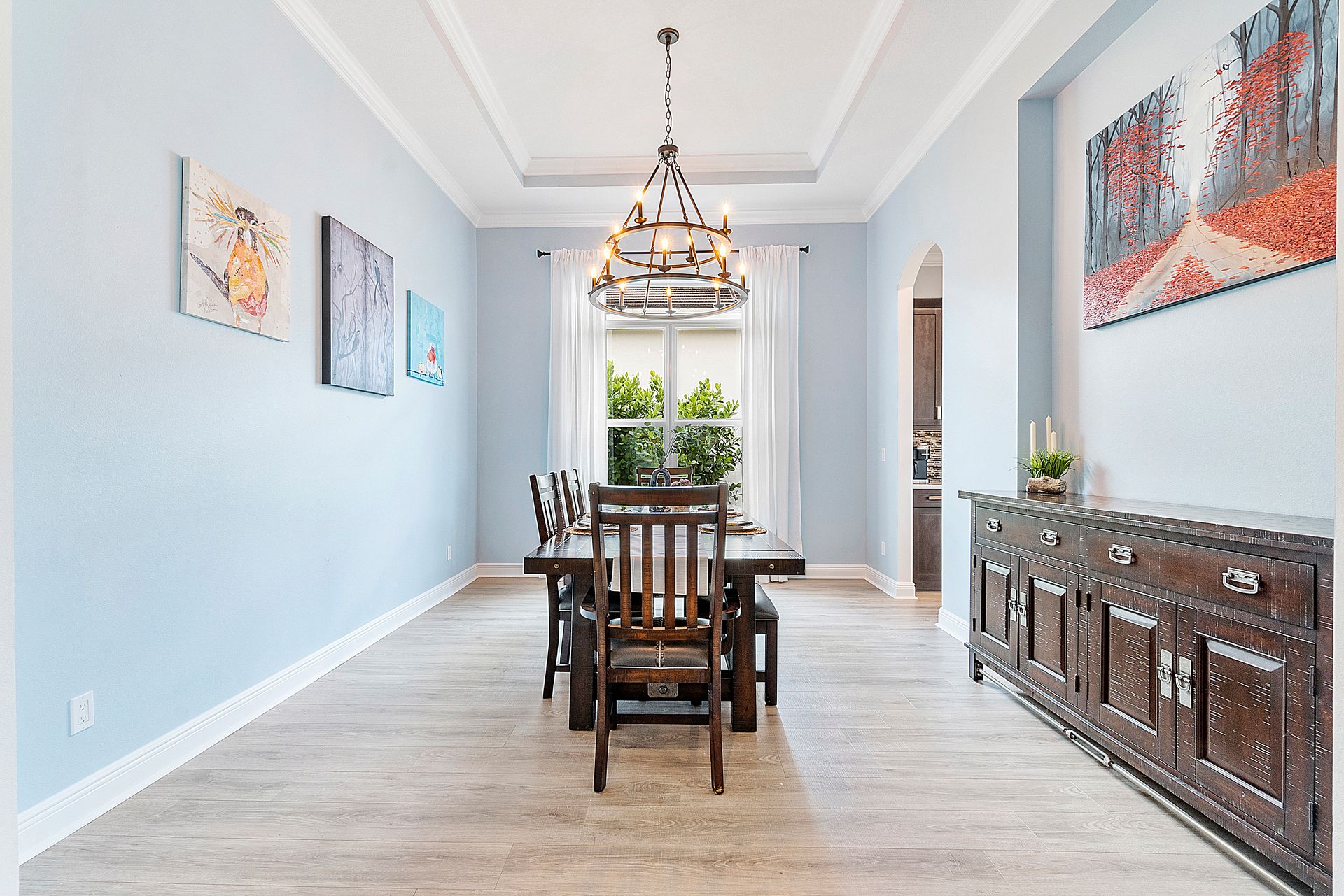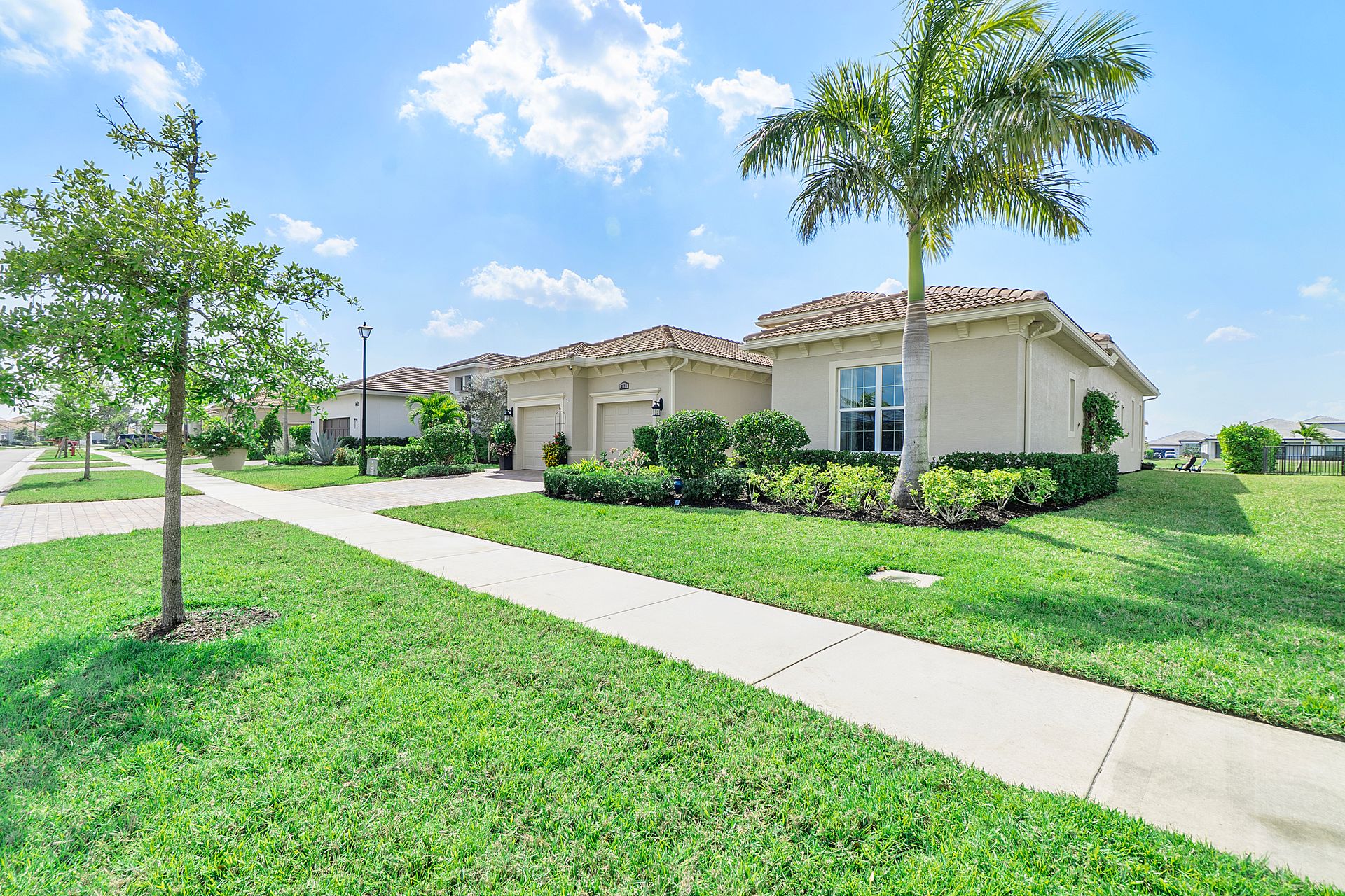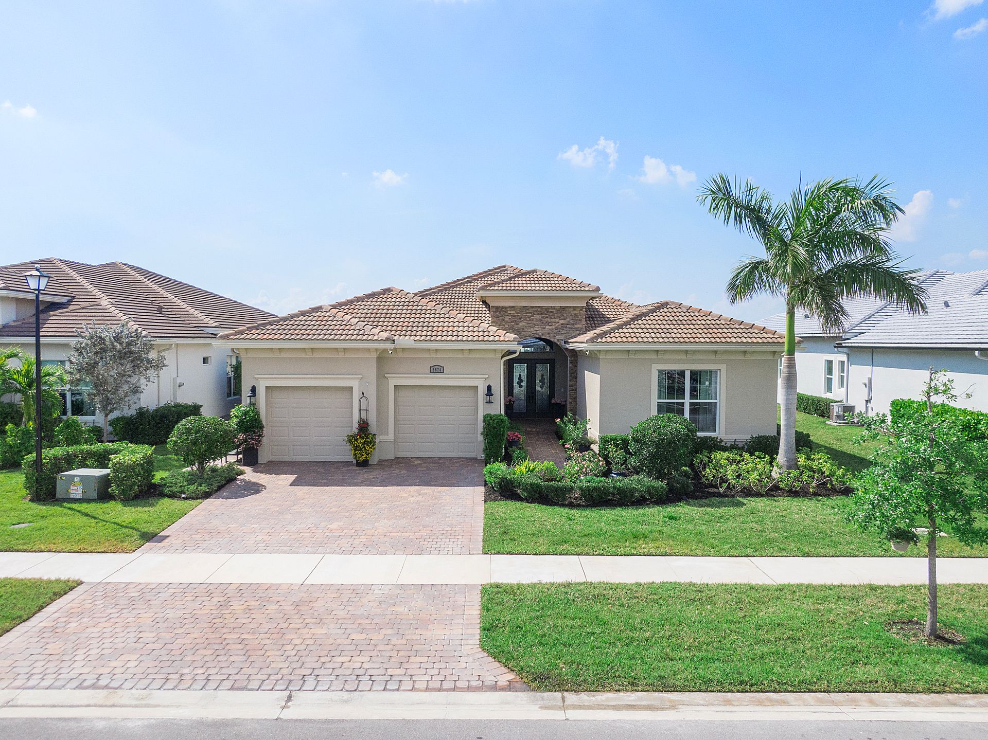Experience unparalleled golf and resort-style living in the prestigious PGA Verano. This stunning three-bedroom-plus-den, three-and-one-half-bath home offers an extraordinary lifestyle on the wide water, showcasing the extended Collina floorplan that blends elegant design with unparalleled comfort, generous space, and versatility with over $75,000 in upgrades. Tucked away on one of the coveted streets of exclusive homes, the grand double entrance and soaring ceilings set the tone for this exquisite home. The chef's dream kitchen is outfitted with top-of-the-line upgrades, including quartz countertops, upscale appliances, a wall oven, a cooktop, and an oversized pantry. The central kitchen island has a breakfast bar and an additional space for casual dining, while the butler’s pantry doubles as a cozy coffee nook for those peaceful mornings. The grand primary suite serves as your serene retreat, complete with a spacious bath and dual walk-in closets. The split floor plan features two additional en-suite bedrooms, each with its own walk-in closet and bathroom, ensuring privacy and comfort for guests. The home's open-concept great room is ideal for gatherings, offering dual sliders that open to gorgeous water views, bringing the outdoors in, and creating a seamless flow for entertaining. For added convenience, the expansive laundry room is a great bonus, providing ample storage and workspace. Beyond the walls of this magnificent home lies the PGA Village Verano lifestyle as the only planned community affiliated with the 54-hole PGA Golf Club, cart path access to the course, Club Talavera, including South Florida's largest private Pickleball Center with 27 courts, pools, a state-of-the-art fitness center, and a full complement of courts for tennis, bocce, and basketball, cabanas and a sun deck adds a touch of vacation to everyday life. Come experience a life of unmatched luxury in PGA Verano, where elegance, comfort, and world-class amenities converge.