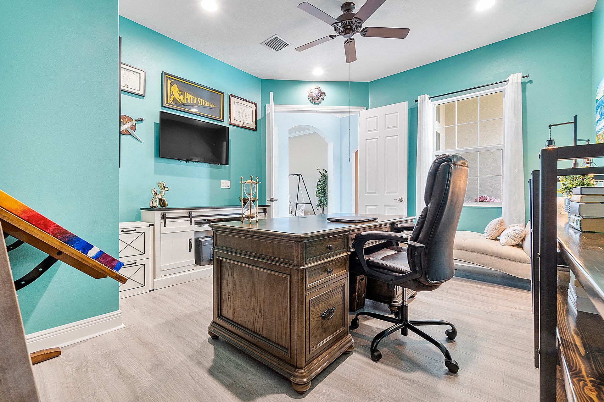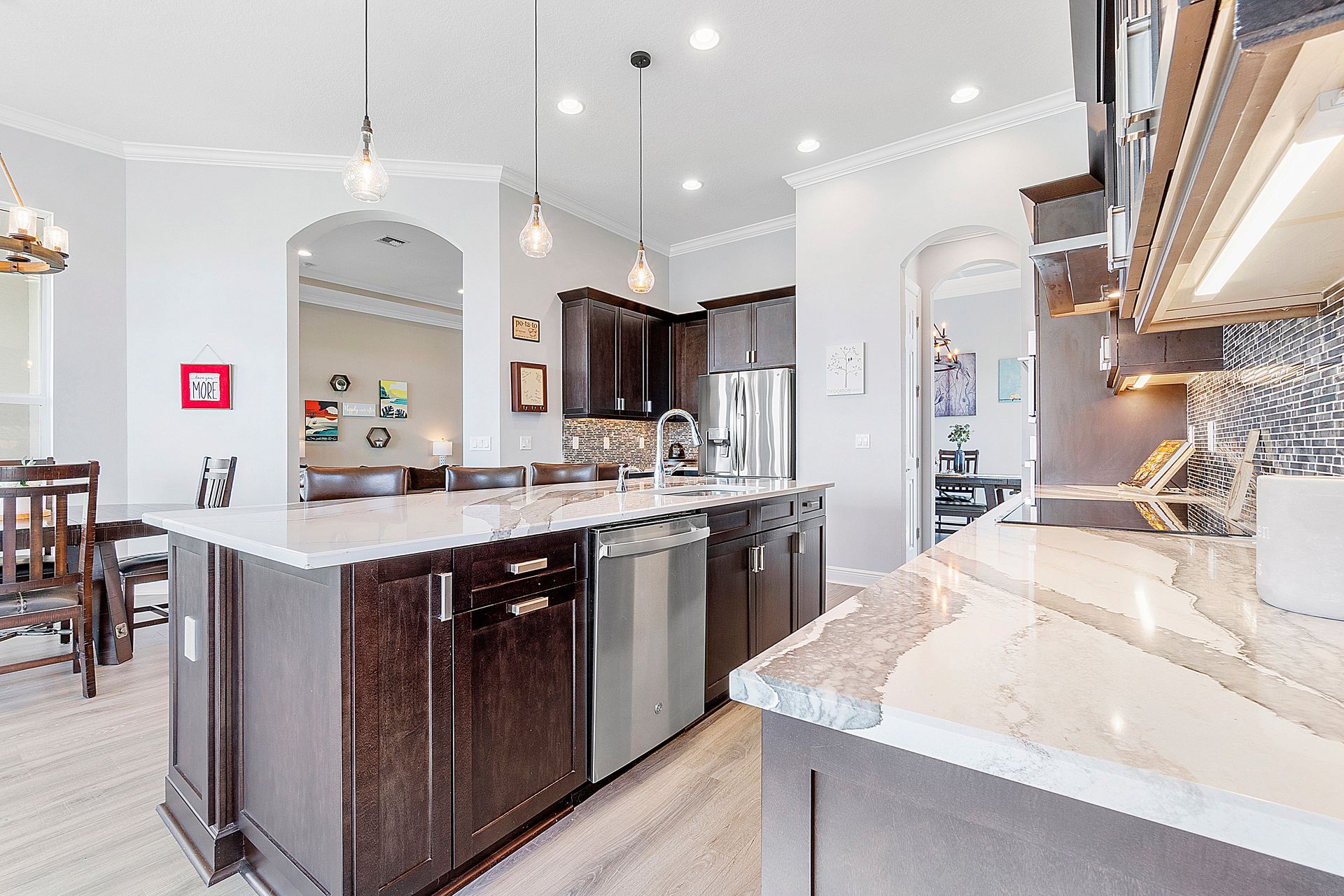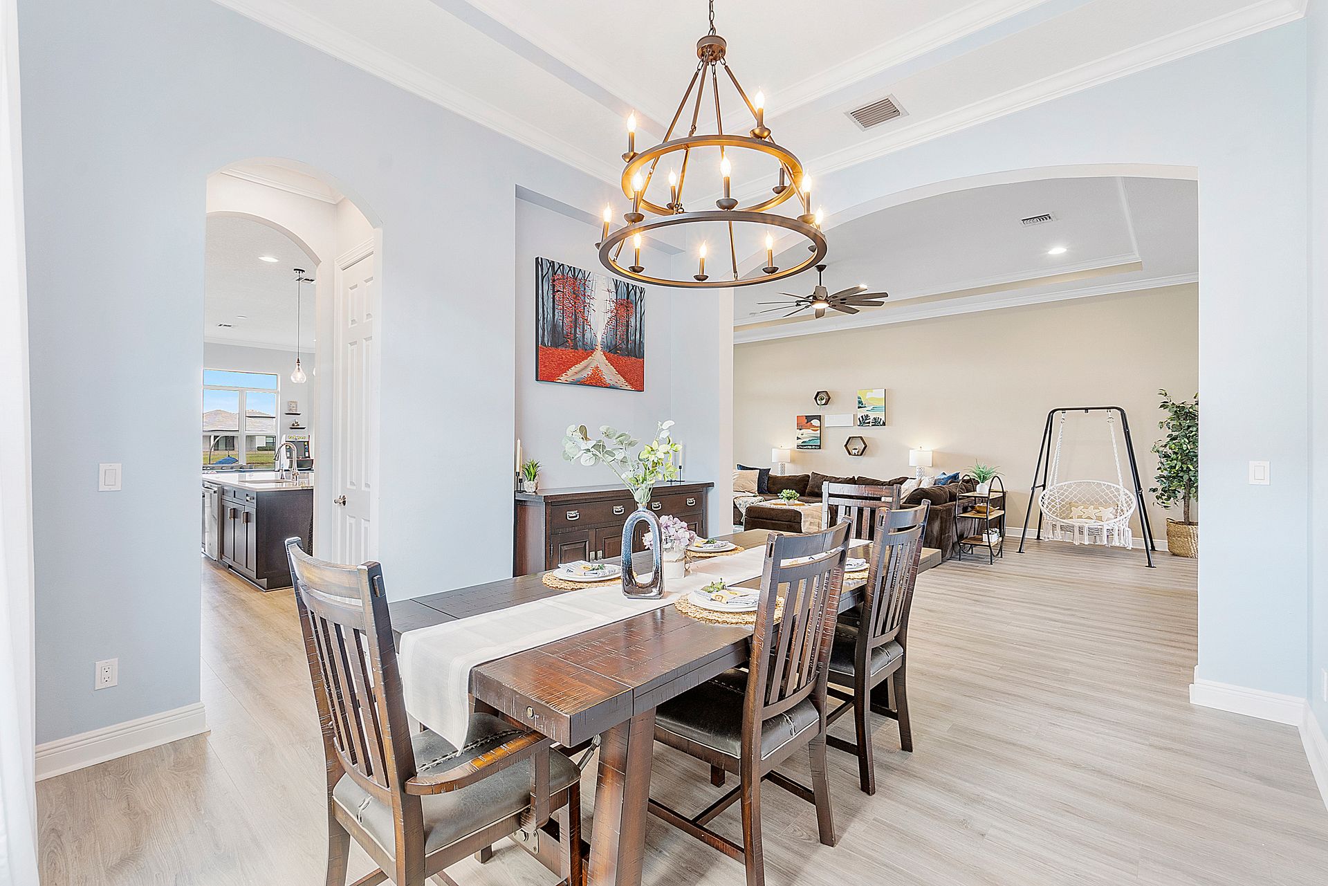 Experience unparalleled golf and resort-style living in the prestigious PGA Verano. This stunning three-bedroom-plus-den, three-and-one-half-bath home offers an extraordinary lifestyle on the wide water, showcasing the extended Collina floorplan that blends elegant design with unparalleled comfort, generous space, and versatility with over $75,000 in upgrades. Tucked away on one of the coveted streets of exclusive homes, the grand double entrance and soaring ceilings set the tone for this exquisite home. The chef's dream kitchen is outfitted with top-of-the-line upgrades, including quartz countertops, upscale appliances, a wall oven, a cooktop, and an oversized pantry. The central kitchen island has a breakfast bar and an additional space for casual dining, while the butler’s pantry doubles as a cozy coffee nook for those peaceful mornings. The grand primary suite serves as your serene retreat, complete with a spacious bath and dual walk-in closets. The split floor plan features two additional en-suite bedrooms, each with its own walk-in closet and bathroom, ensuring privacy and comfort for guests. The home's open-concept great room is ideal for gatherings, offering dual sliders that open to gorgeous water views, bringing the outdoors in, and creating a seamless flow for entertaining. For added convenience, the expansive laundry room is a great bonus, providing ample storage and workspace. Beyond the walls of this magnificent home lies the PGA Village Verano lifestyle as the only planned community affiliated with the 54-hole PGA Golf Club, cart path access to the course, Club Talavera, including South Florida's largest private Pickleball Center with 27 courts, pools, a state-of-the-art fitness center, and a full complement of courts for tennis, bocce, and basketball, cabanas and a sun deck adds a touch of vacation to everyday life. Come experience a life of unmatched luxury in PGA Verano, where elegance, comfort, and world-class amenities converge.