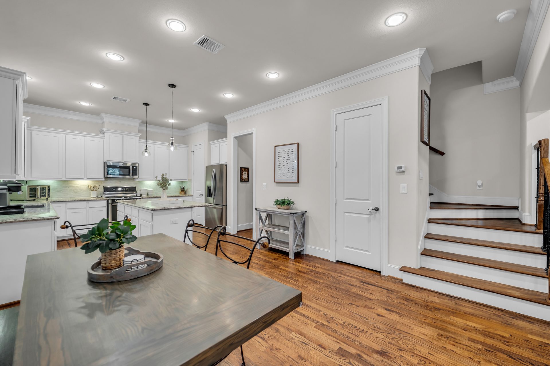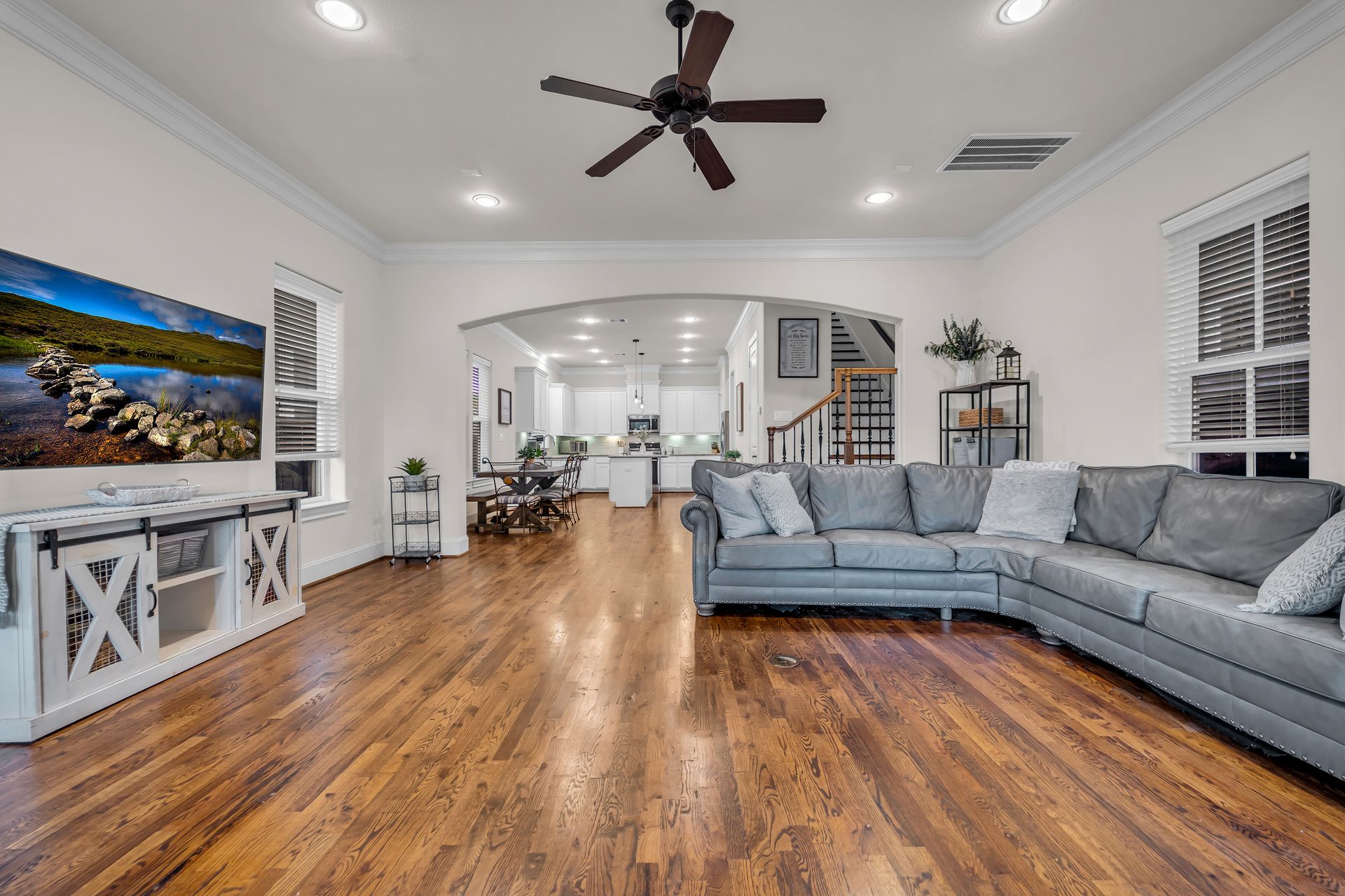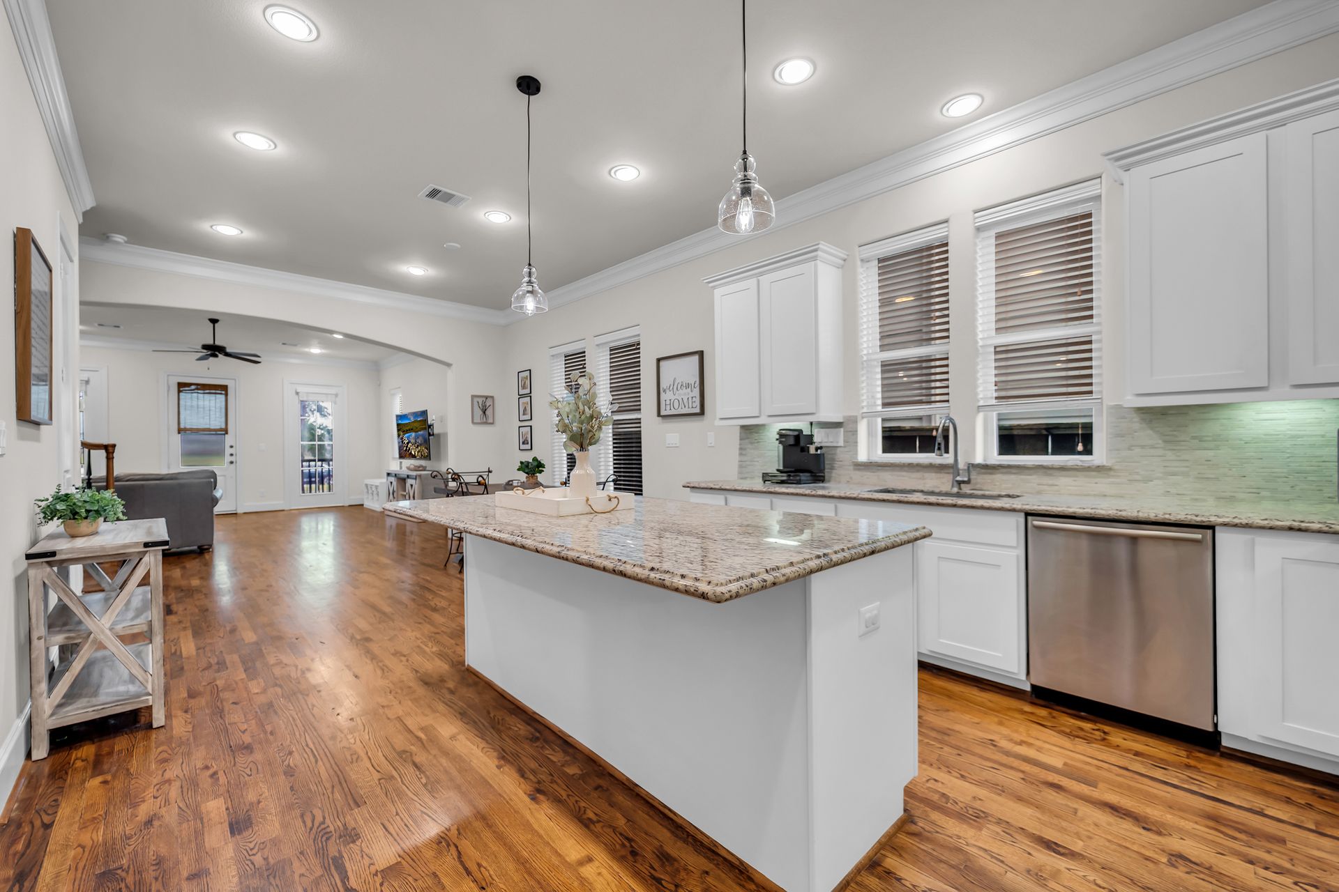 Welcome to 8720 Kempwood — where timeless style meets modern comfort in the heart of Spring Branch. This beautifully designed three-bedroom, two-and-a-half-bath home features a charming covered front porch, classic wood floors, soaring ceilings, crisp crown molding, and large windows that fill the home with natural light. The spacious open-concept layout is perfect for entertaining, while the chef-inspired kitchen boasts a massive functional island, granite countertops, and high-end finishes throughout. The oversized primary suite offers a luxurious retreat with two large walk-in closets and a spa-like bath adorned with designer touches. Outside, enjoy private gate access to the garage, additional parking, and a sprinkler system for easy lawn maintenance. Conveniently located near Beltway 8, I-10, Hwy 290, and the 610 Loop, providing quick access to Downtown, Memorial Park, the Galleria, and the Energy Corridor. No flooding during Harvey and no MUD tax. Make your appointment to see this gem today!