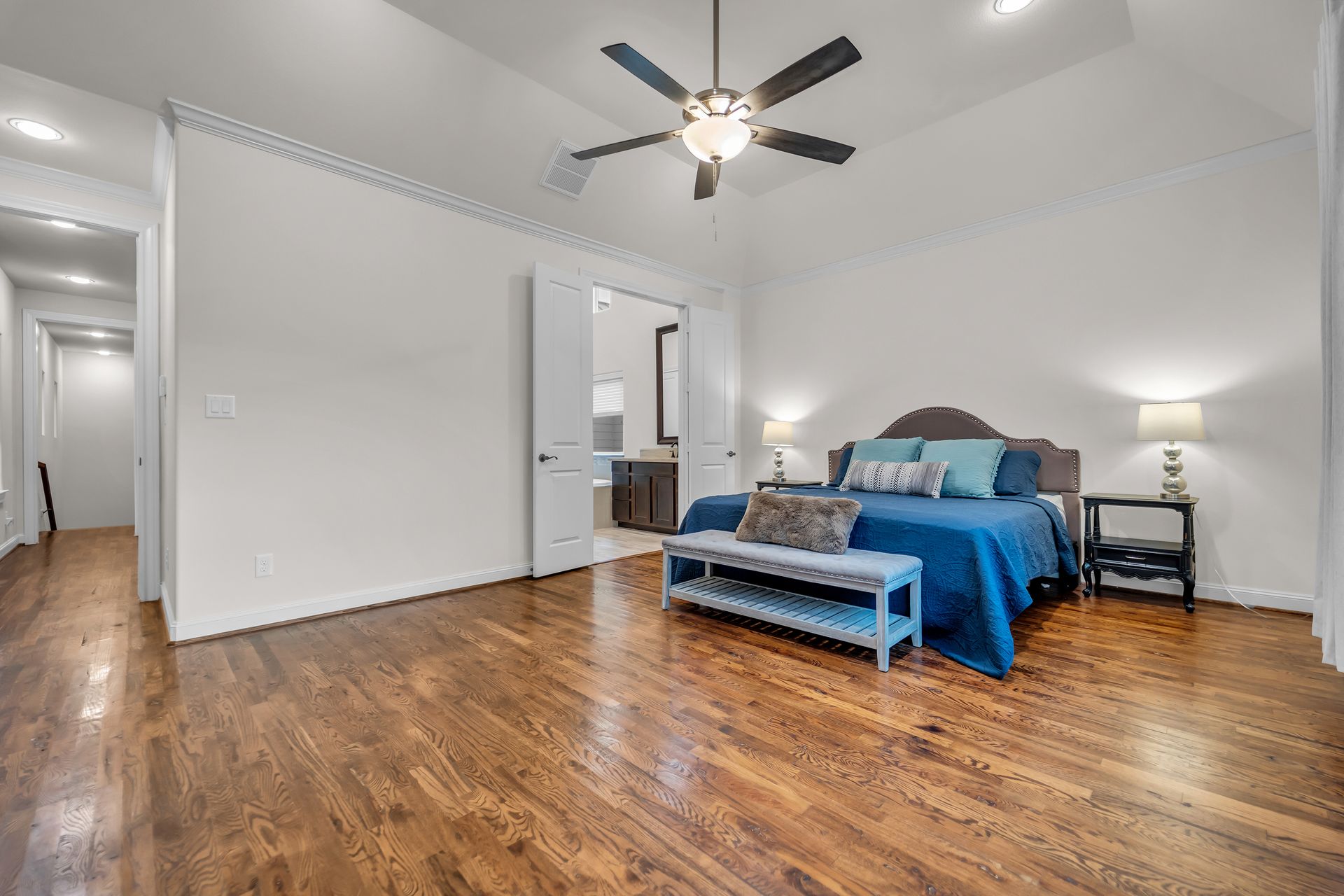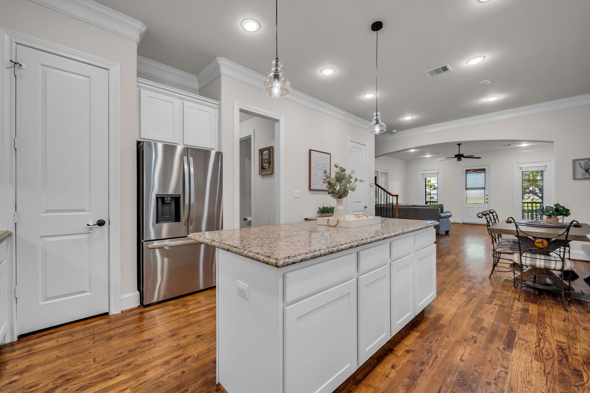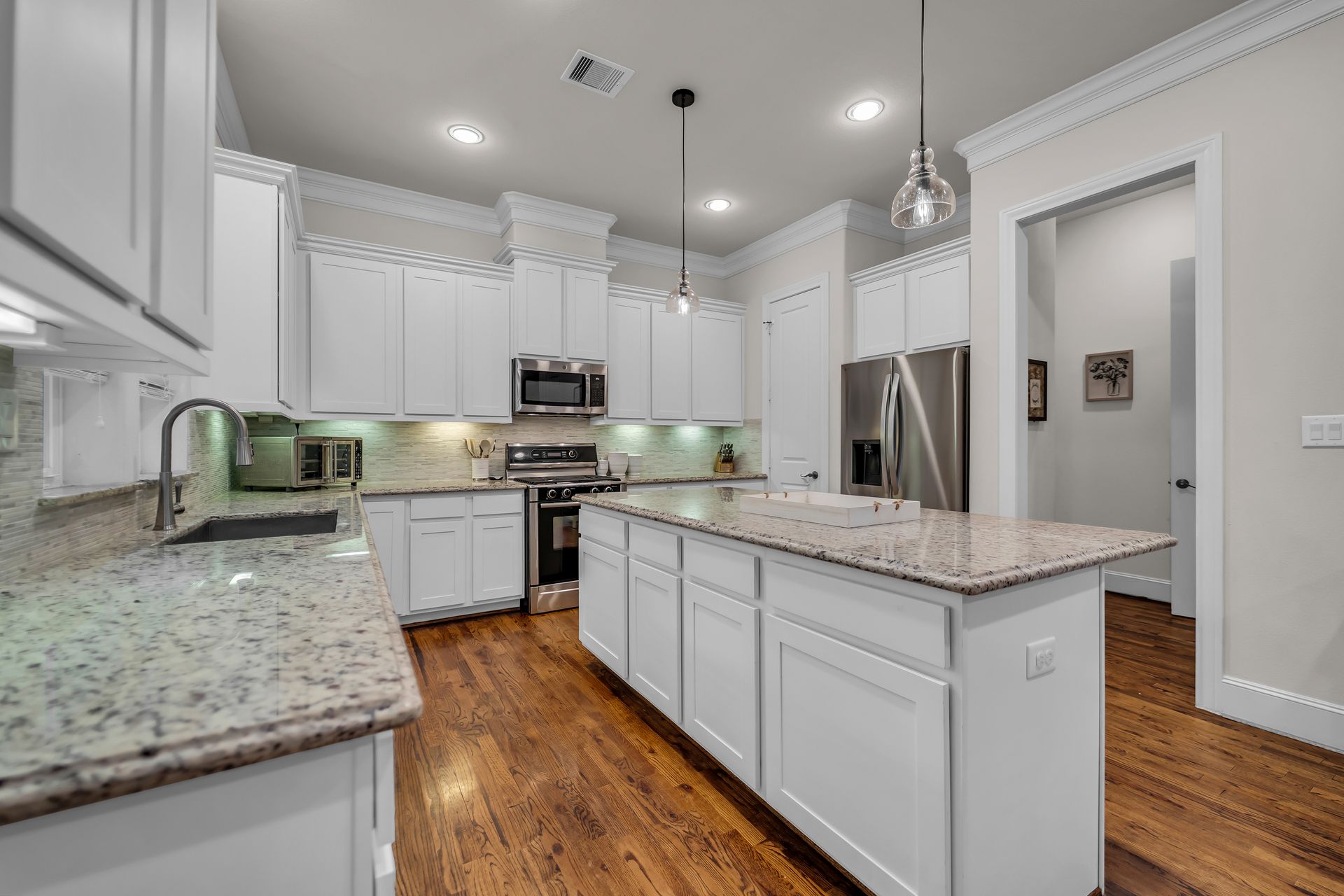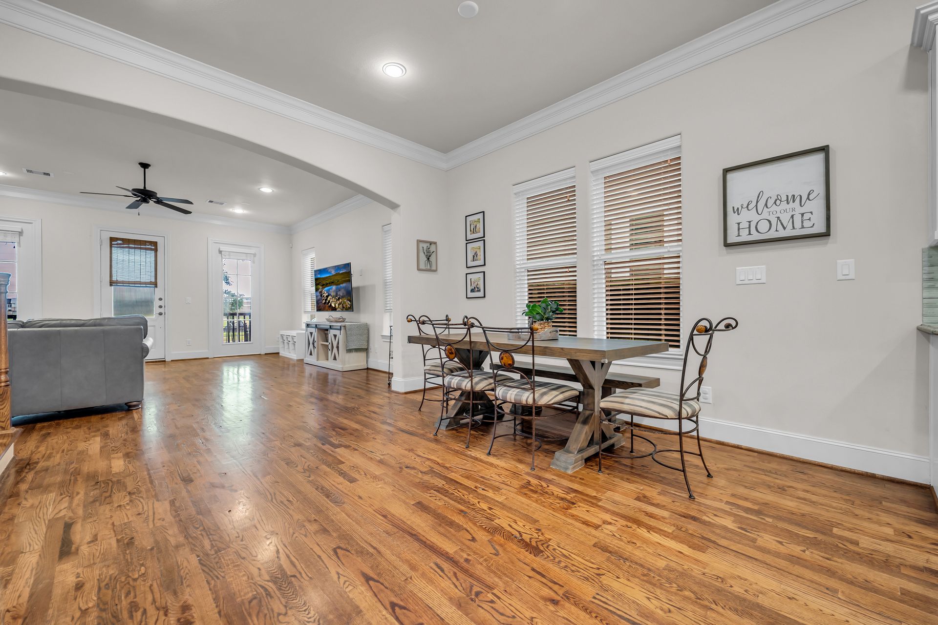 Welcome to 8720 Kempwood — where timeless style meets modern comfort in the heart of Spring Branch. This beautifully designed three-bedroom, two-and-a-half-bath home features a charming covered front porch, classic wood floors, soaring ceilings, crisp crown molding, and large windows that fill the home with natural light. The spacious open-concept layout is perfect for entertaining, while the chef-inspired kitchen boasts a massive functional island, granite countertops, and high-end finishes throughout. The oversized primary suite offers a luxurious retreat with two large walk-in closets and a spa-like bath adorned with designer touches. Outside, enjoy private gate access to the garage, additional parking, and a sprinkler system for easy lawn maintenance. Conveniently located near Beltway 8, I-10, Hwy 290, and the 610 Loop, providing quick access to Downtown, Memorial Park, the Galleria, and the Energy Corridor. No flooding during Harvey and no MUD tax. Make your appointment to see this gem today!