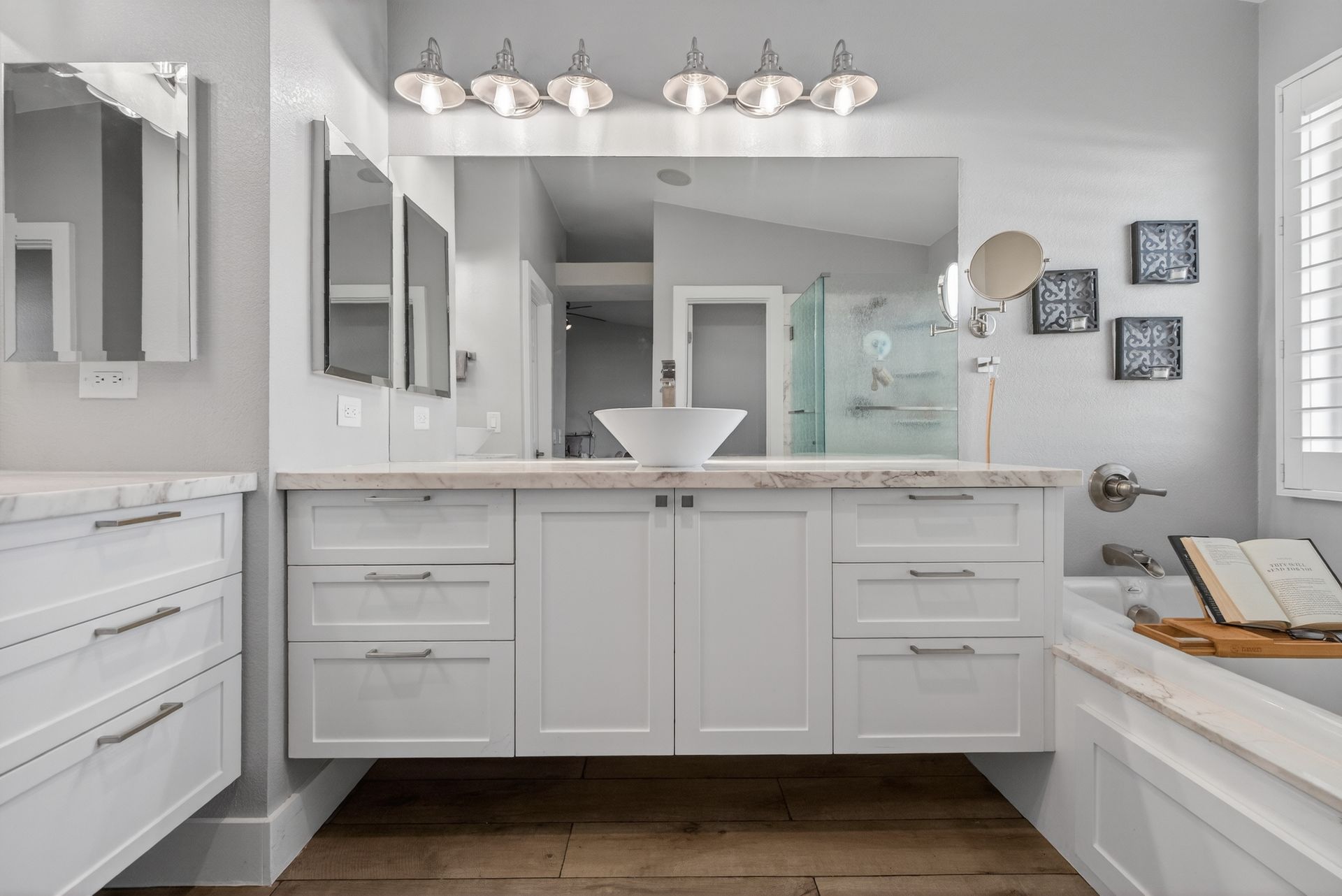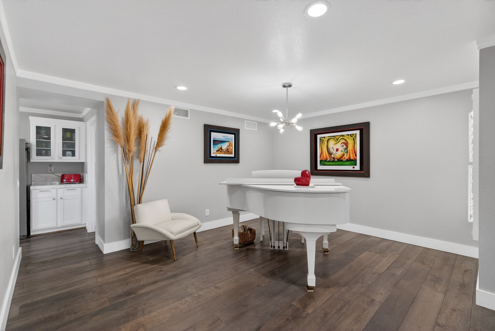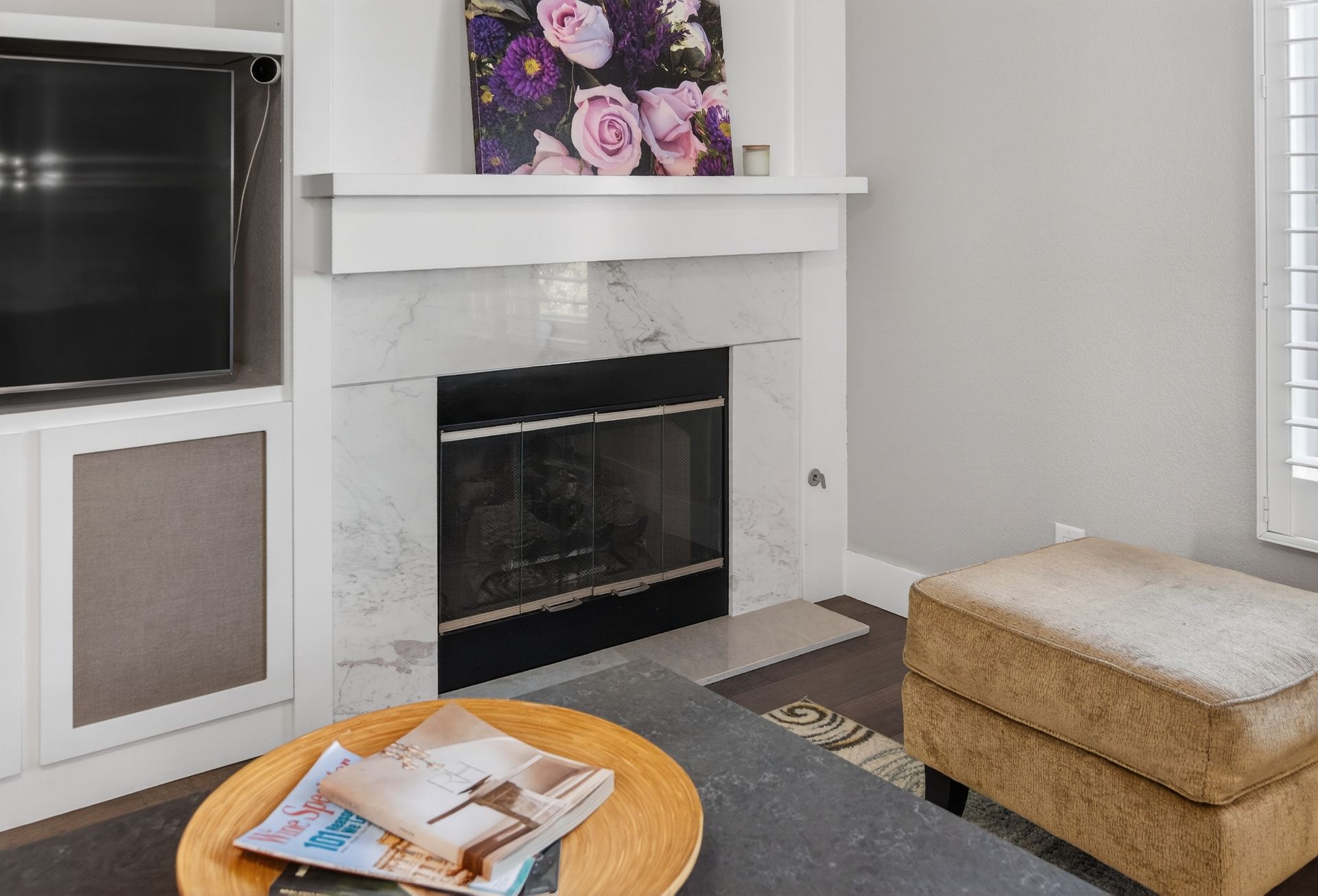 Premium finishes include real wood flooring, custom cabinetry, designer lighting, and a THX Ultra sound system with multiple audio zones throughout the main level and primary suite. A fully paid‑off solar system adds incredible energy savings—currently operating at a credit.