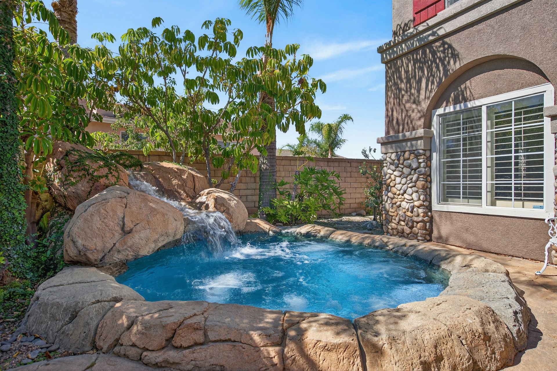Stunning, Fully Updated Luxury Home in Prime South Corona! This beautifully renovated home sits on a well‑designed lot and offers true move‑in luxury. The front exterior features a striking custom stone façade and an impressive 10‑person heated waterfall spa—perfect for relaxing or entertaining.