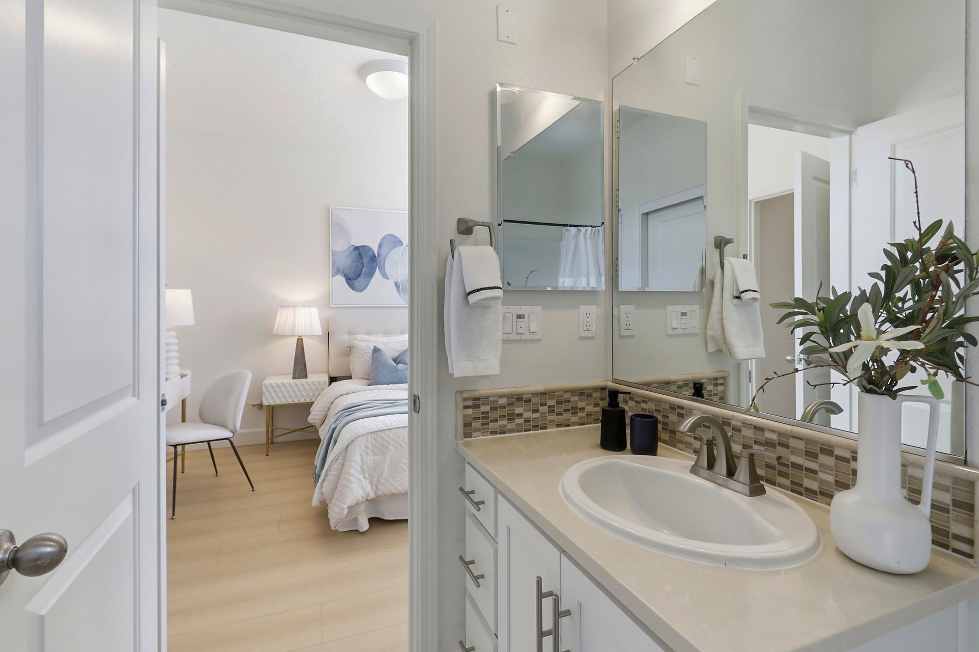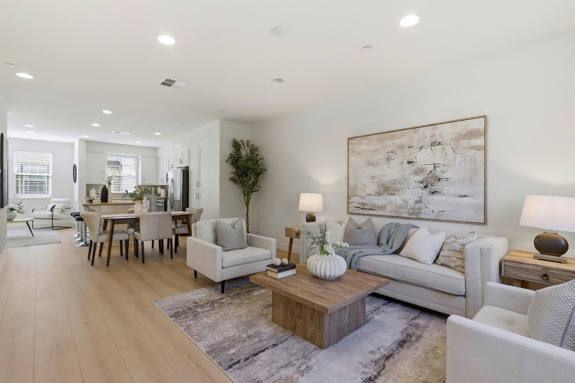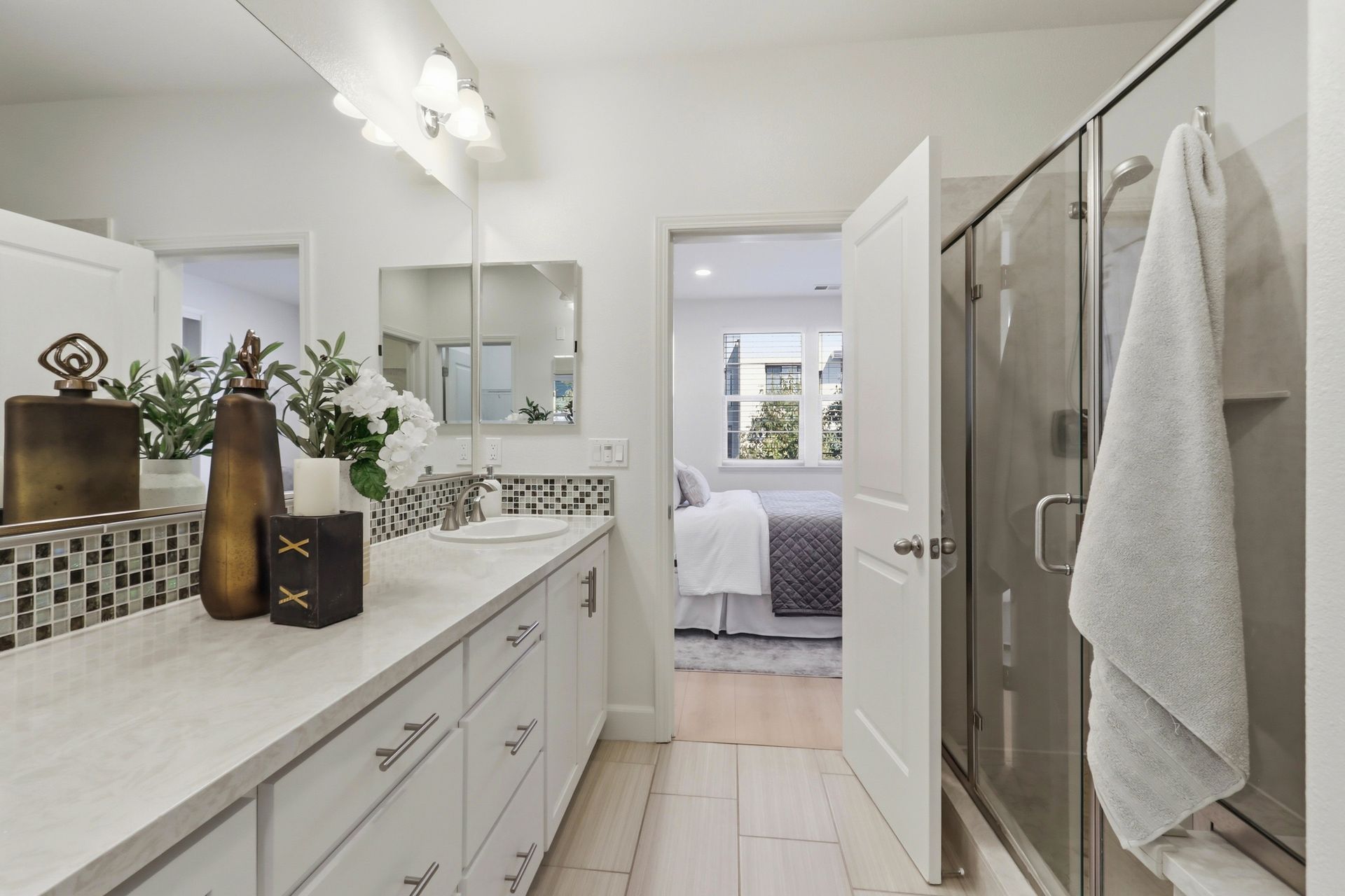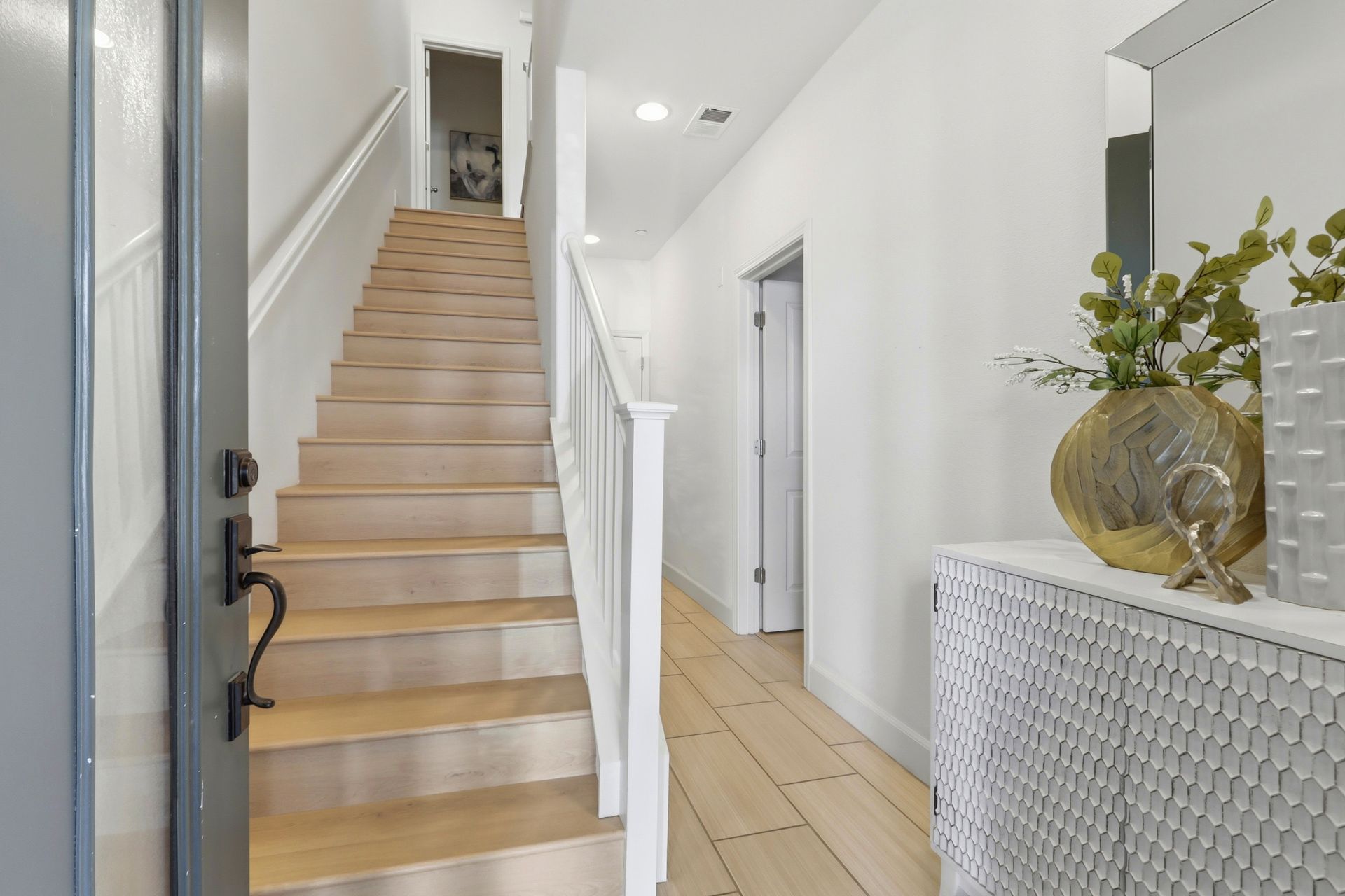 Welcome to comfort and elegance! This home offers approximately 1,730-square feet of living space with three bedrooms and three and a half baths! One bedroom with en-suite bath is located on the ground floor, while level 2 offers an open floor plan boasting a living room with balcony access, a dining area, a half bath and a kitchen with granite counters, a large island and stainless-steel appliances, including a gas cooktop. On the third floor sits the primary bedroom and junior suite. This home also has indoor laundry, central A/C and a two-car garage. Complex has a swimming pool, BBQ area and playground and is next to Central Park. Easy access to the Apple Campus, shopping, schools and Kaiser.