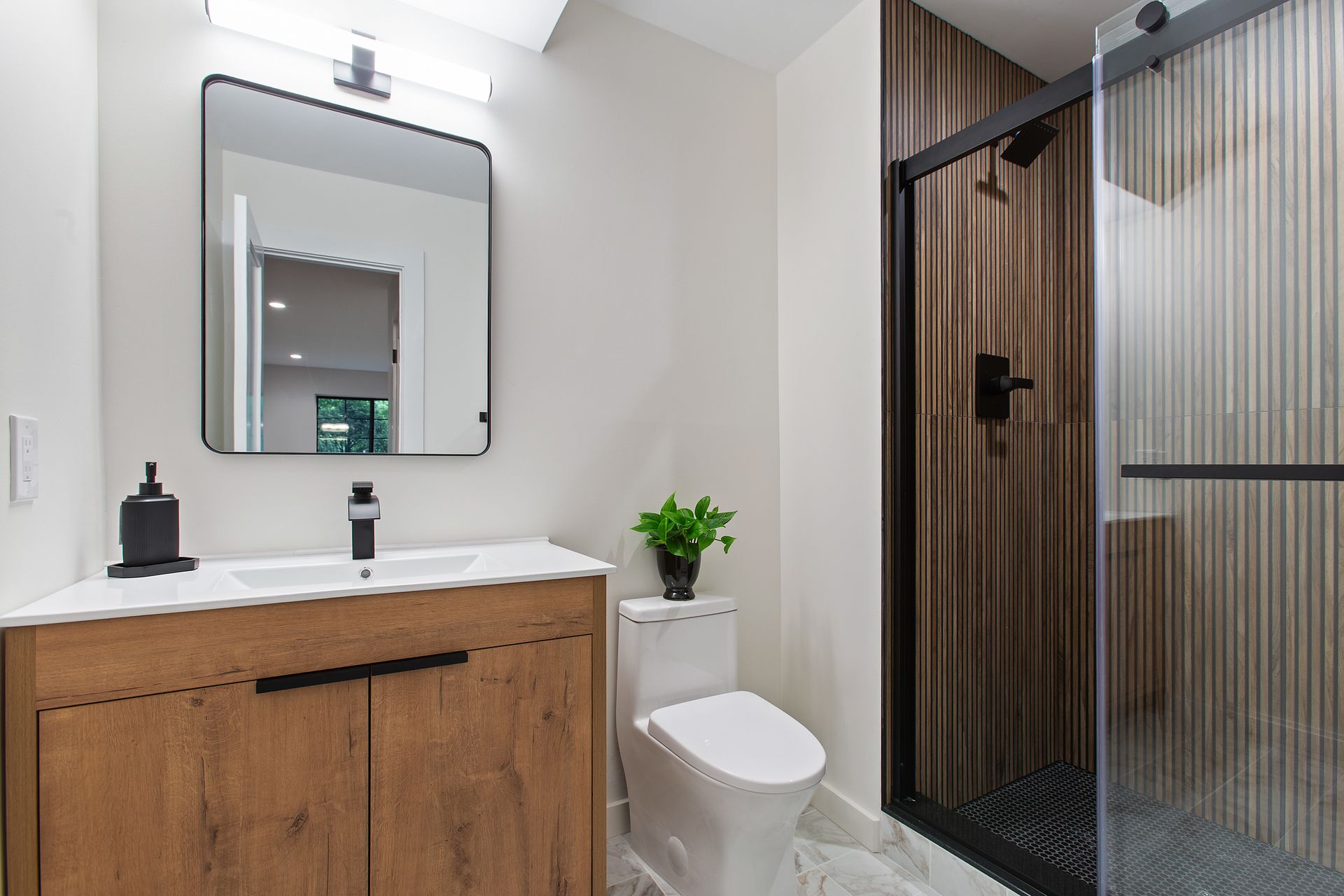 Completely new bathrooms including vanities, lighting, tile showers and bath fixtures