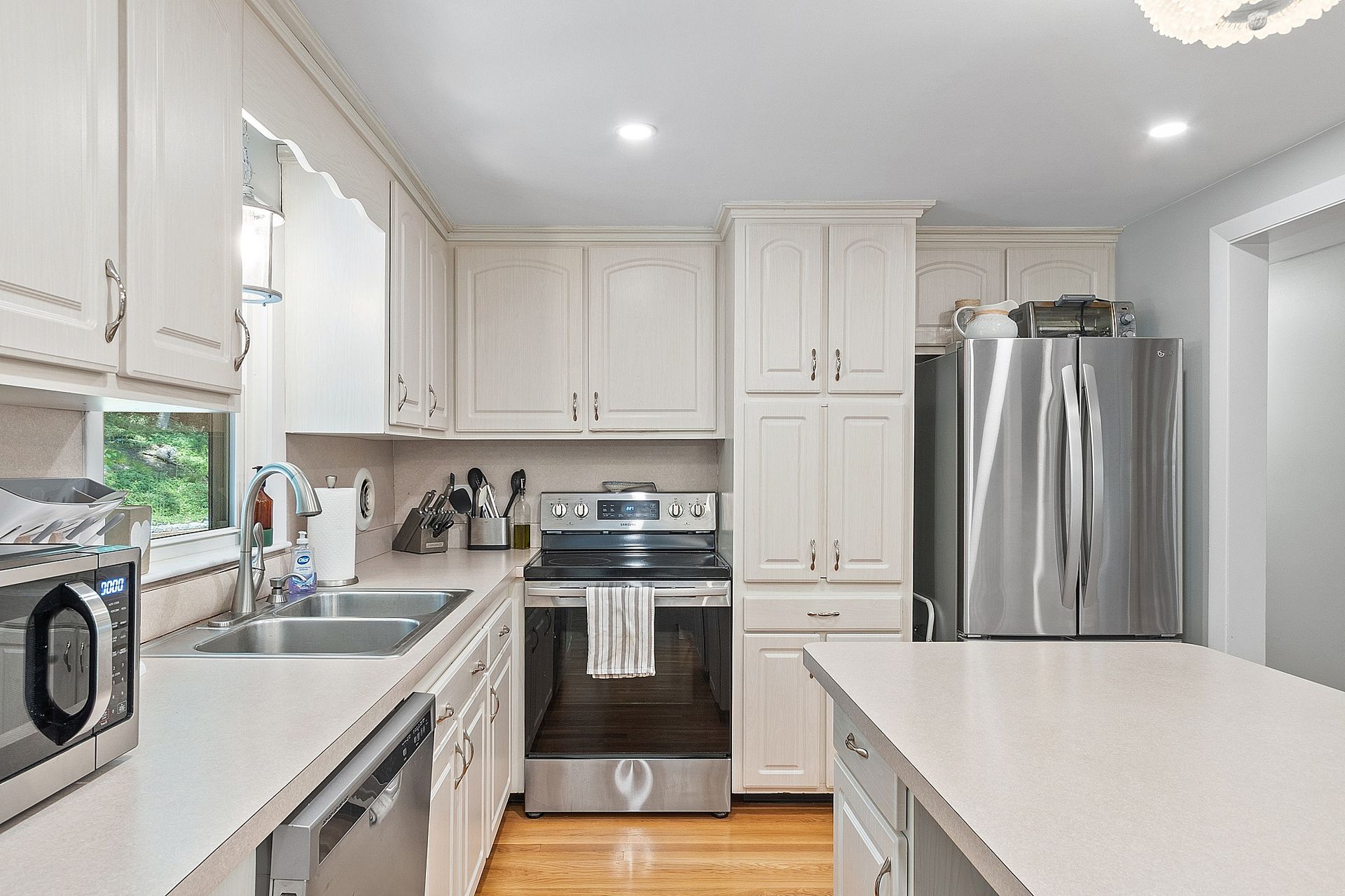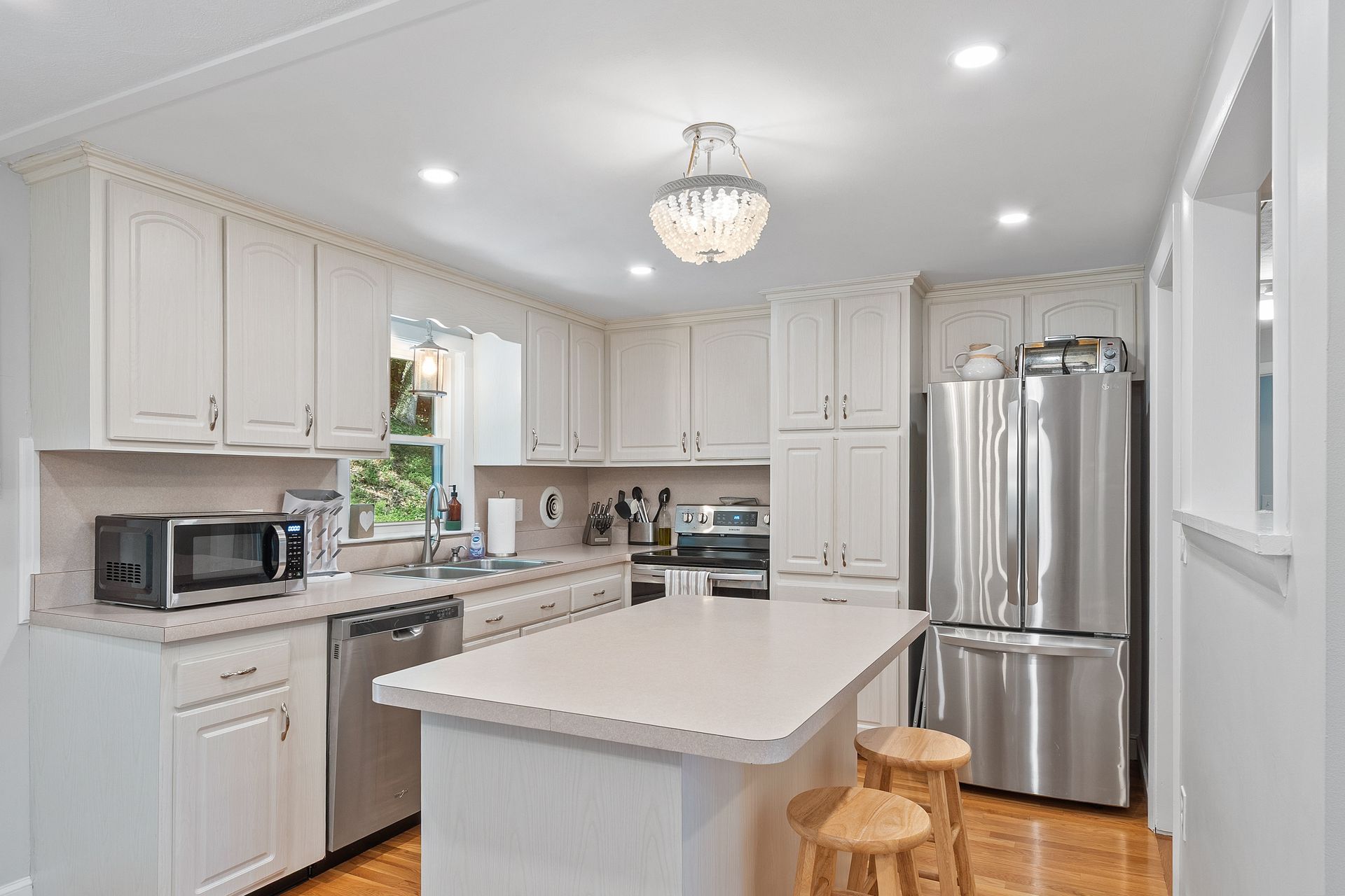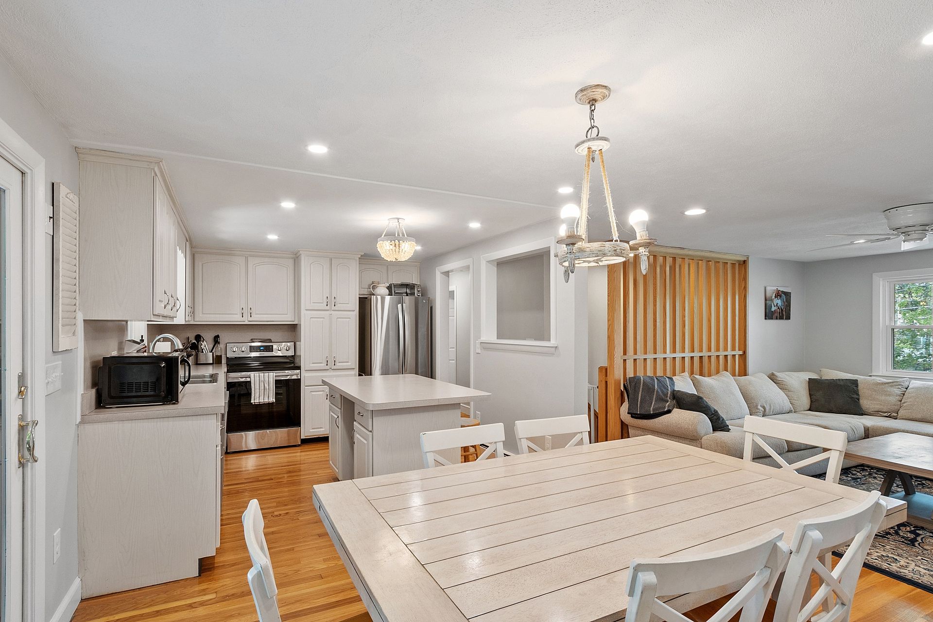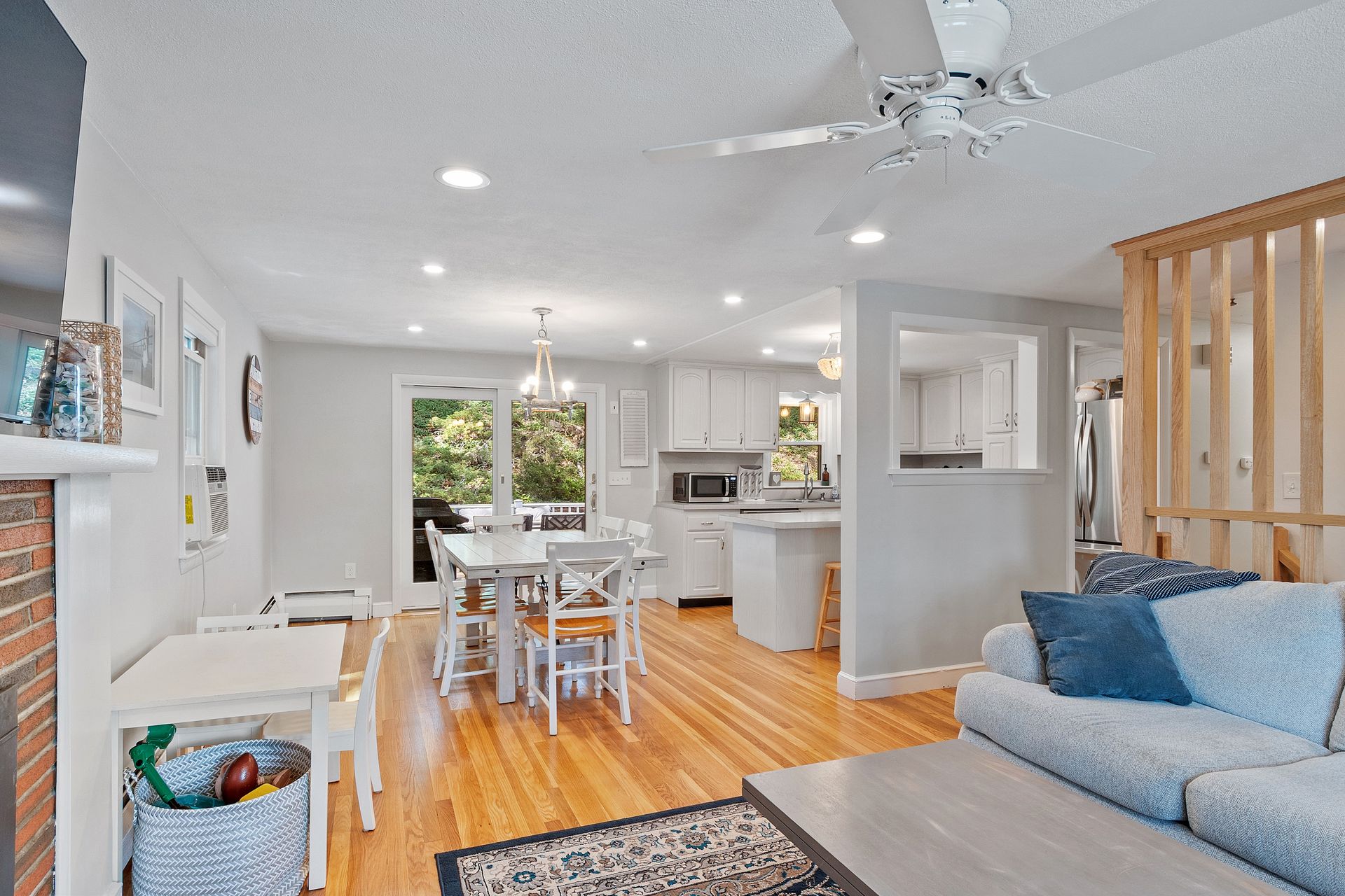 Welcome to your dream home in the coveted Robin Hood area of Stoneham! This charming 3-bedroom, 1.5-bath home is ideally located, offering easy access to shopping, major routes, and close proximity to Boston. The heart of the home is the open-concept kitchen, dining, and living area, complete with a cozy fireplace for those chilly New England nights. A slider door leads you to a spacious deck, perfect for summer barbecues or a quiet morning coffee, overlooking a private, fenced yard. The lower level boasts a large finished bonus space as well as half bathroom, laundry area and storage space, as well as another fireplace, perfect for a game room, home office, or guest room. Plus, the convenience of a one-car attached garage for those snowy winter days. This home is a perfect blend of comfort and convenience, Nothing to do but move in and enjoy!