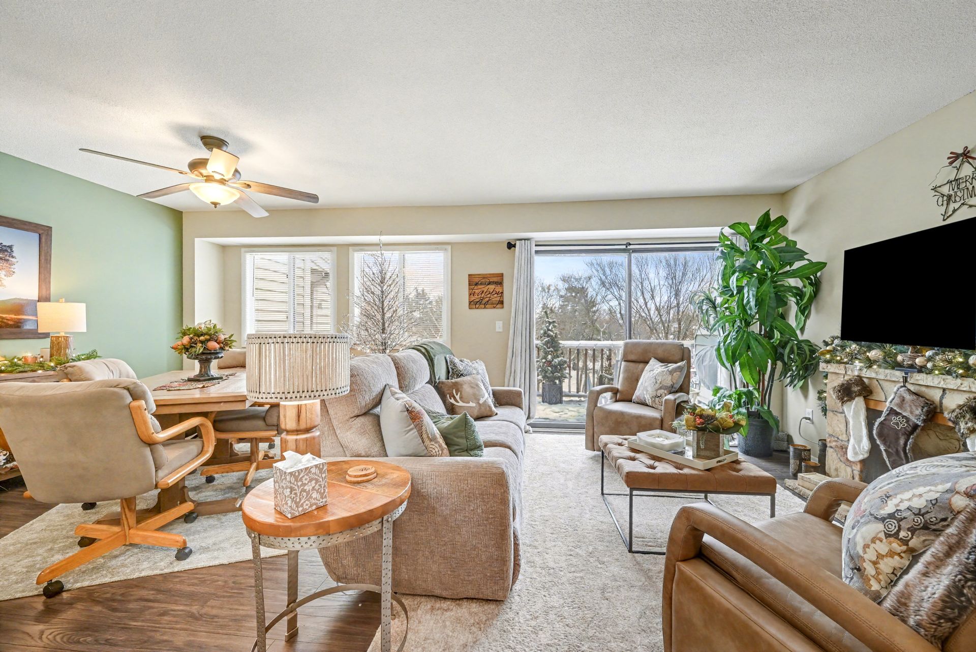 Private retreat surrounded by nature. This thoughtfully designed Preserve condo offers the perfect blend of tranquility and modern suburban living. The expansive main-level window shower the home with natural light and amazing views. You will enjoy your oversized deck offering views of trees, nature, trails and the sand-bottom pool. The kitchen is a chef's dream with stainless appliances and peninsula countertop that is ideal for entertaining. The private upper level includes a primary bedroom with double closets and ensuite bath, a second bedroom and full bath. The upper level washer and dryer is also conveniently located. New front deck of the main building was just replaced this year with maintenance free material. Other updates include fresh paint (2025), water heater (2017), kitchen remodel/flooring (2016), HVAC (2013), upper-level windows (2012), roof (2010). Enjoy the acres of scenic trails that wrap around Neill Lake right outside your door. Conveniently located a few minutes from the Eden Prairie Mall and an abundance of retail shopping.