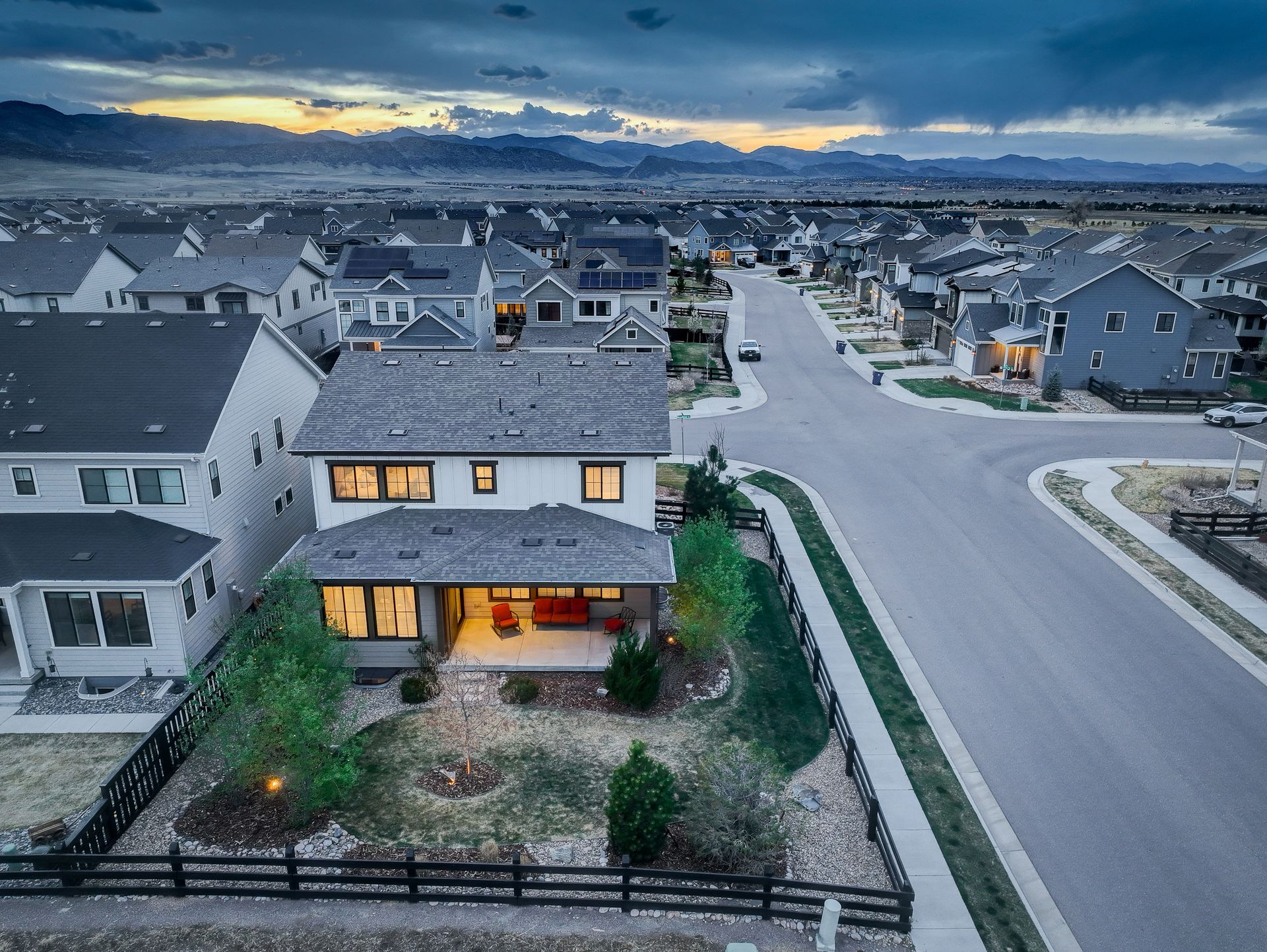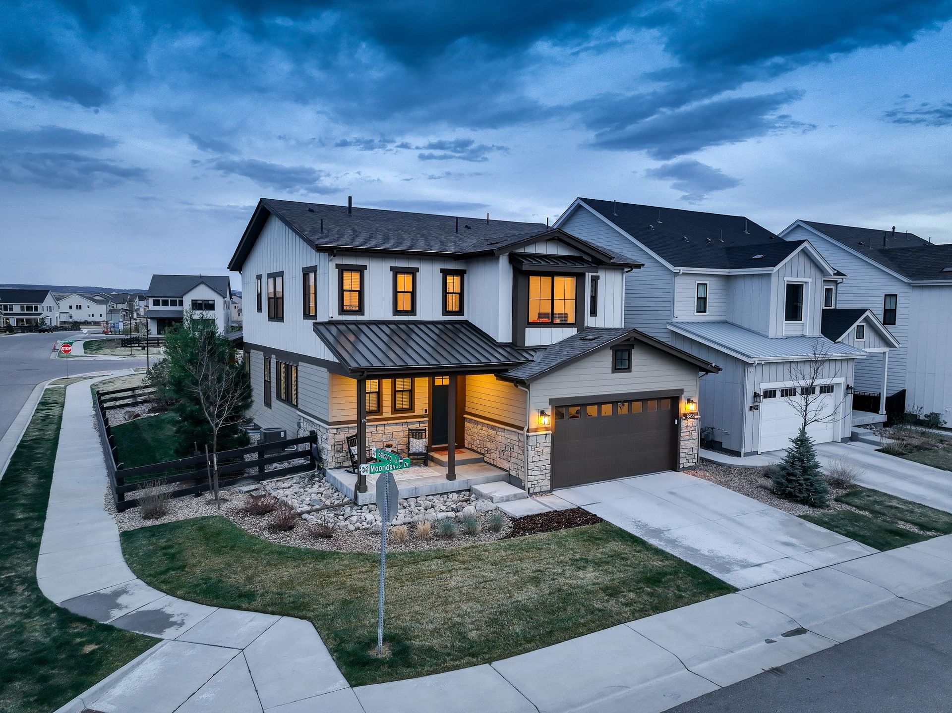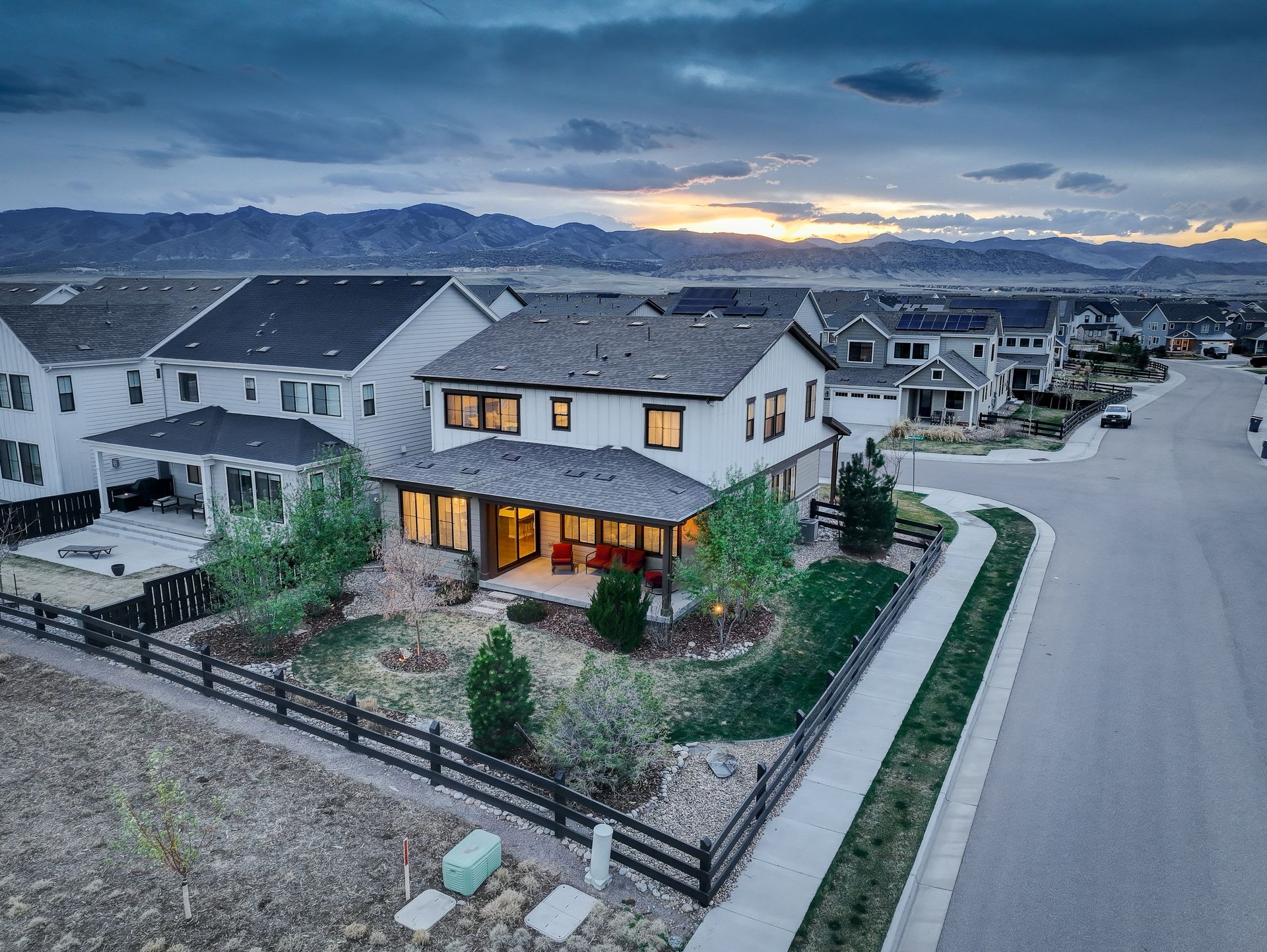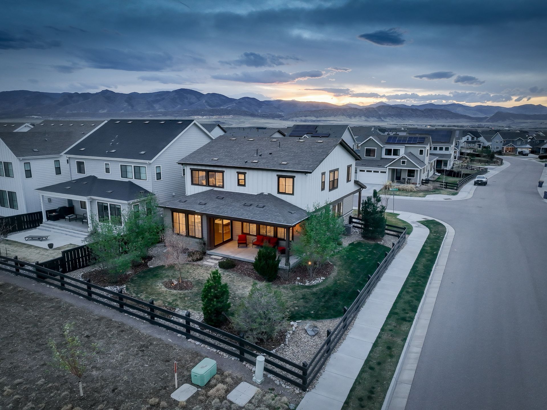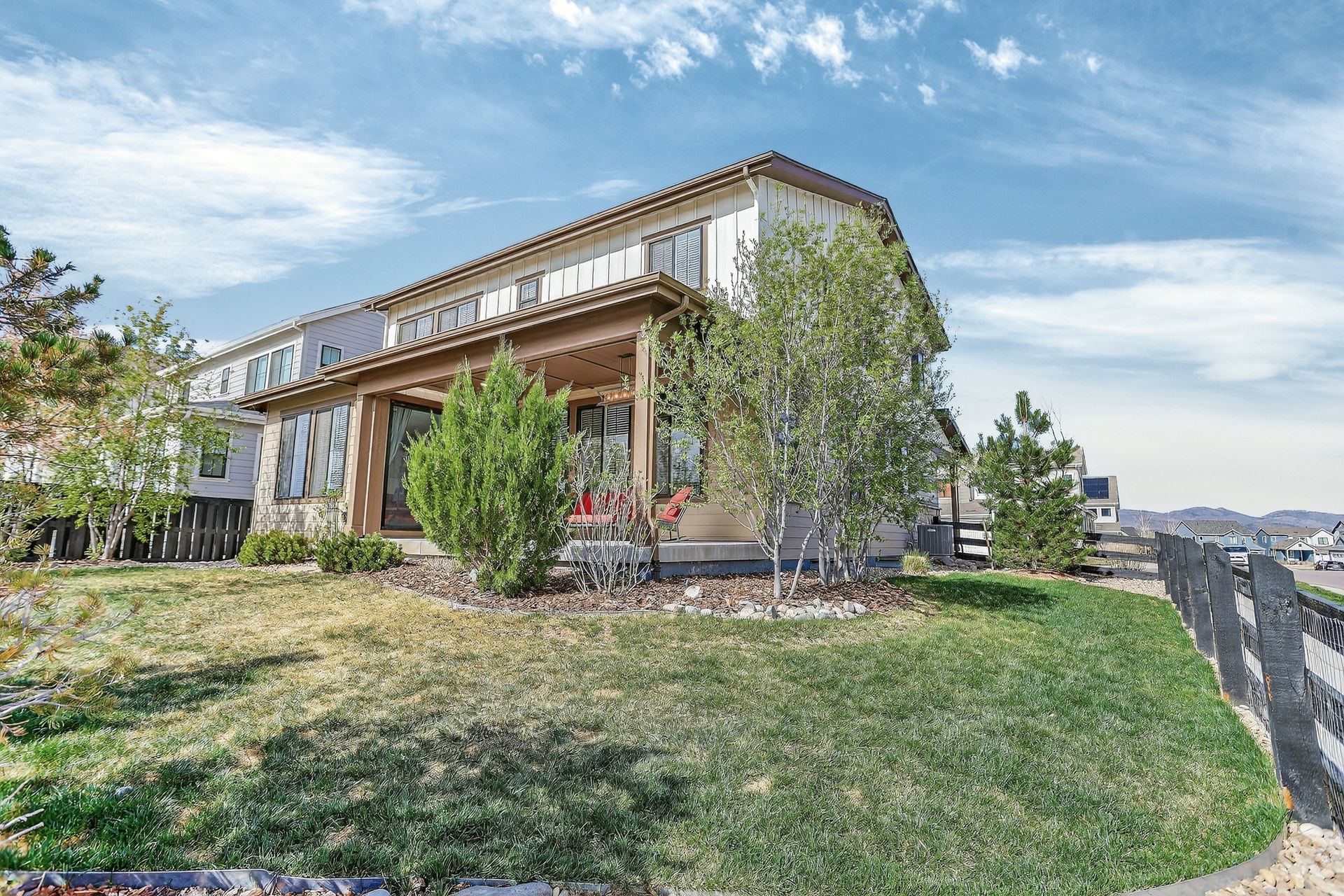 The comfort of home meets unbeatable access to Colorado’s great outdoors in this four-bed, four-bath, 2,615 square-foot gem in the Solstice Community. Inside, the open layout, luxury finishes, and thoughtful accents make everyday life feel seamless and decadent. The main level is ripe with upgrades from the designer chandelier in the dining room to the kitchen’s double ovens, grand island, quartz counters, and GE Café appliances. Easily access the beautiful corner lot backyard through the sliding double doors in the dining room. Curl up to relax by the living room’s beautiful fireplace, which opens conveniently to the kitchen. Whether you work from home or need a quiet retreat for homework and projects, the main level office welcomes you with a pendant light and stylish accent wall. Upstairs, find the primary bedroom and three additional bedrooms. The primary flaunts luxury finishes, including a spa-inspired bathroom, a generous walk-in closet, a double vanity, a ceiling fan, and beautiful views. Two more bathrooms are located on the upper level, as is the laundry room for ultimate ease and convenience. Situated near the High Line Canal trail and the iconic Chatfield State Park, this home is an outdoor lover’s dream. The corner lot gives you a spacious backyard, and it’s full of mature trees and thoughtful landscaping to create the ideal outdoor retreat. Hop over to the nearby greenbelt to access miles of beautiful trails and endless water recreation opportunities at Chatfield Reservoir. Solstice’s world-class recreation center, complete with a fitness center, pool, poolside bar, and community events, is ready to welcome you. This move-in ready luxury home is ready for its next lucky owner. Don’t miss it!