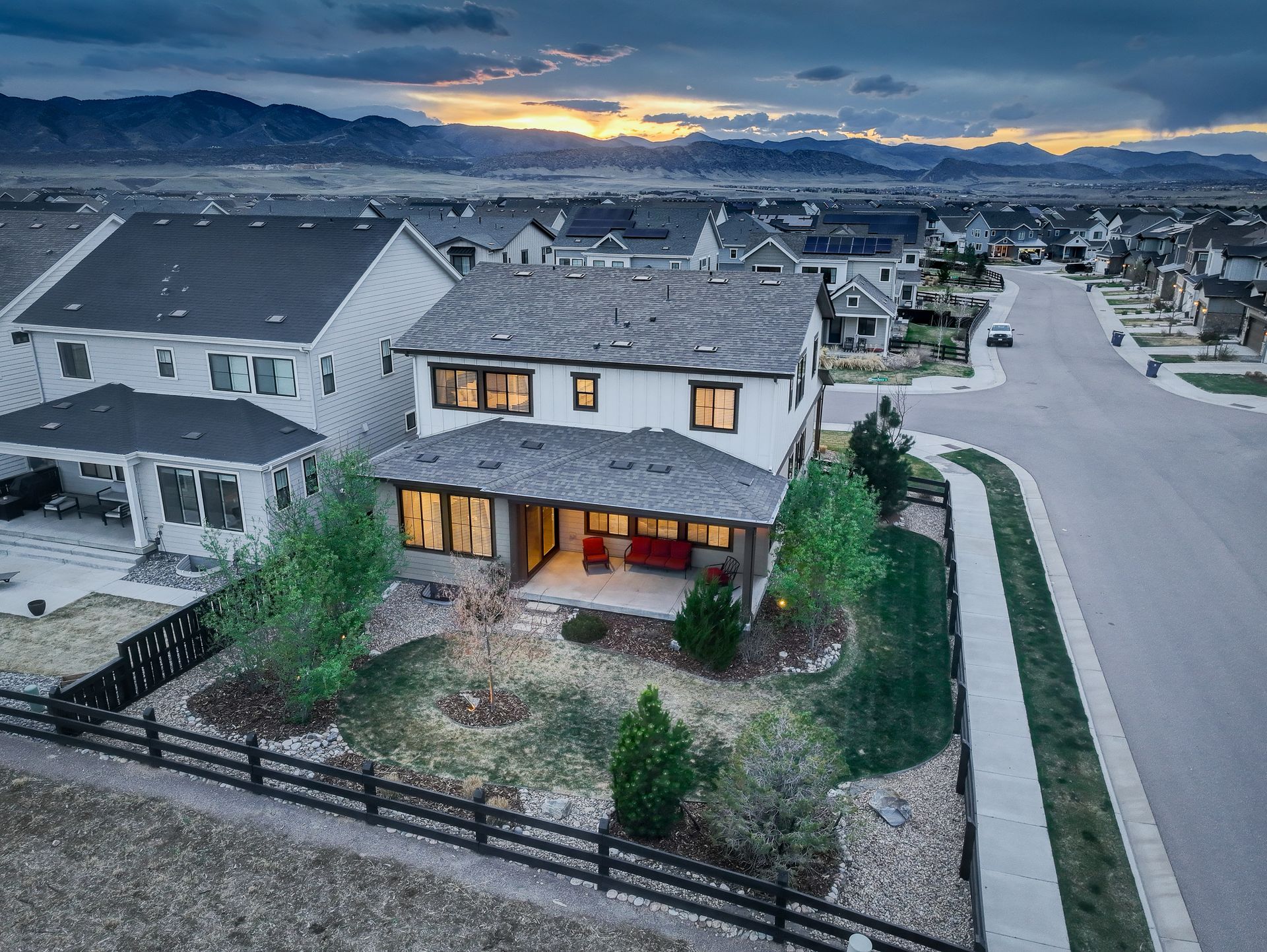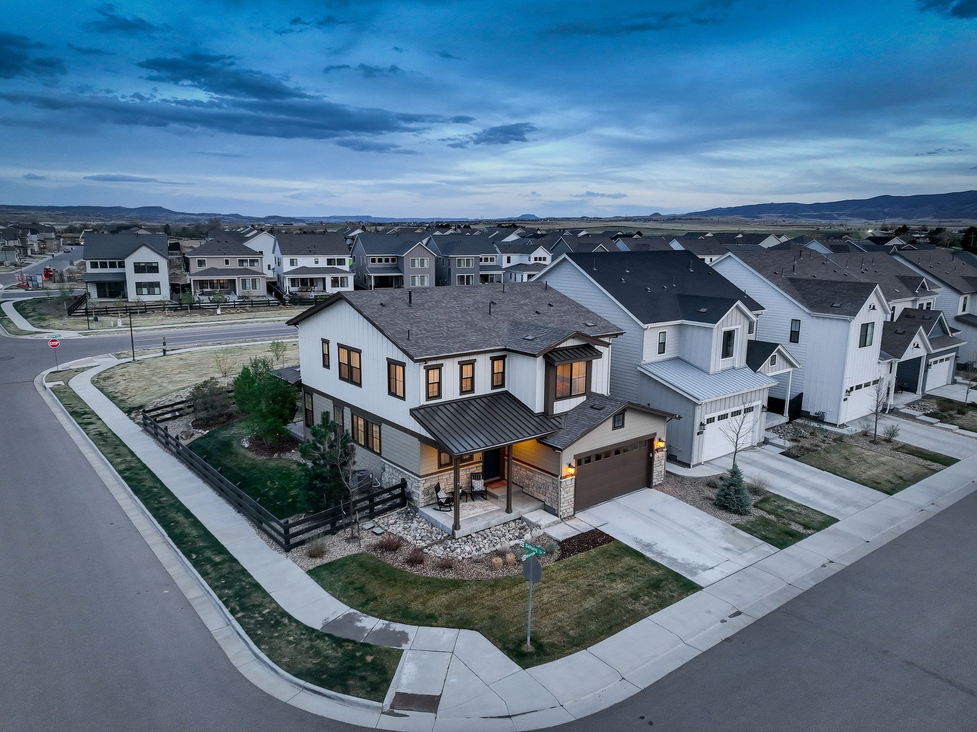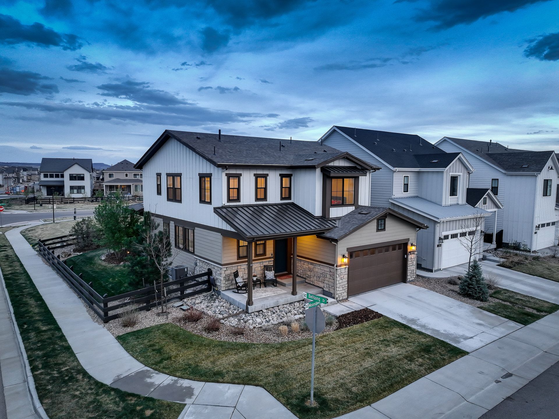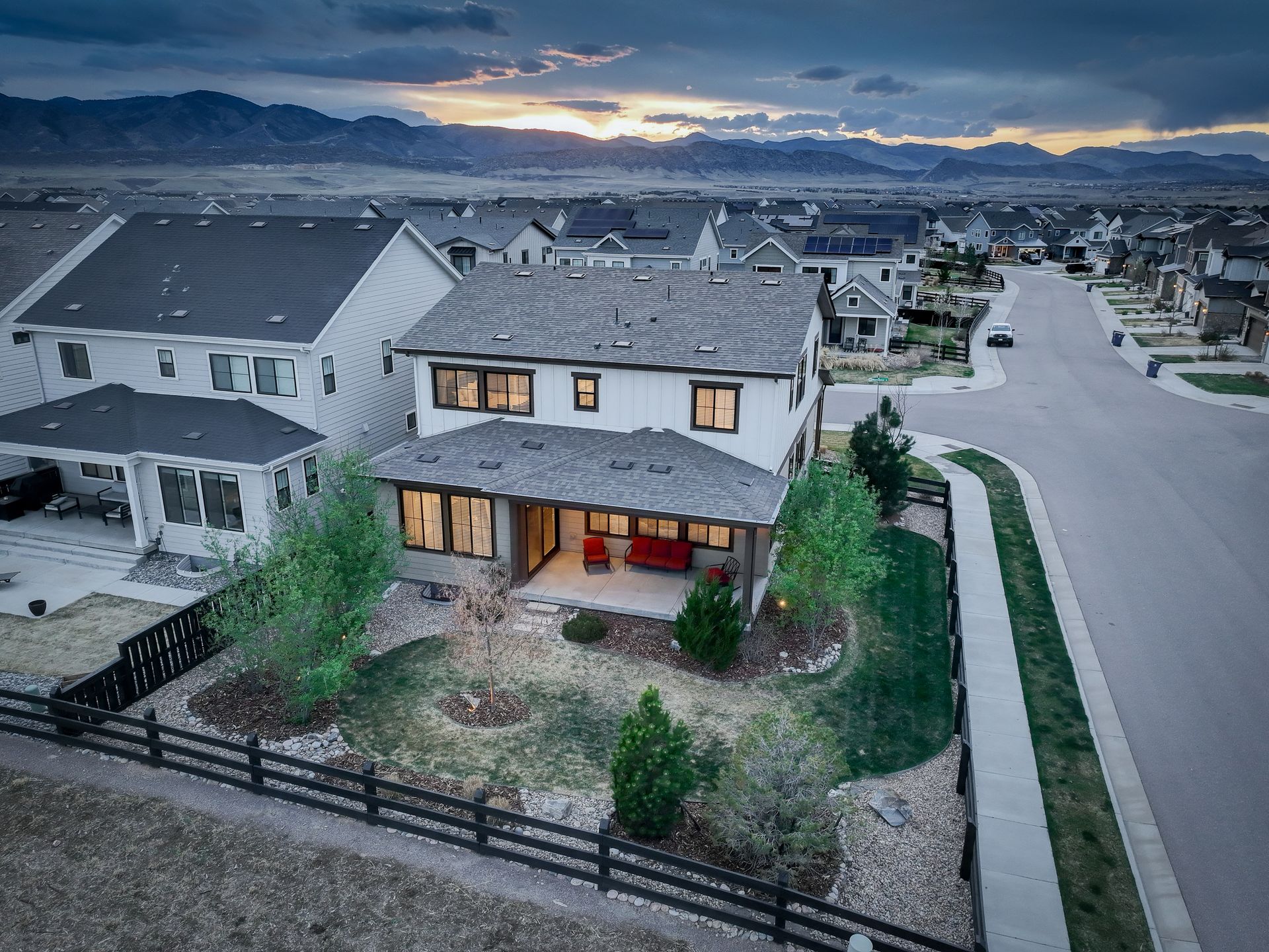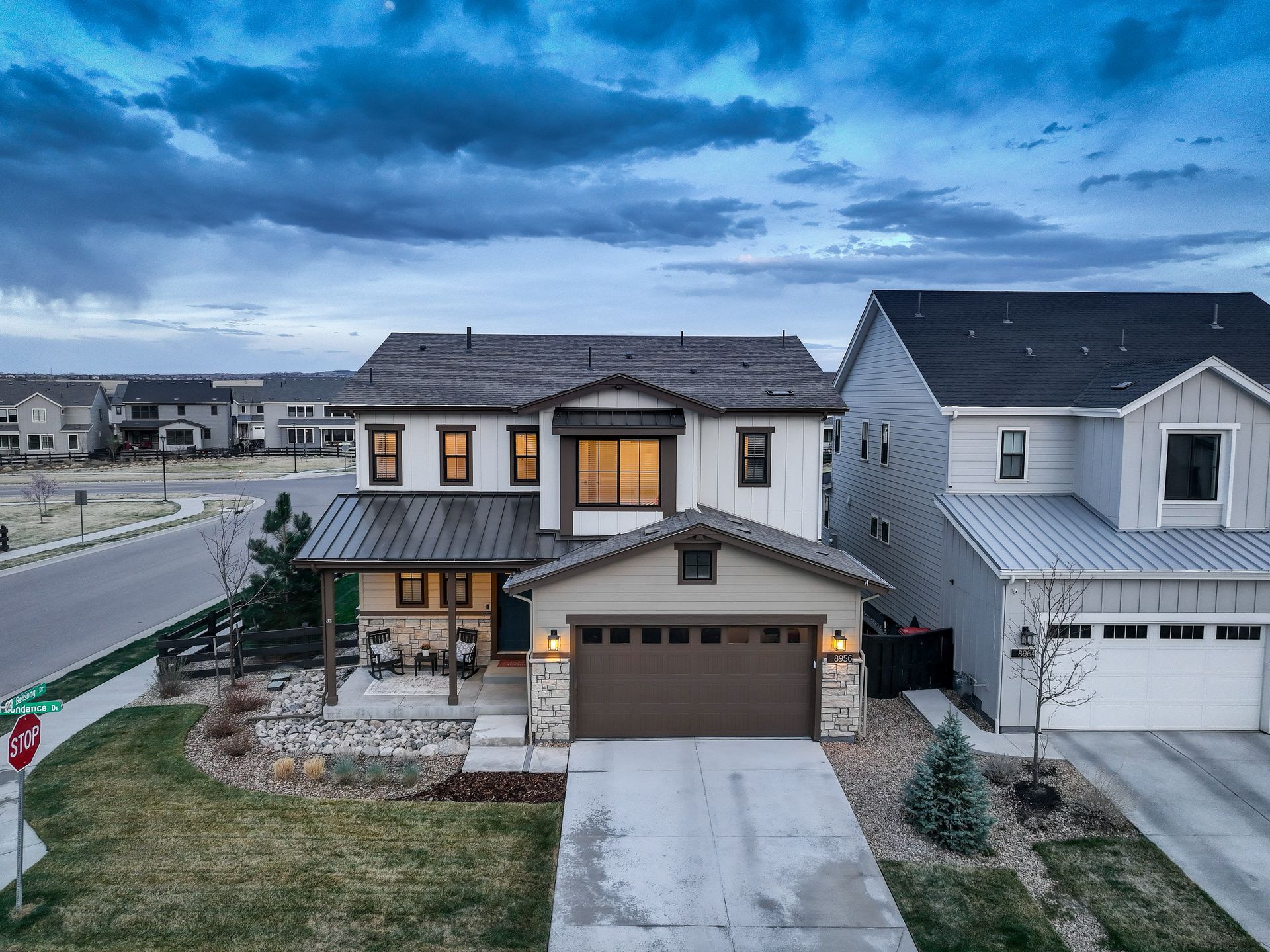 The comfort of home meets unbeatable access to Colorado’s great outdoors in this four-bed, four-bath, 2,615 square-foot gem in the Solstice Community. Inside, the open layout, luxury finishes, and thoughtful accents make everyday life feel seamless and decadent. The main level is ripe with upgrades from the designer chandelier in the dining room to the kitchen’s double ovens, grand island, quartz counters, and GE Café appliances. Easily access the beautiful corner lot backyard through the sliding double doors in the dining room. Curl up to relax by the living room’s beautiful fireplace, which opens conveniently to the kitchen. Whether you work from home or need a quiet retreat for homework and projects, the main level office welcomes you with a pendant light and stylish accent wall. Upstairs, find the primary bedroom and three additional bedrooms. The primary flaunts luxury finishes, including a spa-inspired bathroom, a generous walk-in closet, a double vanity, a ceiling fan, and beautiful views. Two more bathrooms are located on the upper level, as is the laundry room for ultimate ease and convenience. Situated near the High Line Canal trail and the iconic Chatfield State Park, this home is an outdoor lover’s dream. The corner lot gives you a spacious backyard, and it’s full of mature trees and thoughtful landscaping to create the ideal outdoor retreat. Hop over to the nearby greenbelt to access miles of beautiful trails and endless water recreation opportunities at Chatfield Reservoir. Solstice’s world-class recreation center, complete with a fitness center, pool, poolside bar, and community events, is ready to welcome you. This move-in ready luxury home is ready for its next lucky owner. Don’t miss it!