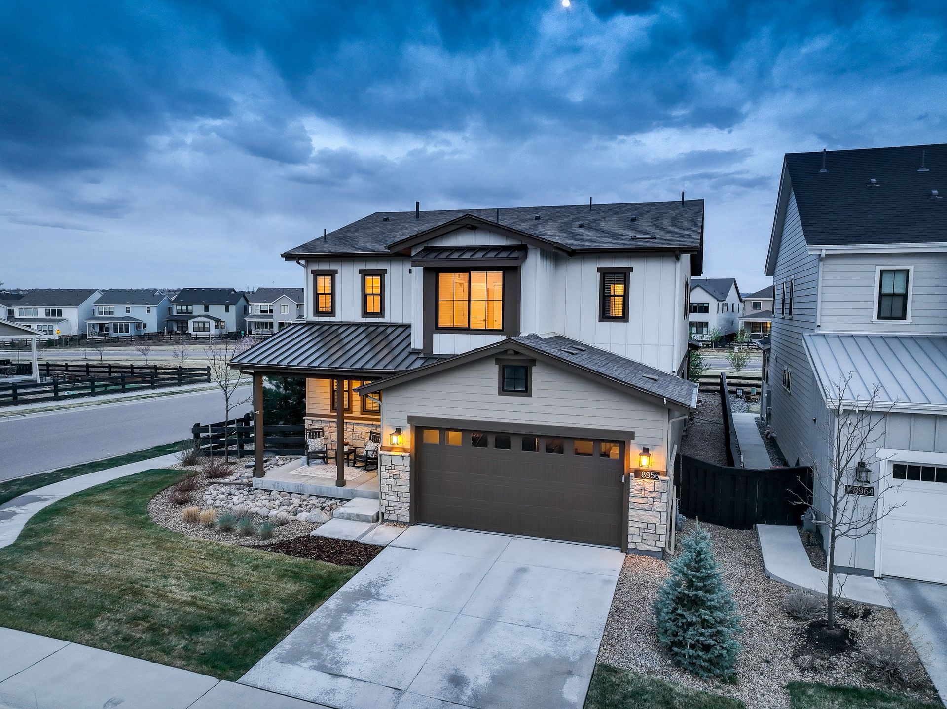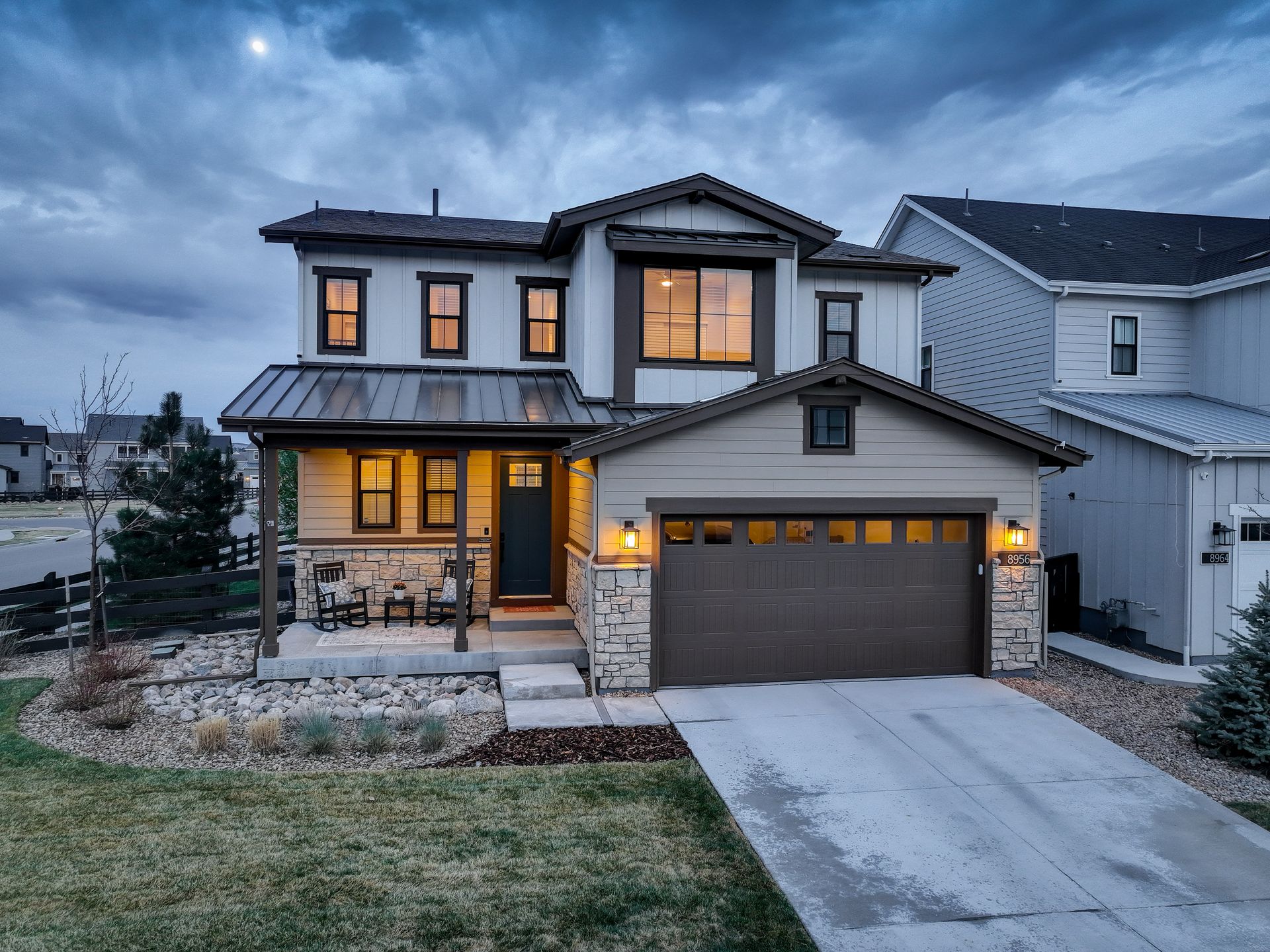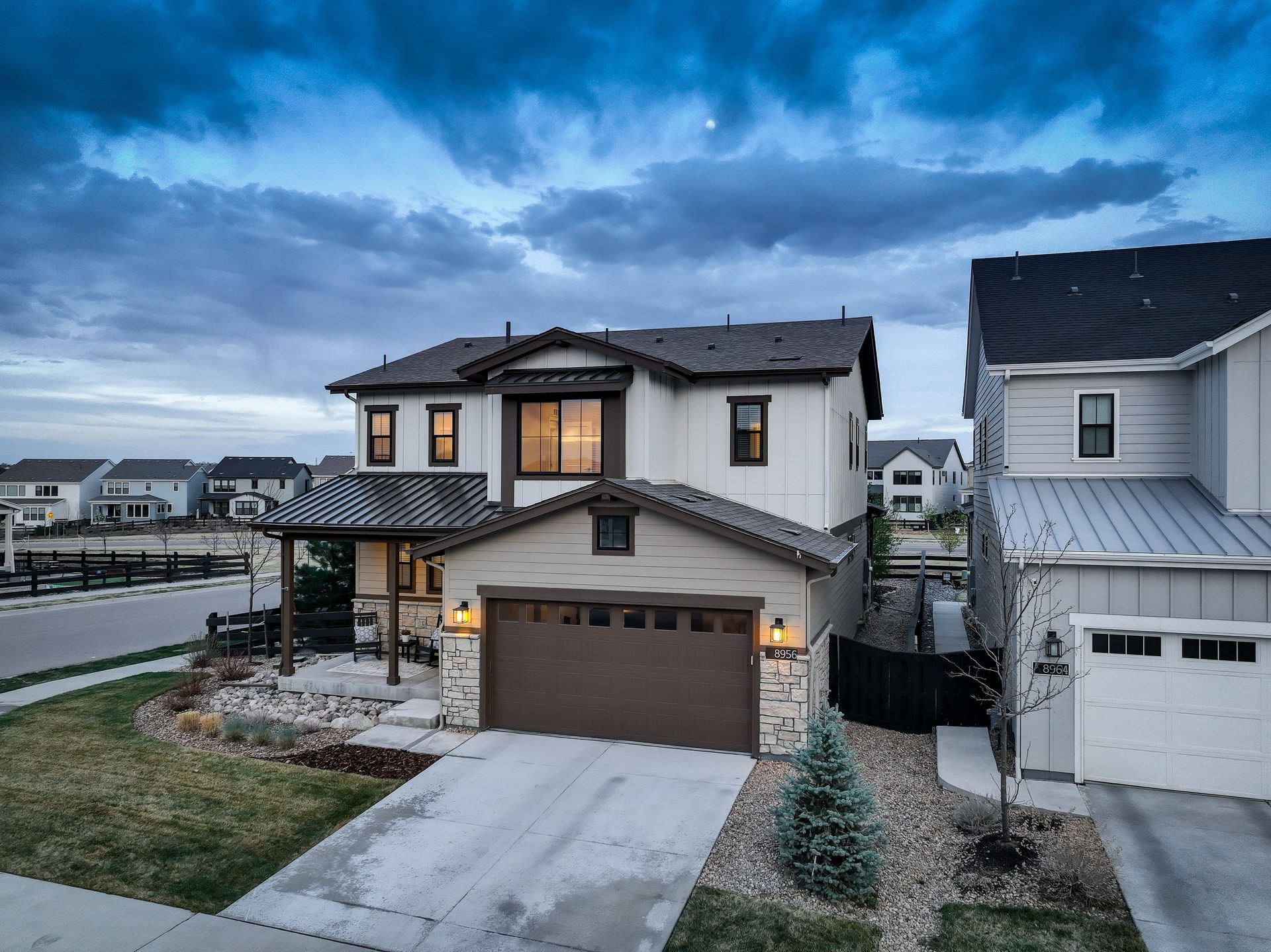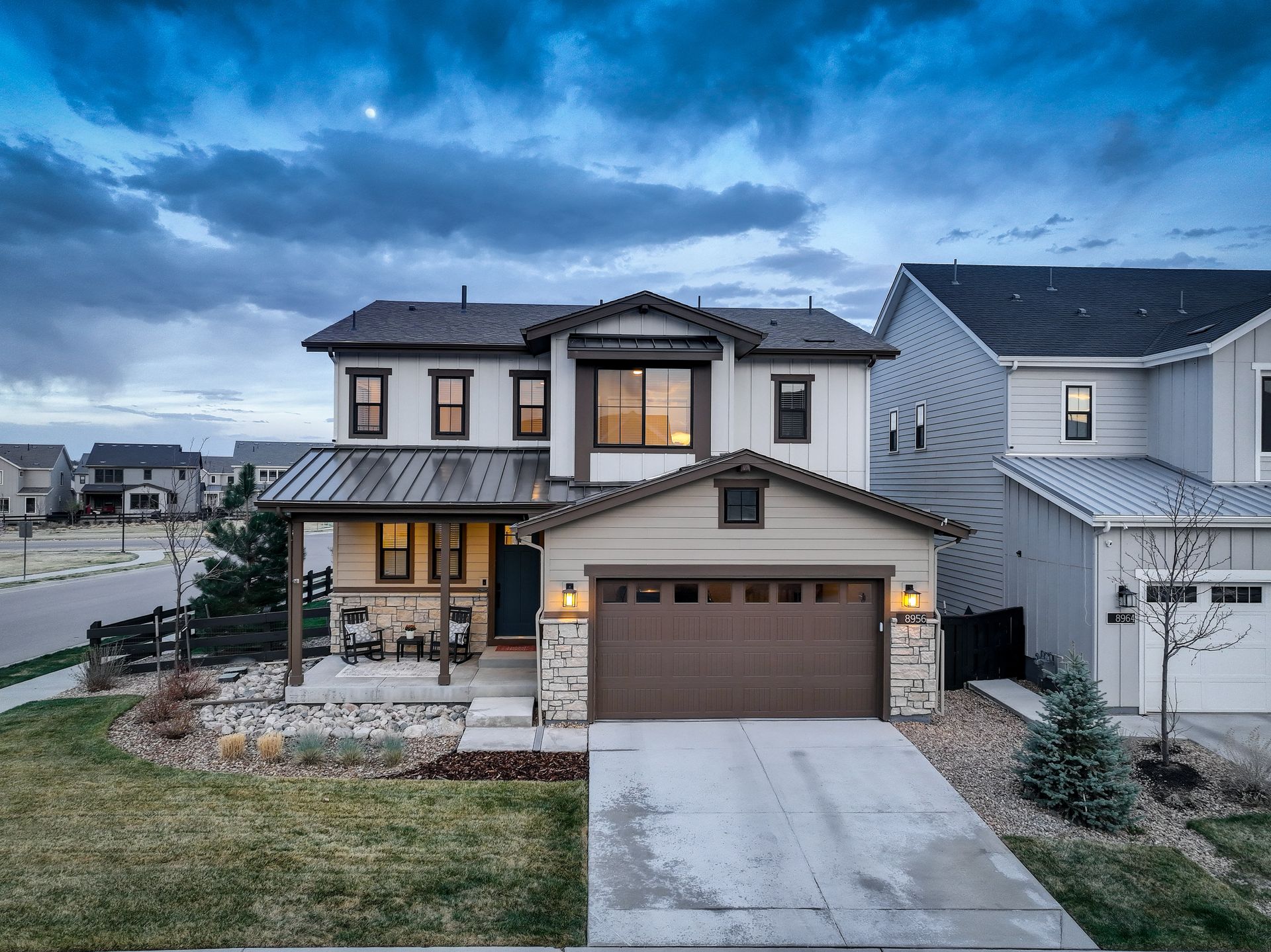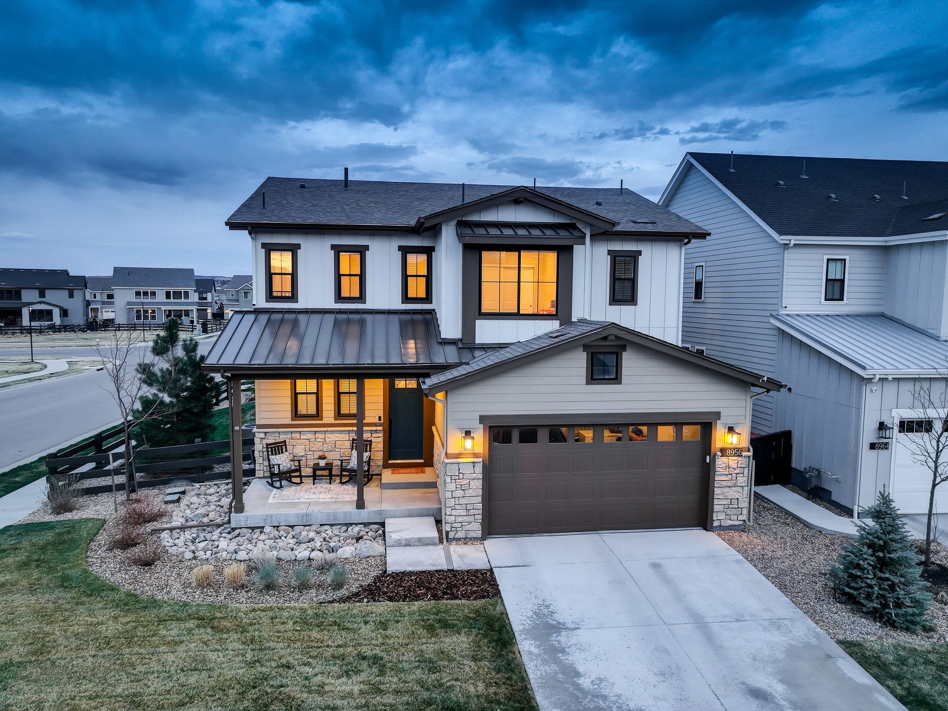 The comfort of home meets unbeatable access to Colorado’s great outdoors in this four-bed, four-bath, 2,615 square-foot gem in the Solstice Community. Inside, the open layout, luxury finishes, and thoughtful accents make everyday life feel seamless and decadent. The main level is ripe with upgrades from the designer chandelier in the dining room to the kitchen’s double ovens, grand island, quartz counters, and GE Café appliances. Easily access the beautiful corner lot backyard through the sliding double doors in the dining room. Curl up to relax by the living room’s beautiful fireplace, which opens conveniently to the kitchen. Whether you work from home or need a quiet retreat for homework and projects, the main level office welcomes you with a pendant light and stylish accent wall. Upstairs, find the primary bedroom and three additional bedrooms. The primary flaunts luxury finishes, including a spa-inspired bathroom, a generous walk-in closet, a double vanity, a ceiling fan, and beautiful views. Two more bathrooms are located on the upper level, as is the laundry room for ultimate ease and convenience. Situated near the High Line Canal trail and the iconic Chatfield State Park, this home is an outdoor lover’s dream. The corner lot gives you a spacious backyard, and it’s full of mature trees and thoughtful landscaping to create the ideal outdoor retreat. Hop over to the nearby greenbelt to access miles of beautiful trails and endless water recreation opportunities at Chatfield Reservoir. Solstice’s world-class recreation center, complete with a fitness center, pool, poolside bar, and community events, is ready to welcome you. This move-in ready luxury home is ready for its next lucky owner. Don’t miss it!