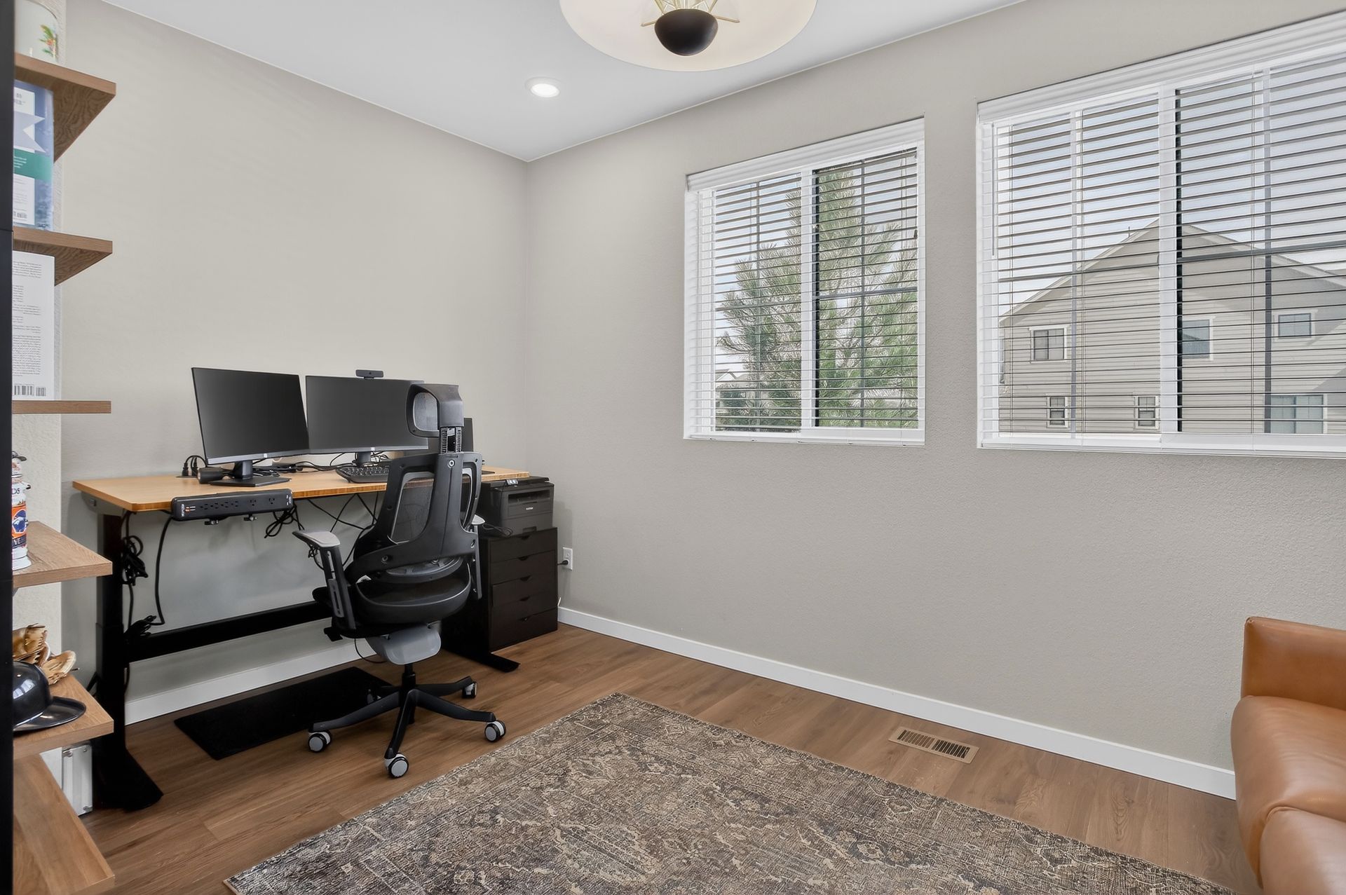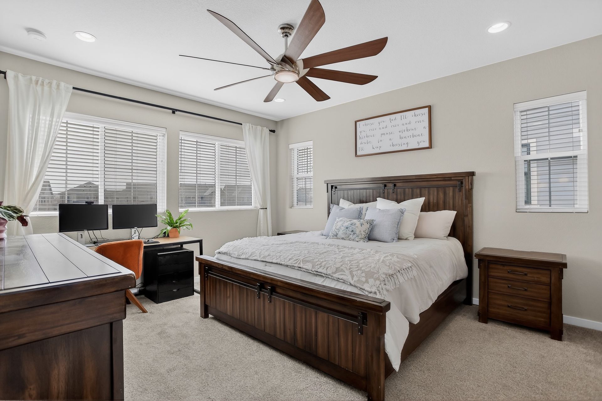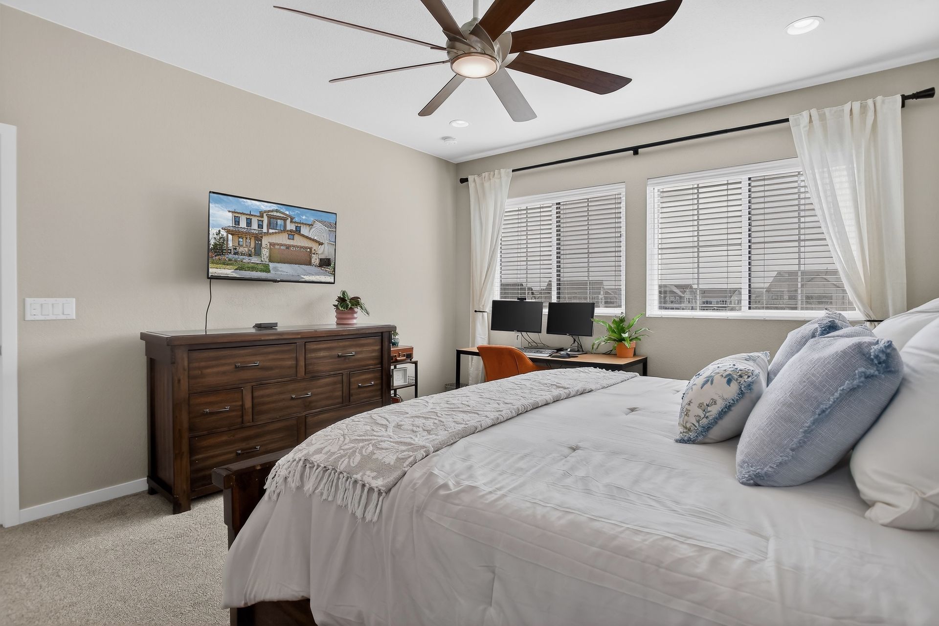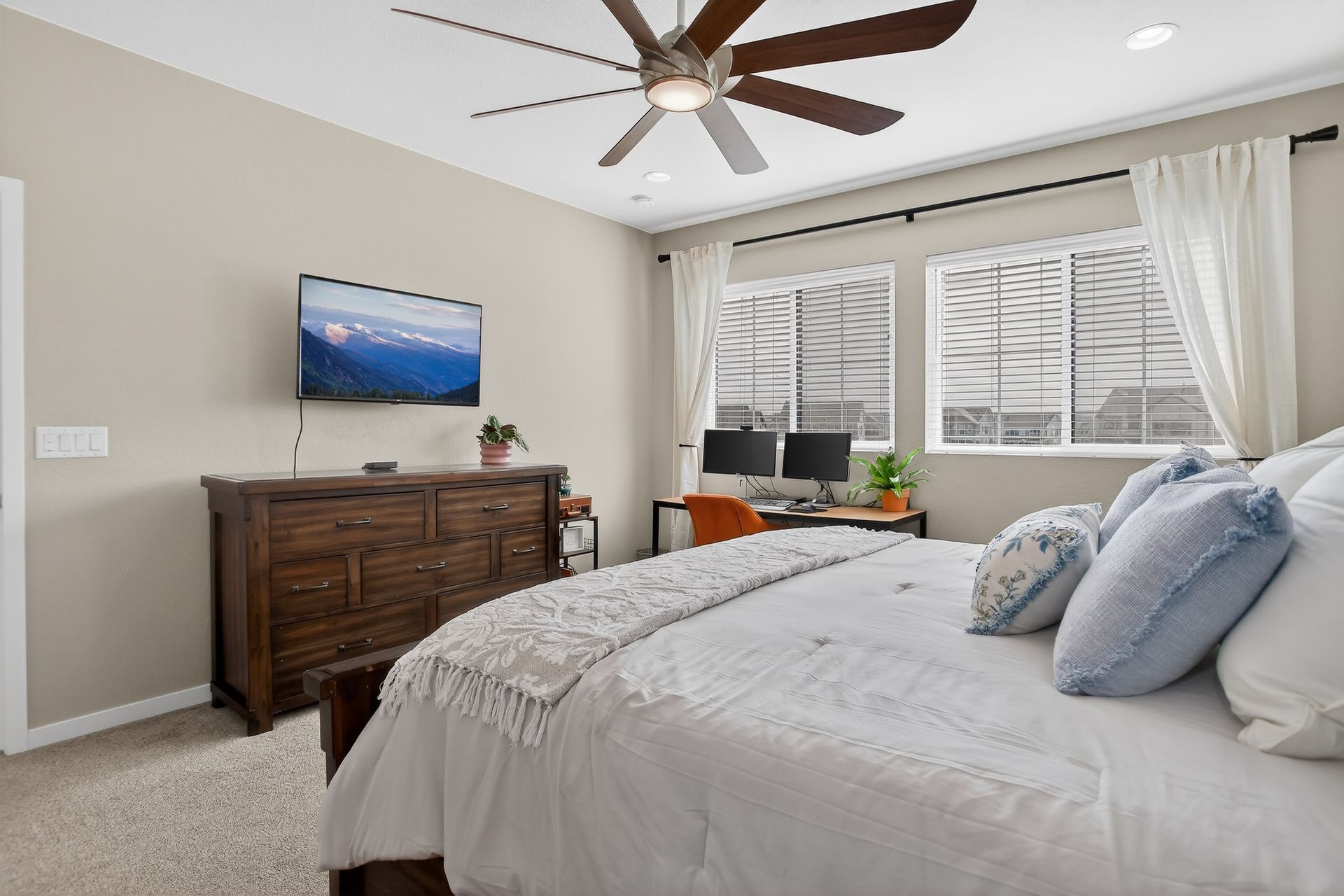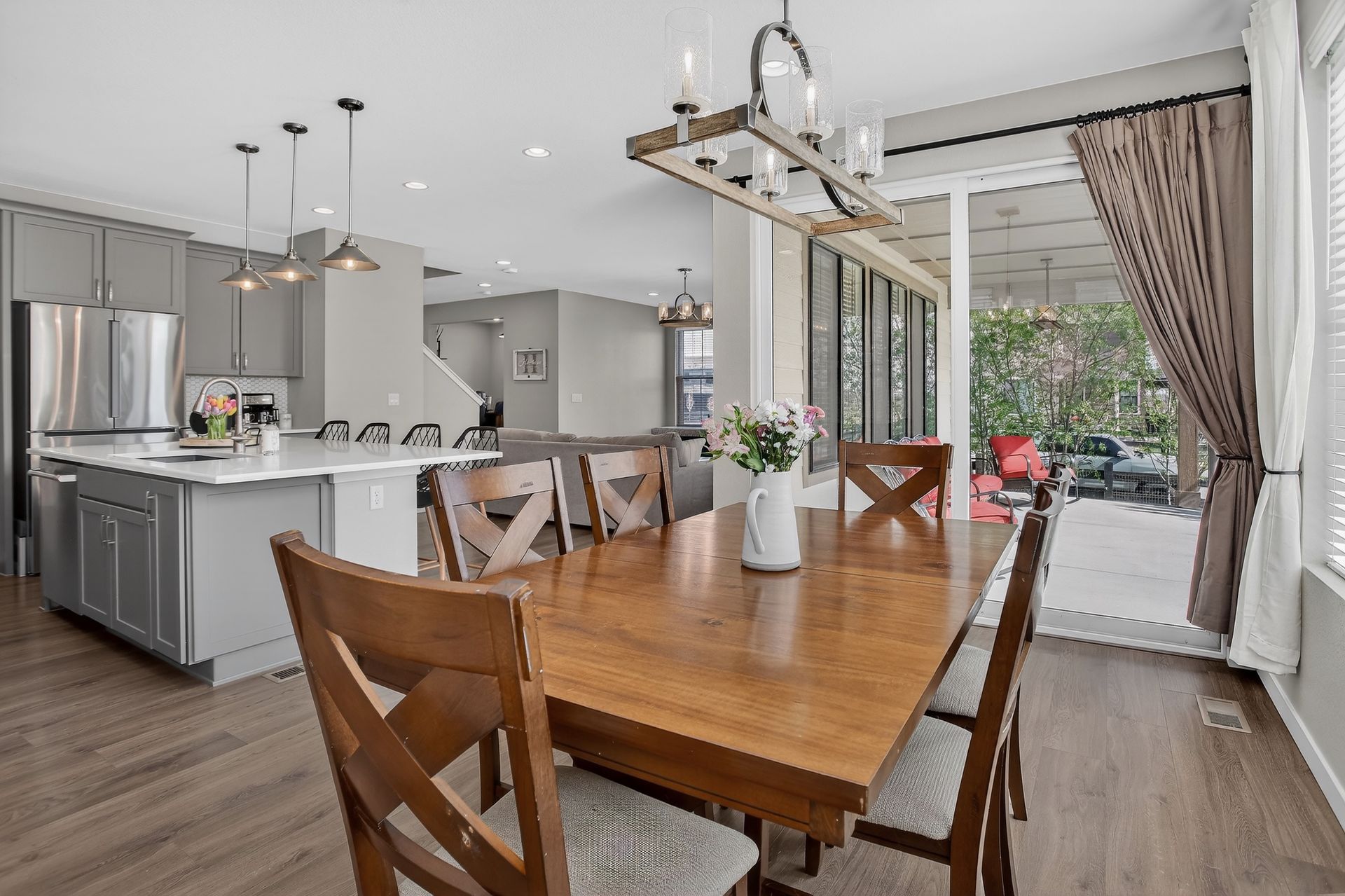 The comfort of home meets unbeatable access to Colorado’s great outdoors in this four-bed, four-bath, 2,615 square-foot gem in the Solstice Community. Inside, the open layout, luxury finishes, and thoughtful accents make everyday life feel seamless and decadent. The main level is ripe with upgrades from the designer chandelier in the dining room to the kitchen’s double ovens, grand island, quartz counters, and GE Café appliances. Easily access the beautiful corner lot backyard through the sliding double doors in the dining room. Curl up to relax by the living room’s beautiful fireplace, which opens conveniently to the kitchen. Whether you work from home or need a quiet retreat for homework and projects, the main level office welcomes you with a pendant light and stylish accent wall. Upstairs, find the primary bedroom and three additional bedrooms. The primary flaunts luxury finishes, including a spa-inspired bathroom, a generous walk-in closet, a double vanity, a ceiling fan, and beautiful views. Two more bathrooms are located on the upper level, as is the laundry room for ultimate ease and convenience. Situated near the High Line Canal trail and the iconic Chatfield State Park, this home is an outdoor lover’s dream. The corner lot gives you a spacious backyard, and it’s full of mature trees and thoughtful landscaping to create the ideal outdoor retreat. Hop over to the nearby greenbelt to access miles of beautiful trails and endless water recreation opportunities at Chatfield Reservoir. Solstice’s world-class recreation center, complete with a fitness center, pool, poolside bar, and community events, is ready to welcome you. This move-in ready luxury home is ready for its next lucky owner. Don’t miss it!