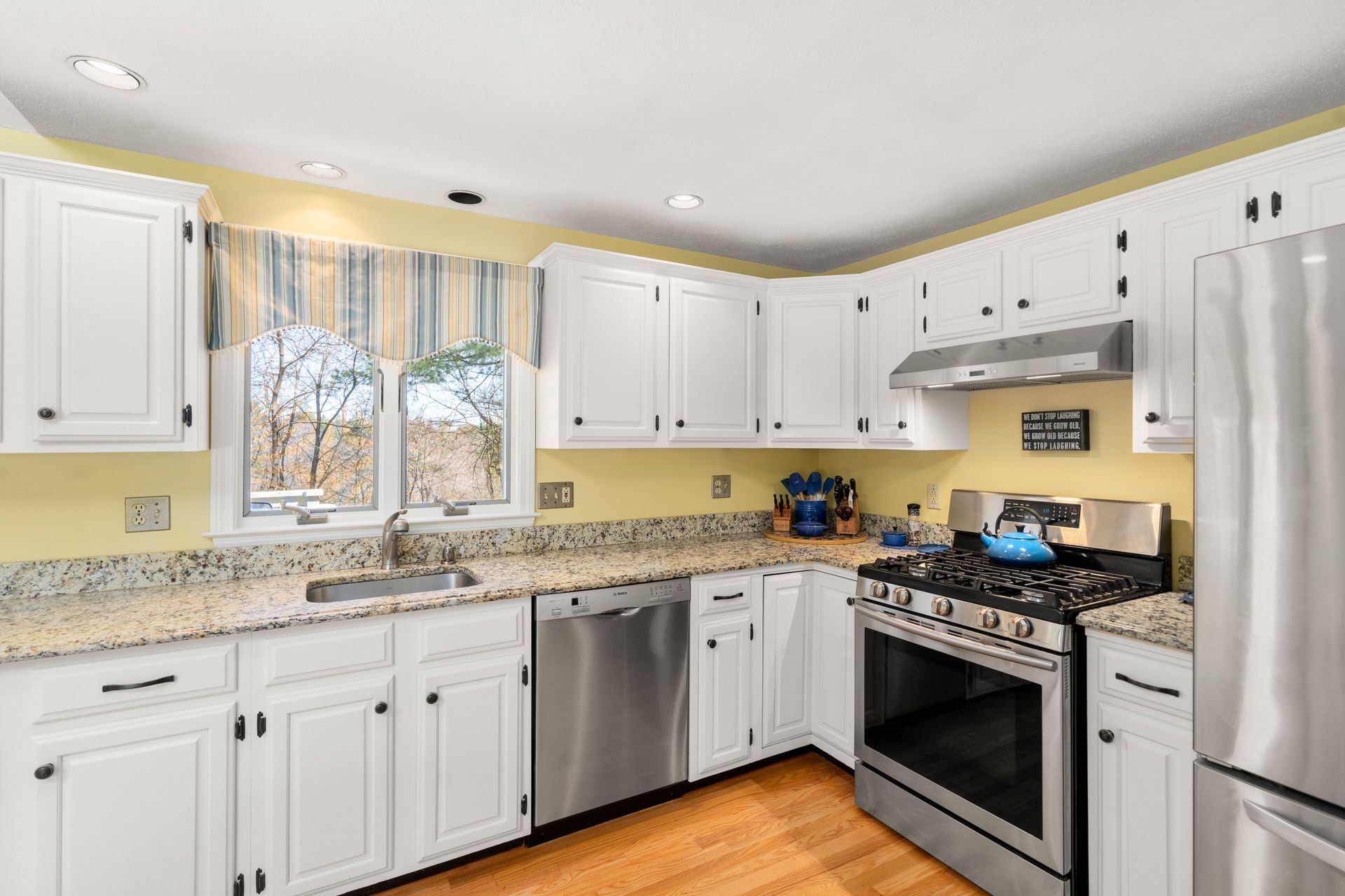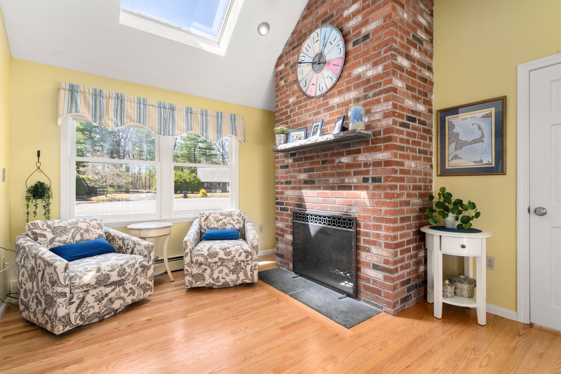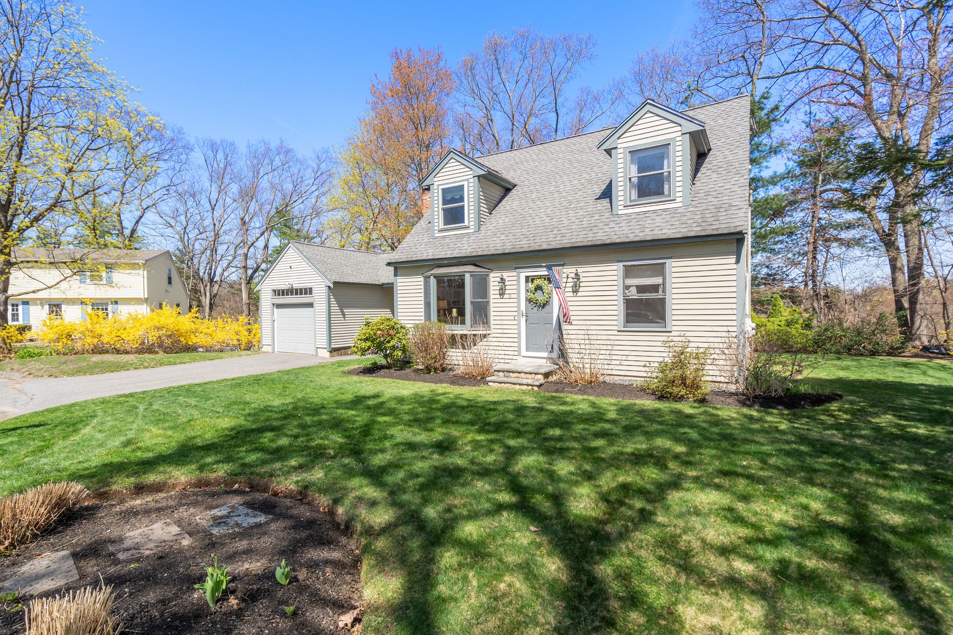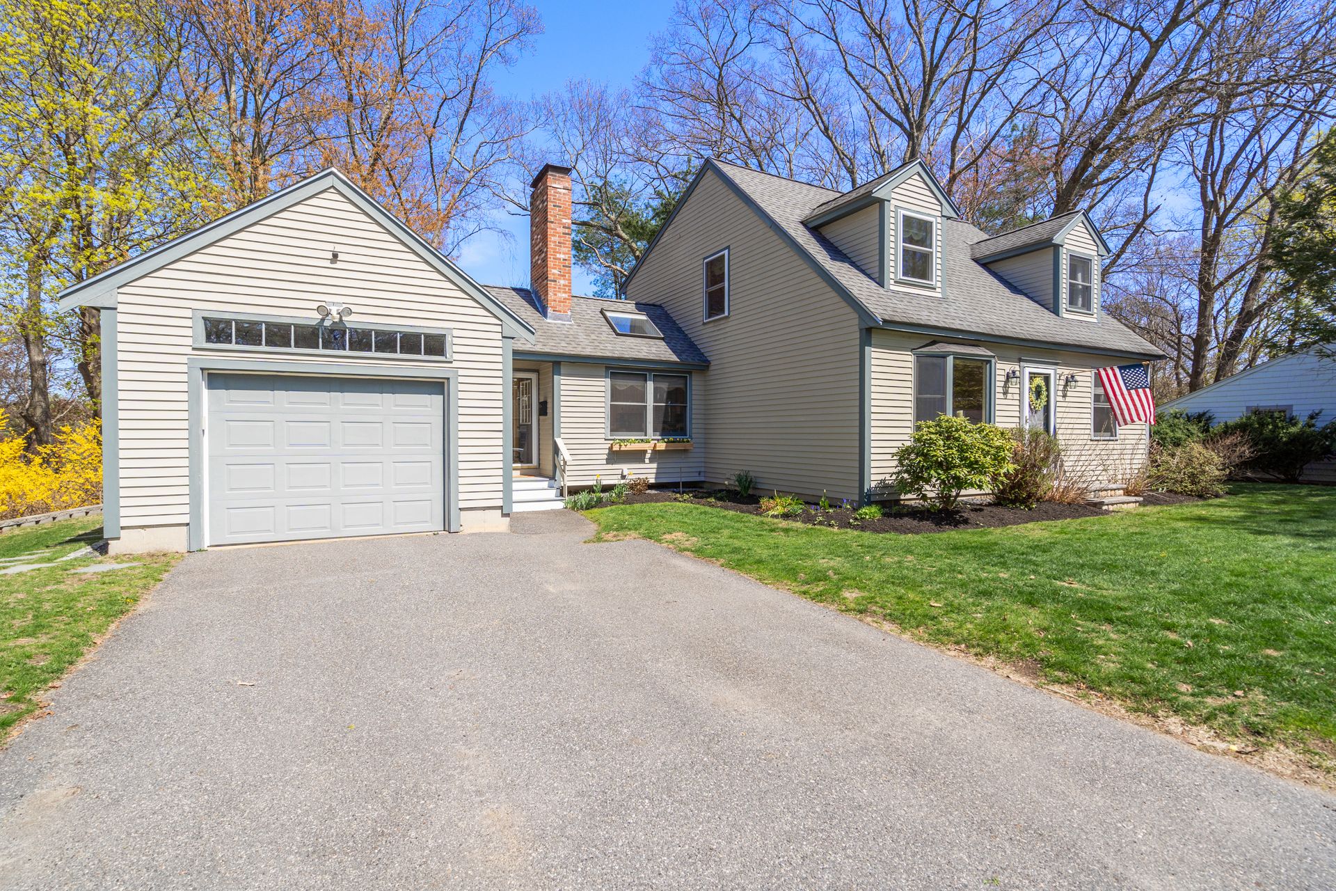 A perfect blend of comfort, style, and timeless charm awaits in this beautifully updated and meticulously maintained classic New England Cape Cod home. Nestled in a serene cul-de-sac in sought-after Hudson, this home features an expansive, fully dormered layout with a vaulted, skylit kitchen and cozy brick fireplace—the true heart of the home. Offering 2 full baths, a newer furnace, mostly newer windows, new carpet, and newly finished hardwood floors, complemented by fresh paint throughout. This move-in-ready property ensures comfort and peace of mind. Thoughtful details such as a convenient mudroom and 1-car garage add to its appeal.