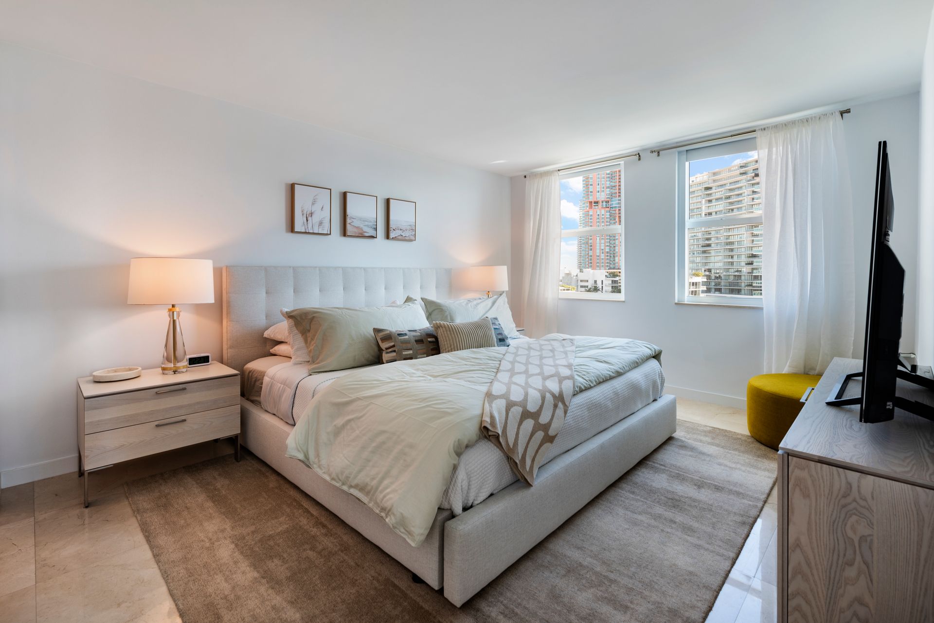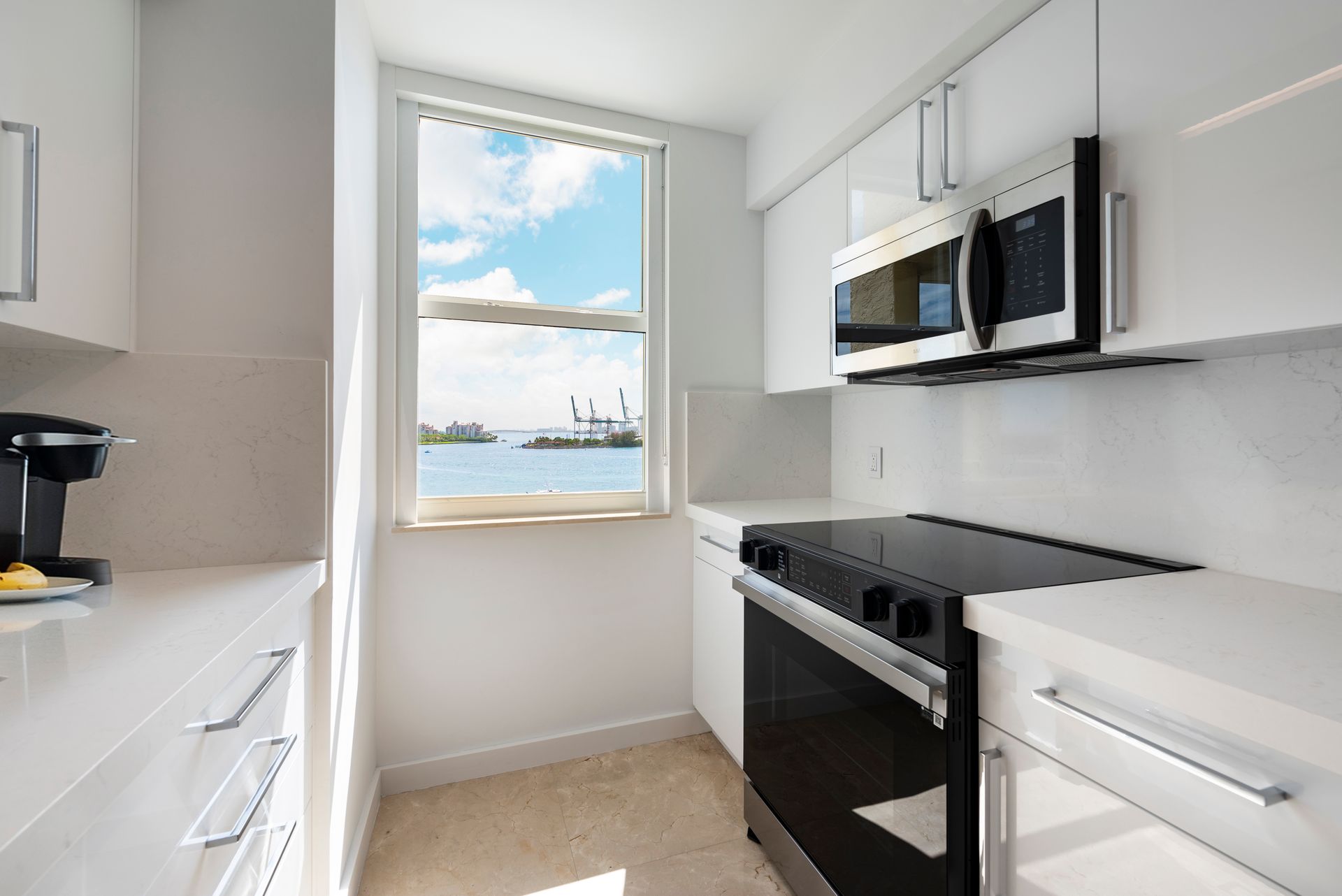 Elegantly renovated 2-bedroom, 2-bathroom, corner unit in Miami Beach's exclusive South of Fifth neighborhood. This residence offers stunning direct bay, sunset, and downtown views and features hurricane-impact glass throughout. The newly renovated interior includes a new kitchen and bathrooms, custom blinds, and sleek marble floors. The wrap-around balcony provides an ideal space for entertaining while enjoying the stunning waterfront vistas. The building boasts a doorman, concierge service, valet parking, new gym, sauna, heated pool, tennis court, and barbecue area! Experience the epitome of waterfront living in this exceptional residence, ideally located near South of Fifth's finest dining, shopping, and entertainment. Discover the pinnacle of luxury living in Miami Beach!!!