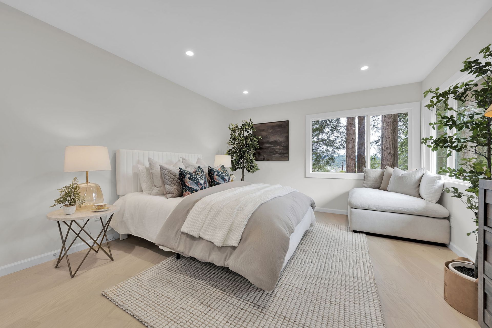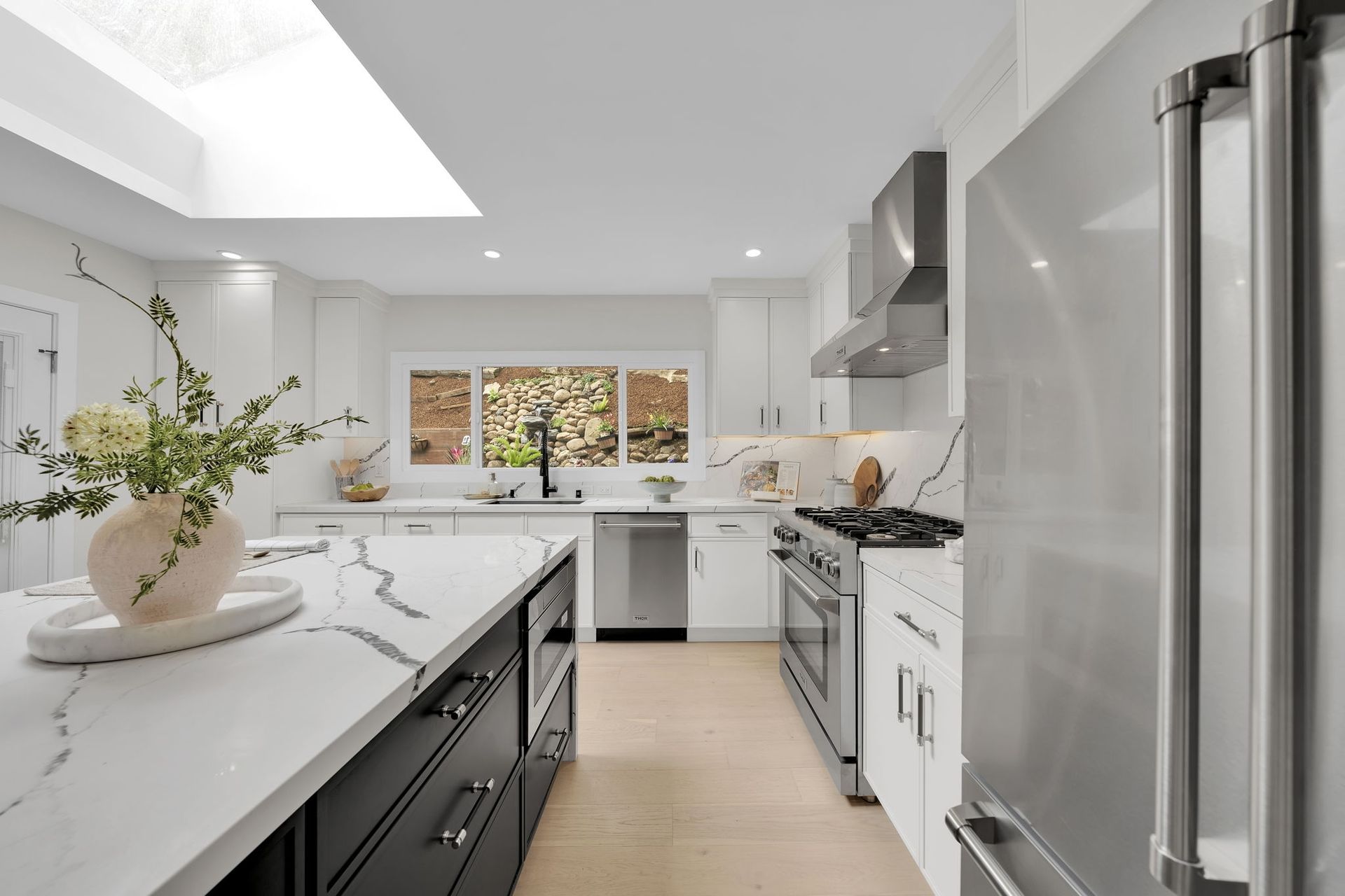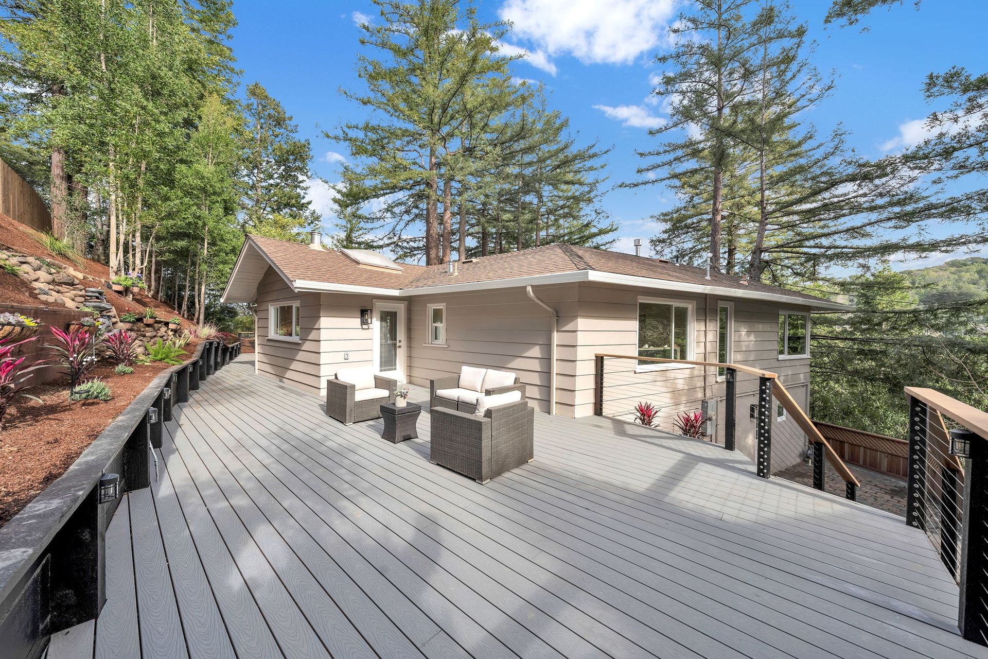 A Serene Kentfield Sanctuary. This stylish home is move-in ready and tucked away at the end of a freshly paved private driveway and surrounded by majestic redwoods. This beautifully reimagined four bed, three bath residence offers the rare blend of modern design and tranquil living in one of Kentfield’s most desirable pockets. Bathed in natural light, the open concept floor plan features wide plank wood floors, thoughtfully curated finishes, and seamless indoor-outdoor flow. The chef’s kitchen is a showpiece with custom cabinetry, quartz waterfall countertops, and expansive prep space that make it ideal for both cooking and gathering. Several doors invite you out to an expansive deck and multiple peaceful sitting areas, ideal for morning routines, al fresco dinners, or soaking in the surrounding nature. The primary suite is a true retreat, with treetop views and a spa inspired ensuite bath. Downstairs, has a flexible suite with its own entrance, full bath, wet bar, laundry, and access to it's own outdoor space, offering limitless opportunity. Enjoy modern amenities include EV charging, updated systems, and abundant privacy, all just minutes from top-rated schools, Bon Air Shopping Center, and Highway 101 for an easy San Francisco commute. This is more than a house it's a lifestyle!