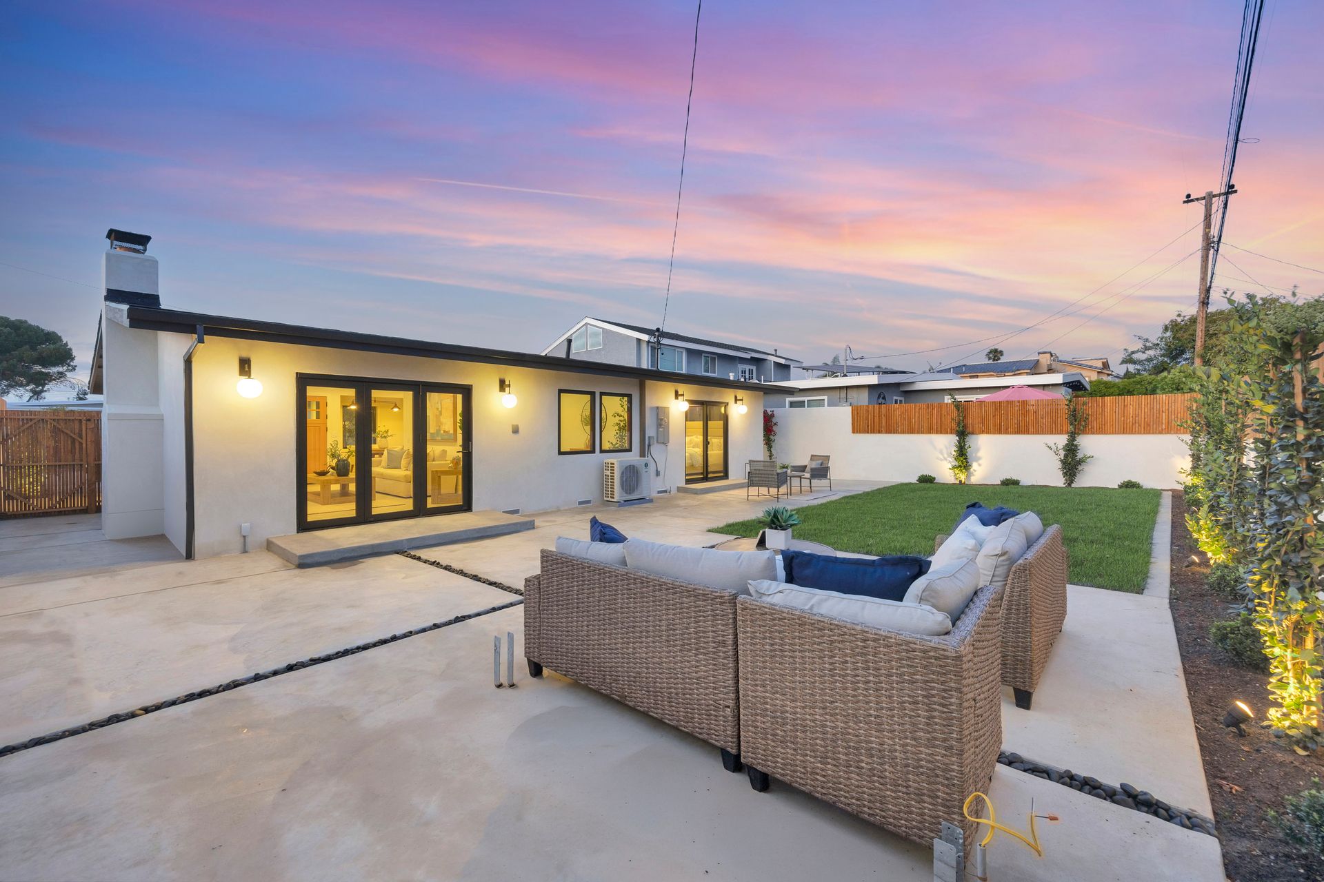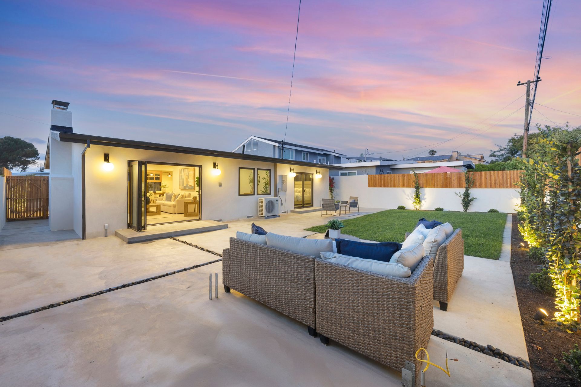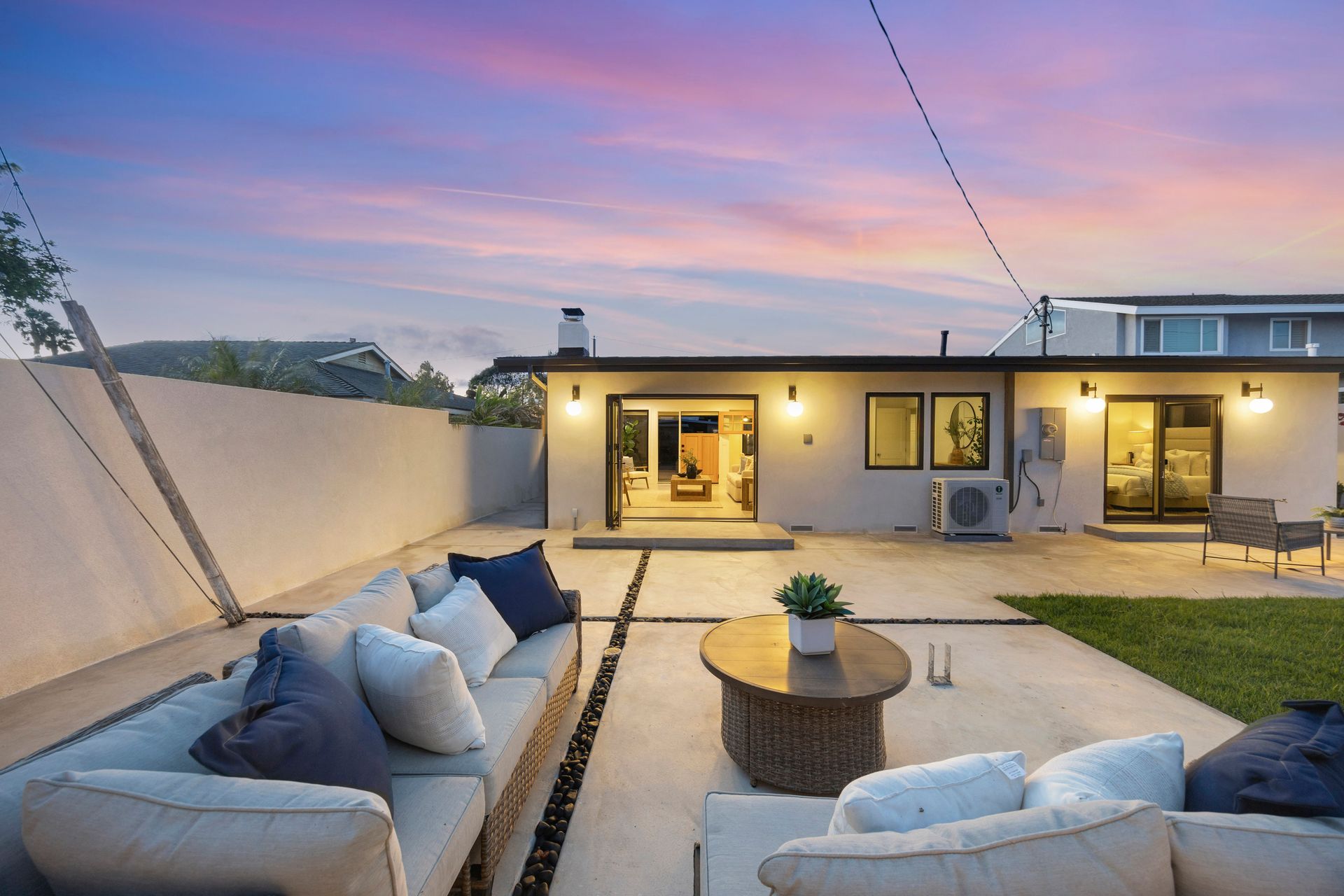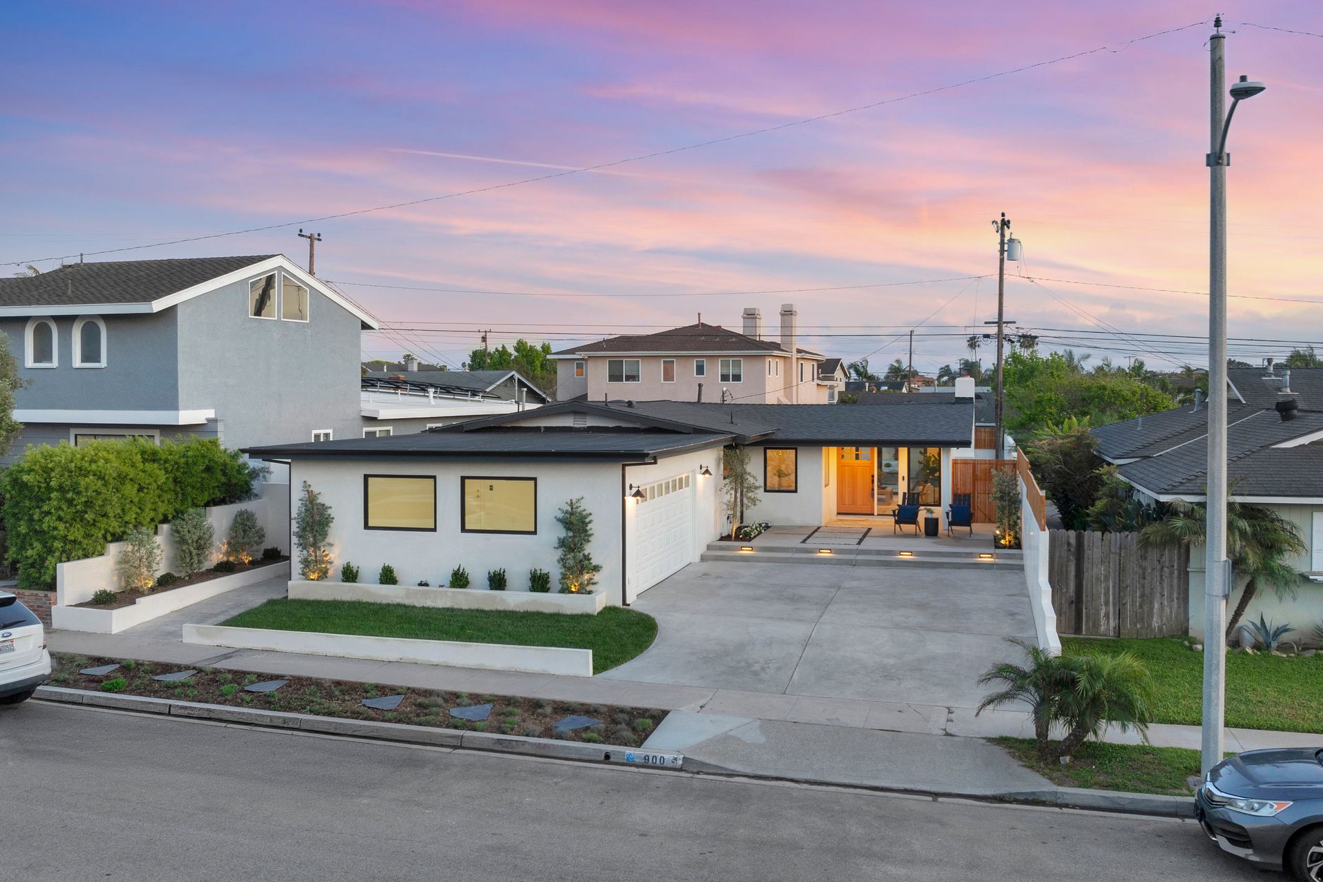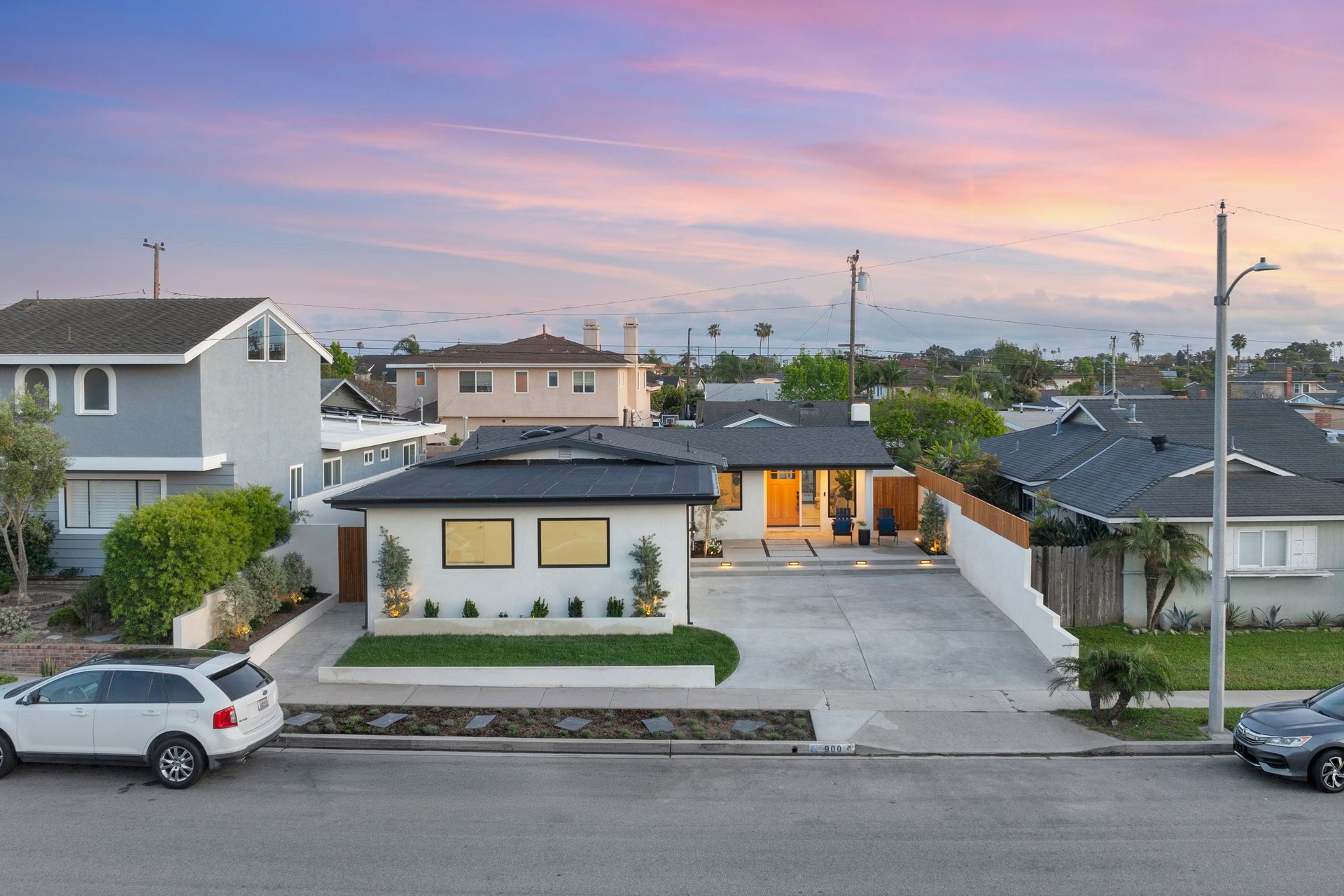 This is a fully renovated home located in the highly sought-after neighborhood of Seal Beach, known as "The Hill." Nestled in one of the top-rated school districts in Orange County, this beautiful home is close to McGaugh Elementary. This residence has been meticulously renovated, featuring a fresh roof, electrical, plumbing, HVAC system, and dual-pane casement windows, providing peace of mind for years to come. The driveway is nice for parking a golf cart, allowing you to fully enjoy the fantastic lifestyle Seal Beach has to offer, or simply for more outdoor space. As you approach, you'll be welcomed by an expansive front deck that seamlessly blends indoor and outdoor living. Inside, be captivated by the bright, light interior and tranquil feel it exudes. The open living area, anchored by the tiled fireplace, creates a warm and inviting space for gatherings. The heart of the home, the thoughtfully designed chef’s kitchen, boasts Pro Series stainless steel appliances, marble countertops, and elegant champagne-bronze fixtures, including a pot filler. With ample cabinetry and storage, this kitchen is as functional as it is beautiful. The home also includes a convenient indoor laundry area and direct access to a spacious two-car garage. Every detail has been considered, including Cat-6 wiring throughout, making it "smart home ready." The two bathrooms were completed with Venetian plaster walls, designer tile and custom rift Oak vanities. The guest bedrooms provide ample space along with custom-built-in closet systems. Step outside to your private backyard oasis, an entertainer’s dream with ample seating space, a custom pergola and a low-maintenance turf lawn with custom plastered flower beds. This home is the epitome of coastal living at its finest with a location that is unbeatable, close to Gum Grove Park, Main Street, Seal Beach, and an array of amazing restaurants and shopping options.