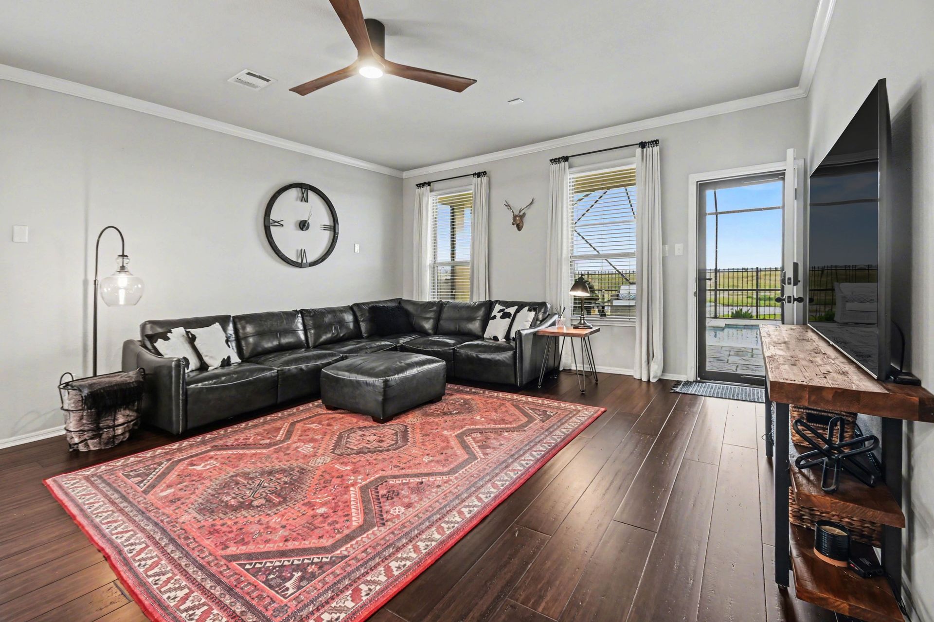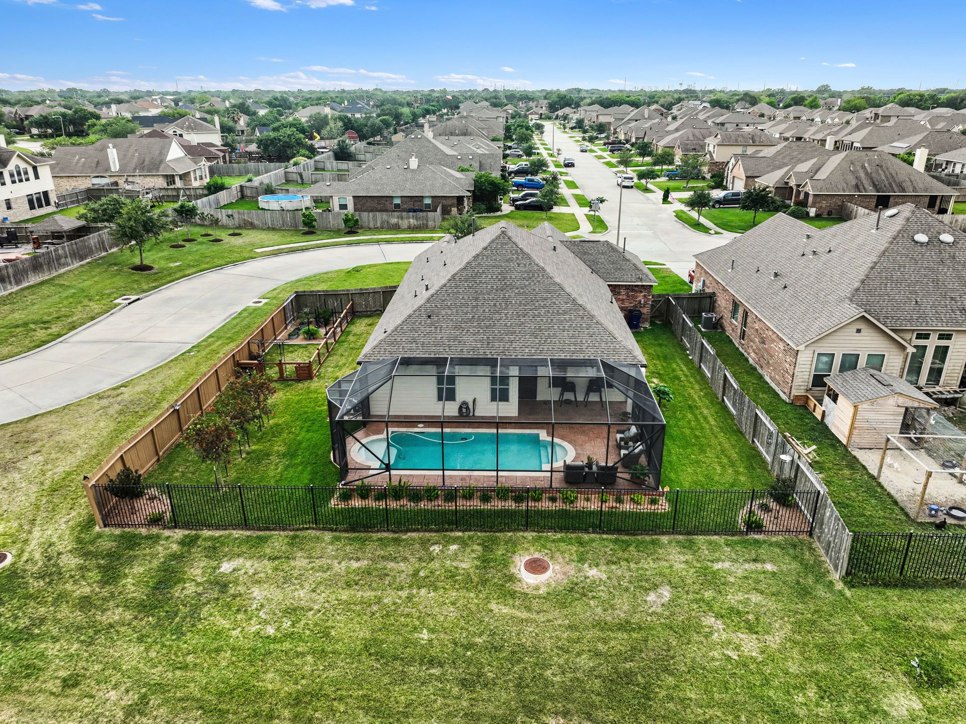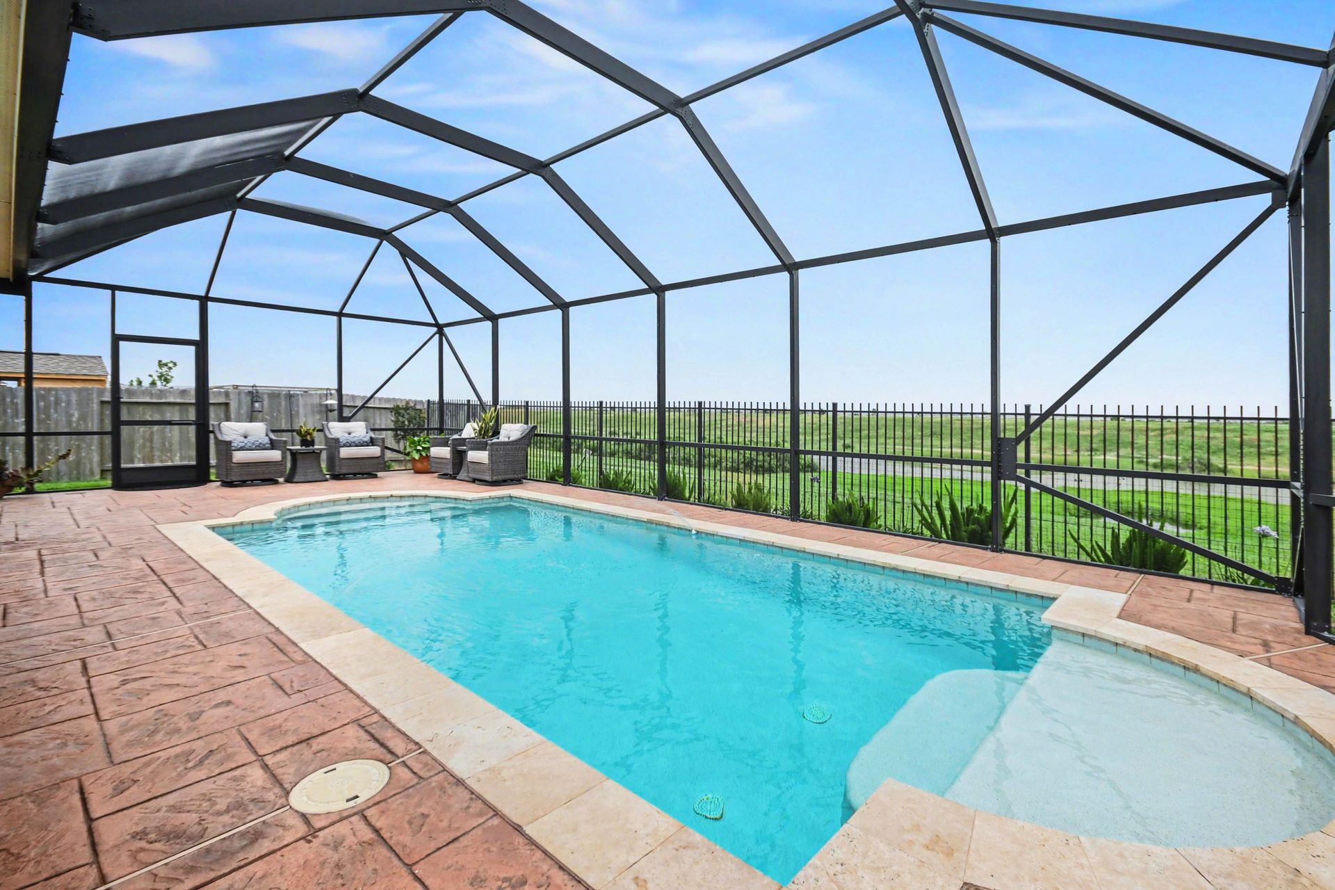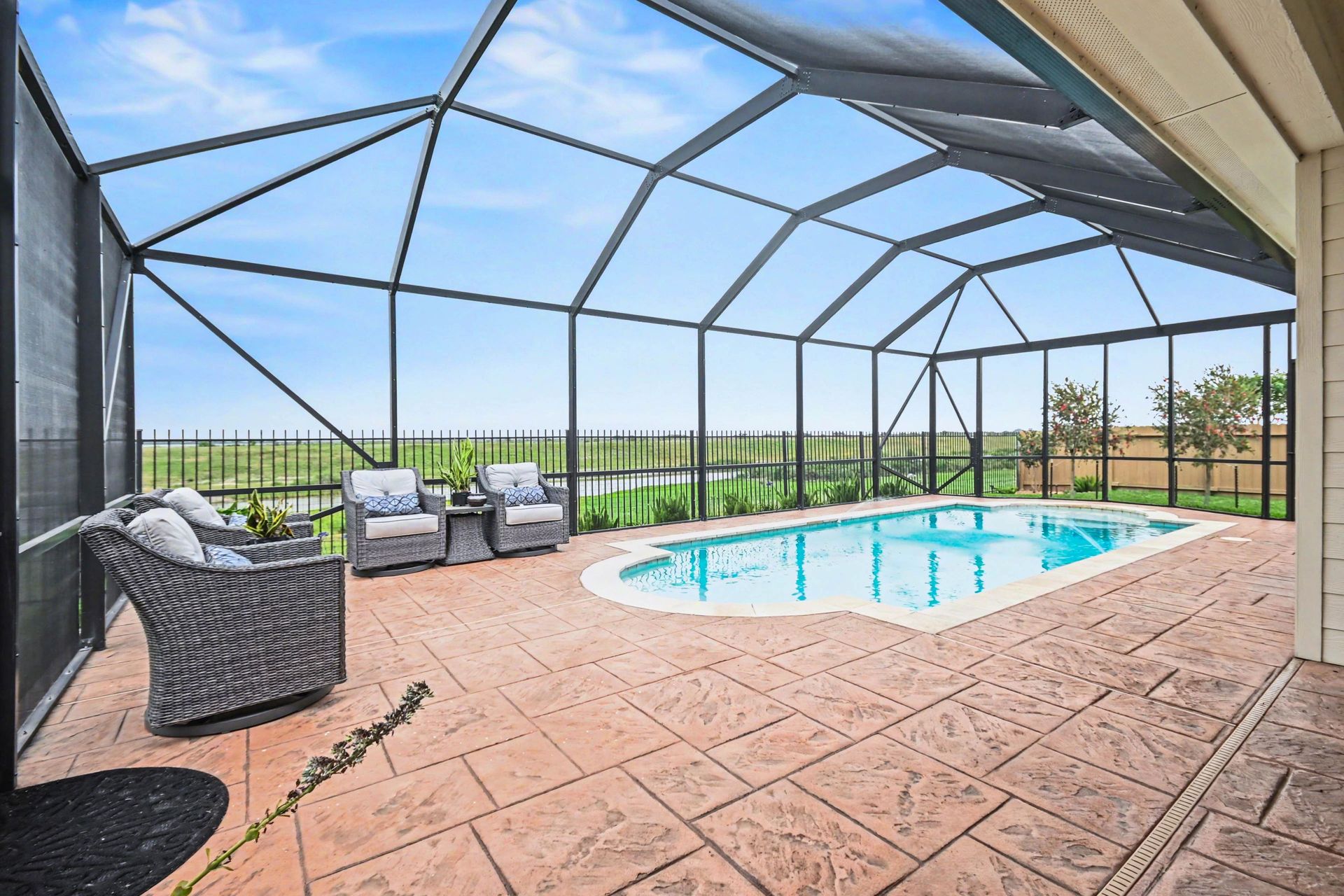 Outdoors, your backyard oasis awaits. Enjoy a sparkling swimming pool enclosed with a screen structure, keeping out bugs and debris offering ease of maintenance and UV protection! A whole-home generator adds an extra layer of convenience and reliability.