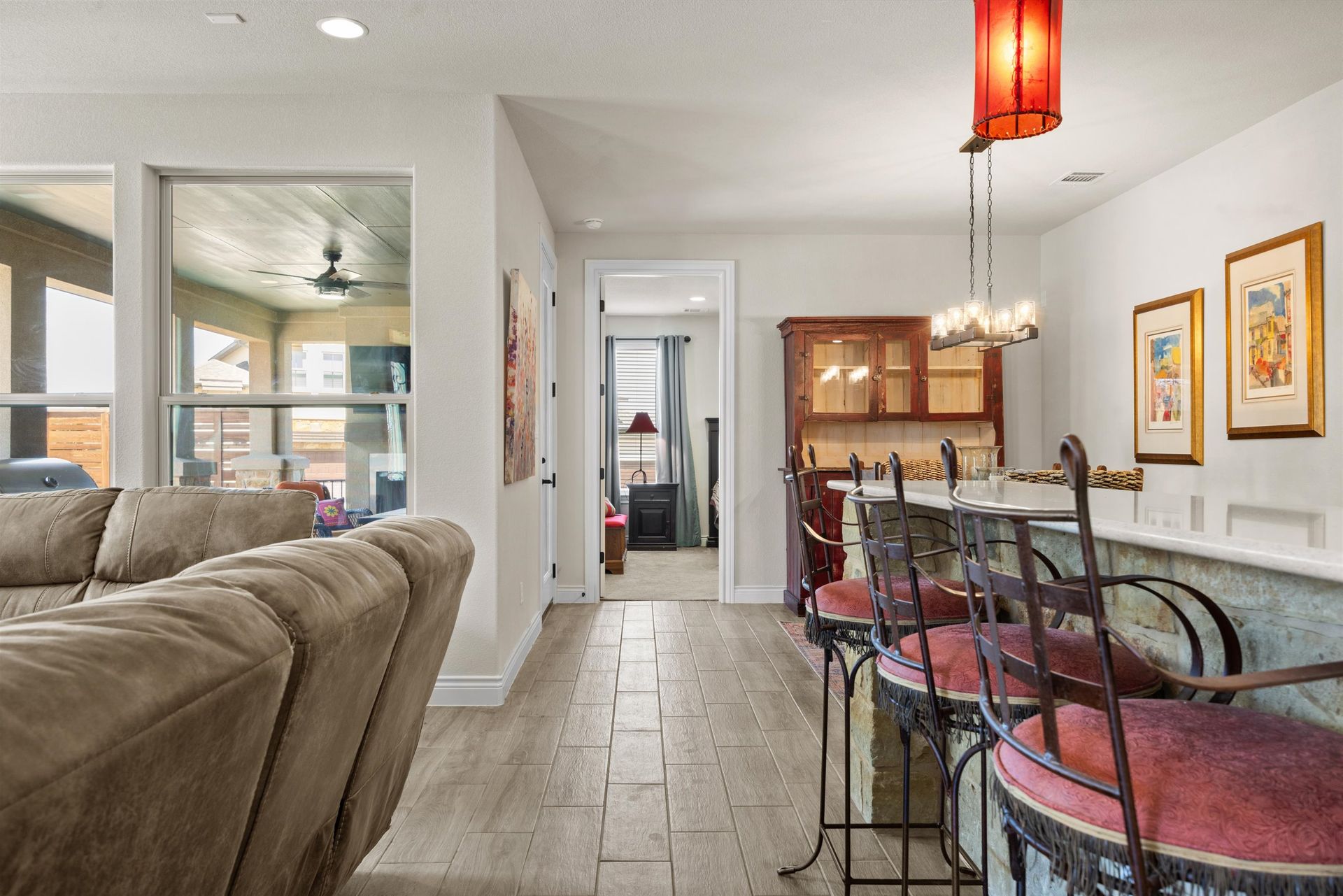 This approximately 1,956 square foot condominium/townhouse features two bedrooms, an office/flex room, and two and a half bathrooms. The open-concept layout offers ample living space with hardwood floors throughout the main level. The modern kitchen boasts stainless steel appliances, ample counter space, and custom cabinetry. The primary bedroom includes an en-suite bathroom with dual vanities and two walk-in closets. The additional bedroom is well-sized with a connecting bathroom. The home provides a lock-and-leave lifestyle, ideal for those seeking convenience and flexibility. The property's location offers easy access to shopping, dining, and transportation options.