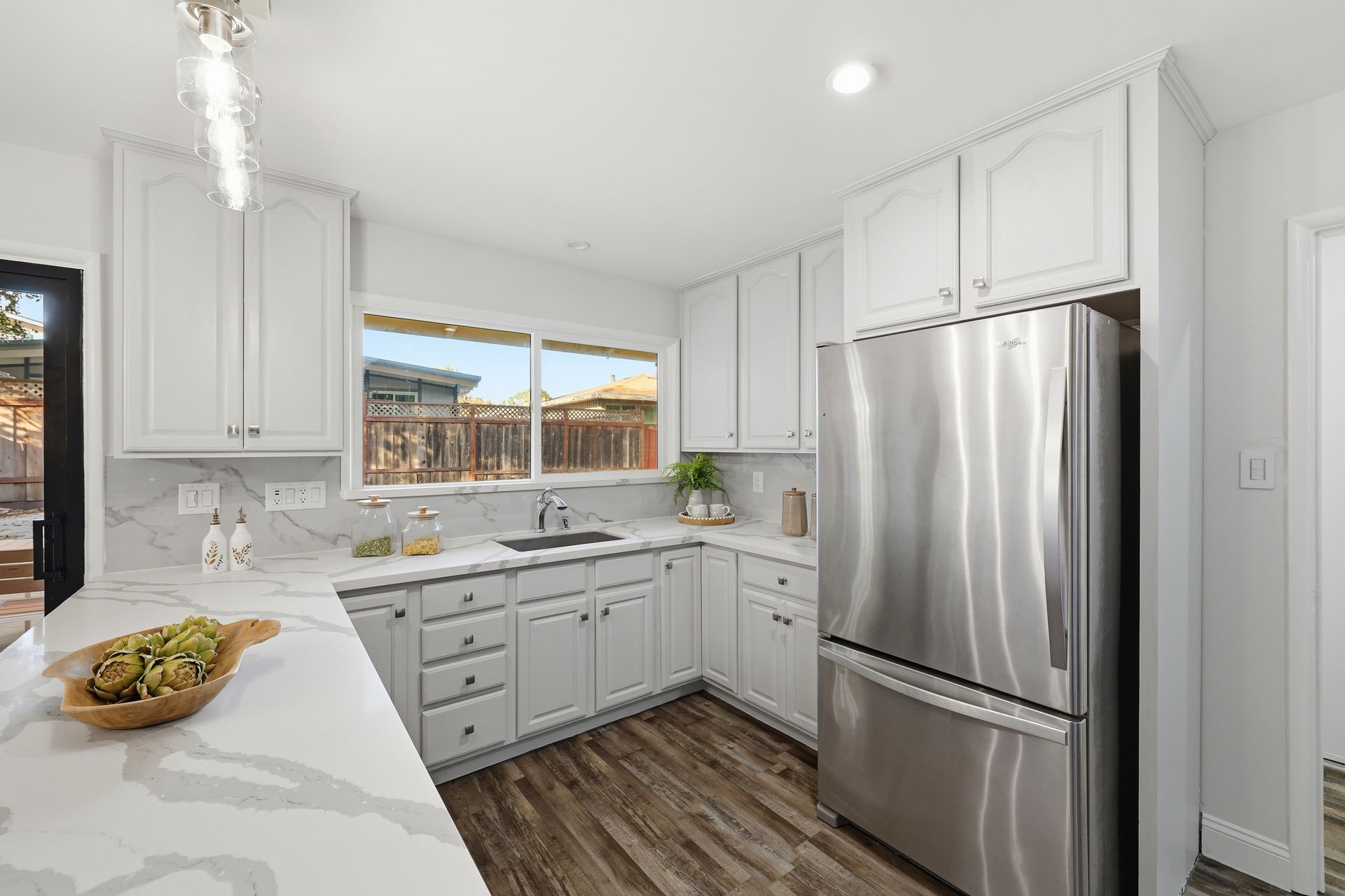 For the first time in 50 years, this cherished legacy property is ready for its next chapter. Conveniently situated on a rare, flat, over 6,500-square-foot lot, this home offers an incredible blend of mid-century bones with modern updates. The expansive living room, anchored by a dramatic floor-to-ceiling wood-burning fireplace, serves as a sophisticated centerpiece for gathering. New interior paint and contemporary LVP flooring flow throughout the home, leading to an updated kitchen equipped with a breakfast bar, gas range, and a unique indoor barbecue—ideal for the home chef.