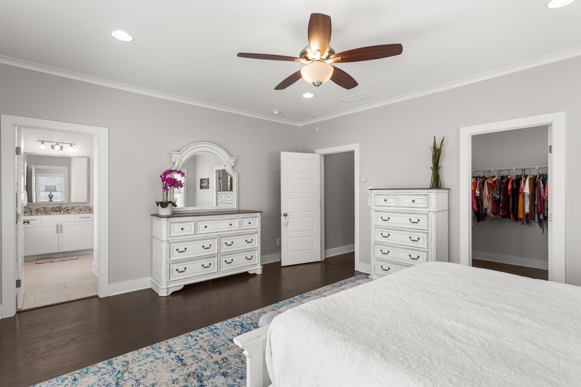 Upgraded throughout, the home includes 10-foot ceilings, premium hardwood floors, and a spa-like primary suite with a soaker tub, spacious shower, and double vanities. A versatile bonus room offers options for a fifth bedroom, office, or gym.