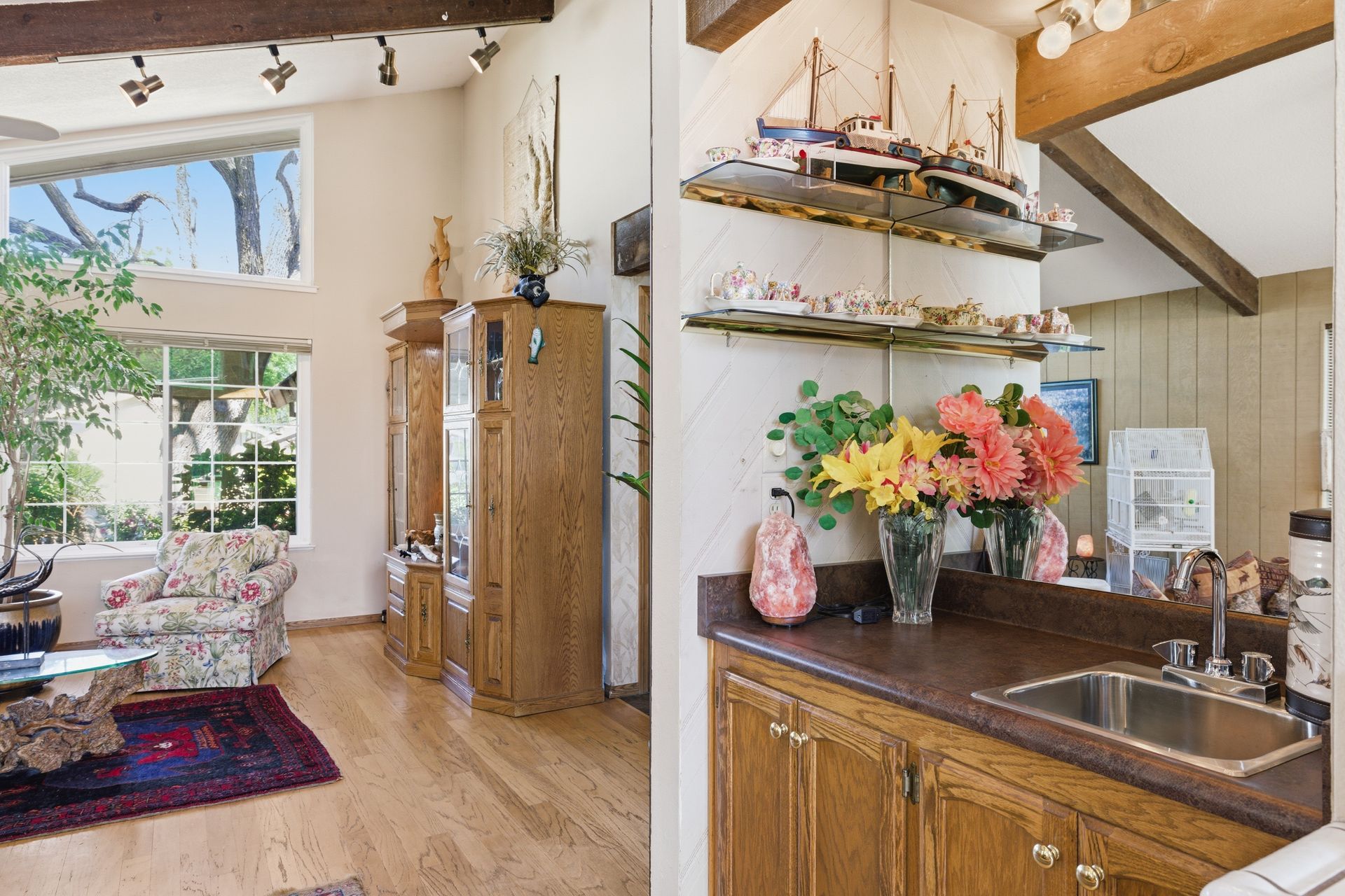 The bright kitchen and dining area overlook a lush, private backyard where a sparkling pool and spa invite you to relax and recharge. Whether you're hosting a summer BBQ, enjoying peaceful mornings surrounded by curated landscaping, singing birds, or floating peacefully under the sun, it is a retreat. Those without a green thumb, everything has been done for you.