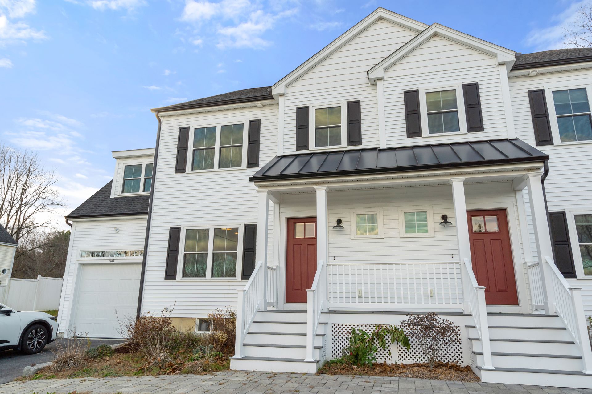 Welcome to this beautifully maintained duplex offering three spacious bedrooms, 2.5 baths, and a one-car attached garage. Built in 2021, this home features an open-concept layout with a welcoming entry, coat closet, and mudroom area. The first floor showcases hand scraped gray hardwood floors and a chef-inspired kitchen with quartz countertops, white subway tile backsplash, stainless steel appliances, a large custom island, and an additional dining area. A sliding glass door leads to a private composite deck perfect for outdoor entertaining. Upstairs, the oversized primary suite is privately situated above the garage and includes a walk-in closet and luxurious ensuite bath with an oversized tiled shower. Both second-floor bathrooms feature double vanities for added convenience. This home combines modern design with thoughtful details throughout. Don’t miss your chance to make this home yours!