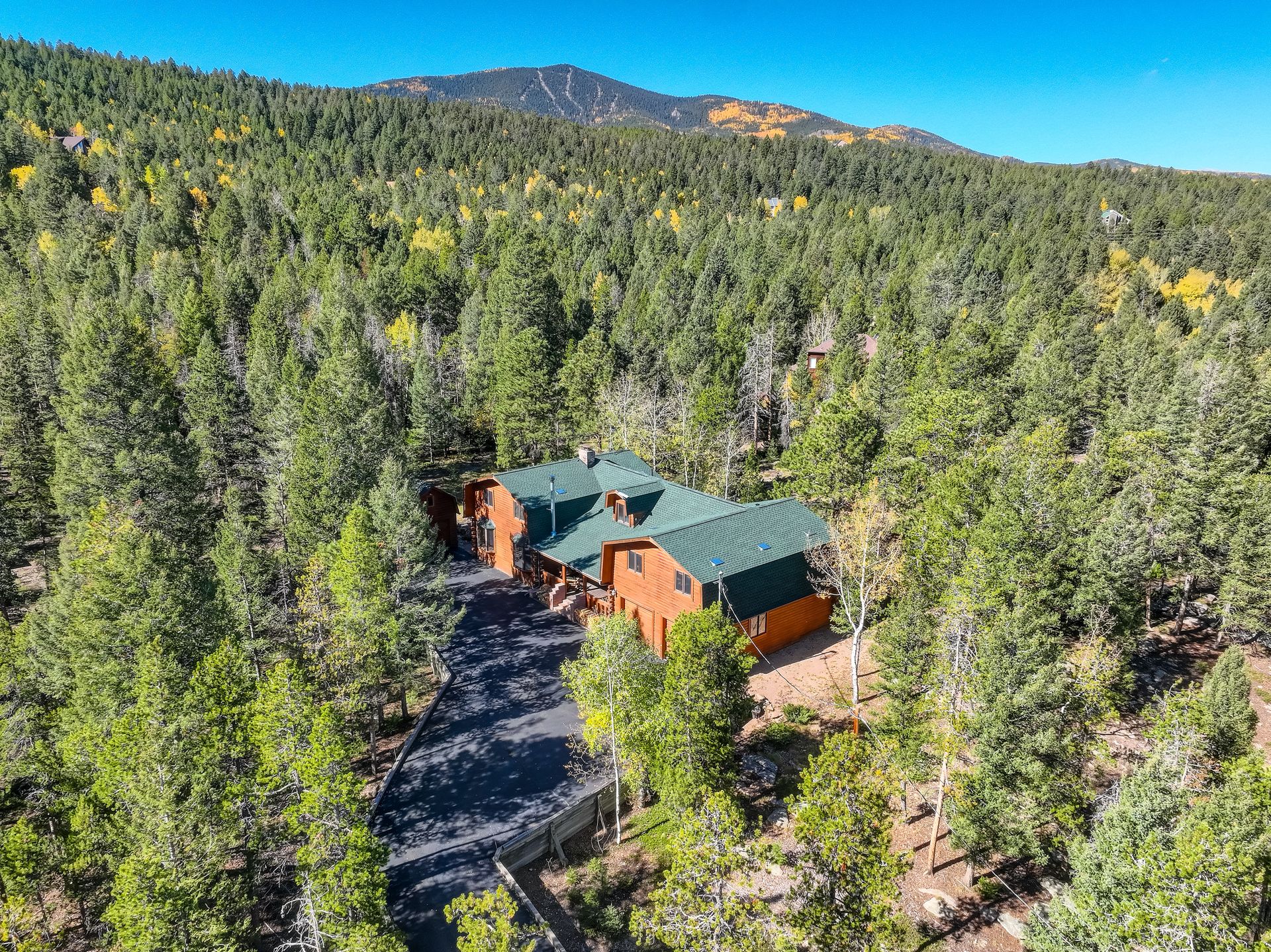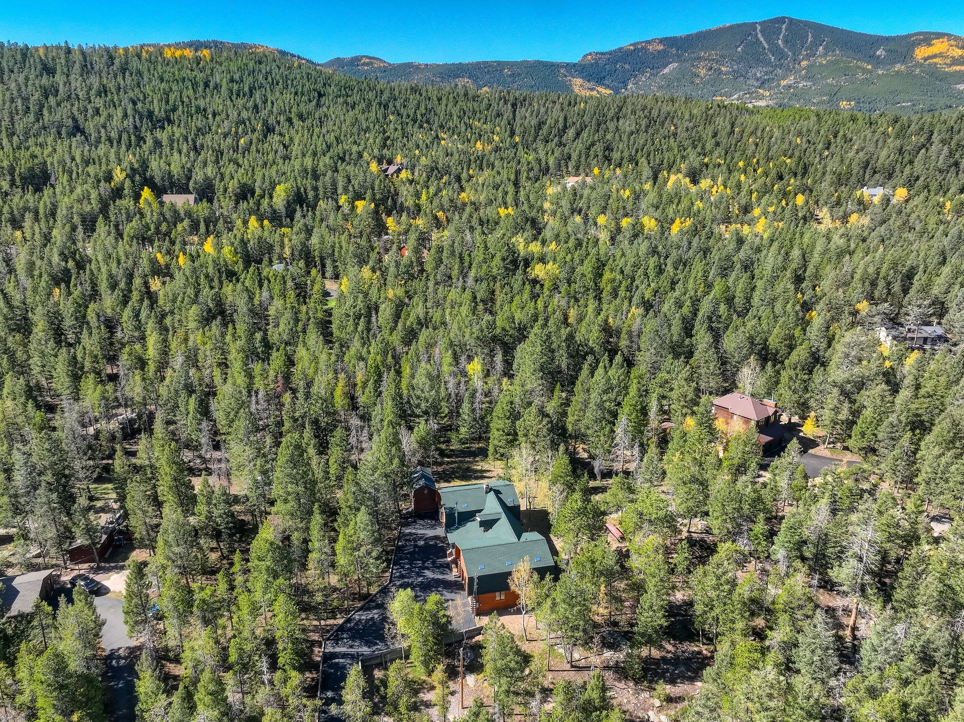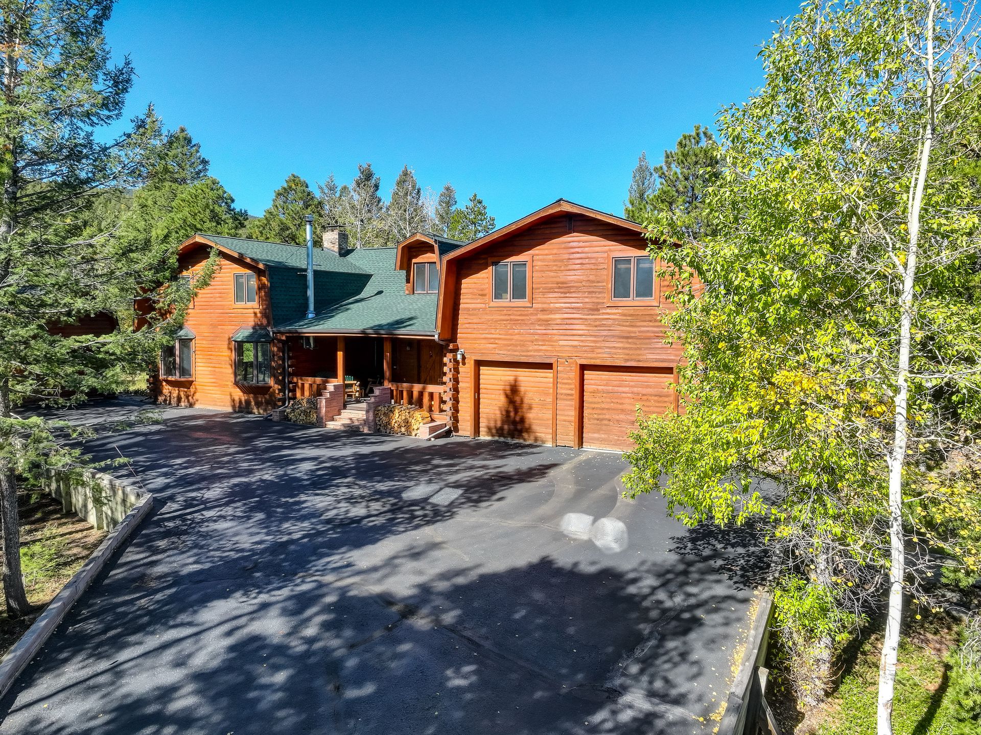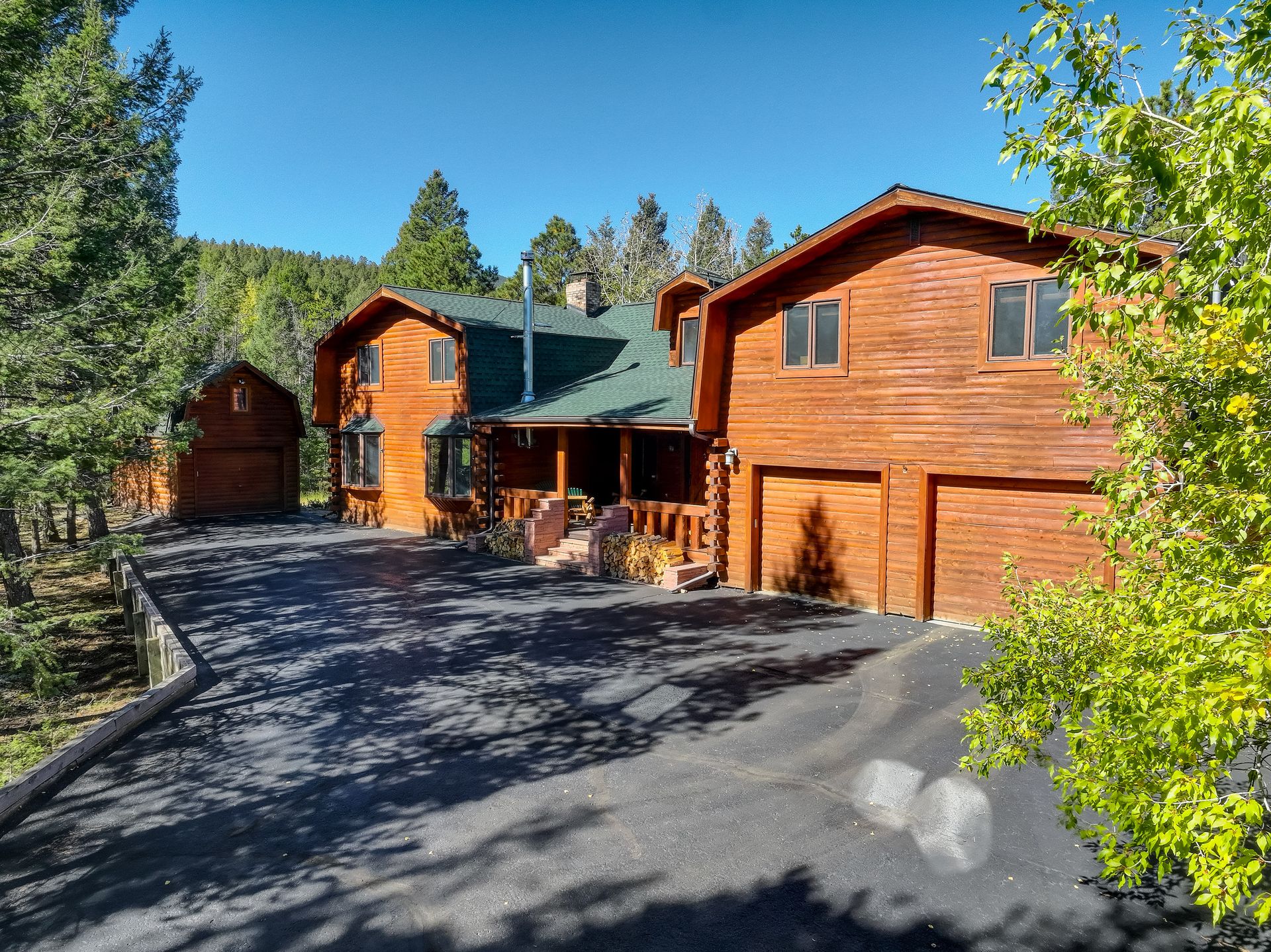 ~ Multi-generational space with private entrance. Sunny, south-facing, paved driveway with beautiful aspen trees. Inviting covered front porch welcomes you to this 4-bed, 4-bath, 3,171 sq ft home on 2 private acres. Mountain charm surrounds you with custom design features. New roof on main home (2025).