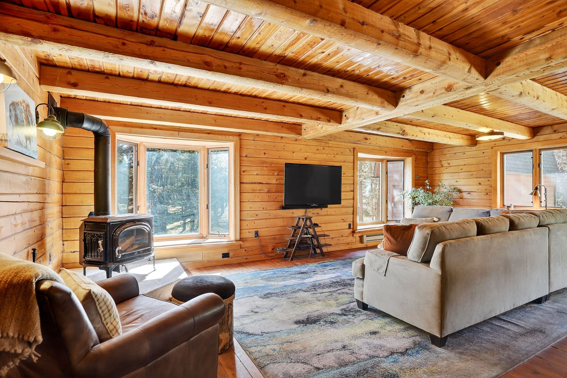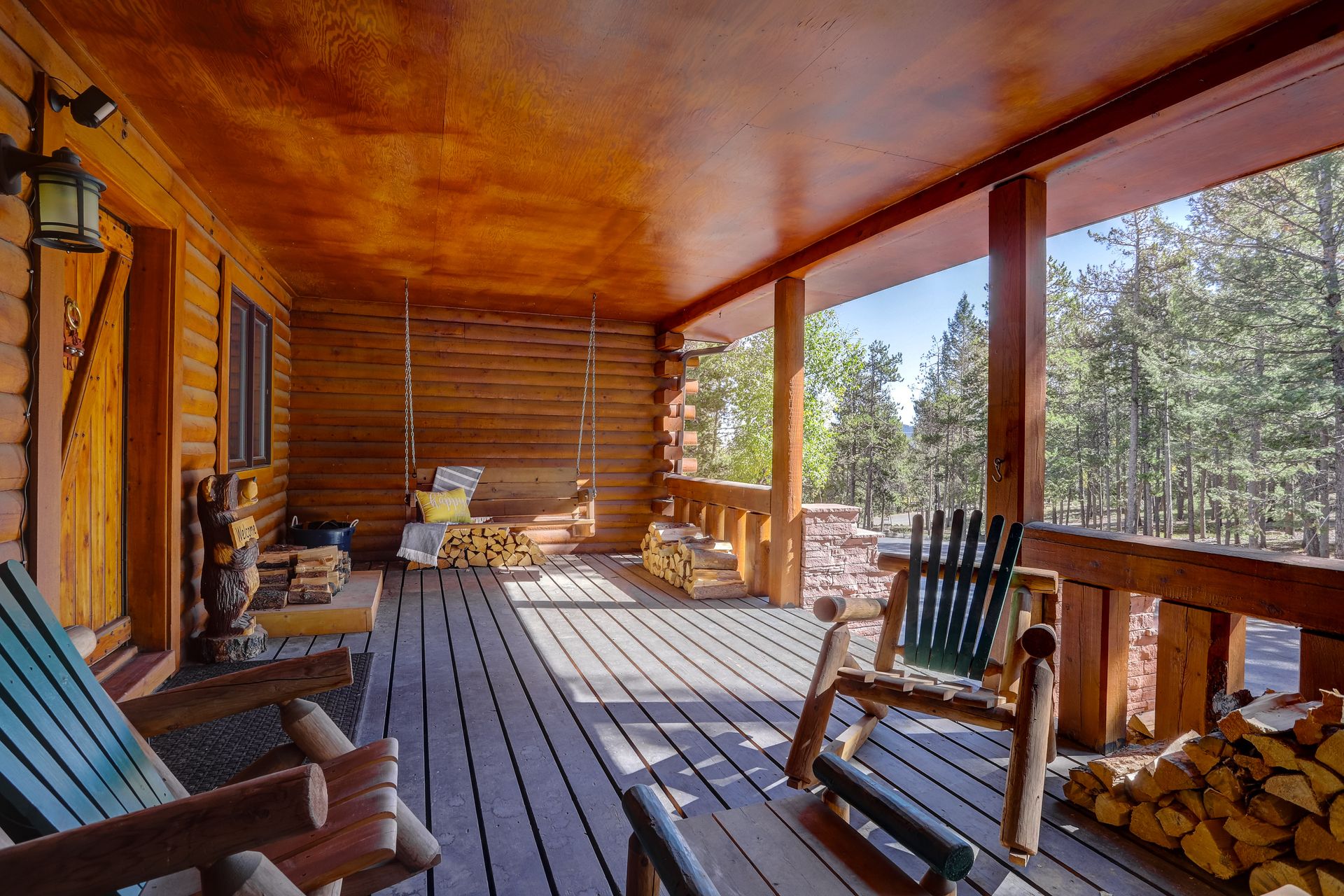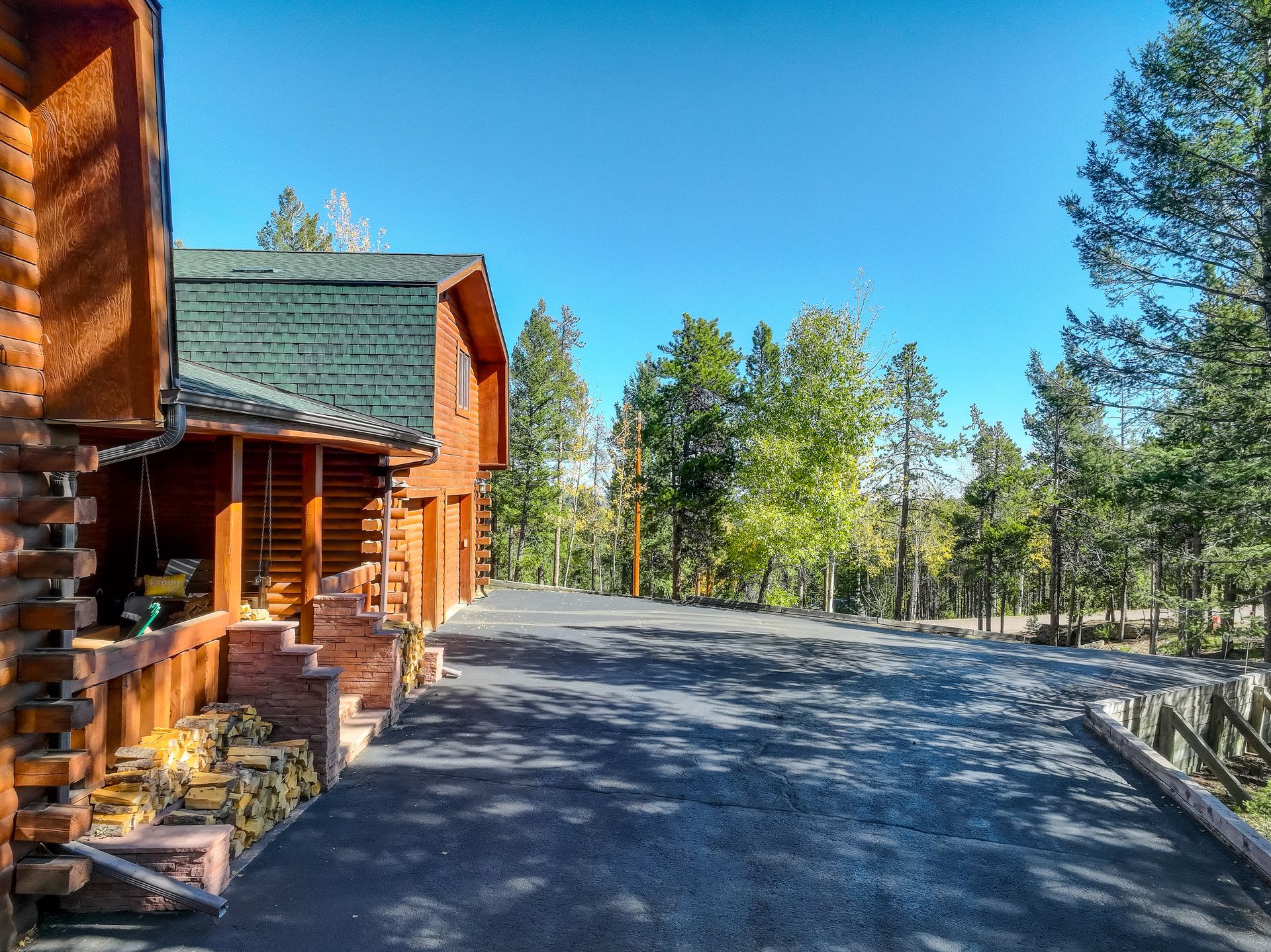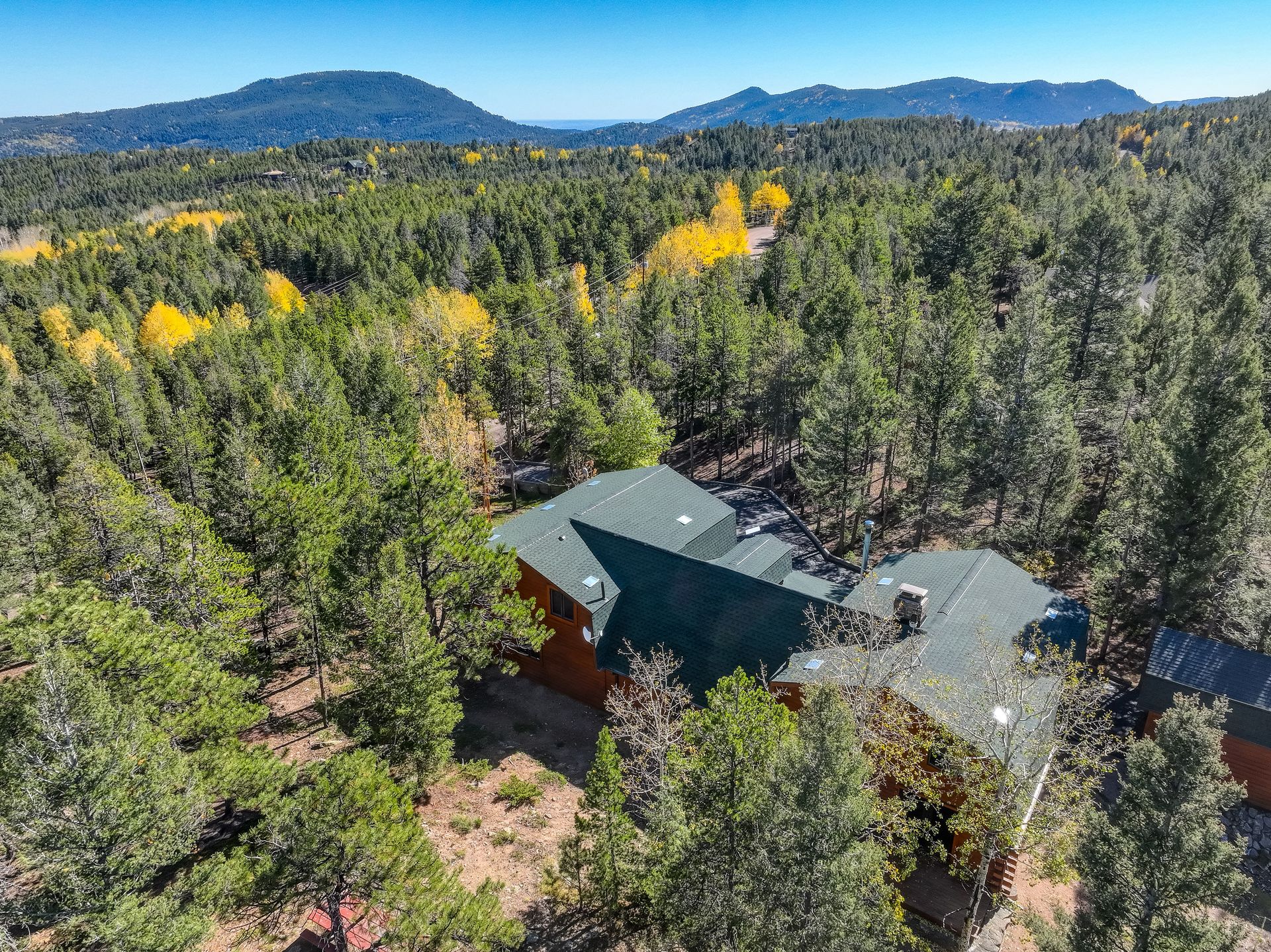 ~ Multi-generational space with private entrance. Sunny, south-facing, paved driveway with beautiful aspen trees. Inviting covered front porch welcomes you to this 4-bed, 4-bath, 3,171 sq ft home on 2 private acres. Mountain charm surrounds you with custom design features. New roof on main home (2025).