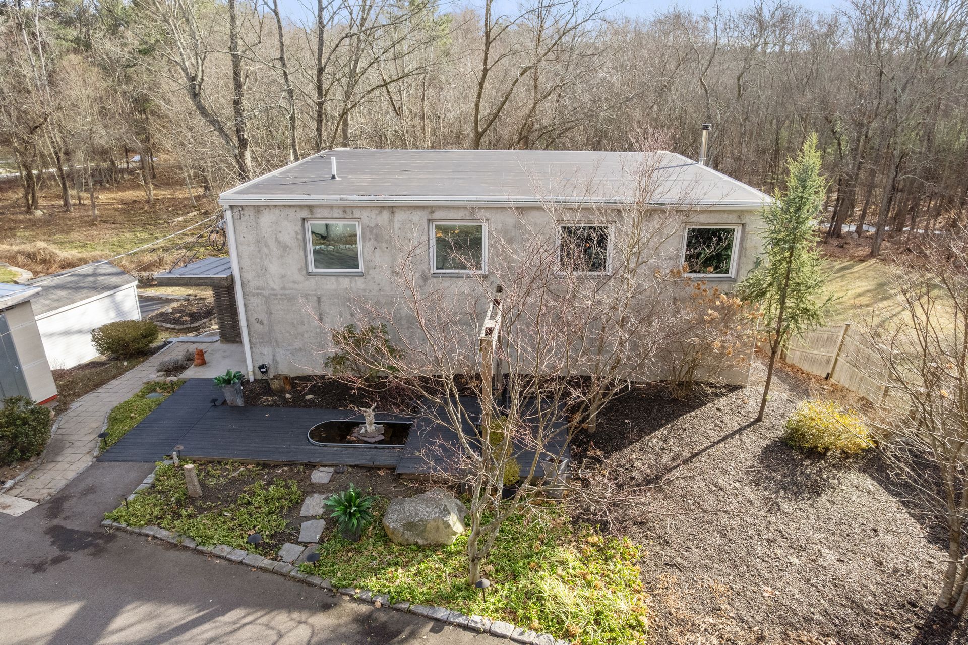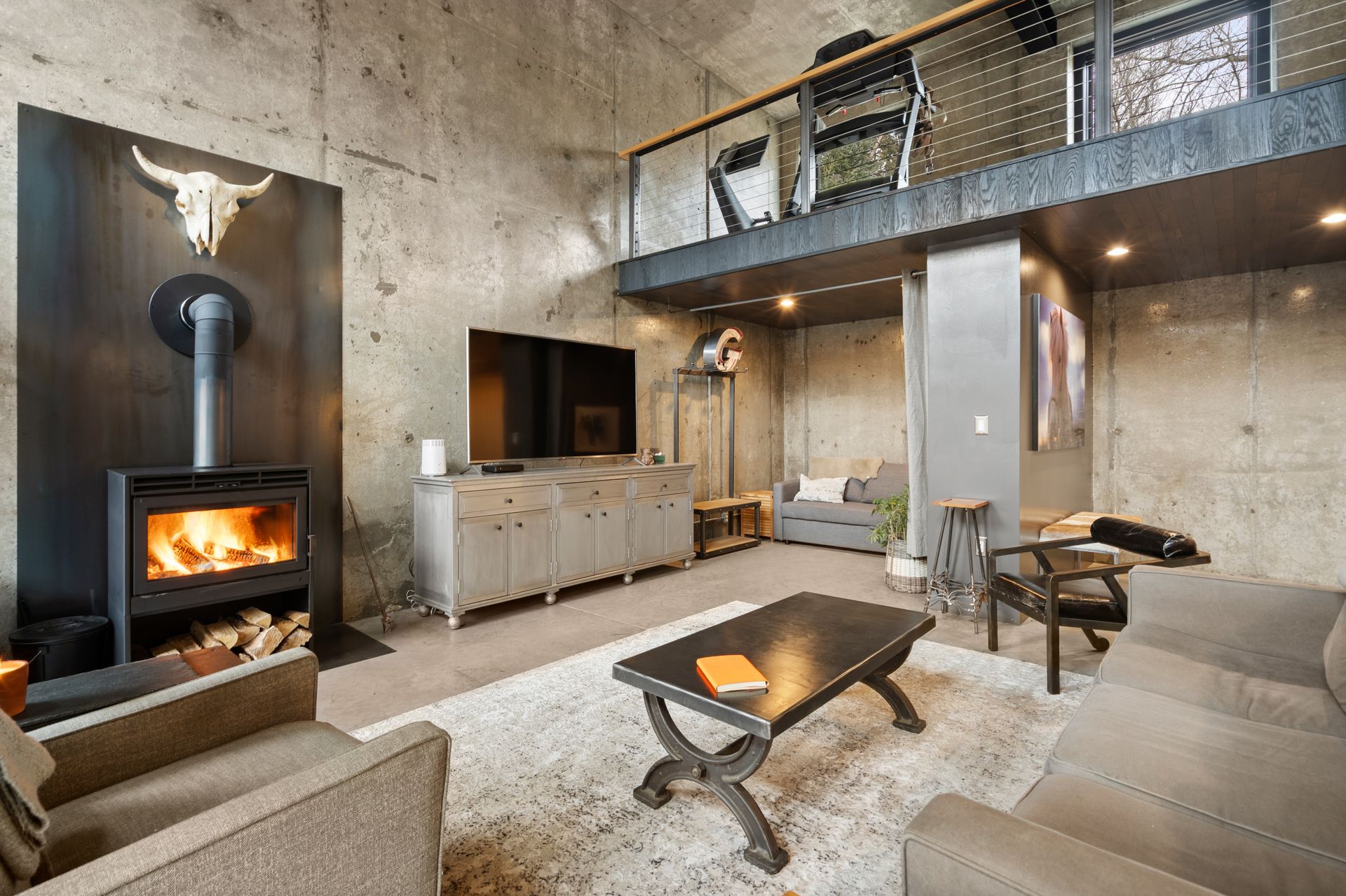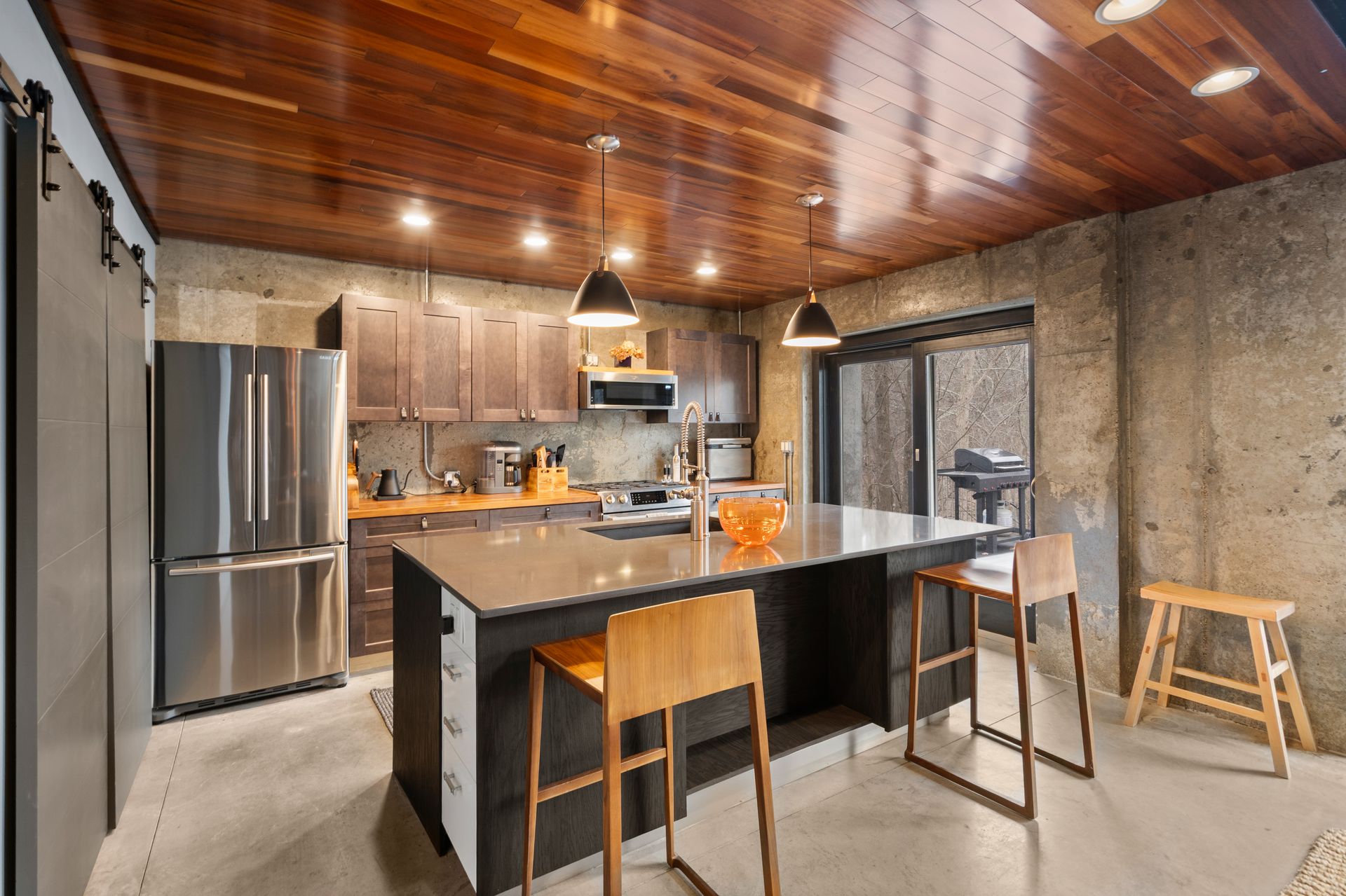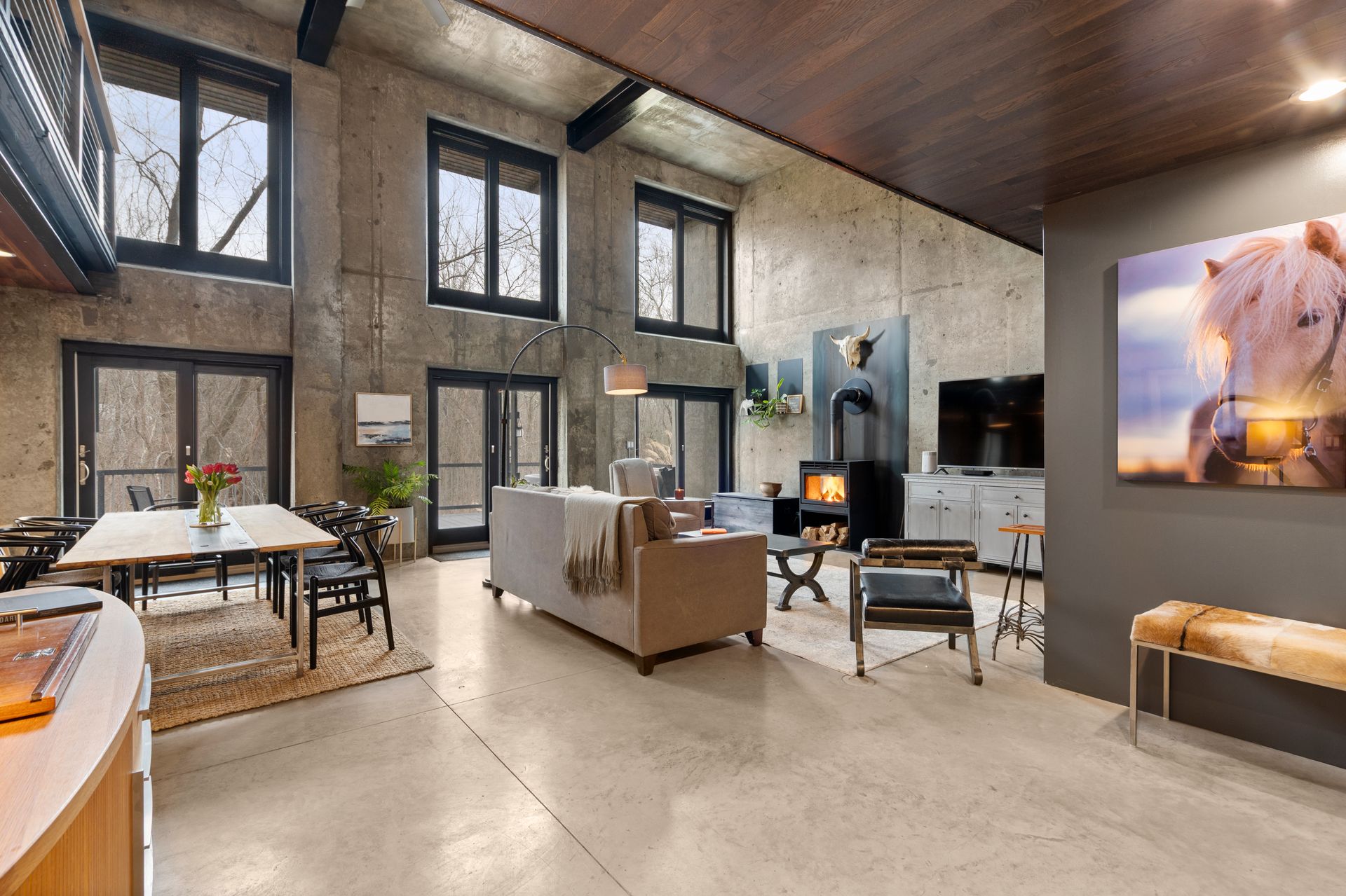 Designed in collaboration with architect Michael Kim, the home is also a true passive‑solar residence. Thermomass‑insulated concrete walls create a durable, minimalist aesthetic while acting as a natural thermal mass, maintaining consistent temperatures year‑round. South‑facing orientation, strategic window placement, and seasonal exterior shading maximize winter sun and moderate summer heat, delivering exceptional energy efficiency.