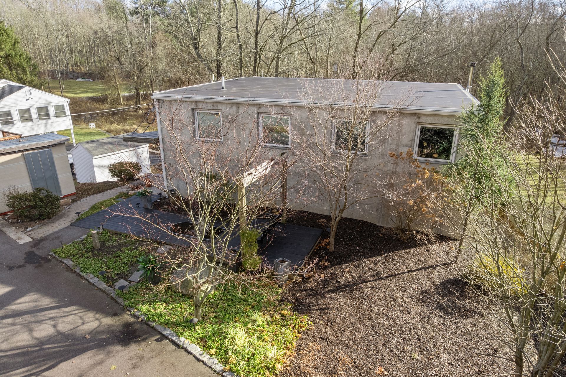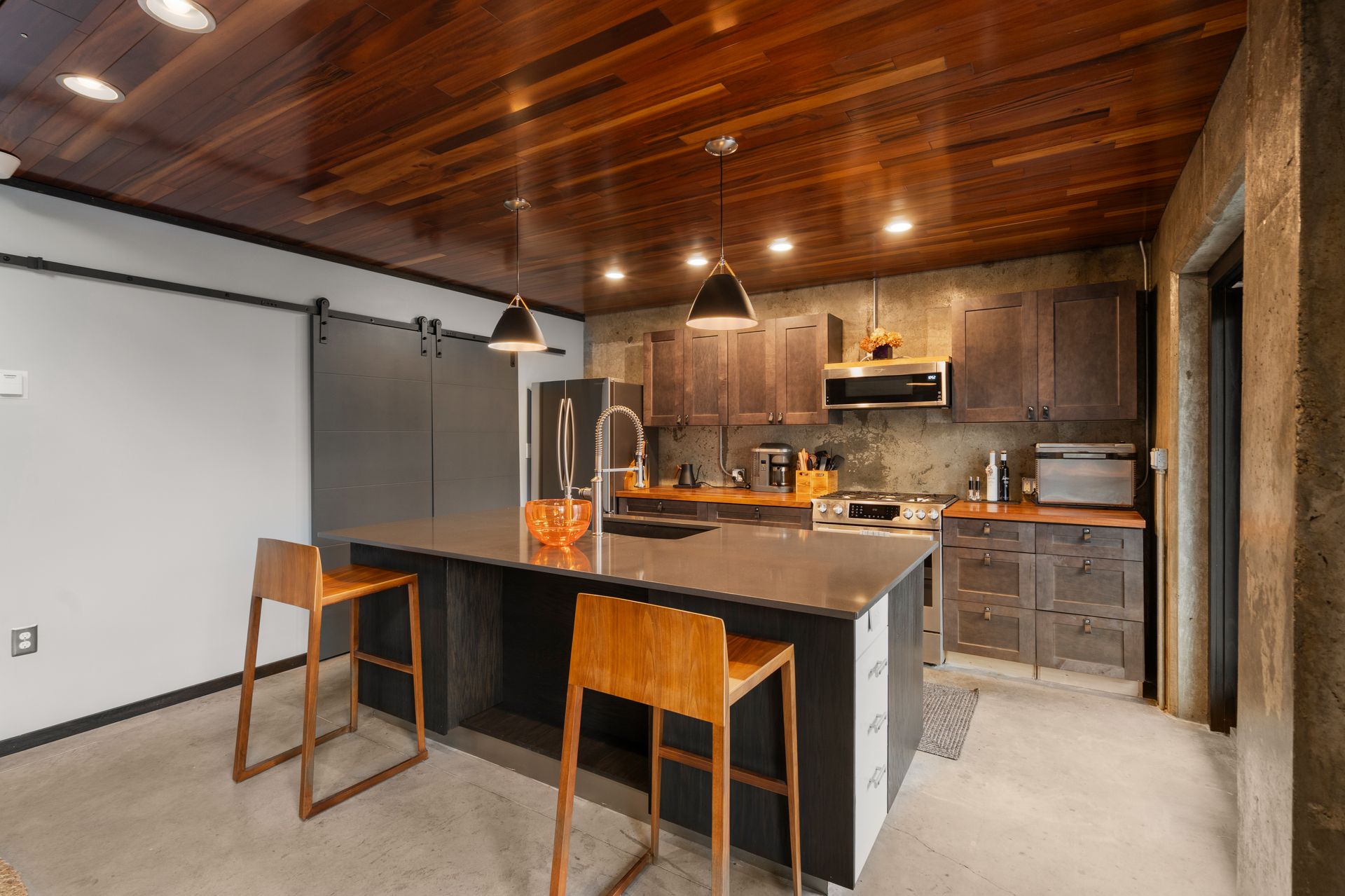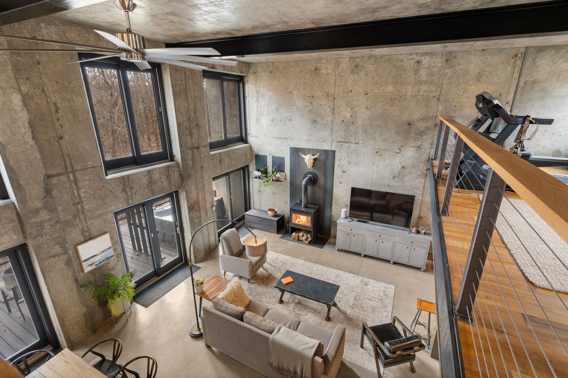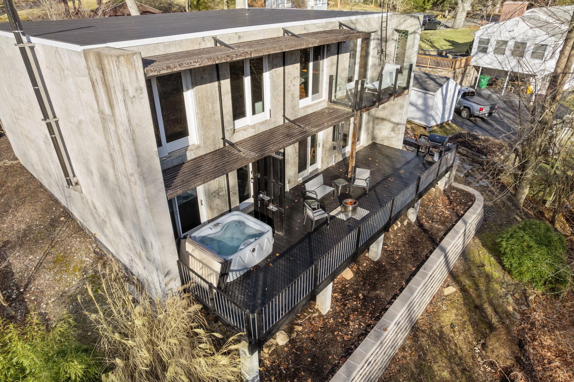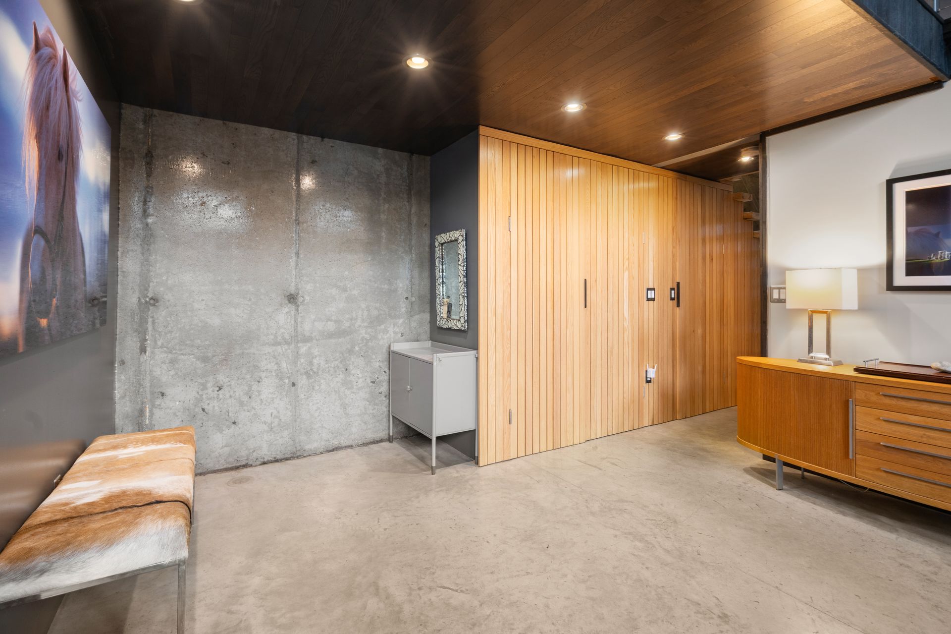 Designed in collaboration with architect Michael Kim, the home is also a true passive‑solar residence. Thermomass‑insulated concrete walls create a durable, minimalist aesthetic while acting as a natural thermal mass, maintaining consistent temperatures year‑round. South‑facing orientation, strategic window placement, and seasonal exterior shading maximize winter sun and moderate summer heat, delivering exceptional energy efficiency.