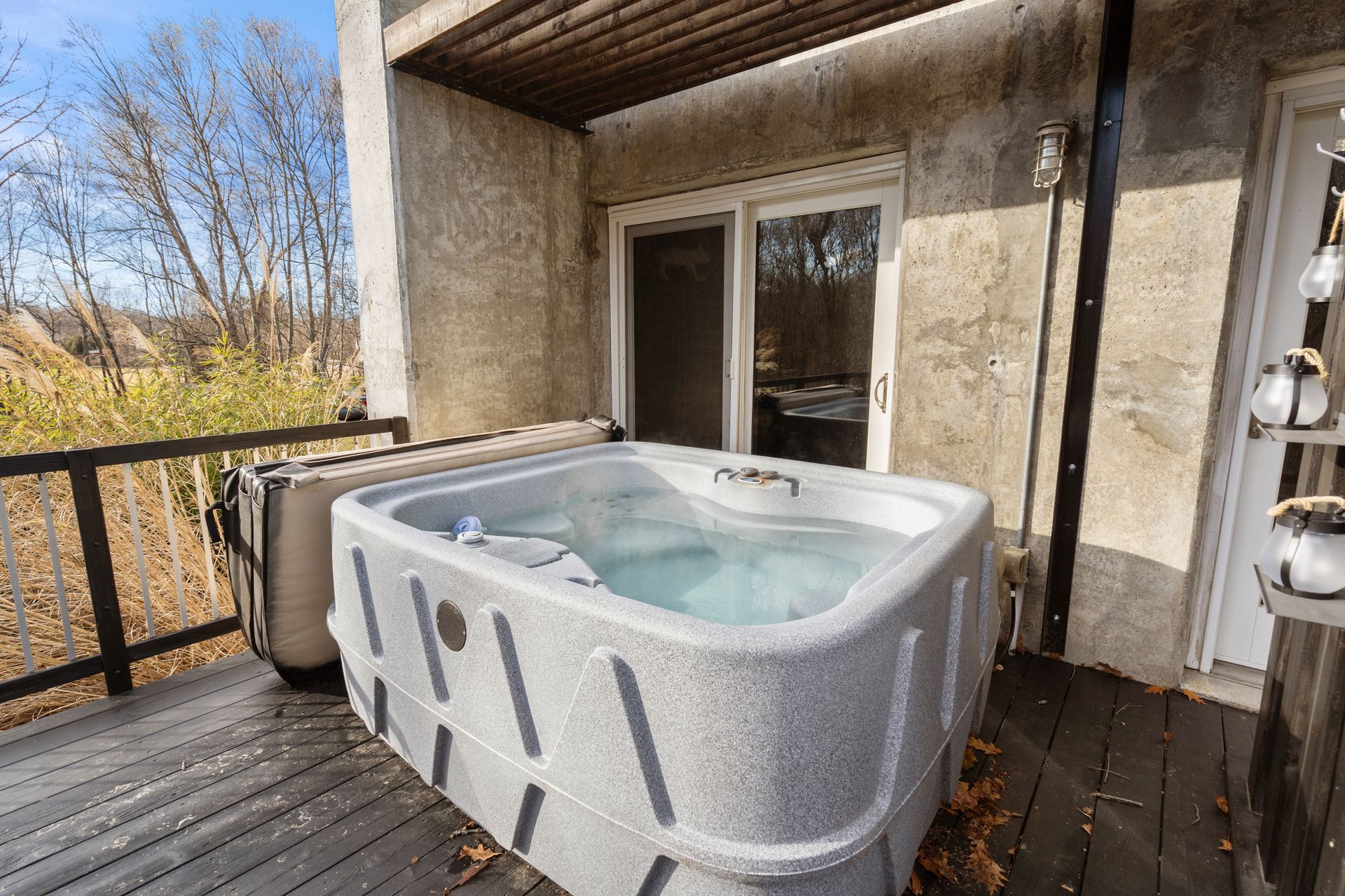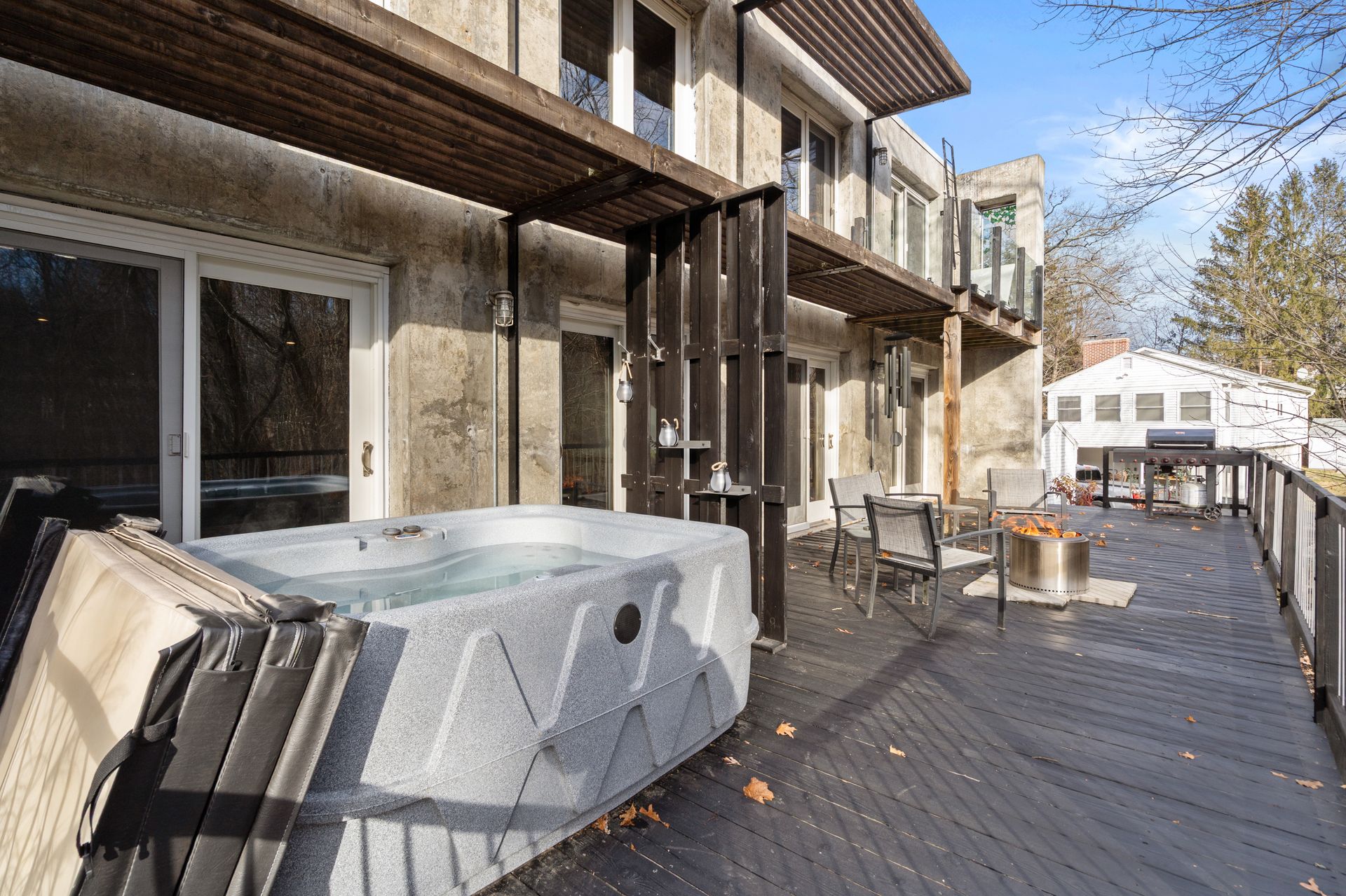 This contemporary, architect‑designed home offers a sleek, modern alternative to condominium living. The open floor plan features walnut and granite counters, stainless steel appliances, radiant heat throughout, and soaring cathedral ceilings. A spacious bedroom plus loft provides flexible living options, complemented by two full baths. Outdoor amenities include an oversized deck, balcony, and hot tub overlooking protected conservation land.