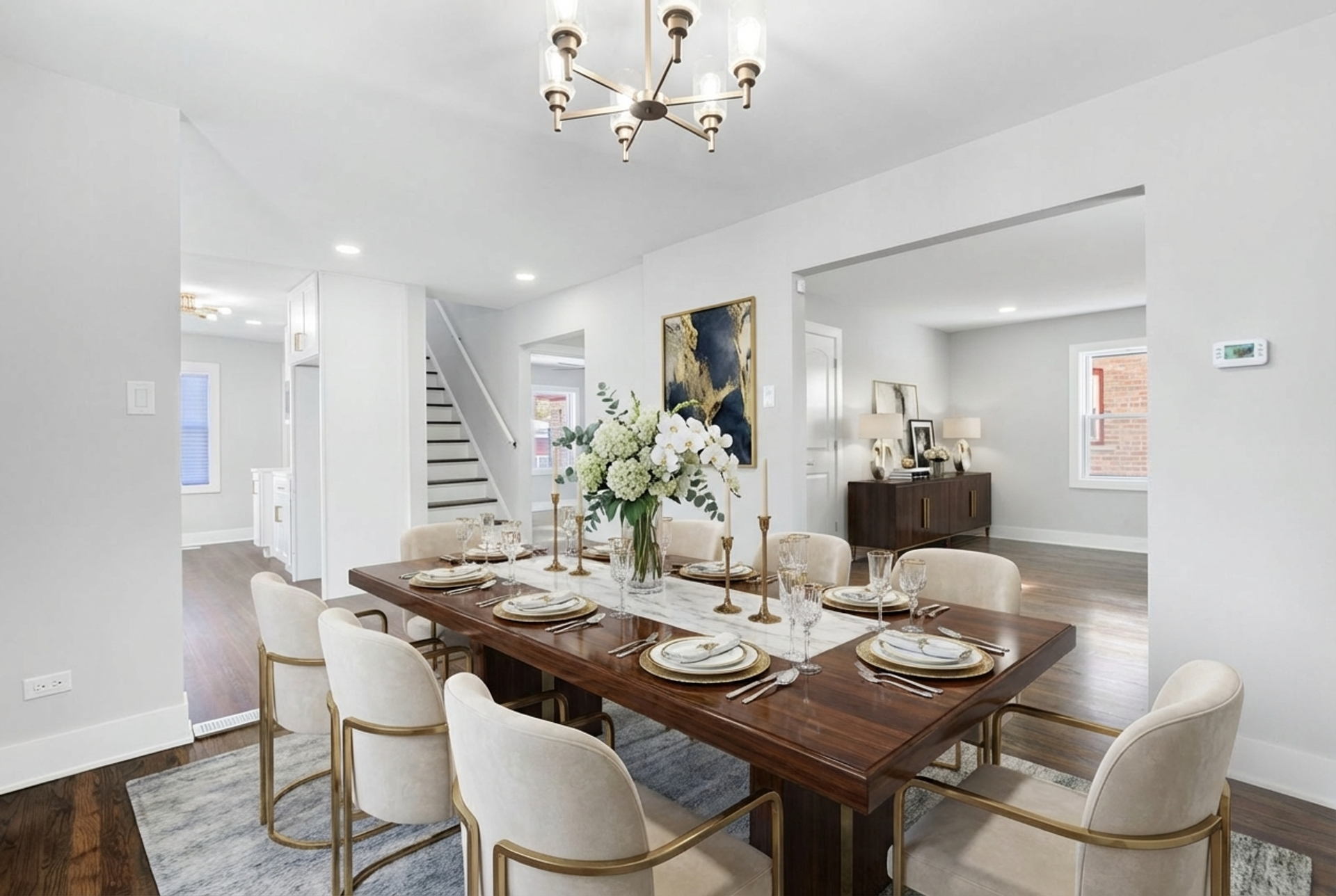 Upon entering, the inviting entryway sets the tone for the home's elegant and well-maintained interior. Richly hued hardwood floors flow throughout, complemented by the abundant natural light that fills the spacious layout. The elegant lighting fixtures add a touch of refinement, while the high-end appliances in the kitchen provide both form and function.